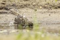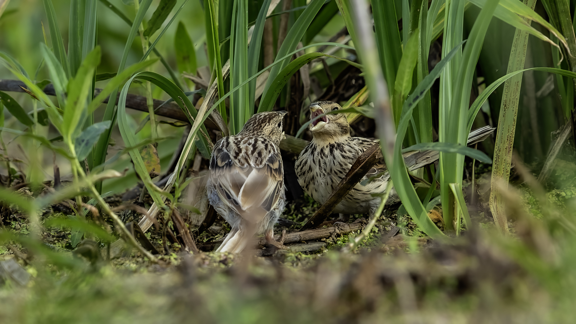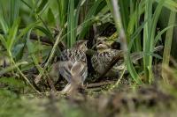 Kiedy leżałem wytrwale i czekałem na zielonkę, kropiatkę, wodnika, sieweczki, późnym popołudniem, po kilku godzinach wyczekiwania nagle pojawiły się potrzeszcze, pliszki siwe i żółte. W większości podloty, ale mimo, że co innego miałem w planie, to wolę obserwację i wykonanie zbliżeń tych gatunków niż pusty plener lub bardzo oddalone, nawet inne wyczekiwane gatunki. Pliszki siwe i żółte, a właściwe ich młode na tyle zaakceptowały moje maskowanie, że jedna z nich żerując przy czatowni, przeniosła się pod obiektyw w poszukiwaniu pożywienia. Była dosłownie na wyciągniecie ręki. Tak więc zaszły zmiany w galeriach pliszek i potrzeszcza w oczekiwaniu na kropiatkę, zielonkę, której ostatecznie nie udało się mi sfotografować. Przynajmniej tym razem...