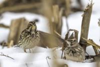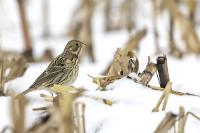 Oj gdyby nie krogulec powstałoby wiele lepszych zdjęć. Ptaki były bardzo płochliwe, podrywając się do lotu co chwilę. Ale powstały pierwsze moje zdjęcia potrzeszczy w zimowej scenerii, a krogulca w locie, niestety na tle nieba.