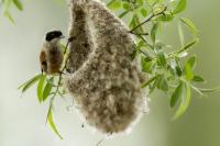 Podczas czwartego spotkania z remizem powstały zdjęcia uwieczniające budowę gniazda. Mały budowniczy co chwila pojawiał się z materiałem na gniazdo i z dużym zapałem i determinacją wbudowywał przyniesiony materiał. Zdjęcia są na tyle ciekawe, ze nastąpiła przebudowa galerii.