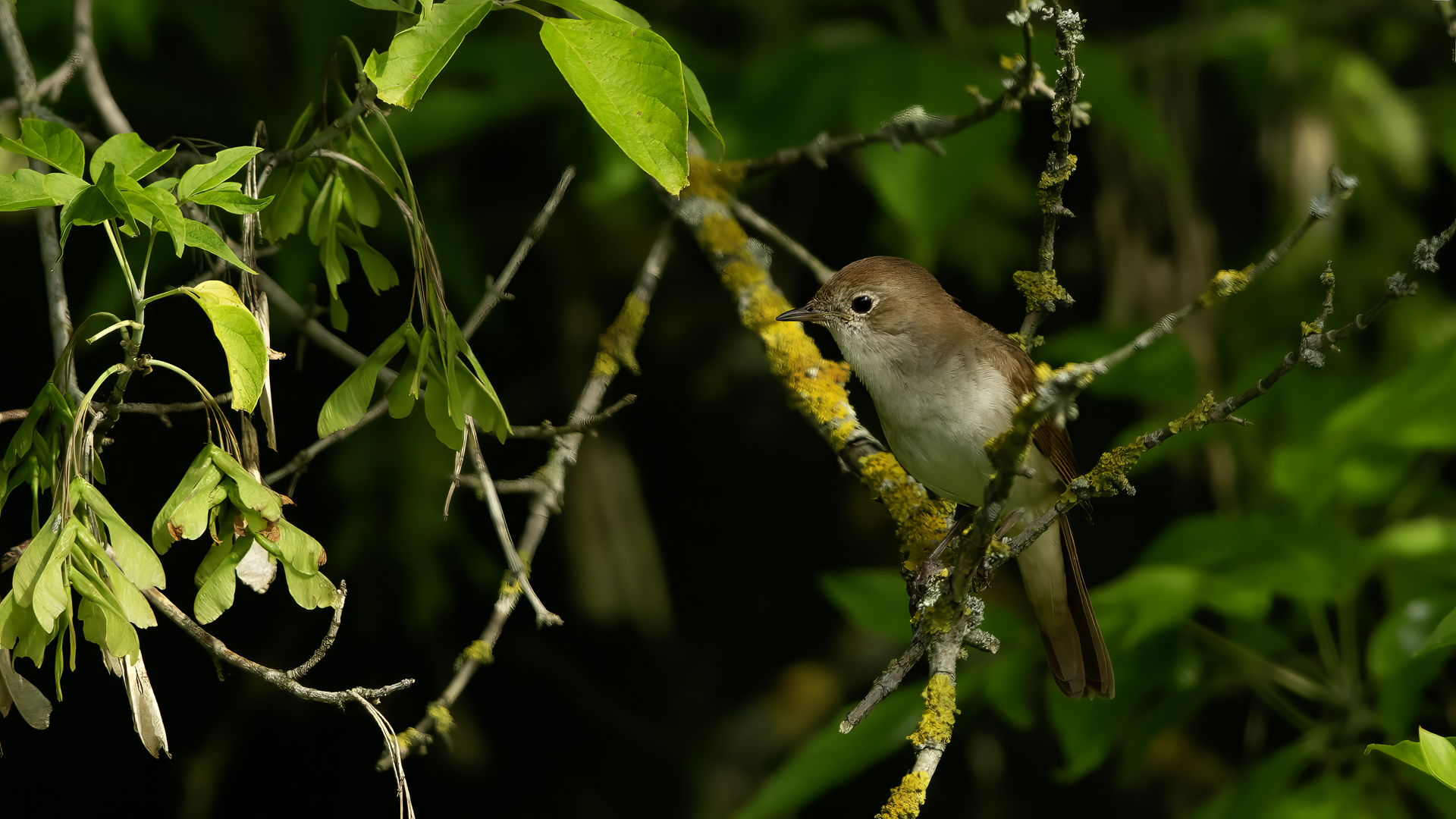 Moje drugie spotkanie ze słowikiem rdzawym przyniosło radykalne zmiany galerii. Słowik miał swoje ulubione miejsca z których rozbrzmiewała jego pieść na całą okolicę. Z nagraniem dźwięku nie było problemu. Niestety nieopodal usytuowana była ruchliwa droga i trudno było nagrać czysty dźwięk, pozbawiony zurbanizowanego akustycznie tła. Swoją drogą zachowanie słowika jest dość dziwne jak na konieczność posiadania skutecznej strategii przetrwania. Fotografowałem słowika blisko dwie godziny. Słowik śpiewał cały czas, dając gęsiorkowi wskazówki o swoim położeniu. Tylko podczas moich obserwacji zaatakował słowika dwa razy. Słowik wprawdzie jest wytrawnym śpiewakiem, ale nie zamyka oczu podczas śpiewu i tak naprawdę jest cały czas czujny. Nie tak dawno fotografowałem brzęczkę, której monotonny śpiew w dłuższym kontakcie jest nie do wytrzymania. Ze słowikiem odwrotnie. Śpiewa urozmaicając swoją pieśń, którą można słuchać i słuchać... Może jeszcze będzie okazja do poprawienia ścieżki dźwiękowej, która dla tego gatunku jest ważniejsza niż zwykle.
