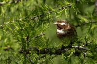 Pojechaliśmy na zachód od Ułan Bator do pięknego modrzewiowego lasu. Od razu zmieniły się gatunki pojawiające się przed naszymi obiektywami. Świstunka ałtajska, świergotek tajgowy i trznadel białogłowy. Łatwiej było nagrać głos trznadla niż wykonać zdjęcia. Śpiewał donośnie na całą okolicę i powstało też nagranie głosu tego ptaka.