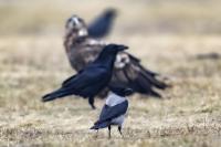 Zawsze towarzyszyła drapieżnikom. Po wylądowaniu przed czatownią błotnika stawowego, kani, czy myszołowa, zawsze pojawiały się wrony siwe. Tym razem kruki były słyszane z oddali, ale nigdy nie wylądowały przed czatownią. To dość dziwne bo nie pojawiły się sroki i sójki. Kania ruda była wręcz dręczona w locie przez wronę siwą. Galeria została uzupełniona o kilka zdjęć i chyba, aby nie była przeładowana, przy następnych zmianach będzie przebudowana.