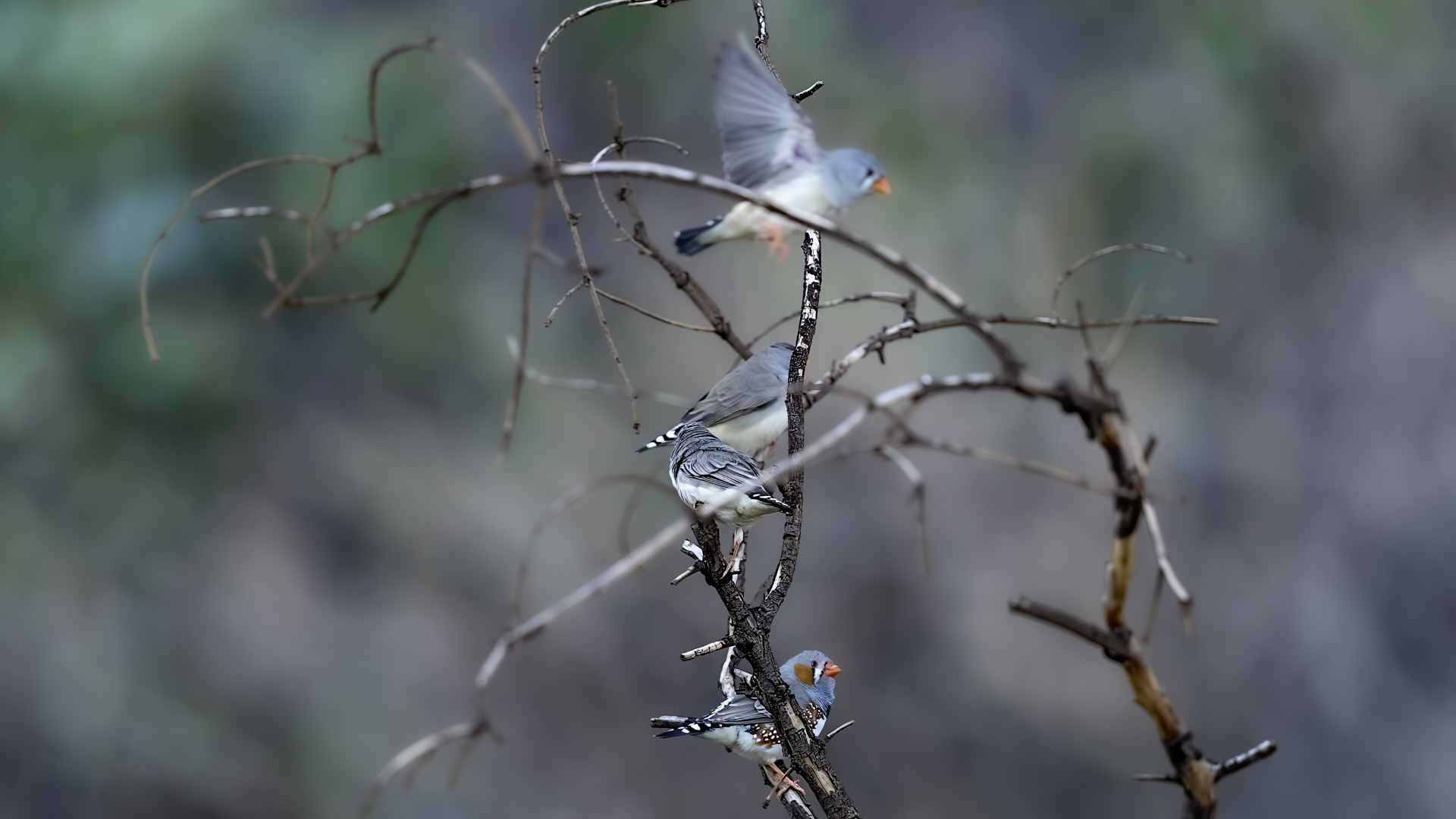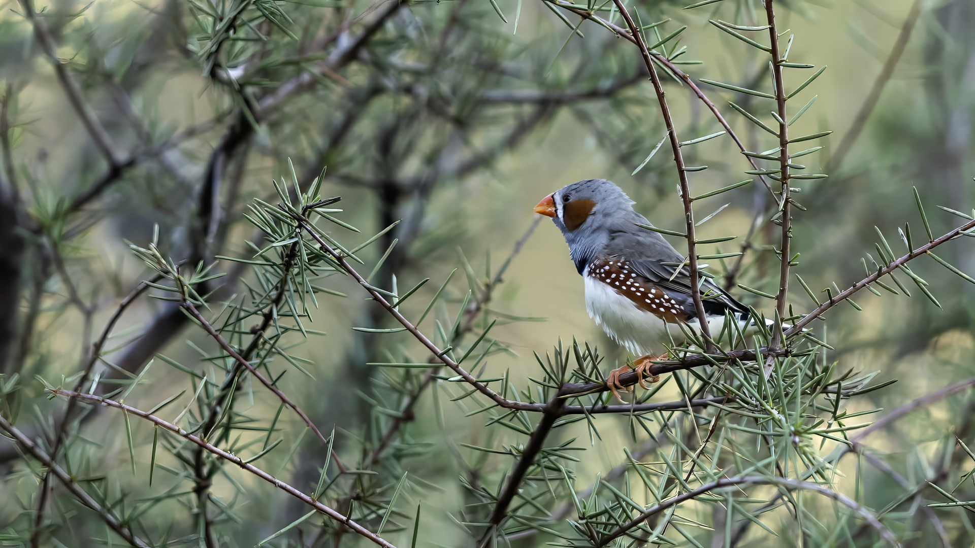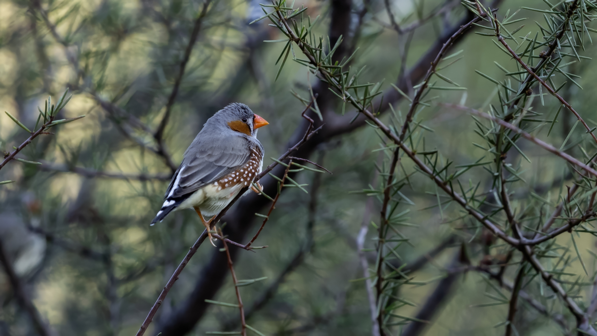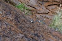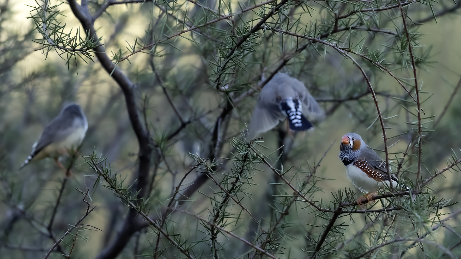 Przy prezentowaniu tego gatunku nasunęło mi się trochę skojarzeń i wspomnień związanych z papugami falistymi. Zeberki to stadne ptaki, które fotografowałem w sercu Australii w Uluru. Setki kilometrów „rdzawej” ziemi, porośniętej skąpo trawą i jeszcze rzadziej niewielkimi drzewami, to środowisko nie tylko zeberki, ale także papugi falistej. Ptaka chyba najbardziej rozpowszechnionego wśród papug hodowlanych w Polsce. Podziwiając te ptaki, kiedyś, lata temu, zbudowałem przy domu sporej wielkości wolierę. Wkopałem w niej przepołowione pnie brzozy, na szczycie pni wydrążyłem otwory i w tylnej ich części zawiesiłem domki lęgowe. Woliera była całoroczna, a ptaki czuły się w niej na tyle dobrze, że przez kilka lat jej funkcjonowania na świat przyszło tam około 200 ptaków. Głównie papug falistych, ale też nimf. Rozelle królewskie trzykrotnie nieskutecznie przystępowały do lęgów. Lecąc do Australii chciałem oczywiście je zobaczyć w ich naturalnym środowisku, ale na samym środowisku  się skończyło. Niestety trzeba byłoby mieć dużo więcej czasu i przewodnika, aby je znaleźć na nieograniczonych przestrzeniach w sercu Australii. Papużki faliste żyją, prócz wybrzeży, praktycznie na całym obszarze Australii. Miejscowa ludność w Uluru pytana o ten gatunek twierdziła, że tak, są tu – wszędzie, na przestrzeniach nie do opisania. No cóż z papugami falistymi widać, nie było mi pisane podziwiać je w ich naturalnym środowisku. Ale mimo, że nie planowałem tego, to udało się fotografować, i to nieraz, stado zeberek, które siadały na charakterystycznych czerwonych skałach Uluru. Zeberki latały w stadzie 20-30 osobników i jak zostawałem z nimi sam na sam (brak innego turysty w zasięgu 15-20 metrów, o co nie było łatwo) na kilka minut, powstały prezentowane zdjęcia. Zeberki siadały najpierw na krzaku lub skale, chwilę obserwowały teren, po czym zlatywały  na niżej położone trawy lub na ziemię i zabierały się do żerowania. Znów dała o sobie znać specyfika australijskiego fotografowania. Oczywiście bez żadnego maskowania, spokojnie podchodząc można było wykonać im zdjęcia z odległości 7-9 metrów. Tu trzeba pamiętać o dwóch utrudnieniach. Jedno, że to dość żwawe stado ptaków. Jeżeli usiądą na krzaku, szczególnie rano żerując, to długo tam nie zagrzeją miejsca. Tak więc podchodzenie nie może być zbyt energiczne, ale zbyt powolne spowoduje, że odlecą lub zlecą na ziemię, gdzie fotografowanie będzie znacznie utrudnione. Druga uciążliwość  w tej okolicy, to średniej wielkości muchy. Jest ich rzeczywiście ogrom i znacznie utrudniają skoncentrowanie się na fotografowaniu. Obsiadają człowieka i nie sposób się od nich odgonić. Reasumując, udało się wykonać zdjęcia na galerię tego barwnego ptaka i to w samym sercu Australii, podobnie jak i kilku innych gatunków, jednak nie w tak okazałej ilości. Z nagraniem głosu nie byłoby problemu, ale niestety zabrakło czasu. Postawiłem na większą liczbę zdjęć, bo ostatecznie głosu zeberki można posłuchać w wielu miejscach w Polsce.