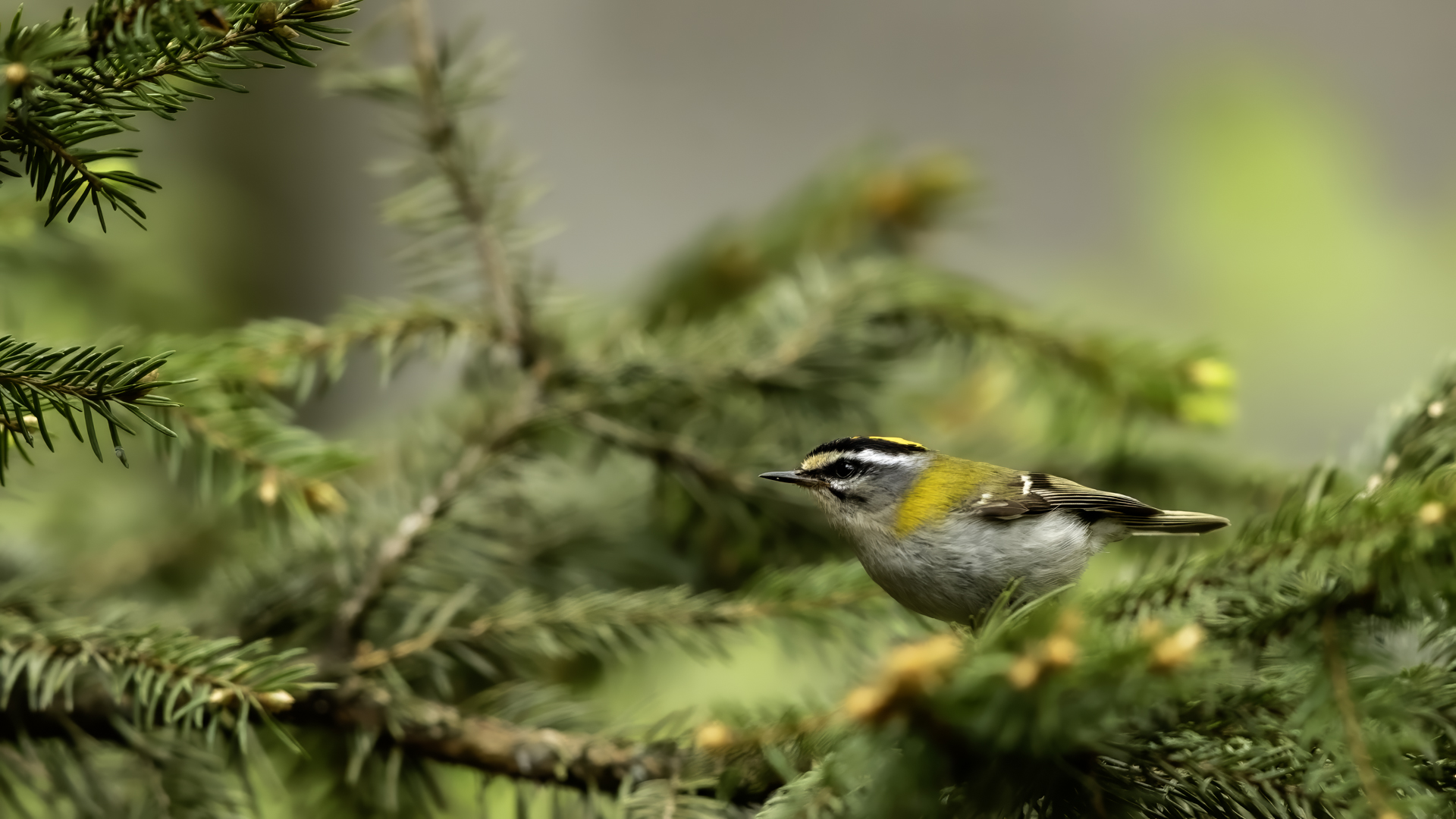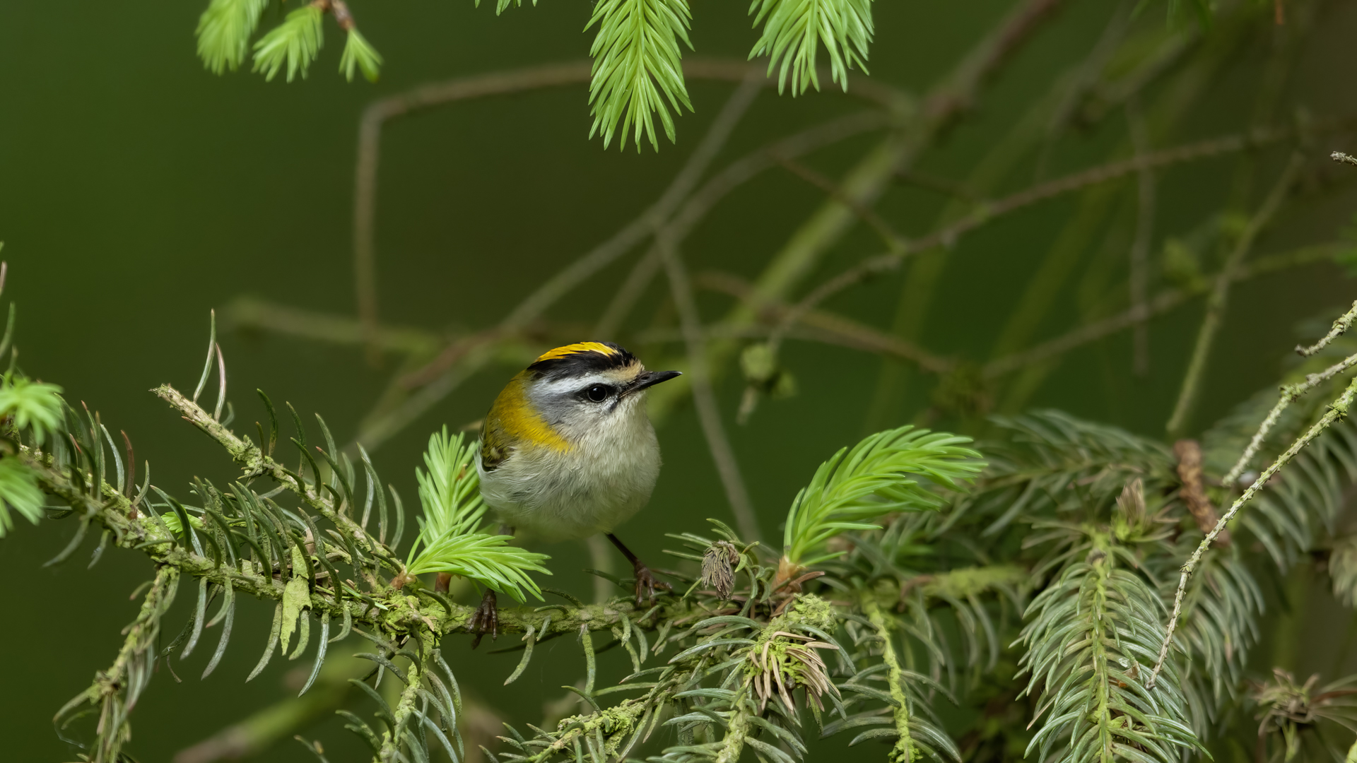 Wrażenia i przyjemność obcowania ze zniczkiem są podobne, jak jego podobieństwo z mysikrólikami. Zachęcam do lektury tekstu o mysikróliku. Wskazałem też tam różnice fizyczne pomiędzy tymi gatunkami, do których warto też dodać, że zniczki na zimę opuszczają nasz kraj, zimując na południu Europy, względnie na północy Afryki. Ciekawostką jest, że oba gatunki w lęgu znoszą do 10 jaj, których waga przekracza masę ich ciała, bo wynosi około 5-6 gramów! Zniczki budują często gniazdo w niższych partiach drzew i krzewów, mysikróliki na wysokości nawet kilkunastu metrów. Z moich wielokrotnych podejść do fotografowania tych gatunków wynika, że zniczków w Polsce jest zdecydowanie mniej, niż mysikrólików, mimo, że to zniczki mają znacznie lepsze i komfortowe warunki zimowania niż mysikróliki. Polecam tego ślicznego „malucha” jako obiekt do fotografowania. Pamiętajcie jednak, że tak jak to bywa w przypadku fotografii przyrodniczej trzeba mieć nie lada cierpliwość i nie zniechęcać się większością nieudanych zdjęć. Fotografowanie bardzo ruchliwego zniczka, czy mysikrólika jest bardzo trudne, też uwagi na fakt braku dostatecznych warunków światła, nawet w słoneczny dzień. W dolnej części dorodnych świerków, często nie dociera tyle światła, aby mieć komfortowe do fotografowania warunki. Często się zdarza, że jak już autofocus wyostrzył i zwolniła się migawka to w kadrze mamy pięknie sfotografowaną gałązkę świerka, na której siedział zniczek, czy mysikrólik.