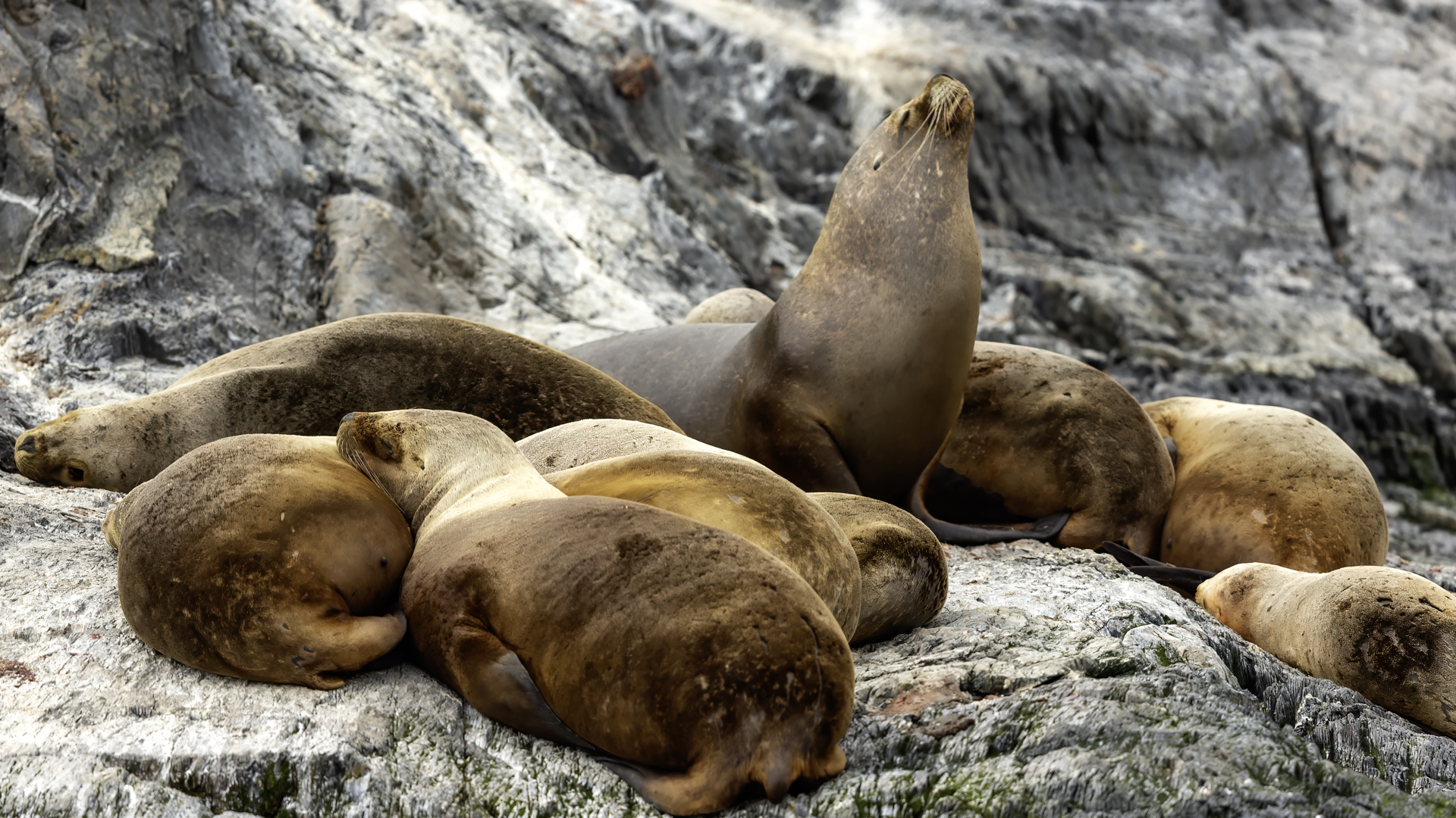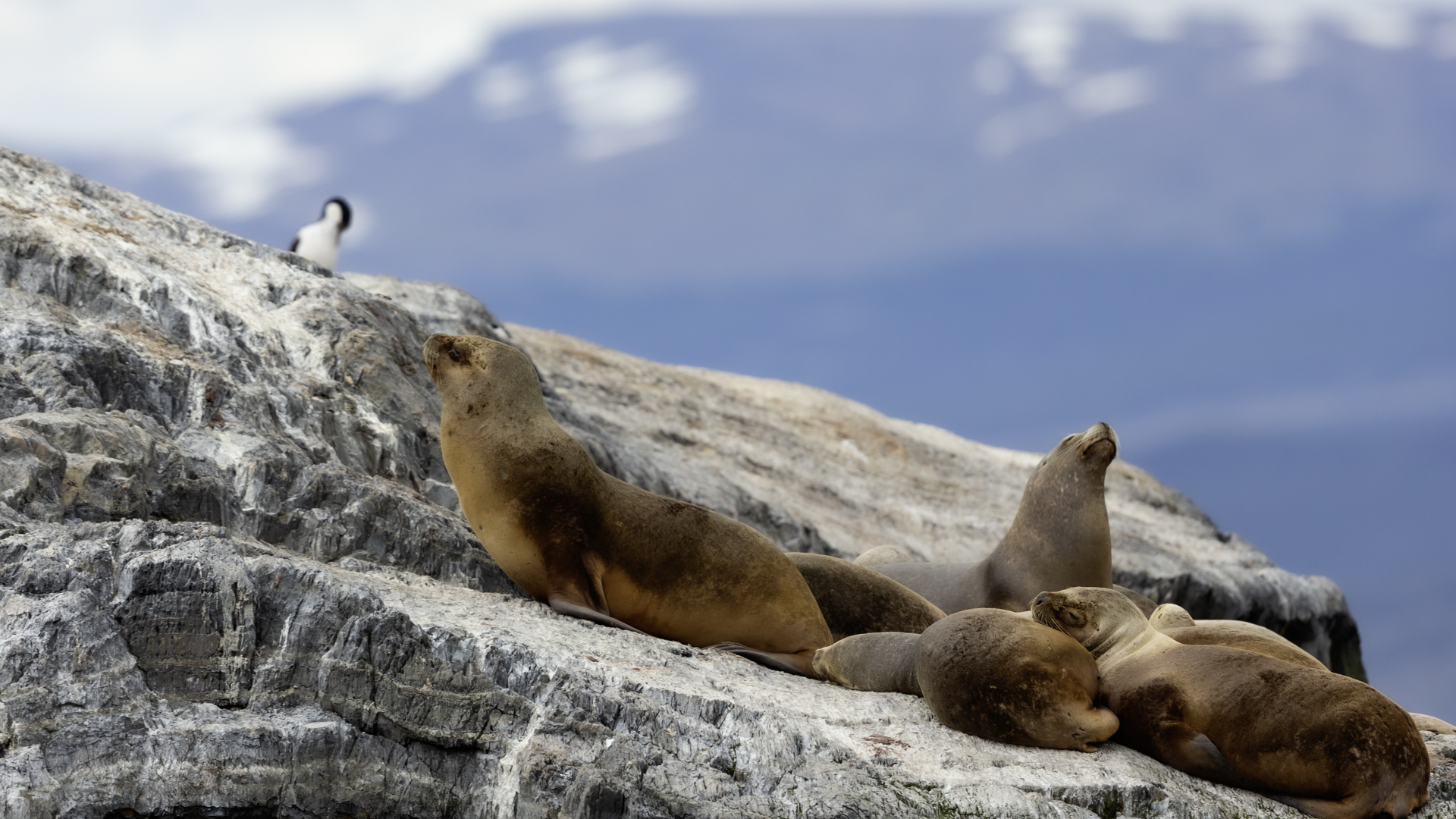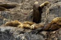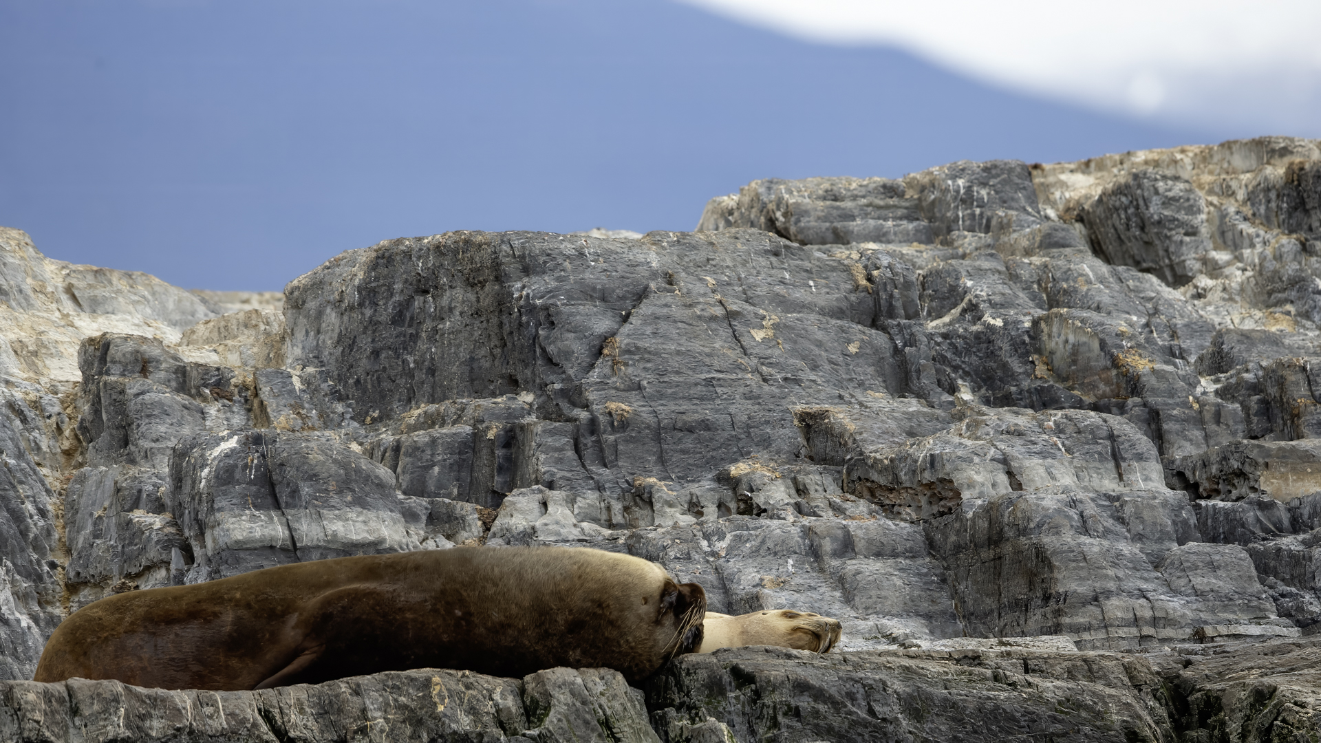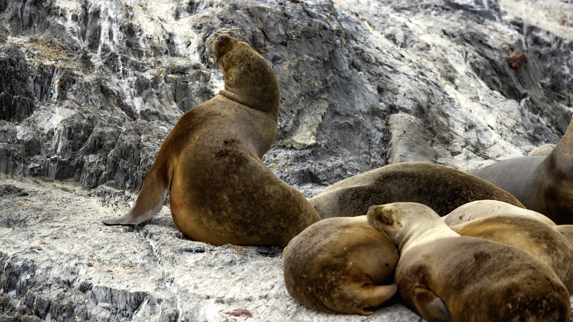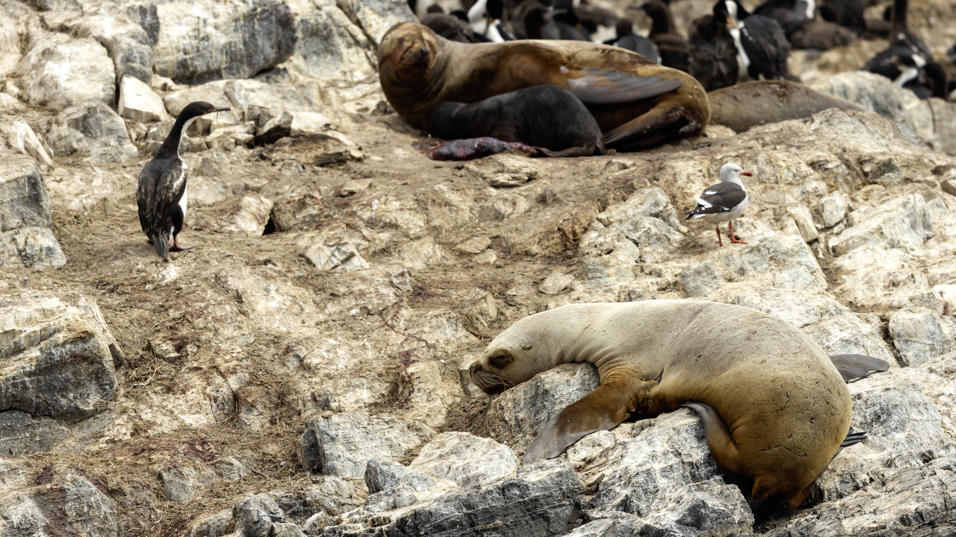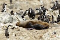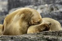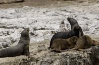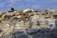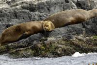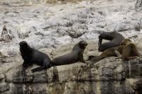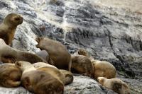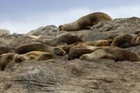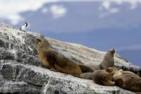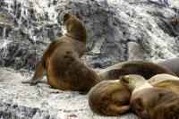 Uchatki patagońskie fotografowałem podczas krótkiego rejsu wokół wysp leżących niedaleko Ushuaia. Chyba się trochę spóźniliśmy by być światkiem narodzin młodej uchatki. W każdym bądź razie "resztki" poporodowe były przedmiotem zainteresowania mewy magellańskiej i mewy południowej, które ostrożnie podchodziły do uchatki i jej dopiero co narodzonej pociechy. Samiec jest znacznie większy od samic i wyróżniał spośród dziesiątek uchatek wygrzewających się na skałach. Waga samców może osiągnąć 350 kilogramów i długości ciała 2,7 metra. Samice są znacznie mniejsze, bo osiągają wagę do 150 kilogramów i długości ciała do 2 metrów. Występują wzdłuż wybrzeży Argentyny, Urugwaju, południowej Brazylii, Chile, Peru i Ekwadoru.