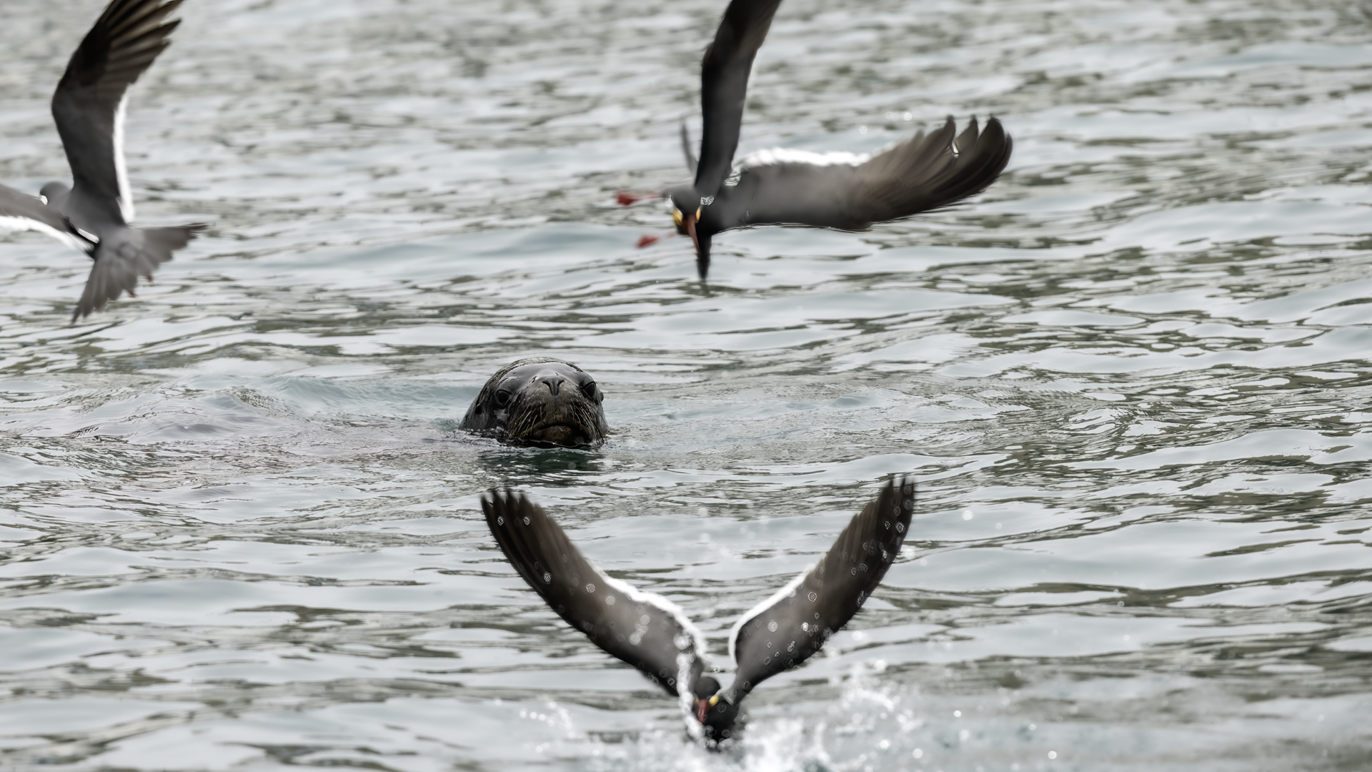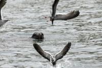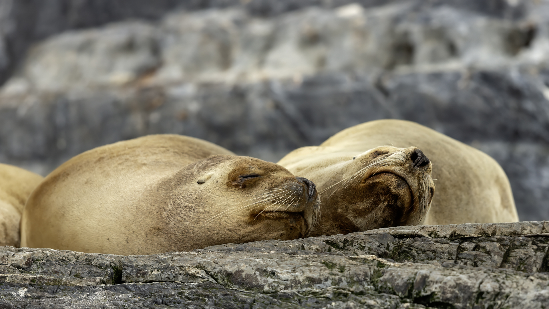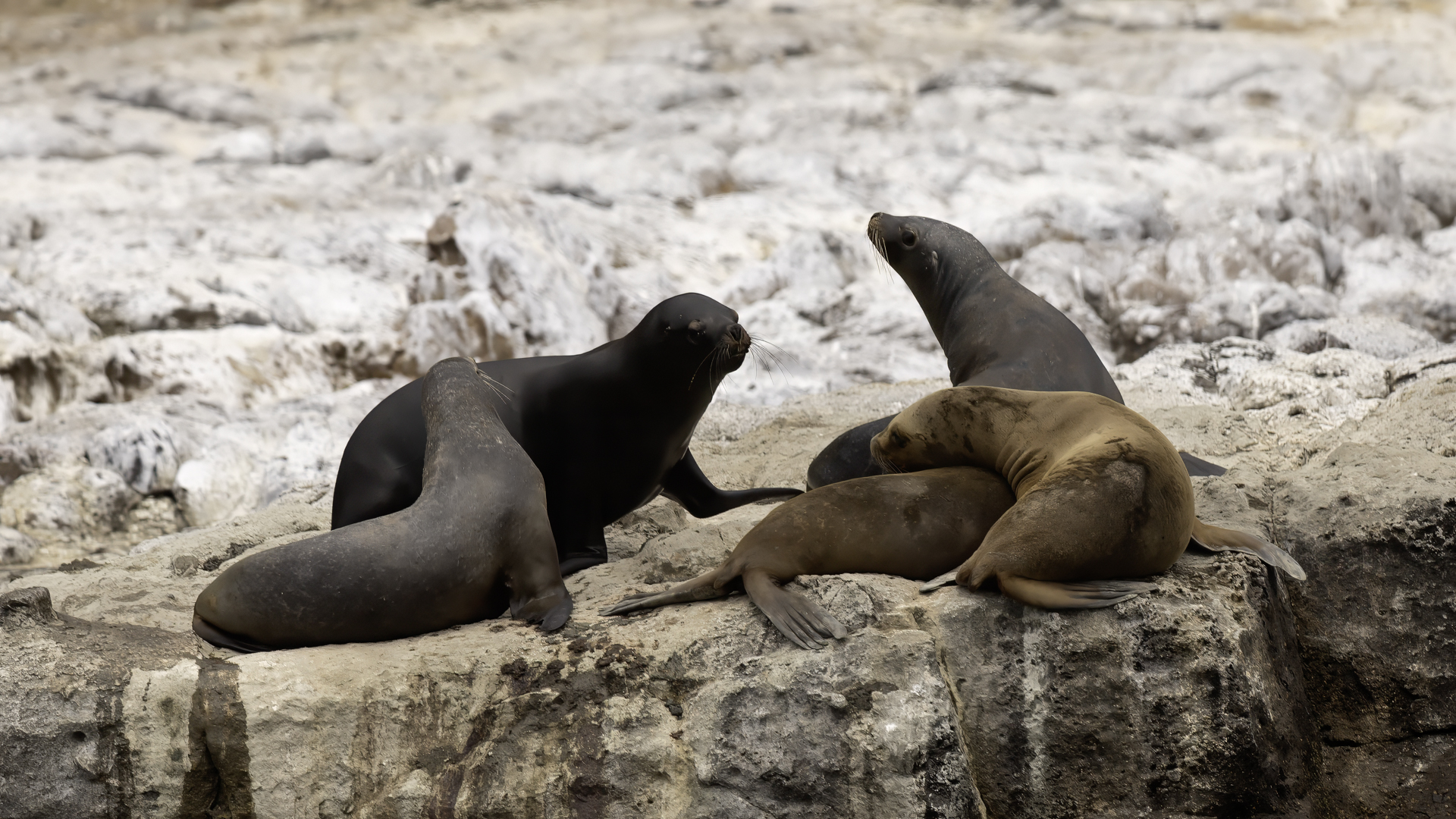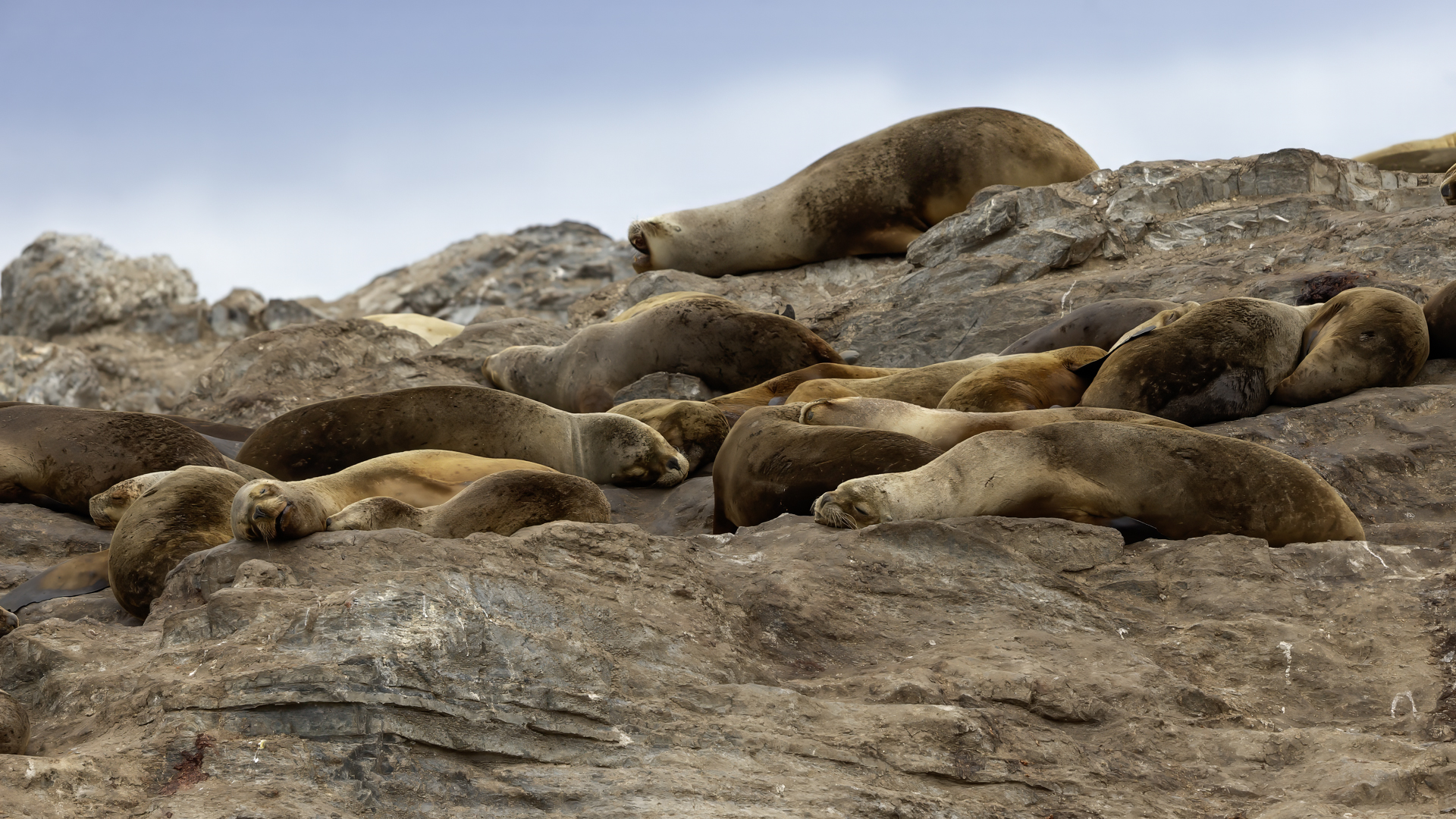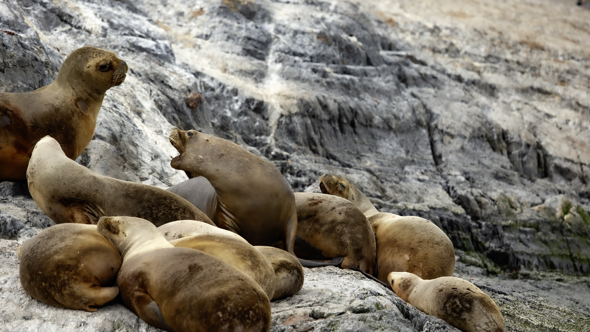 Uchatki patagońskie fotografowałem podczas krótkiego rejsu wokół wysp leżących niedaleko Ushuaia. Chyba się trochę spóźniliśmy by być światkiem narodzin młodej uchatki. W każdym bądź razie "resztki" poporodowe były przedmiotem zainteresowania mewy magellańskiej i mewy południowej, które ostrożnie podchodziły do uchatki i jej dopiero co narodzonej pociechy. Samiec jest znacznie większy od samic i wyróżniał spośród dziesiątek uchatek wygrzewających się na skałach. Waga samców może osiągnąć 350 kilogramów i długości ciała 2,7 metra. Samice są znacznie mniejsze, bo osiągają wagę do 150 kilogramów i długości ciała do 2 metrów. Występują wzdłuż wybrzeży Argentyny, Urugwaju, południowej Brazylii, Chile, Peru i Ekwadoru.
