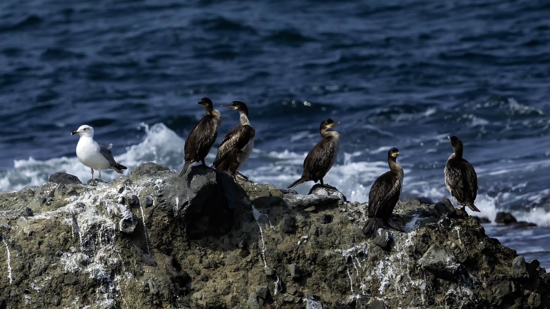 Fotografując w Nowej Zelandii kormorana białolicego nieopodal widać było kilka kormoranów zwyczajnych. Były znacznie mniej ufne od kormorana białolicego i w chwili, gdy zrozumiały, że powoli zbliżam się do nich, poderwały się do lotu. Tak więc, galeria nie jest zasilona w jakieś ciekawe ujęcia, ale ciekawym jest, że te ptaki, które można spotkać w Polsce także i tu, „na końcu świata” można spotkać. Wszystkich Nowozeladczyków przepraszam, za ten koniec świata, ale z Europejskiej perspektywy, tak właśnie to wygląda.