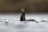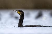 Spotkań z kormoranami było już wiele, ale te zrobione w styczniu 2022 roku wprowadzają urozmaicenie galerii. Kormoran złowił rybę i przez dłuższy czas sprawdzał, czy go jest w stanie przełknąć. Męczył ją długo, po czym ją wypuścił. Czy przeżyła? nie wiem, kormoran na pewno jej nie zjadł.