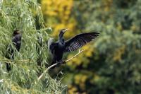 Podczas niedzielnego spaceru szukałem tematów fotograficznych na pierwszy konkurs fotograficzny mojej córki. Wybraliśmy się do Nowego Zoo w Poznaniu na Malcie, gdzie liczyłem na sfotografowanie ptactwa wodnego i „parkowych” ptaków, które mimo, że dzikie, dadzą się tam łatwiej sfotografować. Tak, jak pisałem we wstępie do strony, zamieszczam wyłącznie zdjęcia dzikich zwierząt. Jeżeli zamieściłem zdjęcia zwierząt w niewoli, to jest to wyraźnie wyartykułowane. Nie ukrywam mojego zaskoczenia, gdy zobaczyłem na dużym zbiorniku kolonię dzikich kormoranów. W oddali dało się też zaobserwować stojące przy brzegu czaple siwe. Towarzystwo pelikanów w niczym im nie przeszkadzało. Widać wielkość zbiornika, oddalenie zwiedzających, spowodowało iż kormorany zasiedliły „wybieg” dla pelikanów. Stąd też pochodzi moje nagranie dźwięków kolonii kormoranów. Niczym nie skrępowane kormorany przelatywały swobodnie pomiędzy zbiornikami, co jakiś czas przekomarzając się o zajęcie lepszego miejsca na drzewach, które są chyba nadmiernie przez nie eksploatowane. Polecam to miejsce, bo w takiej ilości, z tak niewielkiej odległości obserwowanie dzikich kormoranów jest rzadkością w Polsce. Fotografując pojedyncze kormorany na stawach hodowlanych, nie dało się zmniejszyć odległości, aby wykonać ciekawe zdjęcia. Tylko czatownia była sposobem na wykonanie zdjęć. A tu proszę taaaaka niespodzianka podczas niedzielnego spaceru. Pierwszymi fotograficznymi zdobyczami córki w tym dniu były sójka, kowalik i sikora bogatka. Mysikróliki okazały się za szybkie do za wolno pracującego autofocusa Lumixa. Wykonane moje zdjęcia znacznie zmieniły zawartość galerii kormoranów i nagranie własnego dźwięku tego ptaka. Zmian jest na tyle dużo, że mimo iż nie jest to nowy gatunek, trafił do nowości mojej strony.