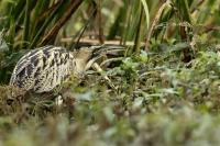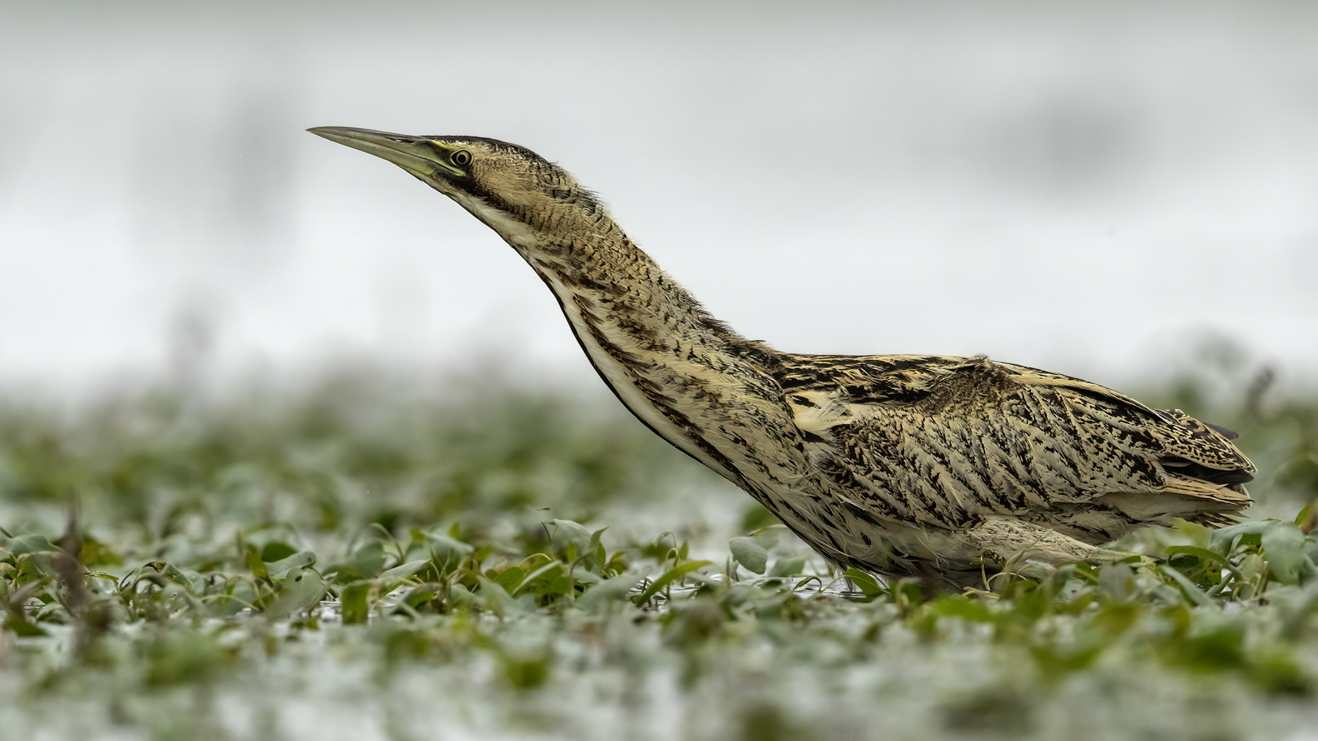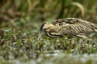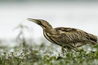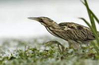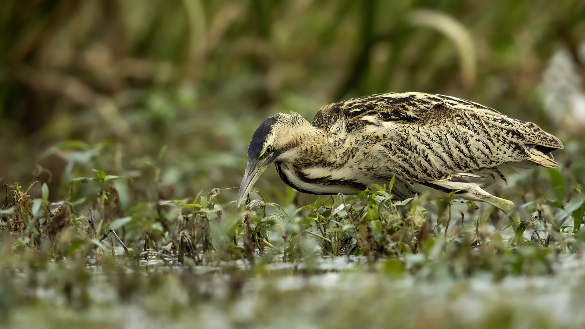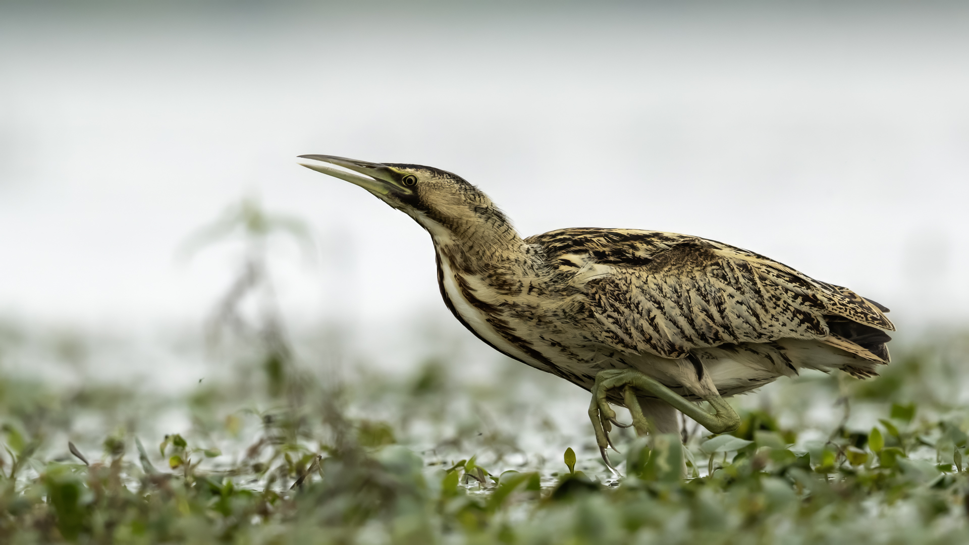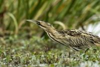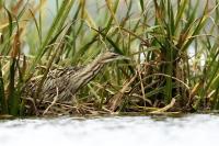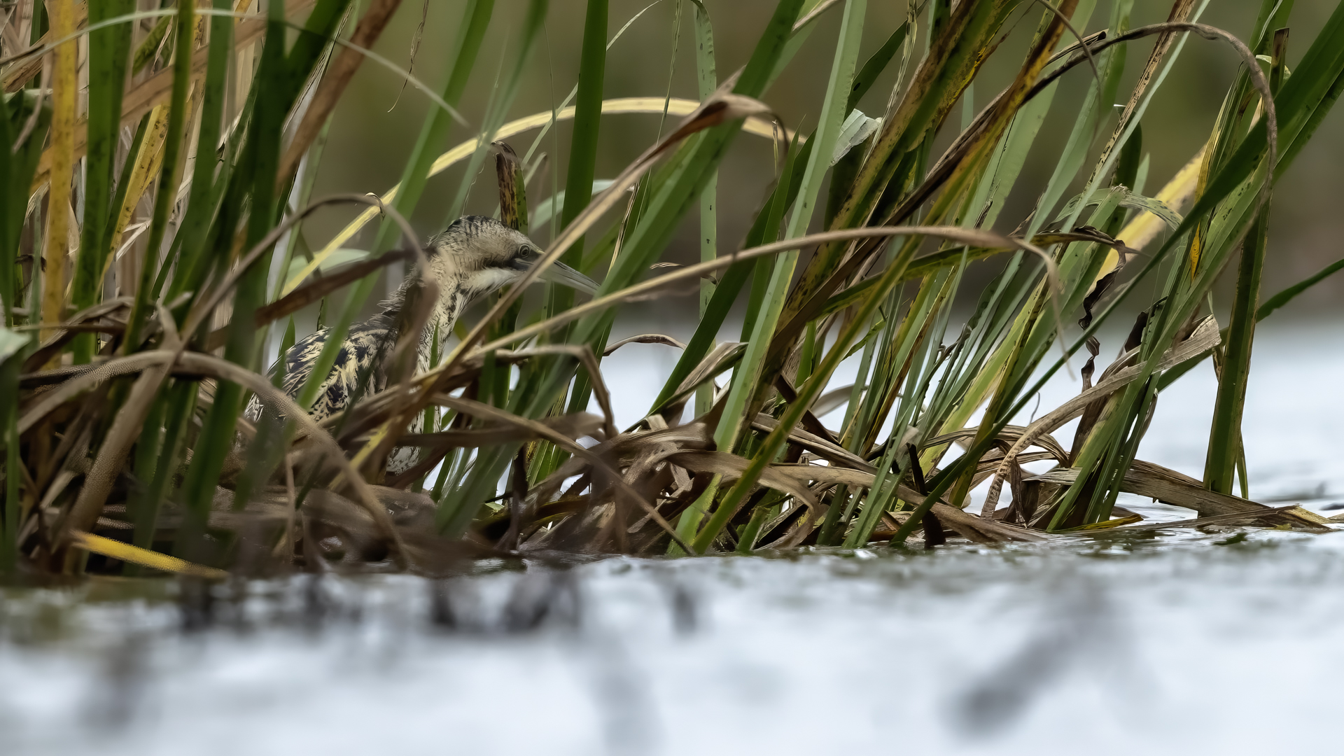 Tym razem wybraliśmy się z Haliną do czatowni właśnie na bąka. Był widziany w tej okolicy, co zwiększało prawdopodobieństwo do 2 %, że się uda :-)) . Ale jak się nie próbuje, to na pewno się nie sfotografuje. Kilka godzin wyczekiwania od świtu i nagle jest w pełnym kadrze przed naszymi obiektywami. Trudno pohamować emocje tak długo wyczekiwanego spotkania, ale Haliny ciśnienie osiągnęło swoje maksimum. Obserwowała go wcześniej ode mnie kilka minut, bo bąk usiadł pół metra od jej ściany czatowni i sprawdzał teren. Jakikolwiek ruch, odgłos wówczas i powiedziałbym, że znów było blisko. Tym razem się udało, choć majestatyczne przejście przed obiektywami trwało niespełna dwie minuty. Tylko i aż dwie minuty. Dwie minuty które pamiętać się będzie do końca życia, zmieniają dotychczasowy dokumentacyjną zawartość galerii no i taaaaaakie spotkanie musi być odnotowane w nowościach…