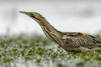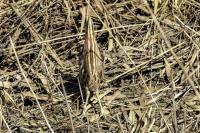 Kilka lat temu nagrałem głos bąka. Chyba najłatwiejsze z nagrań, jakie zrealizowałem. Z tym nie było problemu. Głos bąka jest tak donośny, tak charakterystyczny, że nie sposób pomylić go z żadnym innym. Sprawa wygląda zupełnie inaczej, jeśli chcemy zrobić zdjęcia. Mało kto widzi latem te ptaki. Idealny kamuflaż i niedostępność terenów, na których przebywa powodują, że trudno go zobaczyć, nie mówiąc już o wykonaniu ciekawych zdjęć do galerii. Przez ostatnie lata kilkanaście razy podejmowałem próby znalezienia bąka, zwłaszcza w okresie zimowym. Zawsze były to próby nieudane. Aż wreszcie determinacja i wytrwałość zostały nagrodzone. Jak zwykle trochę bez przekonania, niejako z obowiązku, po zimowym fotografowaniu wróblaków poszedłem nad zamarznięte jezioro, do którego dopływał niewielki, niezamarznięty kanałek. Zabrałem lornetkę, ale nie wierząc, że możliwe jest znalezienie bąka, nie zabrałem aparatu. Przykucnąłem przy brzegu i sprawdzam trzcinowiska. Nagle przez lornetkę widzę go - stoi wyprostowany w trzcinowisku z przekonaniem, że jest niewidoczny dla otoczenia. I w dużym stopniu była to prawda, bo po powrocie z aparatem miałem już problem z ponownym zlokalizowaniem bąka. Jeszcze nigdy tak szybko nie dotarłem do samochodu i nigdy tak szybko nie zmontowałem zestawu do fotografowania. Po chwili wypatrywania  znajduję go – jest. Powstaje kilka zdjęć, ale ich nieciekawa perspektywa powoduje, że schodzę nieco dalej, niżej, ale kątem oka widzę, że już bąk powoli, bez pośpiechu znika w trzcinowiskach. Tak się skończyło pierwsze moje spotkanie z bąkiem. Mimo mrozu i kilku godzin spędzonych na fotografowaniu wróblaków w takich trudnych warunkach, nagle odczuwalna temperatura  podniosła się na tyle, że przemarznięcie przestało być dokuczliwe- to przecież spotkanie z bąkiem- wyczekiwane od lat, tak trudnym, nietuzinkowym gatunkiem ptaka! Galerię oczywiście trzeba założyć, bo może się okazać, że tych kilka zdjęć nie da się uzupełnić nowymi, ciekawszymi ujęciami. Czas pokaże. (03/2018).