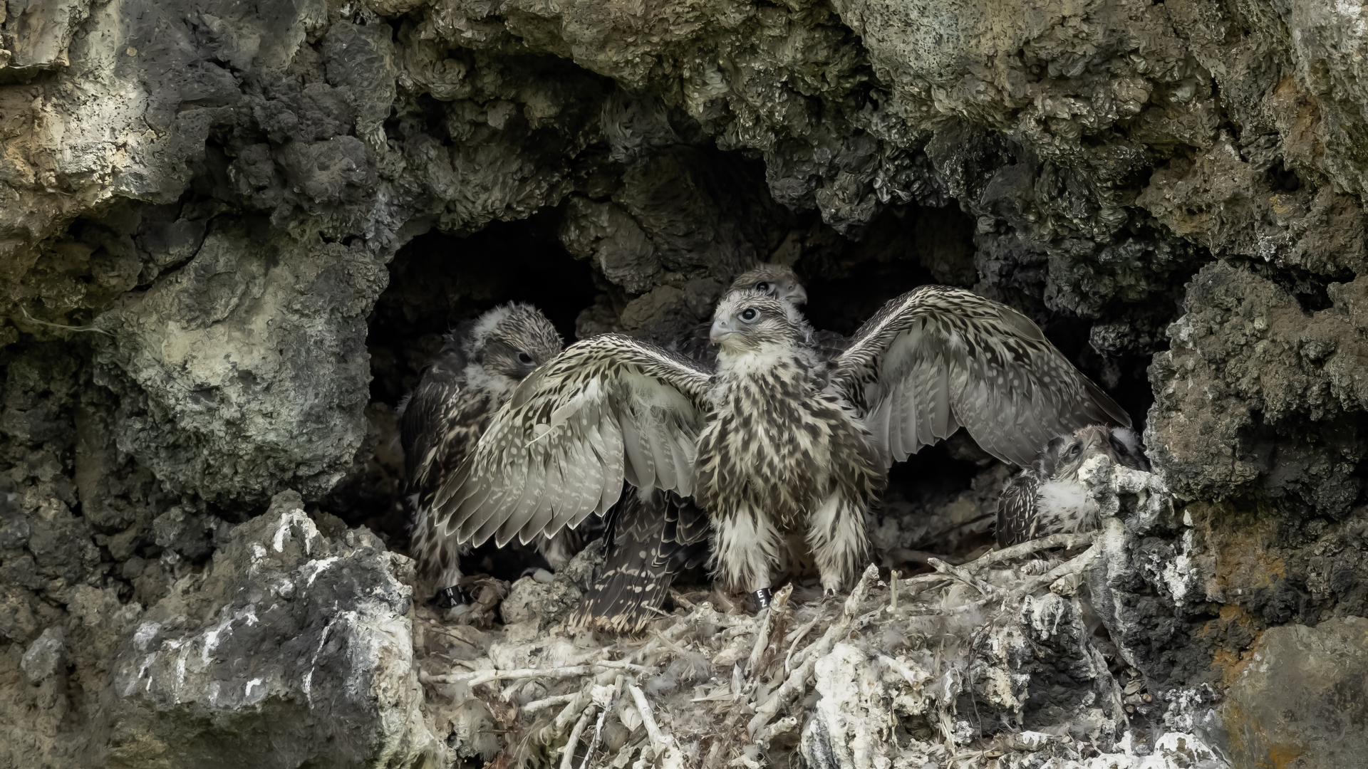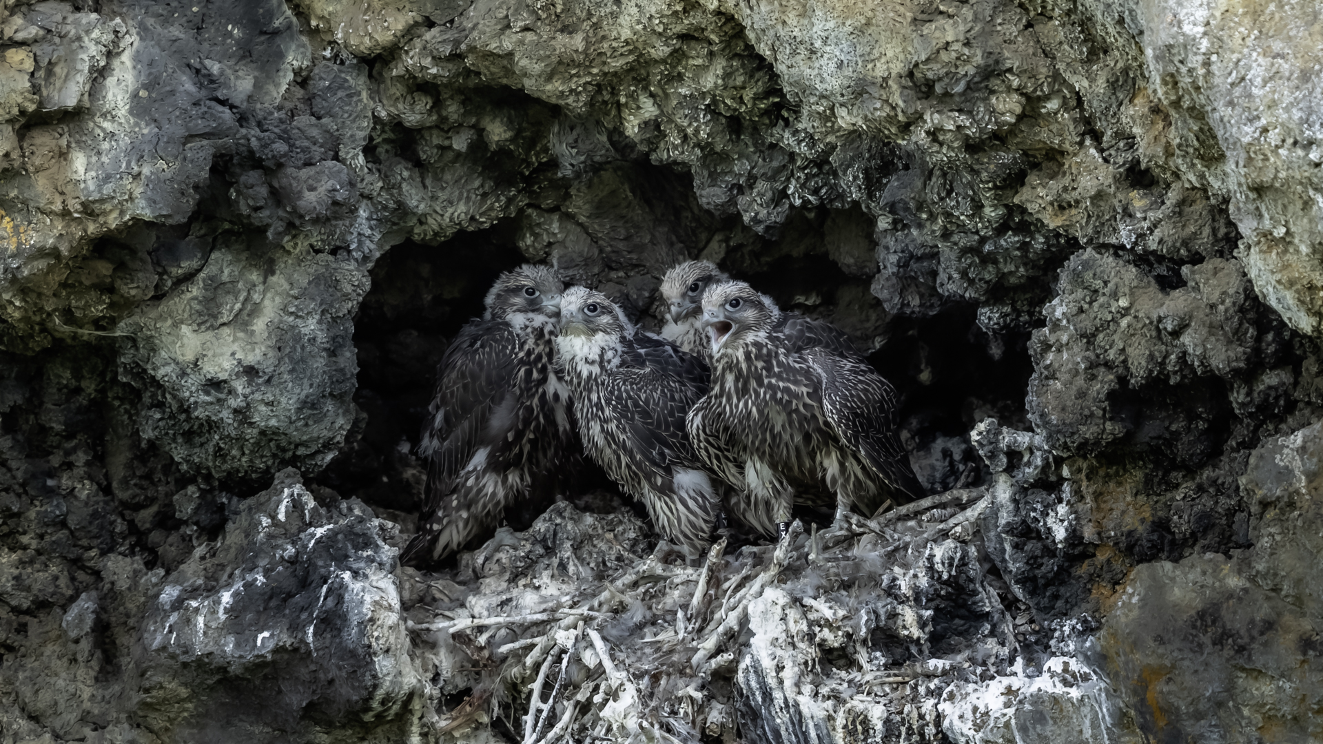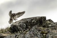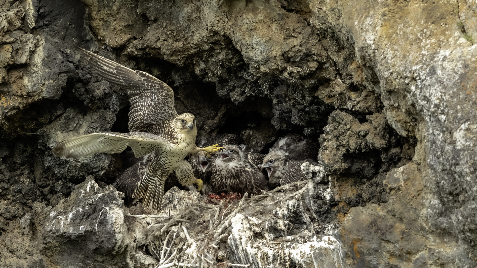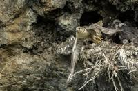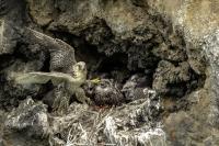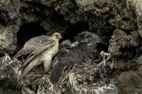 Mój pierwszy pobyt na Islandii cztery lata temu to istna fascynacja tym pięknym krajem, krajobrazami, wodospadami, bliskim kontaktem z przyrodą. I do tego Johann, który spokojnie, metodycznie odkrywał przede mną coraz to nowe ciekawe miejsca, gdzie można było fotografować ptaki. Jego wiedza o ptakach, nie tylko Islandii, jest wręcz przytłaczająca. Był to okres mojego “zaliczania” gatunków (to podejście z czasem zmieniło się w jakościowe). Wszystko to i fakt, że jedynie kilka dni mogłem poświęcić wówczas na wspólnie fotografowanie z Johannem, odbiło się niestety na jakości zdjęć. Moje podejście do fotografowania ewoluuje cały czas, a takie nastawienie na ilość w fotografowaniu to już przeszłość i teraz najważniejsza jest jakość, i to wybranych, interesujących mnie gatunków. I tak wreszcie po czterech latach nadszedł ten czas, aby znów się spotkać z Johannem i wspólnie fotografować. Tym razem scenariusz tego fotografowania był już starannie opracowany, a to z powodu naszych ambitnych planów sfotografowania białozora - największego sokoła świata. Jest kilka trudności do pokonania na Islandii, aby doprowadzić do spotkania z tym ptakiem i oczywiście - zrobić zdjęcia. Aby sfotografować sokoła, trzeba ulokować się przy gnieździe. Białozory są na Islandii pod ścisłą ochroną, a na świecie ten gatunek uznawany jest za zagrożony wyginięciem. Na takie fotografowanie białozora na Islandii trzeba uzyskać oficjalną zgodę, podobnie jak w Polsce w przypadku niektórych gatunków. Taką zgodę otrzymałem na 3 tygodnie przed wylotem na Islandię. Ale sam dokument nie zawierał załącznika z informacją, gdzie można sfotografować ptaki. A znalezienie ich na ponad 100 tysiącach kilometrów kwadratowych Islandii do łatwych zadań nie należy. Samo fotografowanie było tak zaplanowane, aby w okolicach gniazd pojawić się pod koniec okresu karmienia piskląt, które lada dzień mogły opuścić gniazdo. W pełni upierzonym pisklętom, samodzielnie pobierającym pokarm nie powinna stać się wówczas żadna krzywda. Jedynie kontakt z dorosłymi osobnikami jest wówczas znacznie ograniczony, bo rodzice pojawiają się co jakiś czas ze świeżą zdobyczą, podrzucając ją do gniazda, po czym wracają do polowania. Były trzy spotkania z białozorami. Pierwsze – w publicznym miejscu – w punkcie widokowym na wzgórzu. Dookoła urwiska skalne i dość niesprzyjająca pogoda, bo siąpił deszcz. Lornetki w ręce i wypatrujemy, czy na półkach skalnych nie pojawi się on - białozór. Kilkadziesiąt minut lustrowania okolicy nie przynosi efektu, a że byliśmy coraz bardziej przemoczeni - zrezygnowaliśmy i wracamy do samochodu. W tym czasie na niebie pojawia się sylwetka ptaka, który leci w naszym kierunku. Przeleciał w odległości kilkunastu metrów nad naszymi głowami. Sprawdzane przez nas miejsce nie było przypadkowe. Kiedyś białozory miały gniazdo w niedalekiej odległości od punktu widokowego licznie odwiedzanego teraz przez turystów. Tych zaś jest coraz więcej na Islandii, bo rocznie liczba turystów przekracza już dwa miliony. Może z tych powodów ptaki przenoszą się w bardziej odludne miejsca. Ptak, który nagle się pojawił, zanurkował w wąwozie nieopodal i zniknął. Obeszliśmy urwisko skalne, aby sprawdzić, czy nie usiadł gdzieś poniżej. Chwila wypatrywania i jest! Przysiadł w zadaszonym zagłębieniu skalnym, od deszczu przemoczony czyści swoje upierzenie. Powstają pierwsze moje zdjęcia białozora. Radość i emocje nie do opisania. Nikt bowiem, mimo dopełnienia wszelkich formalności prawnych i dotarcia do miejsc prawdopodobnego występowania tych ptaków, gwarancji nie może dać, że dojdzie do spotkania z białozorem. Następnego dnia wyprawa do gniazda białozora. Ponad półtora kilometra marszu ze sprzętem, namiotem maskującym i statywem, daje w kość, zwłaszcza że towarzyszyły nam tysiące muszek. Marsz po nierównym terenie z takim obciążeniem, to znaczny wysiłek. Ostatnie kilkaset metrów okazało się skrajnie wycieńczające. Białozory wykorzystały półkę skalną nad dużym potokiem. My podchodziliśmy jego drugim, urwistym brzegiem. Kolejna trudność, to ustawienie namiotu. Brak równej powierzchni sprawia, że ustawienie statywu i krzesła tak, aby nie zsunąć się w dół do potoku, a właściwie niewielkiej rzeki, i spędzenie w takich warunkach kilku godzin w oczekiwaniu na przylot dorosłego osobnika, to duże wyzwanie. Sprawdzamy w gnieździe – są cztery podrośnięte młode, które gdzieniegdzie mają jeszcze pióra puchowe. Niesamowity widok – kawałek dzikiej Islandii. Siadamy i czekamy. Już wiadomo, że nie będzie dynamicznych zdjęć białozorów. Namiot mocno zawęża pole widzenia i trzeba mieć niebywałe szczęście, aby zobaczyć nadlatującego ptaka. Tu z pomocą przyszły nam młode białozory. Normalnie siedziały spokojnie w gnieździe pożywiając się od czasu do czasu. Jedzenia miały pod dostatkiem, bo nie rywalizowały o nie. Po krótkim posiłku obowiązkowa drzemka. Gdy zamykają oczy, pojawiają się ich białe powieki i wyglądają, jakby zamiast oczu miały bielma. Po drzemce znów mały posiłek, ale też próby swych w pełni upierzonych skrzydeł, no i wypatrywanie na niebie sylwetek rodziców. Pojawienie się rodzica sygnalizuje charakterystyczny pisk młodych, niestety zagłuszony odgłosem rwącego potoku. Powstaje nagranie tego dźwięku. Mimo że nie widzieliśmy szybujących dorosłych ptaków, wiedzieliśmy, gdzie są. Cztery młode synchronicznie podążały za nim wzrokiem, a gdy zauważyły, że zbliża się i będzie lądować, intensywność ich głosu przybierała na sile. Wówczas pełna koncentracja, bo tylko w tych kilku sekundach można zrobić ciekawe ujęcia. Dorosły osobnik wrzucał nadjedzone resztki zdobyczy i odlatywał. Z relacji osób zajmujących się białozorami wynika, że rok 2018 jes