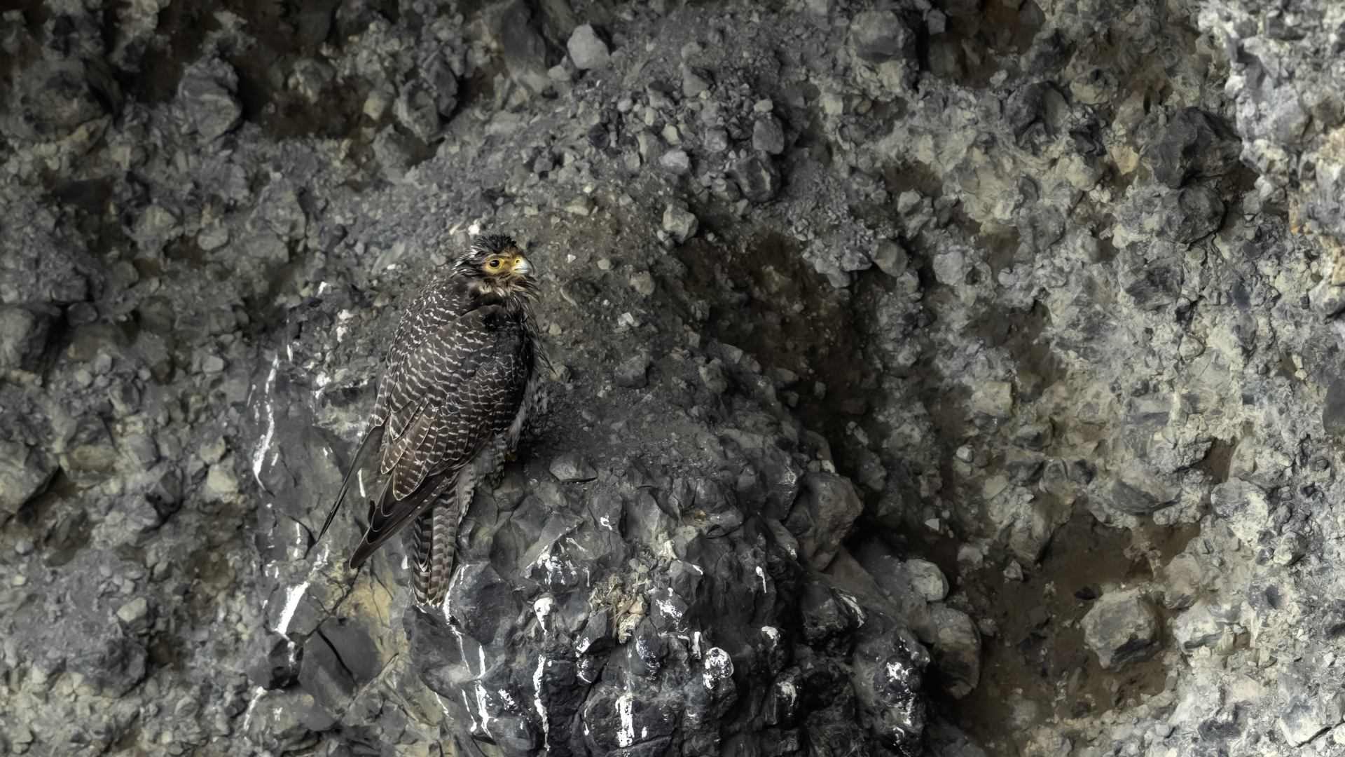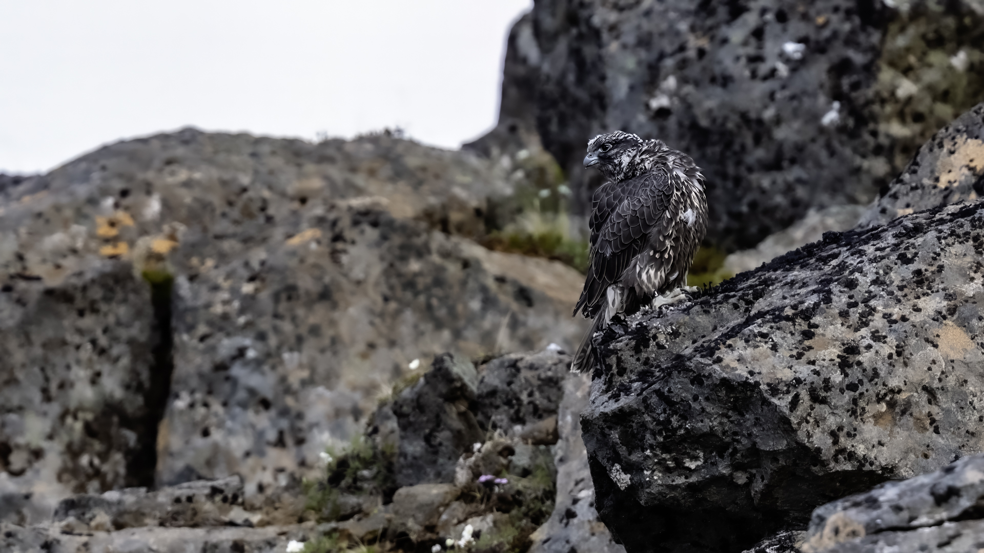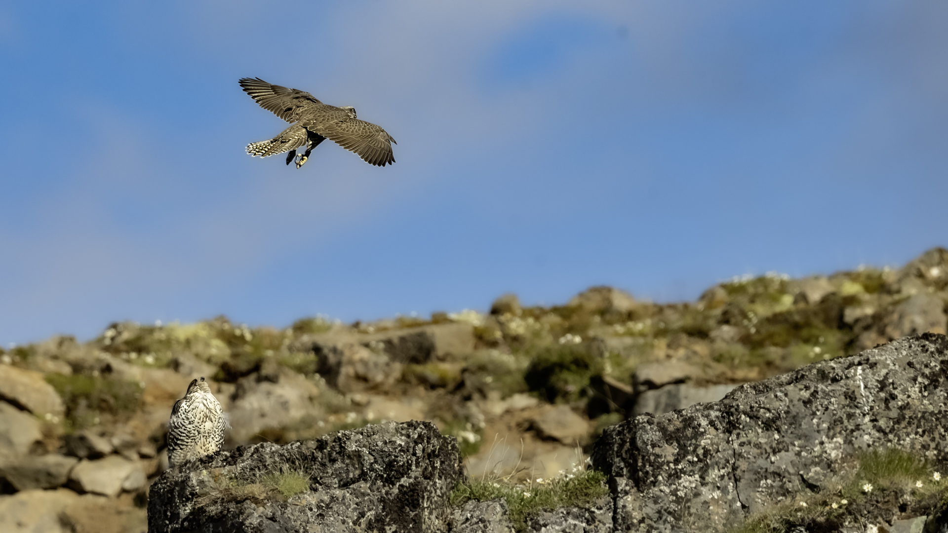 Mój pierwszy pobyt na Islandii cztery lata temu to istna fascynacja tym pięknym krajem, krajobrazami, wodospadami, bliskim kontaktem z przyrodą. I do tego Johann, który spokojnie, metodycznie odkrywał przede mną coraz to nowe ciekawe miejsca, gdzie można było fotografować ptaki. Jego wiedza o ptakach, nie tylko Islandii, jest wręcz przytłaczająca. Był to okres mojego “zaliczania” gatunków (to podejście z czasem zmieniło się w jakościowe). Wszystko to i fakt, że jedynie kilka dni mogłem poświęcić wówczas na wspólnie fotografowanie z Johannem, odbiło się niestety na jakości zdjęć. Moje podejście do fotografowania ewoluuje cały czas, a takie nastawienie na ilość w fotografowaniu to już przeszłość i teraz najważniejsza jest jakość, i to wybranych, interesujących mnie gatunków. I tak wreszcie po czterech latach nadszedł ten czas, aby znów się spotkać z Johannem i wspólnie fotografować. Tym razem scenariusz tego fotografowania był już starannie opracowany, a to z powodu naszych ambitnych planów sfotografowania białozora - największego sokoła świata. Jest kilka trudności do pokonania na Islandii, aby doprowadzić do spotkania z tym ptakiem i oczywiście - zrobić zdjęcia. Aby sfotografować sokoła, trzeba ulokować się przy gnieździe. Białozory są na Islandii pod ścisłą ochroną, a na świecie ten gatunek uznawany jest za zagrożony wyginięciem. Na takie fotografowanie białozora na Islandii trzeba uzyskać oficjalną zgodę, podobnie jak w Polsce w przypadku niektórych gatunków. Taką zgodę otrzymałem na 3 tygodnie przed wylotem na Islandię. Ale sam dokument nie zawierał załącznika z informacją, gdzie można sfotografować ptaki. A znalezienie ich na ponad 100 tysiącach kilometrów kwadratowych Islandii do łatwych zadań nie należy. Samo fotografowanie było tak zaplanowane, aby w okolicach gniazd pojawić się pod koniec okresu karmienia piskląt, które lada dzień mogły opuścić gniazdo. W pełni upierzonym pisklętom, samodzielnie pobierającym pokarm nie powinna stać się wówczas żadna krzywda. Jedynie kontakt z dorosłymi osobnikami jest wówczas znacznie ograniczony, bo rodzice pojawiają się co jakiś czas ze świeżą zdobyczą, podrzucając ją do gniazda, po czym wracają do polowania. Były trzy spotkania z białozorami. Pierwsze – w publicznym miejscu – w punkcie widokowym na wzgórzu. Dookoła urwiska skalne i dość niesprzyjająca pogoda, bo siąpił deszcz. Lornetki w ręce i wypatrujemy, czy na półkach skalnych nie pojawi się on - białozór. Kilkadziesiąt minut lustrowania okolicy nie przynosi efektu, a że byliśmy coraz bardziej przemoczeni - zrezygnowaliśmy i wracamy do samochodu. W tym czasie na niebie pojawia się sylwetka ptaka, który leci w naszym kierunku. Przeleciał w odległości kilkunastu metrów nad naszymi głowami. Sprawdzane przez nas miejsce nie było przypadkowe. Kiedyś białozory miały gniazdo w niedalekiej odległości od punktu widokowego licznie odwiedzanego teraz przez turystów. Tych zaś jest coraz więcej na Islandii, bo rocznie liczba turystów przekracza już dwa miliony. Może z tych powodów ptaki przenoszą się w bardziej odludne miejsca. Ptak, który nagle się pojawił, zanurkował w wąwozie nieopodal i zniknął. Obeszliśmy urwisko skalne, aby sprawdzić, czy nie usiadł gdzieś poniżej. Chwila wypatrywania i jest! Przysiadł w zadaszonym zagłębieniu skalnym, od deszczu przemoczony czyści swoje upierzenie. Powstają pierwsze moje zdjęcia białozora. Radość i emocje nie do opisania. Nikt bowiem, mimo dopełnienia wszelkich formalności prawnych i dotarcia do miejsc prawdopodobnego występowania tych ptaków, gwarancji nie może dać, że dojdzie do spotkania z białozorem. Następnego dnia wyprawa do gniazda białozora. Ponad półtora kilometra marszu ze sprzętem, namiotem maskującym i statywem, daje w kość, zwłaszcza że towarzyszyły nam tysiące muszek. Marsz po nierównym terenie z takim obciążeniem, to znaczny wysiłek. Ostatnie kilkaset metrów okazało się skrajnie wycieńczające. Białozory wykorzystały półkę skalną nad dużym potokiem. My podchodziliśmy jego drugim, urwistym brzegiem. Kolejna trudność, to ustawienie namiotu. Brak równej powierzchni sprawia, że ustawienie statywu i krzesła tak, aby nie zsunąć się w dół do potoku, a właściwie niewielkiej rzeki, i spędzenie w takich warunkach kilku godzin w oczekiwaniu na przylot dorosłego osobnika, to duże wyzwanie. Sprawdzamy w gnieździe – są cztery podrośnięte młode, które gdzieniegdzie mają jeszcze pióra puchowe. Niesamowity widok – kawałek dzikiej Islandii. Siadamy i czekamy. Już wiadomo, że nie będzie dynamicznych zdjęć białozorów. Namiot mocno zawęża pole widzenia i trzeba mieć niebywałe szczęście, aby zobaczyć nadlatującego ptaka. Tu z pomocą przyszły nam młode białozory. Normalnie siedziały spokojnie w gnieździe pożywiając się od czasu do czasu. Jedzenia miały pod dostatkiem, bo nie rywalizowały o nie. Po krótkim posiłku obowiązkowa drzemka. Gdy zamykają oczy, pojawiają się ich białe powieki i wyglądają, jakby zamiast oczu miały bielma. Po drzemce znów mały posiłek, ale też próby swych w pełni upierzonych skrzydeł, no i wypatrywanie na niebie sylwetek rodziców. Pojawienie się rodzica sygnalizuje charakterystyczny pisk młodych, niestety zagłuszony odgłosem rwącego potoku. Powstaje nagranie tego dźwięku. Mimo że nie widzieliśmy szybujących dorosłych ptaków, wiedzieliśmy, gdzie są. Cztery młode synchronicznie podążały za nim wzrokiem, a gdy zauważyły, że zbliża się i będzie lądować, intensywność ich głosu przybierała na sile. Wówczas pełna koncentracja, bo tylko w tych kilku sekundach można zrobić ciekawe ujęcia. Dorosły osobnik wrzucał nadjedzone resztki zdobyczy i odlatywał. Z relacji osób zajmujących się białozorami wynika, że rok 2018 jes
