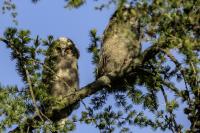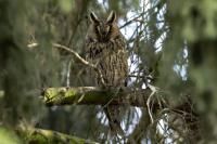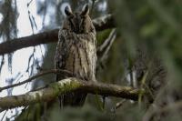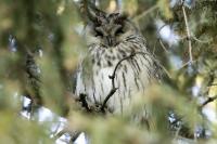 Wreszcie po kilku latach drugie moje spotkanie z uszatkami. Scenariusz powstania zdjęć bardzo podobny do tego sprzed lat. Tym razem podziękowania dla Roberta za podpowiedź, jakie współrzędne trzeba wpisać do nawigacji. I tak jak przed laty - zdziwienie przechodzących ludzi, widząc statywy i długie obiektywy: „co też oni tam fotografują?”. Podobno sów w tym miejscu widywano nawet kilkanaście. Nam udało się zaobserwować ich 5. Spotkanie z sowami zawsze jest niesamowite. Te wielkie rubinowe oczy spokojnie obserwujące nasze próby znalezienia miejsca, z którego da się zrobić zdjęcie bez kolizji z gałązkami. O to było najtrudniej. Sowy siedzące w wyższych partiach drzewa były w ogóle poza zasięgiem naszych obiektywów. Perspektywa nie taka jak trzeba i liczne gałązki powodowały, że tylko przez lornetkę widać było kontur ptaka. Ale należy stwierdzić mimo wszystko, że wyjazd trzeba zaliczyć do bardzo udanych. Galeria dotąd dokumentacyjna, dość monotonna zmieniła swą zawartość na tyle, że zmieniła status na dobrą. Ze starej galerii pozostało jedno zdjęcie. Takie spotkanie trzeba odnotować w nowościach - przecież to sowa, a nie kolejny wróblak!