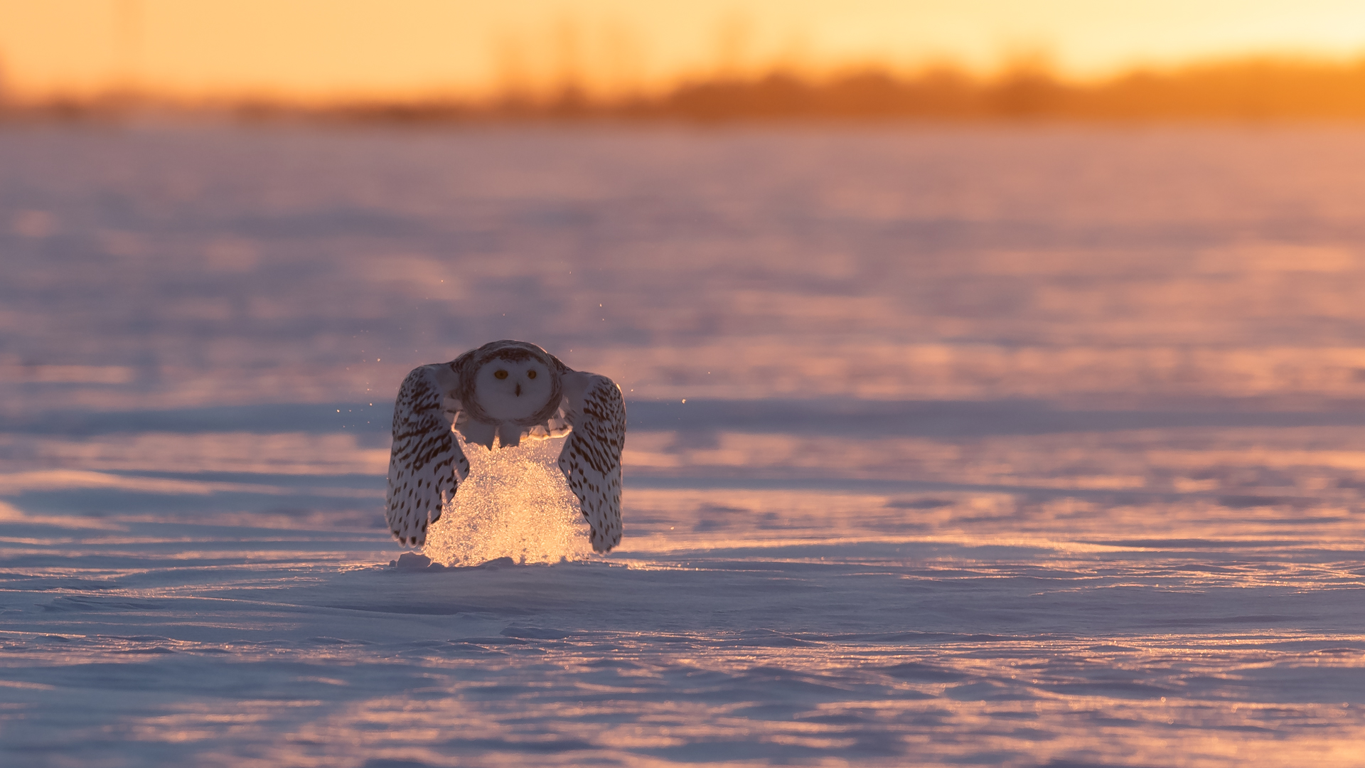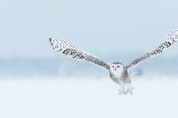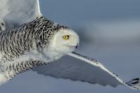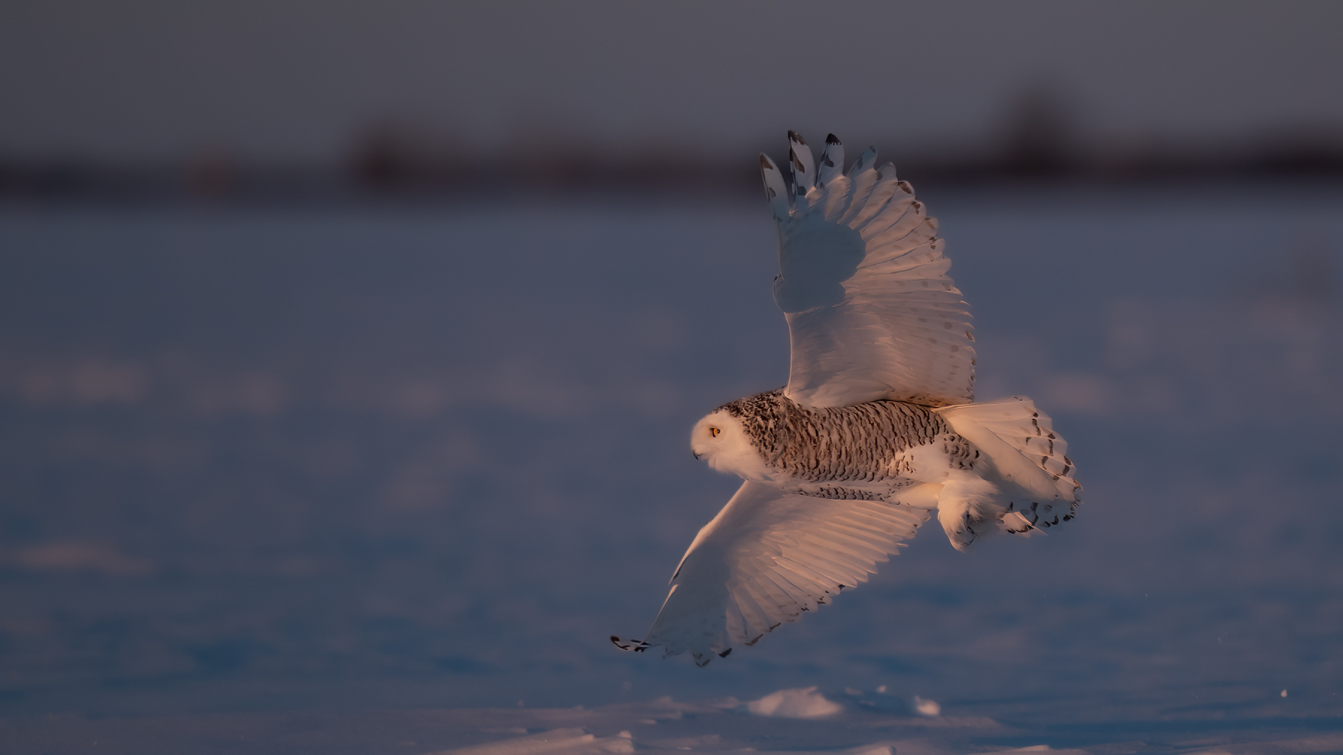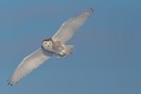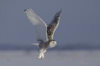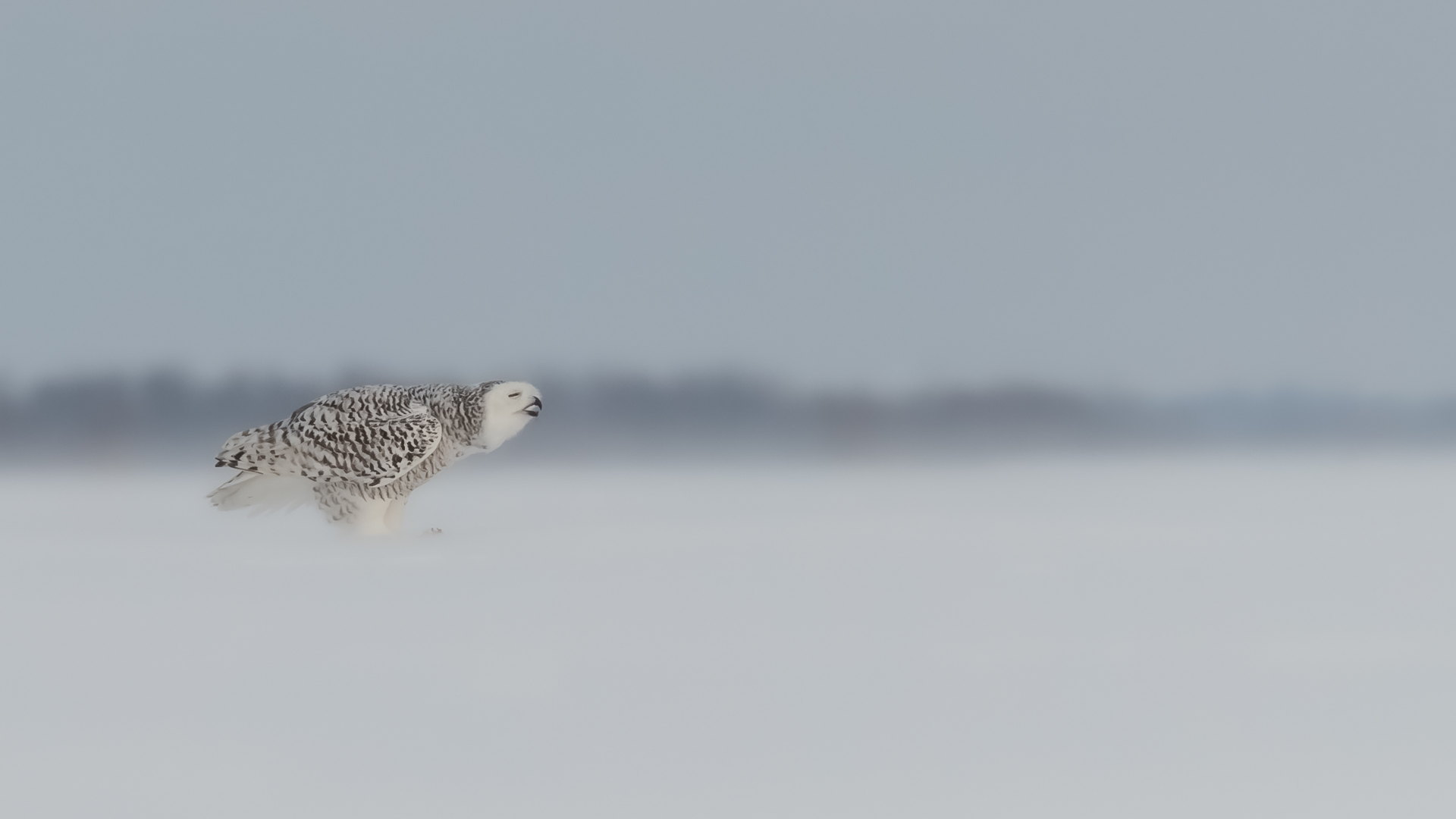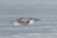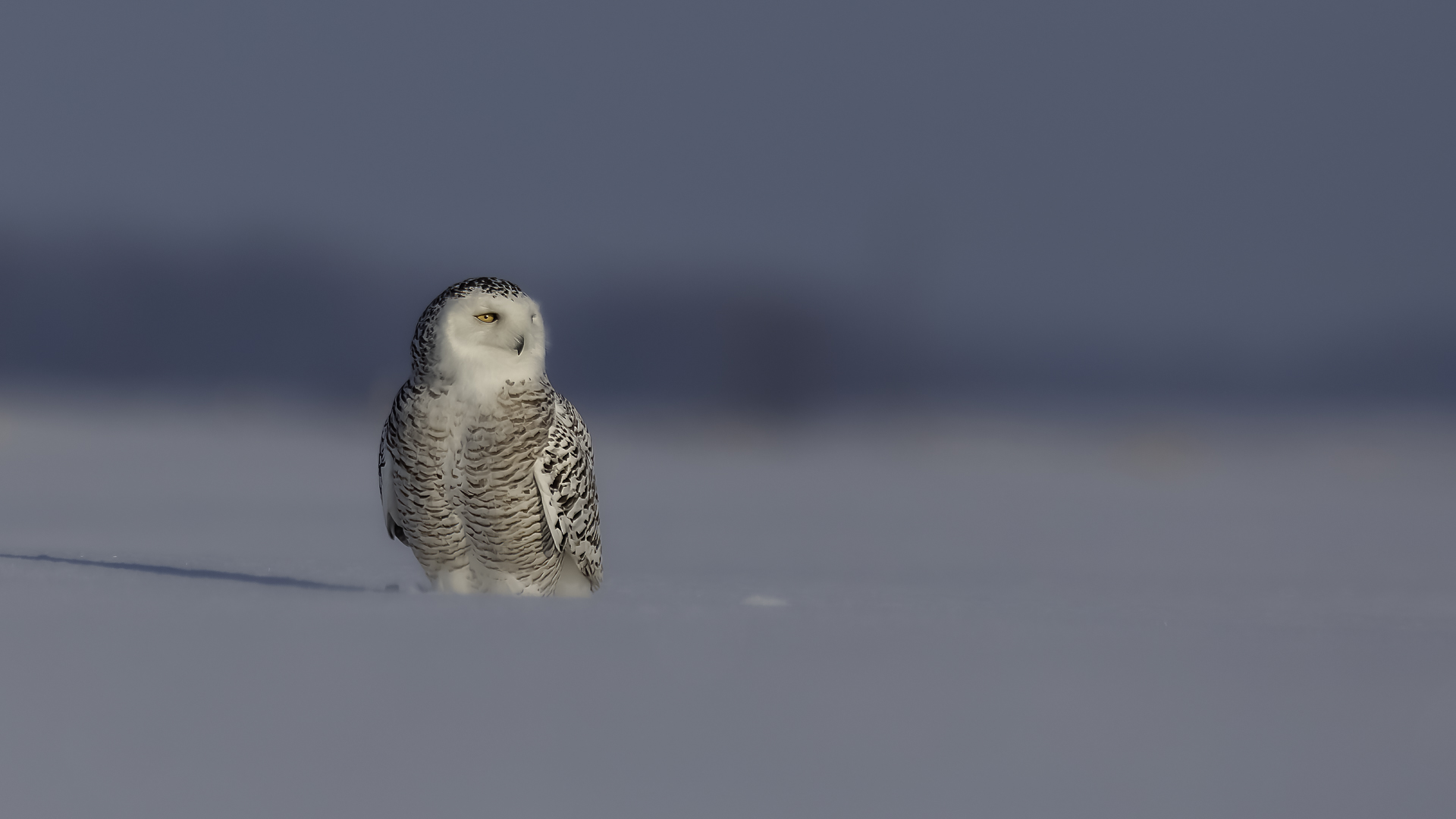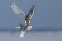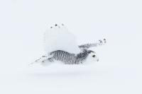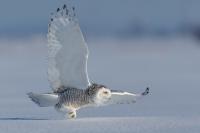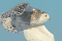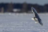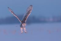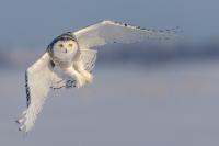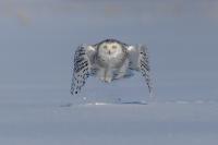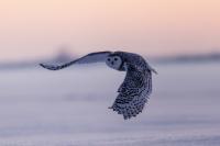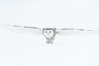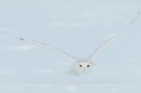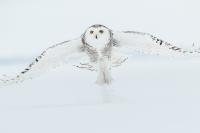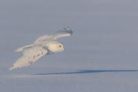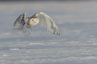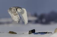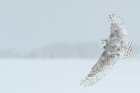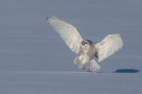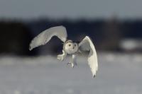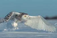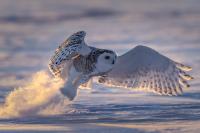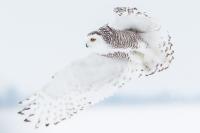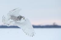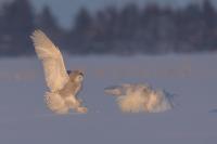 Wprawdzie fascynacja ptakami nie powinna dyskryminować, czy wyróżniać jakiś ptasich gatunków, to jednak każde spotkanie z sową, przynajmniej jak dla mnie, jest na swój sposób wyjątkowe, zapada na długo w pamięci. Do fauny Polski zaliczanych jest 13 gatunków sów. 12 z nich z różnym skutkiem jakościowym udało mi się już sfotografować. Długi czas zbierałem wiadomości o miejscach w których można sfotografować puchacza śnieżnego - ostatniego brakującego mi gatunku sowy z polskiej fauny. W Polsce obserwowany był kilkadziesiąt razy. Wszystkie zdobyte informacje o warsztatach fotograficznych z puchaczem śnieżnym kierowały mnie do Kanady. Z różnych powodów wyjazd był odkładany w czasie, aż wreszcie zapadła decyzja i ustaliliśmy z Michałem termin na - luty 2020 roku. Wyjazd okazał się ekstremalny nie tylko pod względem finansowym, ale także trudności samego fotografowania. Z 5 dni fotografowania 2 dni były bardzo trudne pod względem pogodowym. Raz doskwierała nam temperatura, bo było poniżej 30 stopni Celsjusza, drugi raz wprawdzie nie było mniej niż minus 10 stopni Celsjusza, ale wiał dość silny wiatr i był słaby opad śniegu lub występowała zamieć. W takich warunkach przebywanie kilka godzin na dworze daje ostro w kość, nie mówiąc już, że trudno jest nawet o zmianę obiektywu w obawie o zaśnieżenie całego wewnętrznego układu optycznego. Do tego trzeba było chodzić po polach na których zalegała 20-30 centymetrowa warstwa śniegu. Ale takie jest środowisko naturalne puchacza śnieżnego. Po trudach dotarcia na miejsce (opóźniony samolot, zagubienie bagażu, nieczynna już wypożyczalnia samochodów), spóźnieni docieramy na umówione miejsce o 5 rano, a o 6:15 zaplanowane było śniadanie organizacyjne, po którym mieliśmy mieć pierwsze spotkanie z puchaczem śnieżnym. Lata wyczekiwania na to spotkanie potęgują emocje, bo przecież mamy fotografować dzikie ptaki, więc ostatecznie nic nie jest zagwarantowane na 100%. Puchacze śnieżne należą do krótkodystansowych migrantów i po wychowaniu młodych zaczynają wędrówką na południe tak długo, aż nie napotkają na tereny, na którym występuje obfitość gryzoni, które umożliwią im przetrwanie zimy. Z tych też powodów coraz rzadziej jest widywana w Polsce. Wiek temu, gdy w Polsce występowały zimne, srogie zimy mówiono wręcz o nalotach puchaczy śnieżnych zimą w Polsce. Obecnie zdarza się, na skutek zmian klimatycznych, że w ogóle nie odnotowuje się obserwacji tych sów w Polsce. Mimo mrozu, wychodzimy na zewnątrz około 7 godziny, jest jeszcze dość ciemno, ale podekscytowani z nadzieją na to, że sowy będą i zrobimy pierwsze zdjęcia. Przed domem, zaadoptowanym na hotel dla gości fotograficznych sowich warsztatów, rośnie przydrożne drzewo, a na nim na szczycie siedzi pierwszy nasz puchacz śnieżny- Kacper. Kacper dlatego, że była to najbardziej biała sowa z sów występujących w okolicy. Tych sów jest podobno 7, ale poza Kacprem i jeszcze jedną sową, reszta zachowywała tak duży dystans, że nie powstały zdjęcia z tych spotkań. Niestety z Kacprem powstało też niewiele zdjęć, bo był przeganiany przez sowę, dzięki której w większości powstała moja galeria puchacza śnieżnego. Puchacze śnieżne są mocno terytorialne. Pojawienie się innego puchacza zawsze związane było agresywnym zachowaniem. Tylko w takiej sytuacji można było usłyszeć głos puchacza. W ciągu 5 dni było to tylko 3 razy. Nie powstało nagranie z uwagi na krótki okres odzywania się ptaków i brak możliwości w mrozie posiadania „pod ręka” zestawu do nagrywania. Po tych kilku dniach obcowania z ptakami fascynacja puchaczami śnieżnym jeszcze się spotęgowała. Mimo starannych przygotowań, wielowarstwowego ubrania się, po fotografowaniu trwającym niecałe 2 godziny w temperaturze poniżej 30 stopni, trzeba było przerwać i ogrzać się w samochodzie. Tymczasem puchacze zachowywały się jakby panowała dodatnia temperatura. Siedziały na przydrożnych słupach, silosach, aby mieć dobrą pozycję do wypatrywania gryzoni. Ich zmysły są niesamowite. Z kilkuset metrów potrafią zobaczyć białą mysz na śniegu, bezszelestnie nadlecieć i upolować gryzonia. Robią tak także w wietrzne dni. Sowy były aktywne o wschodzie słońca i dwie godziny przed zachodem słońca. Z reguły, bo dwa dni było na tyle kiepsko w możliwości powstania dobrych zdjęć, że postanowiliśmy odpuścić i poszukać innych ptaków. Niestety poszukiwania puszczyka mszarnego i sowy jarzębatej zakończyły się fiaskiem. Poszukiwanie aktywnego karmnika zajęło nam pół dnia. Dość dziwne sformułowanie „aktywny karmnik”, ale adekwatne do sytuacji. Widywaliśmy wiele karmników, ale z uwagi, że regularnie nie dosypywano tam ziarna nie było ptaków. A szkoda, bo praktycznie codziennie w przerwie pomiędzy porannym fotografowaniem, a popołudniowym można by było fotografować ciekawe, piękne gatunki występujące w Ameryce Północnej. Zrobiliśmy kilka zdjęć nowych gatunków, ale niewykorzystanych możliwości czasowych było sporo i dlatego tak niewiele powstało zdjęć, poza puchaczem śnieżnym.