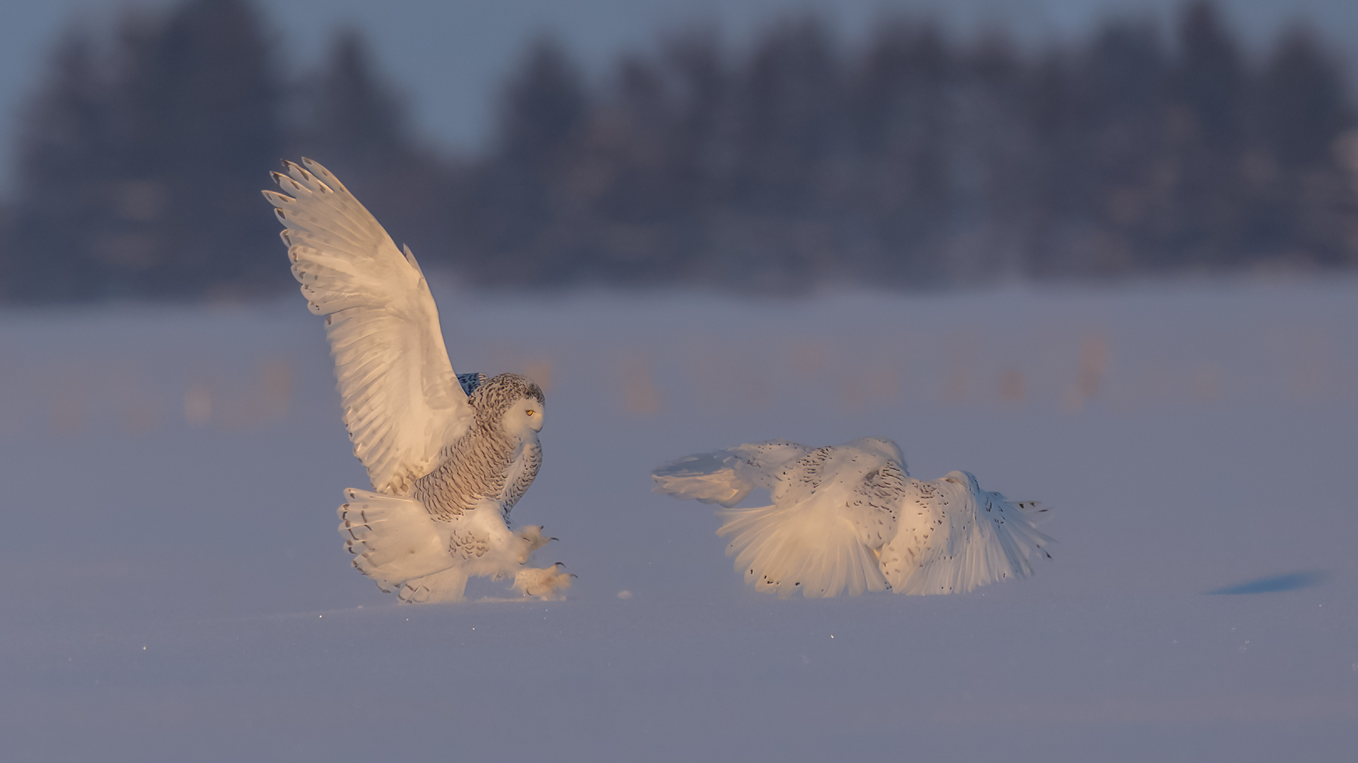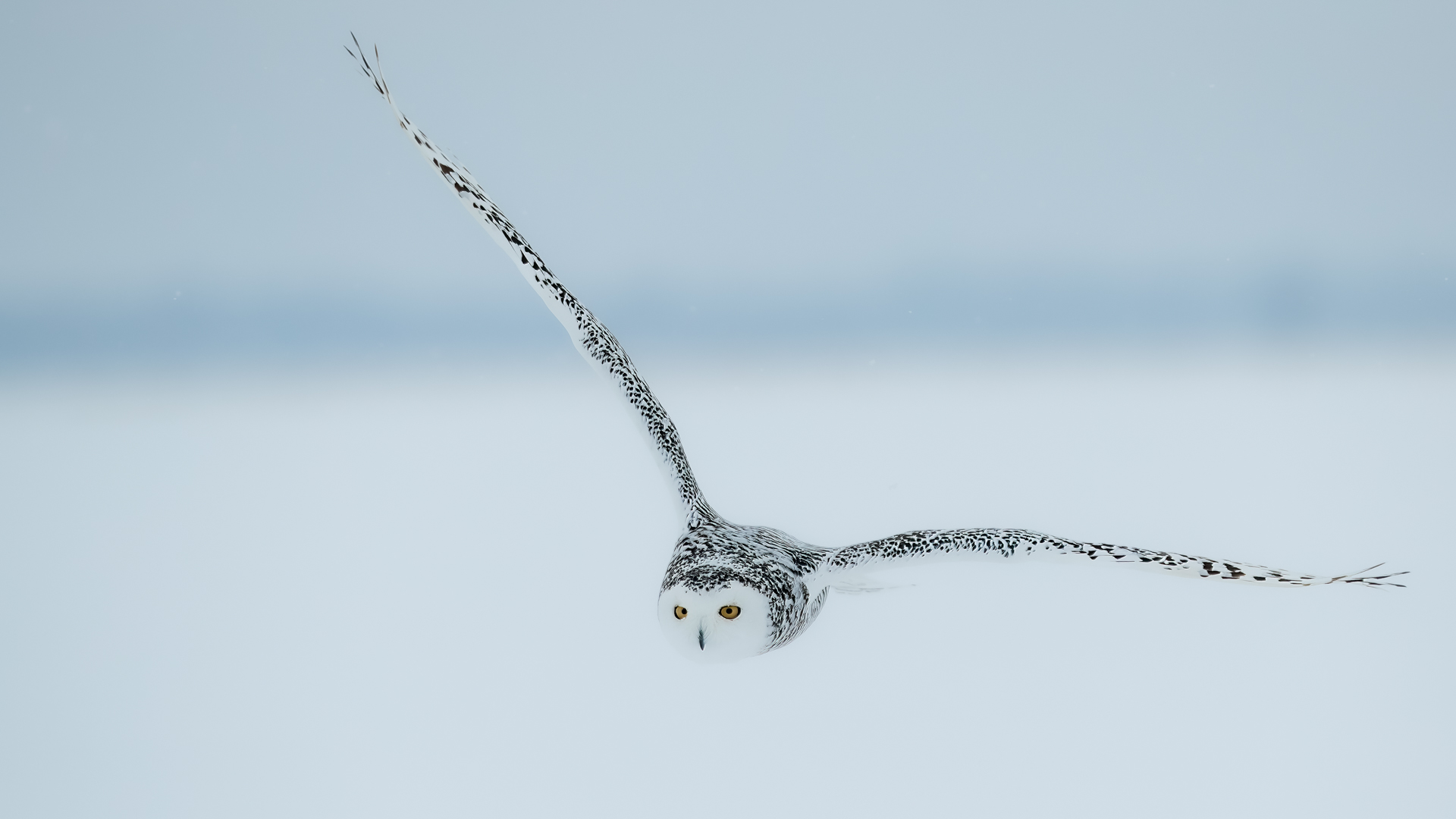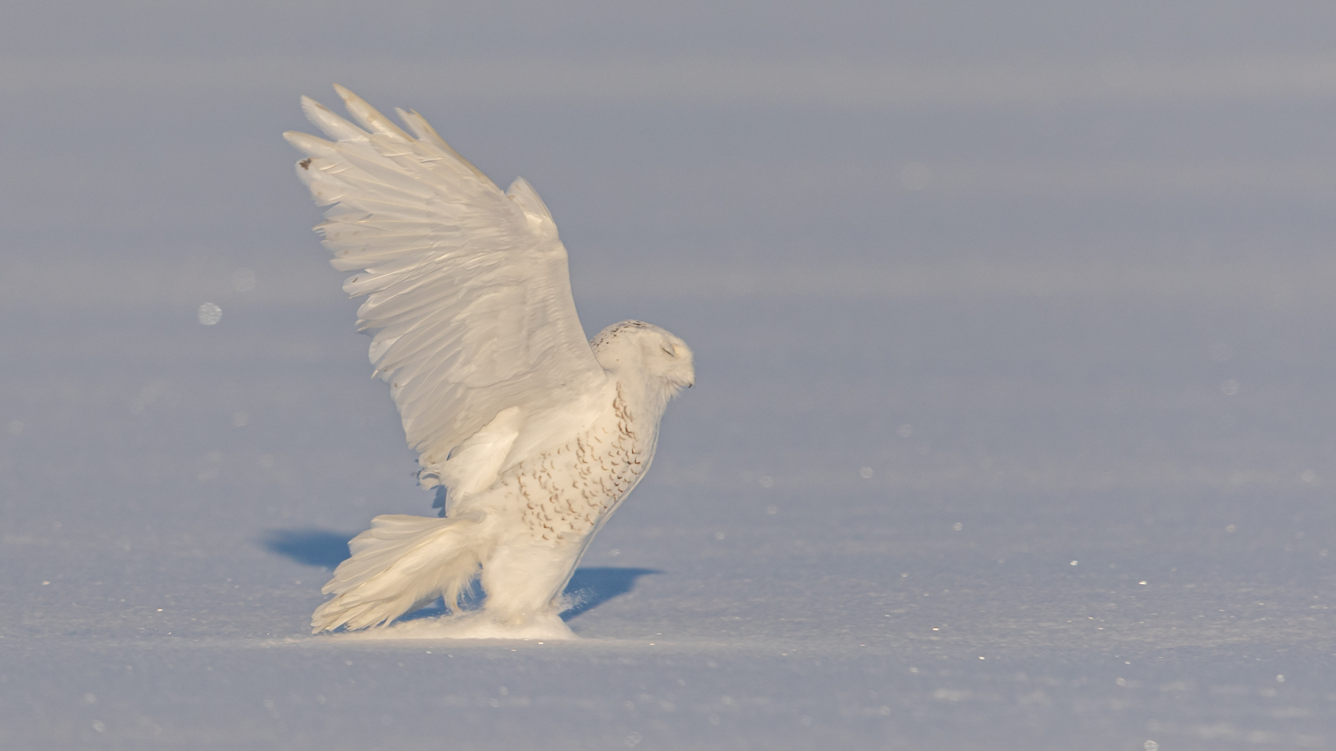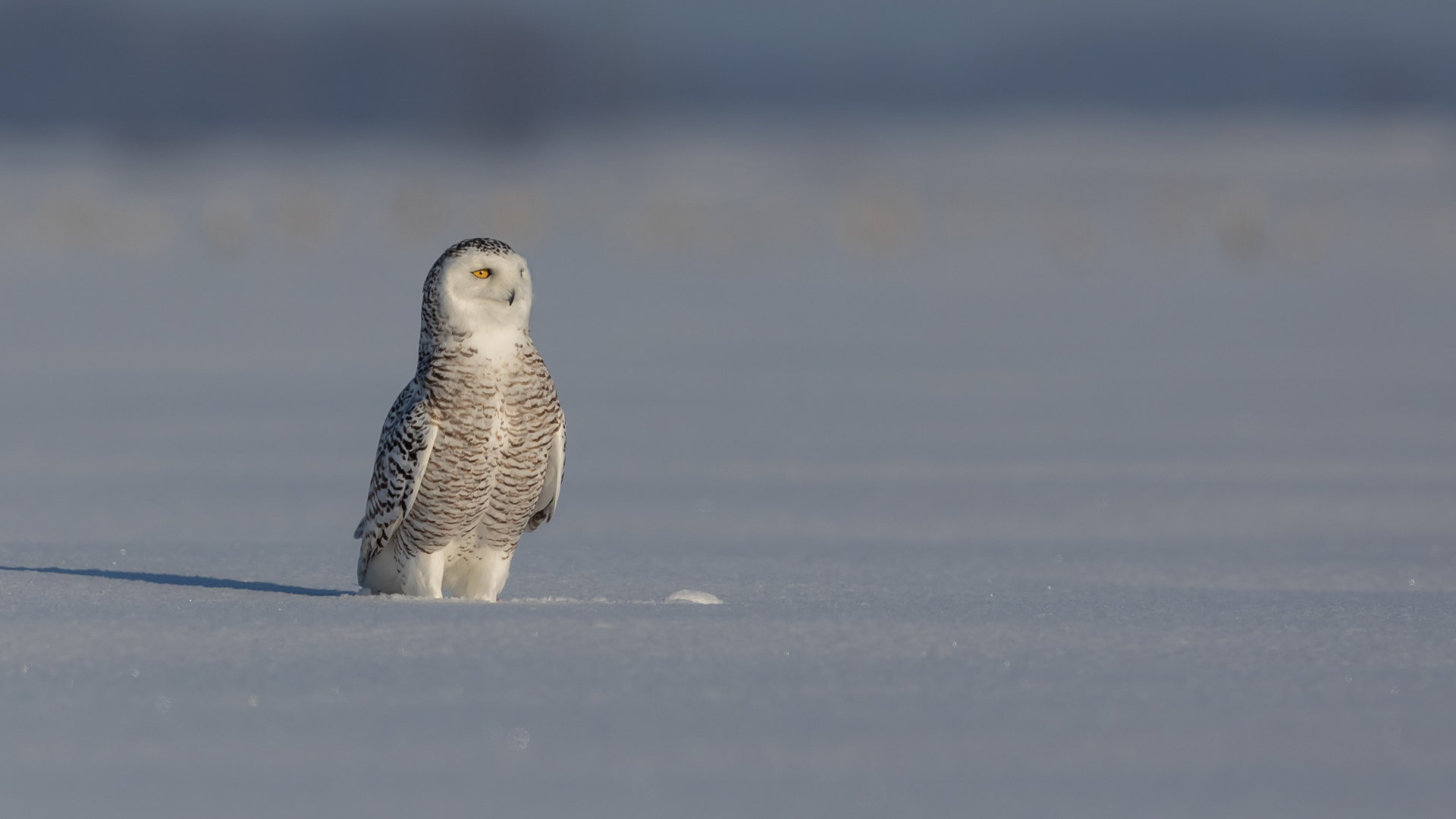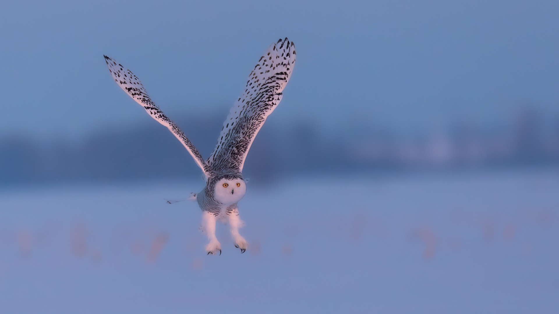 Wprawdzie fascynacja ptakami nie powinna dyskryminować, czy wyróżniać jakiś ptasich gatunków, to jednak każde spotkanie z sową, przynajmniej jak dla mnie, jest na swój sposób wyjątkowe, zapada na długo w pamięci. Do fauny Polski zaliczanych jest 13 gatunków sów. 12 z nich z różnym skutkiem jakościowym udało mi się już sfotografować. Długi czas zbierałem wiadomości o miejscach w których można sfotografować puchacza śnieżnego - ostatniego brakującego mi gatunku sowy z polskiej fauny. W Polsce obserwowany był kilkadziesiąt razy. Wszystkie zdobyte informacje o warsztatach fotograficznych z puchaczem śnieżnym kierowały mnie do Kanady. Z różnych powodów wyjazd był odkładany w czasie, aż wreszcie zapadła decyzja i ustaliliśmy z Michałem termin na - luty 2020 roku. Wyjazd okazał się ekstremalny nie tylko pod względem finansowym, ale także trudności samego fotografowania. Z 5 dni fotografowania 2 dni były bardzo trudne pod względem pogodowym. Raz doskwierała nam temperatura, bo było poniżej 30 stopni Celsjusza, drugi raz wprawdzie nie było mniej niż minus 10 stopni Celsjusza, ale wiał dość silny wiatr i był słaby opad śniegu lub występowała zamieć. W takich warunkach przebywanie kilka godzin na dworze daje ostro w kość, nie mówiąc już, że trudno jest nawet o zmianę obiektywu w obawie o zaśnieżenie całego wewnętrznego układu optycznego. Do tego trzeba było chodzić po polach na których zalegała 20-30 centymetrowa warstwa śniegu. Ale takie jest środowisko naturalne puchacza śnieżnego. Po trudach dotarcia na miejsce (opóźniony samolot, zagubienie bagażu, nieczynna już wypożyczalnia samochodów), spóźnieni docieramy na umówione miejsce o 5 rano, a o 6:15 zaplanowane było śniadanie organizacyjne, po którym mieliśmy mieć pierwsze spotkanie z puchaczem śnieżnym. Lata wyczekiwania na to spotkanie potęgują emocje, bo przecież mamy fotografować dzikie ptaki, więc ostatecznie nic nie jest zagwarantowane na 100%. Puchacze śnieżne należą do krótkodystansowych migrantów i po wychowaniu młodych zaczynają wędrówką na południe tak długo, aż nie napotkają na tereny, na którym występuje obfitość gryzoni, które umożliwią im przetrwanie zimy. Z tych też powodów coraz rzadziej jest widywana w Polsce. Wiek temu, gdy w Polsce występowały zimne, srogie zimy mówiono wręcz o nalotach puchaczy śnieżnych zimą w Polsce. Obecnie zdarza się, na skutek zmian klimatycznych, że w ogóle nie odnotowuje się obserwacji tych sów w Polsce. Mimo mrozu, wychodzimy na zewnątrz około 7 godziny, jest jeszcze dość ciemno, ale podekscytowani z nadzieją na to, że sowy będą i zrobimy pierwsze zdjęcia. Przed domem, zaadoptowanym na hotel dla gości fotograficznych sowich warsztatów, rośnie przydrożne drzewo, a na nim na szczycie siedzi pierwszy nasz puchacz śnieżny- Kacper. Kacper dlatego, że była to najbardziej biała sowa z sów występujących w okolicy. Tych sów jest podobno 7, ale poza Kacprem i jeszcze jedną sową, reszta zachowywała tak duży dystans, że nie powstały zdjęcia z tych spotkań. Niestety z Kacprem powstało też niewiele zdjęć, bo był przeganiany przez sowę, dzięki której w większości powstała moja galeria puchacza śnieżnego. Puchacze śnieżne są mocno terytorialne. Pojawienie się innego puchacza zawsze związane było agresywnym zachowaniem. Tylko w takiej sytuacji można było usłyszeć głos puchacza. W ciągu 5 dni było to tylko 3 razy. Nie powstało nagranie z uwagi na krótki okres odzywania się ptaków i brak możliwości w mrozie posiadania „pod ręka” zestawu do nagrywania. Po tych kilku dniach obcowania z ptakami fascynacja puchaczami śnieżnym jeszcze się spotęgowała. Mimo starannych przygotowań, wielowarstwowego ubrania się, po fotografowaniu trwającym niecałe 2 godziny w temperaturze poniżej 30 stopni, trzeba było przerwać i ogrzać się w samochodzie. Tymczasem puchacze zachowywały się jakby panowała dodatnia temperatura. Siedziały na przydrożnych słupach, silosach, aby mieć dobrą pozycję do wypatrywania gryzoni. Ich zmysły są niesamowite. Z kilkuset metrów potrafią zobaczyć białą mysz na śniegu, bezszelestnie nadlecieć i upolować gryzonia. Robią tak także w wietrzne dni. Sowy były aktywne o wschodzie słońca i dwie godziny przed zachodem słońca. Z reguły, bo dwa dni było na tyle kiepsko w możliwości powstania dobrych zdjęć, że postanowiliśmy odpuścić i poszukać innych ptaków. Niestety poszukiwania puszczyka mszarnego i sowy jarzębatej zakończyły się fiaskiem. Poszukiwanie aktywnego karmnika zajęło nam pół dnia. Dość dziwne sformułowanie „aktywny karmnik”, ale adekwatne do sytuacji. Widywaliśmy wiele karmników, ale z uwagi, że regularnie nie dosypywano tam ziarna nie było ptaków. A szkoda, bo praktycznie codziennie w przerwie pomiędzy porannym fotografowaniem, a popołudniowym można by było fotografować ciekawe, piękne gatunki występujące w Ameryce Północnej. Zrobiliśmy kilka zdjęć nowych gatunków, ale niewykorzystanych możliwości czasowych było sporo i dlatego tak niewiele powstało zdjęć, poza puchaczem śnieżnym.