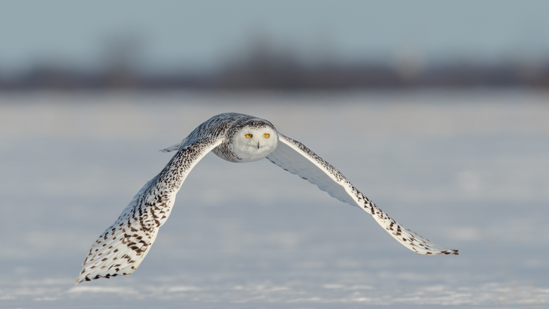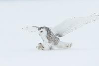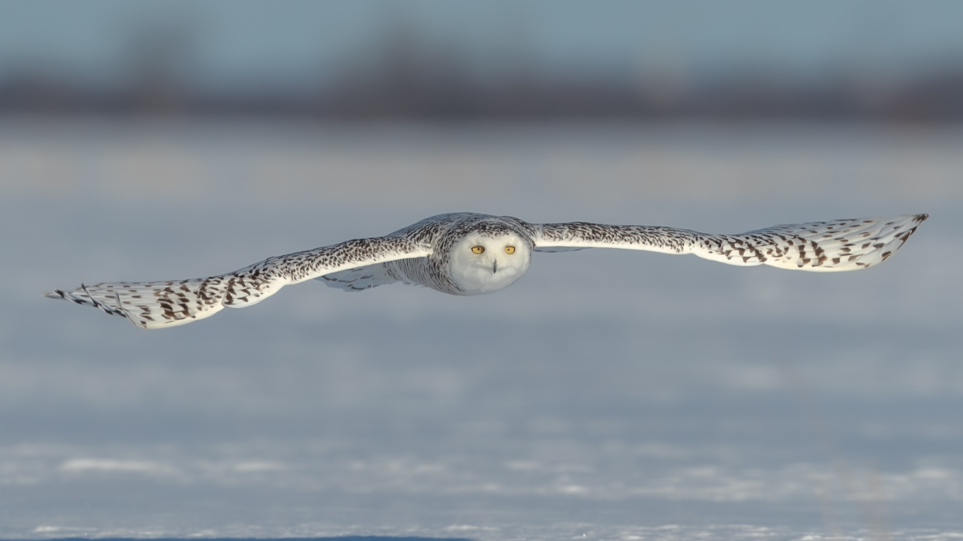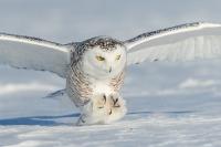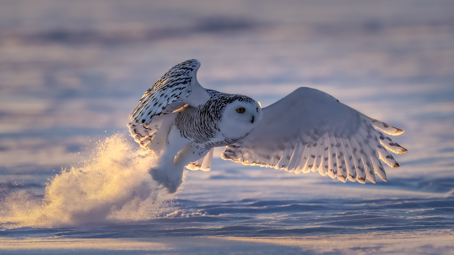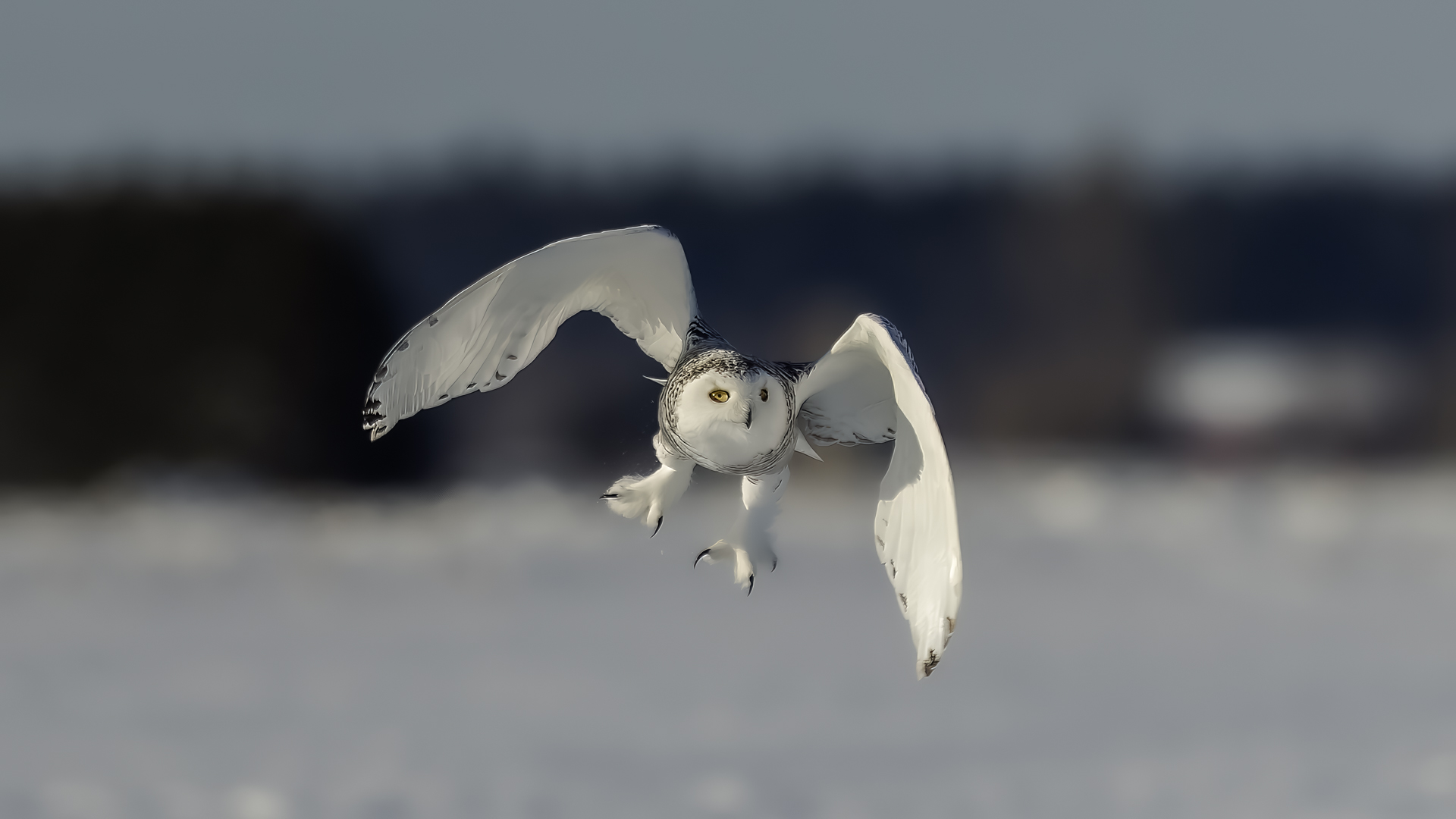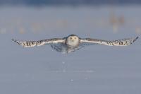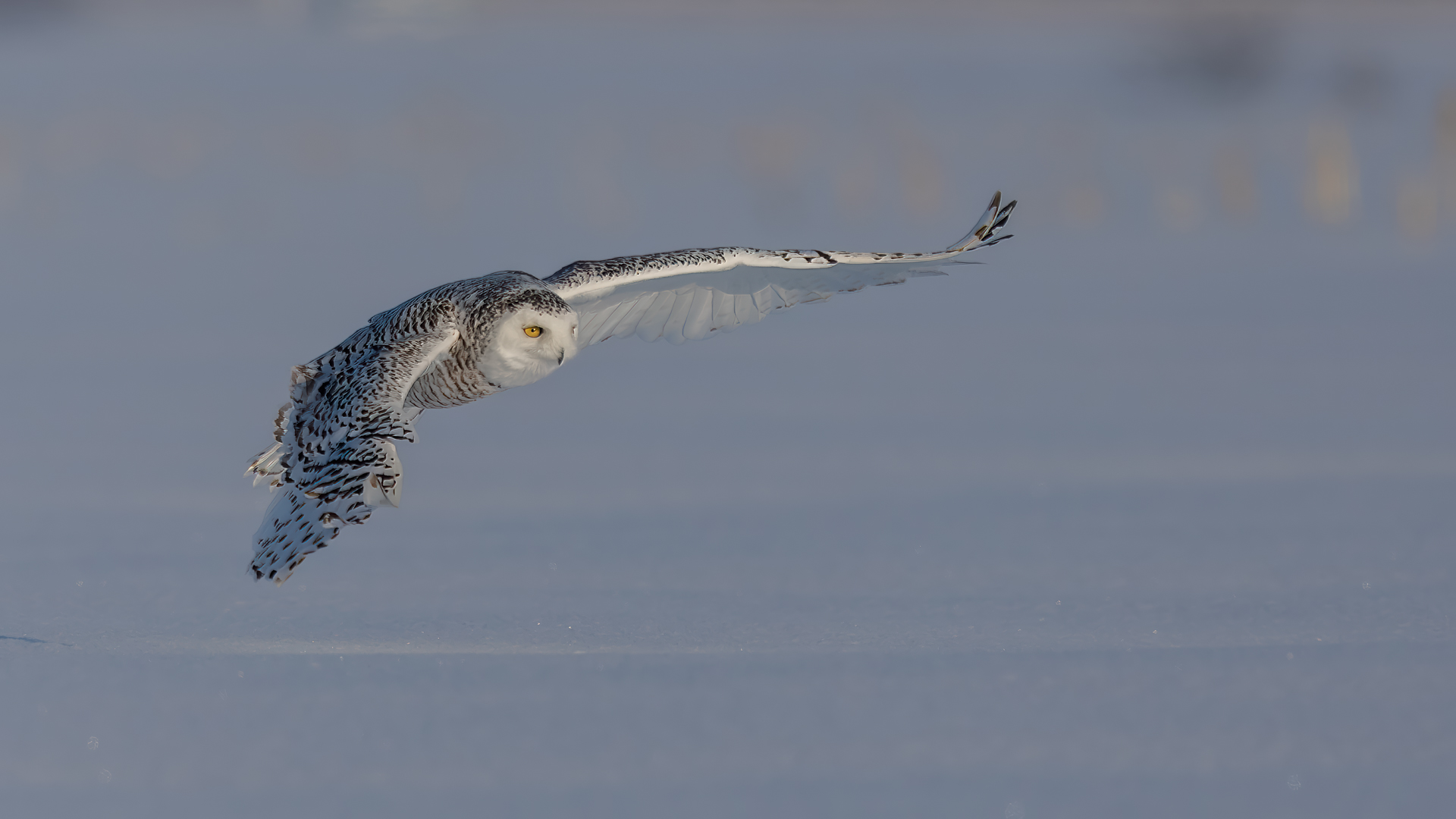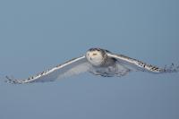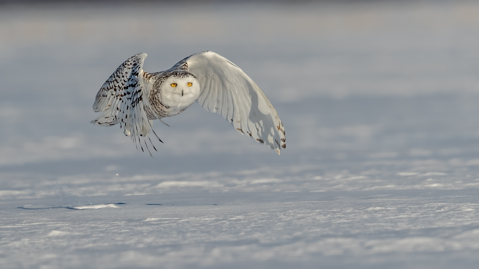 Wprawdzie fascynacja ptakami nie powinna dyskryminować, czy wyróżniać jakiś ptasich gatunków, to jednak każde spotkanie z sową, przynajmniej jak dla mnie, jest na swój sposób wyjątkowe, zapada na długo w pamięci. Do fauny Polski zaliczanych jest 13 gatunków sów. 12 z nich z różnym skutkiem jakościowym udało mi się już sfotografować. Długi czas zbierałem wiadomości o miejscach w których można sfotografować puchacza śnieżnego - ostatniego brakującego mi gatunku sowy z polskiej fauny. W Polsce obserwowany był kilkadziesiąt razy. Wszystkie zdobyte informacje o warsztatach fotograficznych z puchaczem śnieżnym kierowały mnie do Kanady. Z różnych powodów wyjazd był odkładany w czasie, aż wreszcie zapadła decyzja i ustaliliśmy z Michałem termin na - luty 2020 roku. Wyjazd okazał się ekstremalny nie tylko pod względem finansowym, ale także trudności samego fotografowania. Z 5 dni fotografowania 2 dni były bardzo trudne pod względem pogodowym. Raz doskwierała nam temperatura, bo było poniżej 30 stopni Celsjusza, drugi raz wprawdzie nie było mniej niż minus 10 stopni Celsjusza, ale wiał dość silny wiatr i był słaby opad śniegu lub występowała zamieć. W takich warunkach przebywanie kilka godzin na dworze daje ostro w kość, nie mówiąc już, że trudno jest nawet o zmianę obiektywu w obawie o zaśnieżenie całego wewnętrznego układu optycznego. Do tego trzeba było chodzić po polach na których zalegała 20-30 centymetrowa warstwa śniegu. Ale takie jest środowisko naturalne puchacza śnieżnego. Po trudach dotarcia na miejsce (opóźniony samolot, zagubienie bagażu, nieczynna już wypożyczalnia samochodów), spóźnieni docieramy na umówione miejsce o 5 rano, a o 6:15 zaplanowane było śniadanie organizacyjne, po którym mieliśmy mieć pierwsze spotkanie z puchaczem śnieżnym. Lata wyczekiwania na to spotkanie potęgują emocje, bo przecież mamy fotografować dzikie ptaki, więc ostatecznie nic nie jest zagwarantowane na 100%. Puchacze śnieżne należą do krótkodystansowych migrantów i po wychowaniu młodych zaczynają wędrówką na południe tak długo, aż nie napotkają na tereny, na którym występuje obfitość gryzoni, które umożliwią im przetrwanie zimy. Z tych też powodów coraz rzadziej jest widywana w Polsce. Wiek temu, gdy w Polsce występowały zimne, srogie zimy mówiono wręcz o nalotach puchaczy śnieżnych zimą w Polsce. Obecnie zdarza się, na skutek zmian klimatycznych, że w ogóle nie odnotowuje się obserwacji tych sów w Polsce. Mimo mrozu, wychodzimy na zewnątrz około 7 godziny, jest jeszcze dość ciemno, ale podekscytowani z nadzieją na to, że sowy będą i zrobimy pierwsze zdjęcia. Przed domem, zaadoptowanym na hotel dla gości fotograficznych sowich warsztatów, rośnie przydrożne drzewo, a na nim na szczycie siedzi pierwszy nasz puchacz śnieżny- Kacper. Kacper dlatego, że była to najbardziej biała sowa z sów występujących w okolicy. Tych sów jest podobno 7, ale poza Kacprem i jeszcze jedną sową, reszta zachowywała tak duży dystans, że nie powstały zdjęcia z tych spotkań. Niestety z Kacprem powstało też niewiele zdjęć, bo był przeganiany przez sowę, dzięki której w większości powstała moja galeria puchacza śnieżnego. Puchacze śnieżne są mocno terytorialne. Pojawienie się innego puchacza zawsze związane było agresywnym zachowaniem. Tylko w takiej sytuacji można było usłyszeć głos puchacza. W ciągu 5 dni było to tylko 3 razy. Nie powstało nagranie z uwagi na krótki okres odzywania się ptaków i brak możliwości w mrozie posiadania „pod ręka” zestawu do nagrywania. Po tych kilku dniach obcowania z ptakami fascynacja puchaczami śnieżnym jeszcze się spotęgowała. Mimo starannych przygotowań, wielowarstwowego ubrania się, po fotografowaniu trwającym niecałe 2 godziny w temperaturze poniżej 30 stopni, trzeba było przerwać i ogrzać się w samochodzie. Tymczasem puchacze zachowywały się jakby panowała dodatnia temperatura. Siedziały na przydrożnych słupach, silosach, aby mieć dobrą pozycję do wypatrywania gryzoni. Ich zmysły są niesamowite. Z kilkuset metrów potrafią zobaczyć białą mysz na śniegu, bezszelestnie nadlecieć i upolować gryzonia. Robią tak także w wietrzne dni. Sowy były aktywne o wschodzie słońca i dwie godziny przed zachodem słońca. Z reguły, bo dwa dni było na tyle kiepsko w możliwości powstania dobrych zdjęć, że postanowiliśmy odpuścić i poszukać innych ptaków. Niestety poszukiwania puszczyka mszarnego i sowy jarzębatej zakończyły się fiaskiem. Poszukiwanie aktywnego karmnika zajęło nam pół dnia. Dość dziwne sformułowanie „aktywny karmnik”, ale adekwatne do sytuacji. Widywaliśmy wiele karmników, ale z uwagi, że regularnie nie dosypywano tam ziarna nie było ptaków. A szkoda, bo praktycznie codziennie w przerwie pomiędzy porannym fotografowaniem, a popołudniowym można by było fotografować ciekawe, piękne gatunki występujące w Ameryce Północnej. Zrobiliśmy kilka zdjęć nowych gatunków, ale niewykorzystanych możliwości czasowych było sporo i dlatego tak niewiele powstało zdjęć, poza puchaczem śnieżnym.