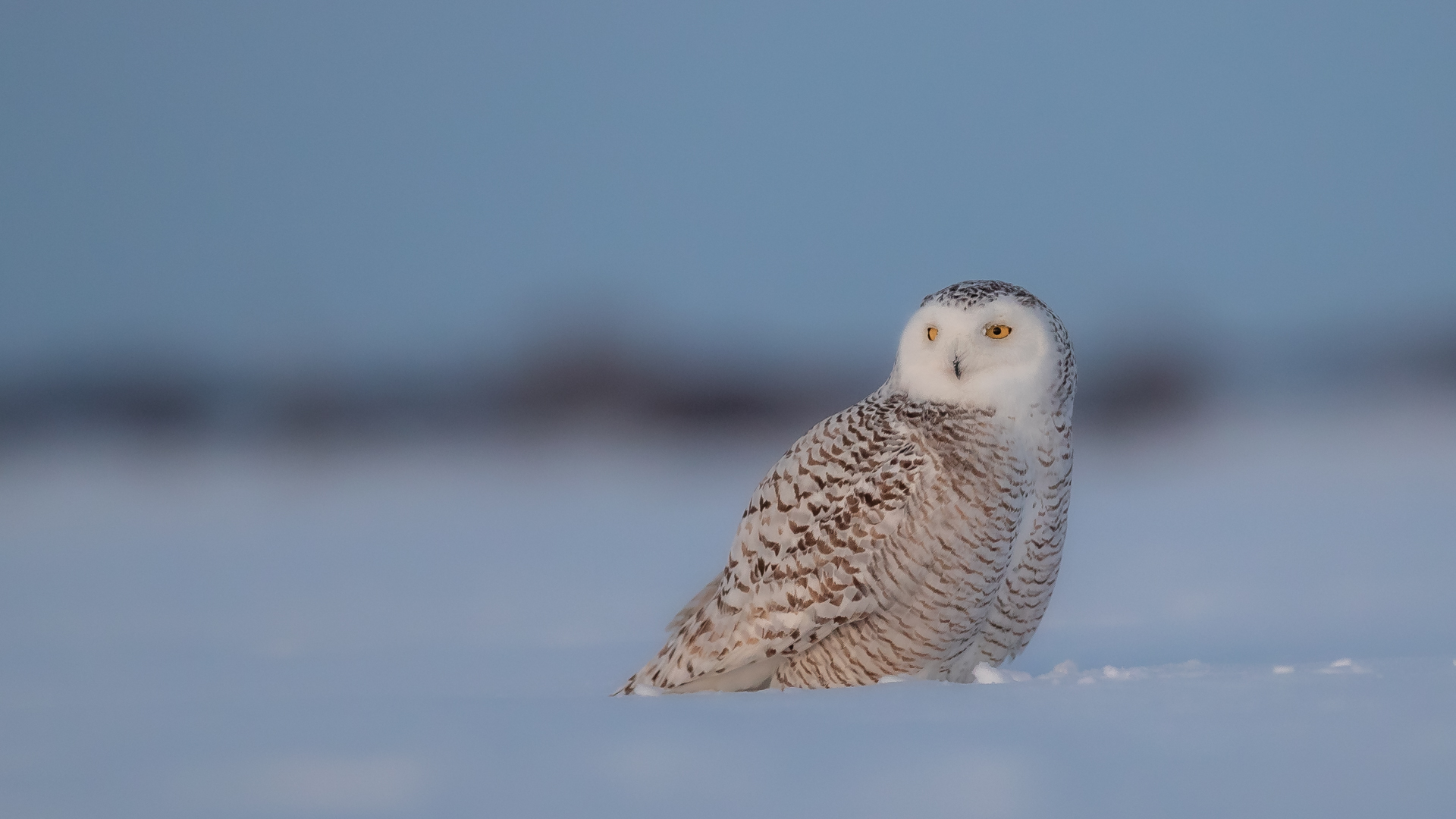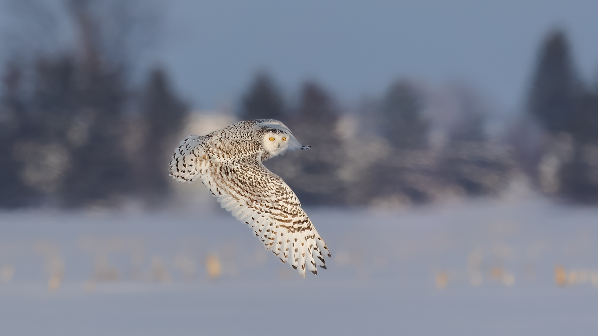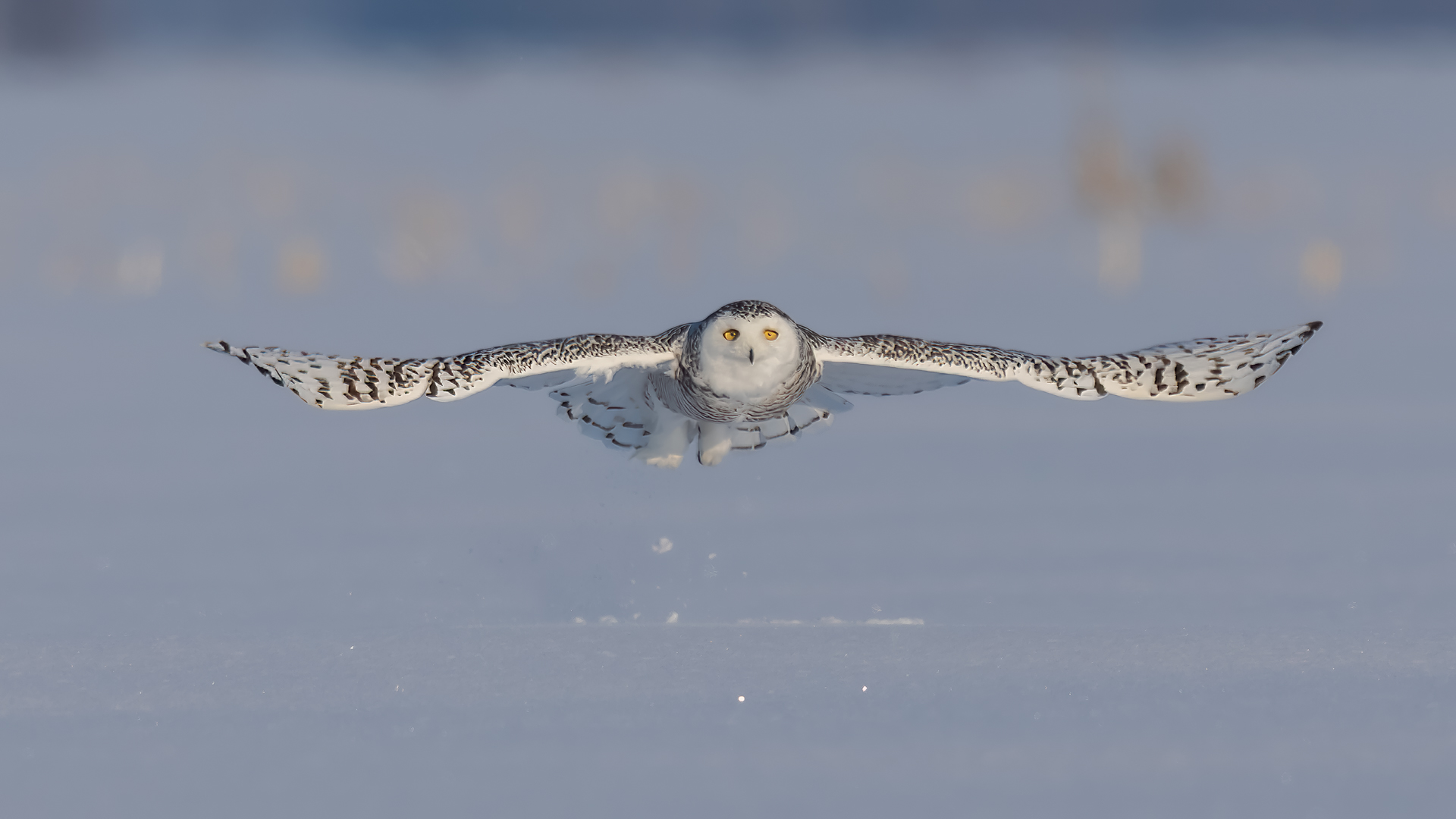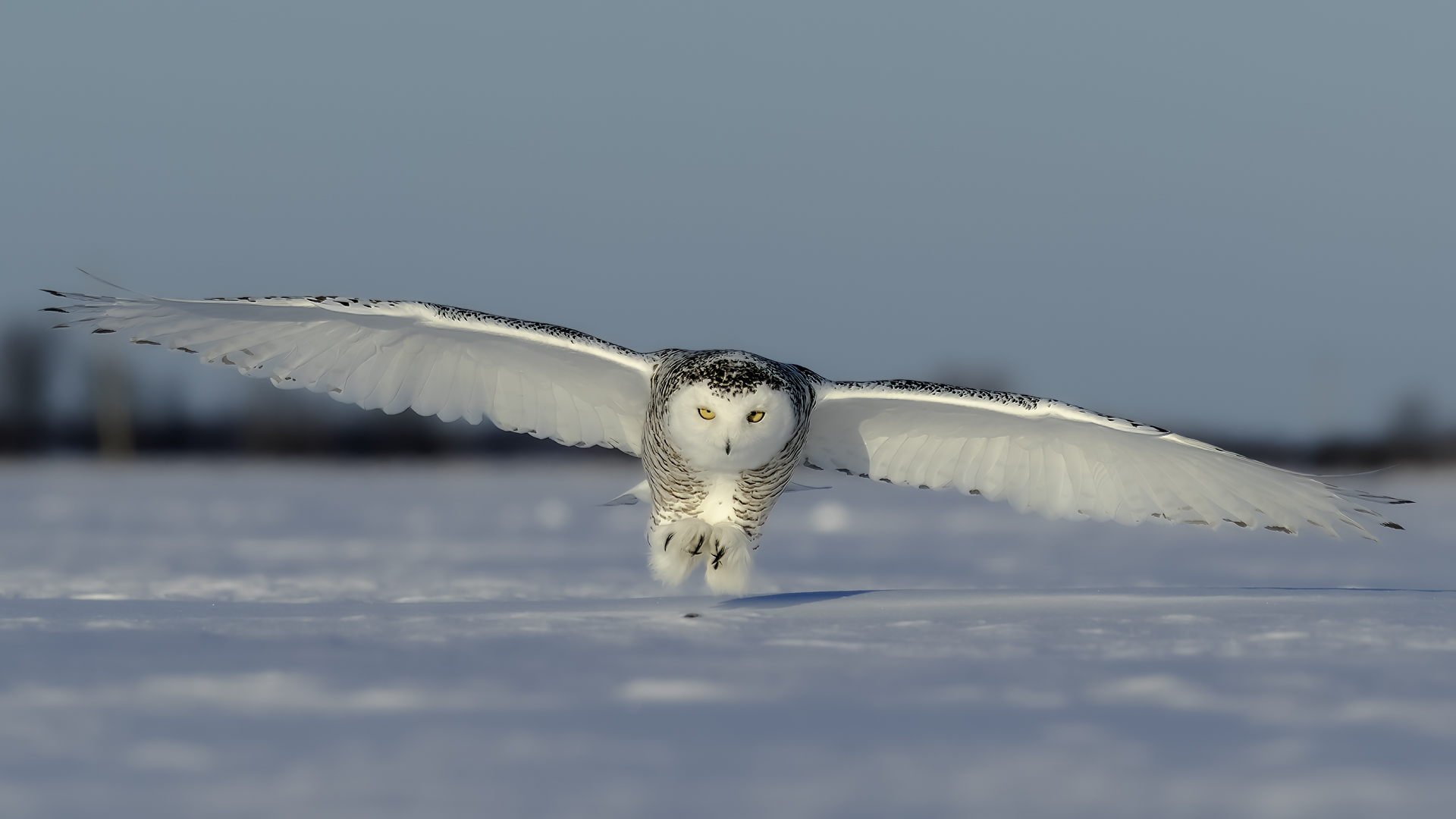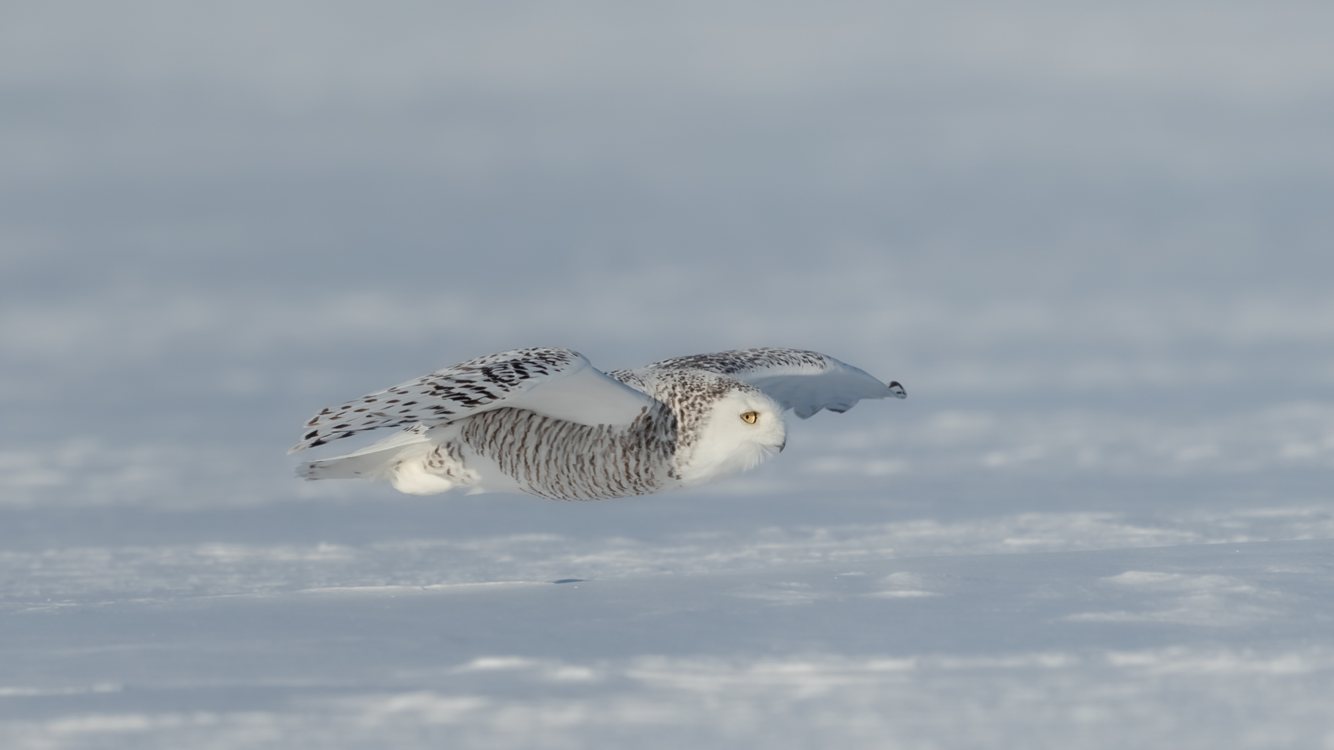 Wprawdzie fascynacja ptakami nie powinna dyskryminować, czy wyróżniać jakiś ptasich gatunków, to jednak każde spotkanie z sową, przynajmniej jak dla mnie, jest na swój sposób wyjątkowe, zapada na długo w pamięci. Do fauny Polski zaliczanych jest 13 gatunków sów. 12 z nich z różnym skutkiem jakościowym udało mi się już sfotografować. Długi czas zbierałem wiadomości o miejscach w których można sfotografować puchacza śnieżnego - ostatniego brakującego mi gatunku sowy z polskiej fauny. W Polsce obserwowany był kilkadziesiąt razy. Wszystkie zdobyte informacje o warsztatach fotograficznych z puchaczem śnieżnym kierowały mnie do Kanady. Z różnych powodów wyjazd był odkładany w czasie, aż wreszcie zapadła decyzja i ustaliliśmy z Michałem termin na - luty 2020 roku. Wyjazd okazał się ekstremalny nie tylko pod względem finansowym, ale także trudności samego fotografowania. Z 5 dni fotografowania 2 dni były bardzo trudne pod względem pogodowym. Raz doskwierała nam temperatura, bo było poniżej 30 stopni Celsjusza, drugi raz wprawdzie nie było mniej niż minus 10 stopni Celsjusza, ale wiał dość silny wiatr i był słaby opad śniegu lub występowała zamieć. W takich warunkach przebywanie kilka godzin na dworze daje ostro w kość, nie mówiąc już, że trudno jest nawet o zmianę obiektywu w obawie o zaśnieżenie całego wewnętrznego układu optycznego. Do tego trzeba było chodzić po polach na których zalegała 20-30 centymetrowa warstwa śniegu. Ale takie jest środowisko naturalne puchacza śnieżnego. Po trudach dotarcia na miejsce (opóźniony samolot, zagubienie bagażu, nieczynna już wypożyczalnia samochodów), spóźnieni docieramy na umówione miejsce o 5 rano, a o 6:15 zaplanowane było śniadanie organizacyjne, po którym mieliśmy mieć pierwsze spotkanie z puchaczem śnieżnym. Lata wyczekiwania na to spotkanie potęgują emocje, bo przecież mamy fotografować dzikie ptaki, więc ostatecznie nic nie jest zagwarantowane na 100%. Puchacze śnieżne należą do krótkodystansowych migrantów i po wychowaniu młodych zaczynają wędrówką na południe tak długo, aż nie napotkają na tereny, na którym występuje obfitość gryzoni, które umożliwią im przetrwanie zimy. Z tych też powodów coraz rzadziej jest widywana w Polsce. Wiek temu, gdy w Polsce występowały zimne, srogie zimy mówiono wręcz o nalotach puchaczy śnieżnych zimą w Polsce. Obecnie zdarza się, na skutek zmian klimatycznych, że w ogóle nie odnotowuje się obserwacji tych sów w Polsce. Mimo mrozu, wychodzimy na zewnątrz około 7 godziny, jest jeszcze dość ciemno, ale podekscytowani z nadzieją na to, że sowy będą i zrobimy pierwsze zdjęcia. Przed domem, zaadoptowanym na hotel dla gości fotograficznych sowich warsztatów, rośnie przydrożne drzewo, a na nim na szczycie siedzi pierwszy nasz puchacz śnieżny- Kacper. Kacper dlatego, że była to najbardziej biała sowa z sów występujących w okolicy. Tych sów jest podobno 7, ale poza Kacprem i jeszcze jedną sową, reszta zachowywała tak duży dystans, że nie powstały zdjęcia z tych spotkań. Niestety z Kacprem powstało też niewiele zdjęć, bo był przeganiany przez sowę, dzięki której w większości powstała moja galeria puchacza śnieżnego. Puchacze śnieżne są mocno terytorialne. Pojawienie się innego puchacza zawsze związane było agresywnym zachowaniem. Tylko w takiej sytuacji można było usłyszeć głos puchacza. W ciągu 5 dni było to tylko 3 razy. Nie powstało nagranie z uwagi na krótki okres odzywania się ptaków i brak możliwości w mrozie posiadania „pod ręka” zestawu do nagrywania. Po tych kilku dniach obcowania z ptakami fascynacja puchaczami śnieżnym jeszcze się spotęgowała. Mimo starannych przygotowań, wielowarstwowego ubrania się, po fotografowaniu trwającym niecałe 2 godziny w temperaturze poniżej 30 stopni, trzeba było przerwać i ogrzać się w samochodzie. Tymczasem puchacze zachowywały się jakby panowała dodatnia temperatura. Siedziały na przydrożnych słupach, silosach, aby mieć dobrą pozycję do wypatrywania gryzoni. Ich zmysły są niesamowite. Z kilkuset metrów potrafią zobaczyć białą mysz na śniegu, bezszelestnie nadlecieć i upolować gryzonia. Robią tak także w wietrzne dni. Sowy były aktywne o wschodzie słońca i dwie godziny przed zachodem słońca. Z reguły, bo dwa dni było na tyle kiepsko w możliwości powstania dobrych zdjęć, że postanowiliśmy odpuścić i poszukać innych ptaków. Niestety poszukiwania puszczyka mszarnego i sowy jarzębatej zakończyły się fiaskiem. Poszukiwanie aktywnego karmnika zajęło nam pół dnia. Dość dziwne sformułowanie „aktywny karmnik”, ale adekwatne do sytuacji. Widywaliśmy wiele karmników, ale z uwagi, że regularnie nie dosypywano tam ziarna nie było ptaków. A szkoda, bo praktycznie codziennie w przerwie pomiędzy porannym fotografowaniem, a popołudniowym można by było fotografować ciekawe, piękne gatunki występujące w Ameryce Północnej. Zrobiliśmy kilka zdjęć nowych gatunków, ale niewykorzystanych możliwości czasowych było sporo i dlatego tak niewiele powstało zdjęć, poza puchaczem śnieżnym.
