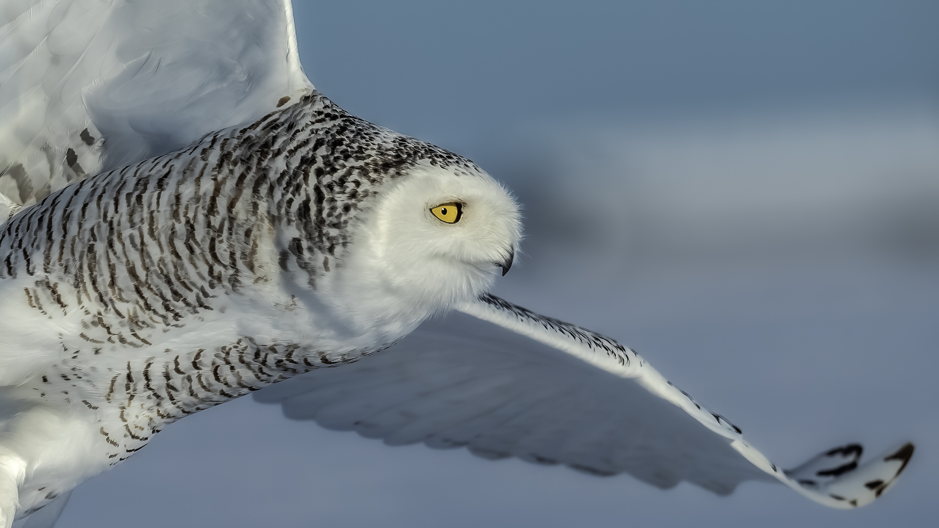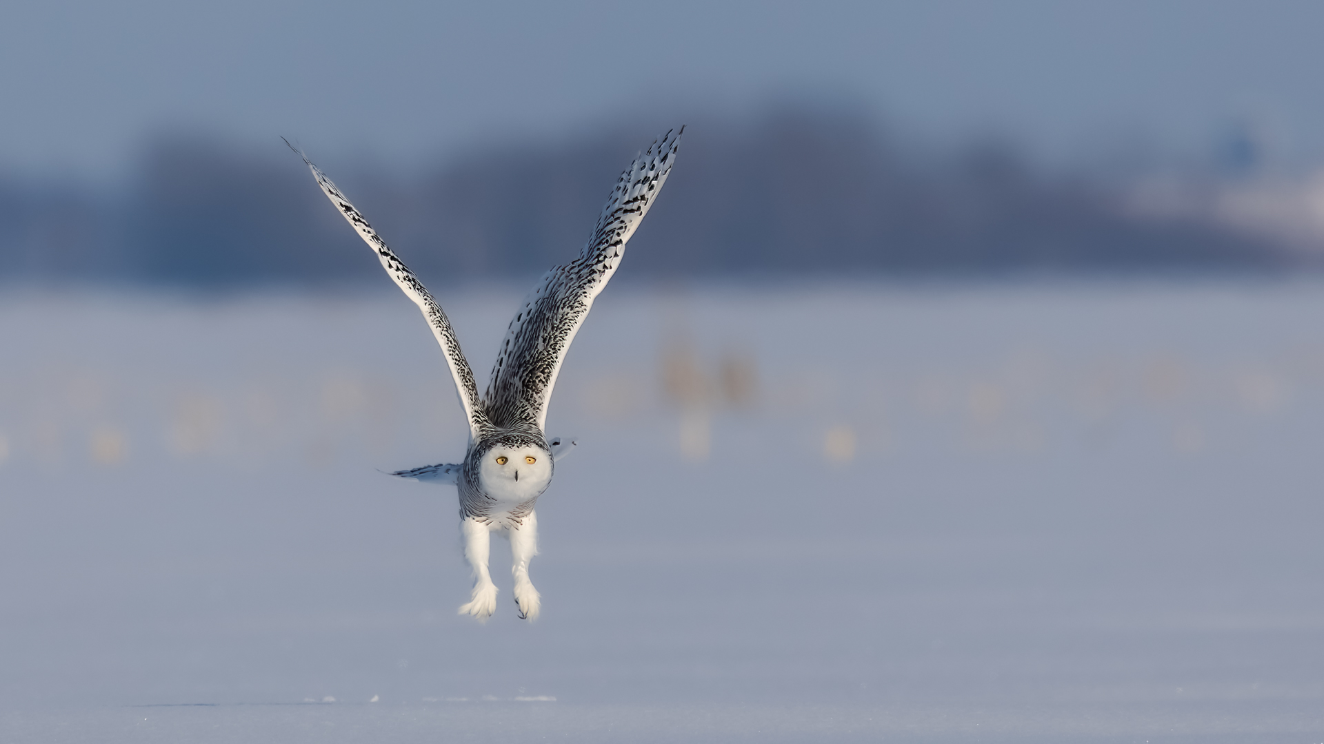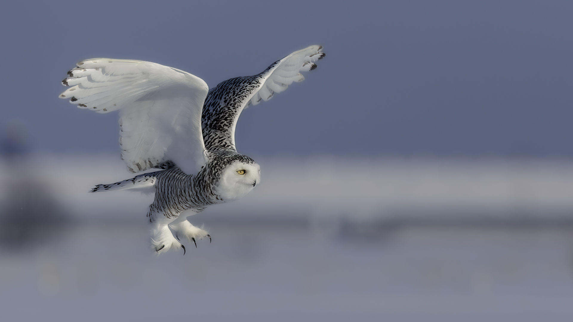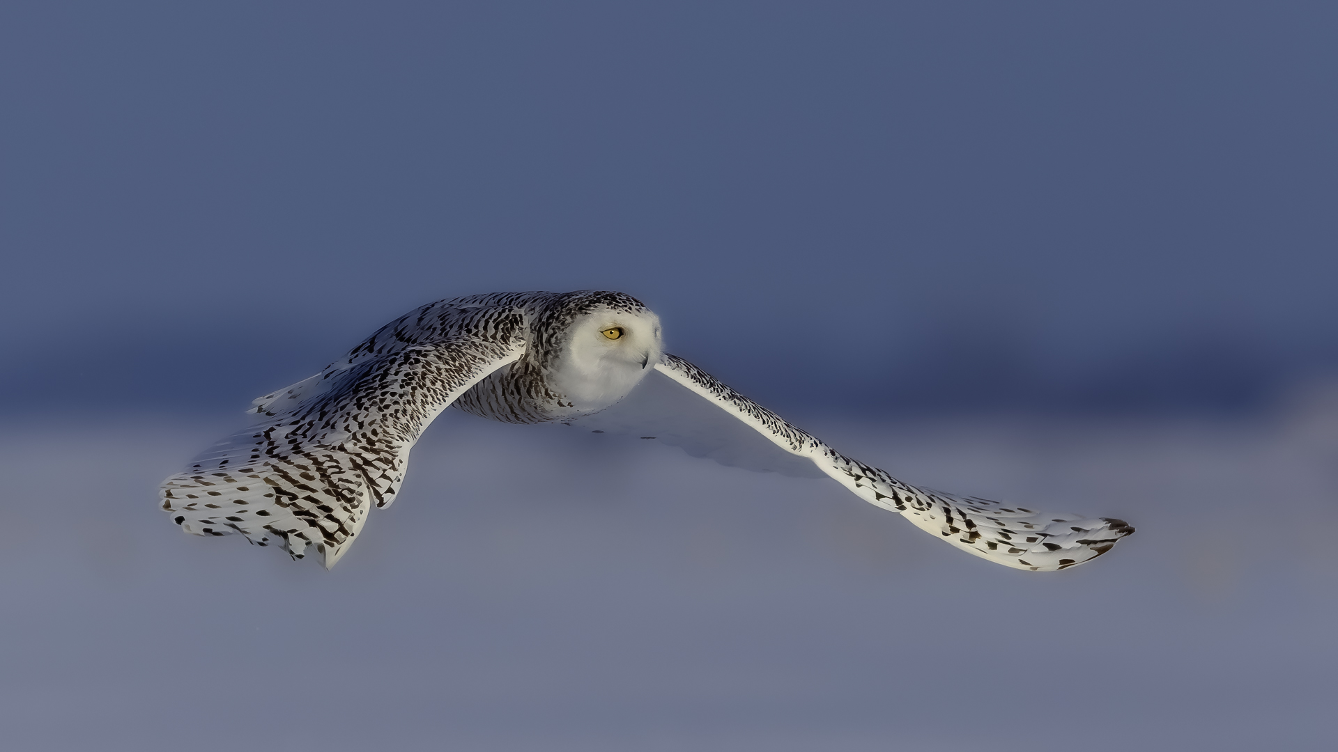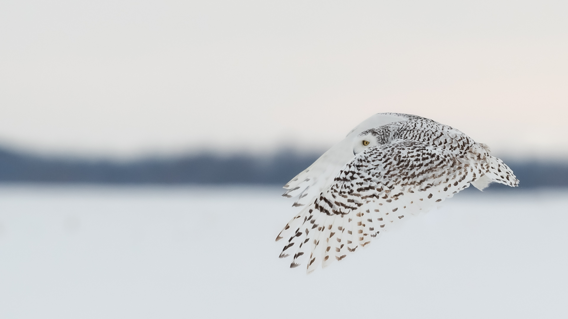 Wprawdzie fascynacja ptakami nie powinna dyskryminować, czy wyróżniać jakiś ptasich gatunków, to jednak każde spotkanie z sową, przynajmniej jak dla mnie, jest na swój sposób wyjątkowe, zapada na długo w pamięci. Do fauny Polski zaliczanych jest 13 gatunków sów. 12 z nich z różnym skutkiem jakościowym udało mi się już sfotografować. Długi czas zbierałem wiadomości o miejscach w których można sfotografować puchacza śnieżnego - ostatniego brakującego mi gatunku sowy z polskiej fauny. W Polsce obserwowany był kilkadziesiąt razy. Wszystkie zdobyte informacje o warsztatach fotograficznych z puchaczem śnieżnym kierowały mnie do Kanady. Z różnych powodów wyjazd był odkładany w czasie, aż wreszcie zapadła decyzja i ustaliliśmy z Michałem termin na - luty 2020 roku. Wyjazd okazał się ekstremalny nie tylko pod względem finansowym, ale także trudności samego fotografowania. Z 5 dni fotografowania 2 dni były bardzo trudne pod względem pogodowym. Raz doskwierała nam temperatura, bo było poniżej 30 stopni Celsjusza, drugi raz wprawdzie nie było mniej niż minus 10 stopni Celsjusza, ale wiał dość silny wiatr i był słaby opad śniegu lub występowała zamieć. W takich warunkach przebywanie kilka godzin na dworze daje ostro w kość, nie mówiąc już, że trudno jest nawet o zmianę obiektywu w obawie o zaśnieżenie całego wewnętrznego układu optycznego. Do tego trzeba było chodzić po polach na których zalegała 20-30 centymetrowa warstwa śniegu. Ale takie jest środowisko naturalne puchacza śnieżnego. Po trudach dotarcia na miejsce (opóźniony samolot, zagubienie bagażu, nieczynna już wypożyczalnia samochodów), spóźnieni docieramy na umówione miejsce o 5 rano, a o 6:15 zaplanowane było śniadanie organizacyjne, po którym mieliśmy mieć pierwsze spotkanie z puchaczem śnieżnym. Lata wyczekiwania na to spotkanie potęgują emocje, bo przecież mamy fotografować dzikie ptaki, więc ostatecznie nic nie jest zagwarantowane na 100%. Puchacze śnieżne należą do krótkodystansowych migrantów i po wychowaniu młodych zaczynają wędrówką na południe tak długo, aż nie napotkają na tereny, na którym występuje obfitość gryzoni, które umożliwią im przetrwanie zimy. Z tych też powodów coraz rzadziej jest widywana w Polsce. Wiek temu, gdy w Polsce występowały zimne, srogie zimy mówiono wręcz o nalotach puchaczy śnieżnych zimą w Polsce. Obecnie zdarza się, na skutek zmian klimatycznych, że w ogóle nie odnotowuje się obserwacji tych sów w Polsce. Mimo mrozu, wychodzimy na zewnątrz około 7 godziny, jest jeszcze dość ciemno, ale podekscytowani z nadzieją na to, że sowy będą i zrobimy pierwsze zdjęcia. Przed domem, zaadoptowanym na hotel dla gości fotograficznych sowich warsztatów, rośnie przydrożne drzewo, a na nim na szczycie siedzi pierwszy nasz puchacz śnieżny- Kacper. Kacper dlatego, że była to najbardziej biała sowa z sów występujących w okolicy. Tych sów jest podobno 7, ale poza Kacprem i jeszcze jedną sową, reszta zachowywała tak duży dystans, że nie powstały zdjęcia z tych spotkań. Niestety z Kacprem powstało też niewiele zdjęć, bo był przeganiany przez sowę, dzięki której w większości powstała moja galeria puchacza śnieżnego. Puchacze śnieżne są mocno terytorialne. Pojawienie się innego puchacza zawsze związane było agresywnym zachowaniem. Tylko w takiej sytuacji można było usłyszeć głos puchacza. W ciągu 5 dni było to tylko 3 razy. Nie powstało nagranie z uwagi na krótki okres odzywania się ptaków i brak możliwości w mrozie posiadania „pod ręka” zestawu do nagrywania. Po tych kilku dniach obcowania z ptakami fascynacja puchaczami śnieżnym jeszcze się spotęgowała. Mimo starannych przygotowań, wielowarstwowego ubrania się, po fotografowaniu trwającym niecałe 2 godziny w temperaturze poniżej 30 stopni, trzeba było przerwać i ogrzać się w samochodzie. Tymczasem puchacze zachowywały się jakby panowała dodatnia temperatura. Siedziały na przydrożnych słupach, silosach, aby mieć dobrą pozycję do wypatrywania gryzoni. Ich zmysły są niesamowite. Z kilkuset metrów potrafią zobaczyć białą mysz na śniegu, bezszelestnie nadlecieć i upolować gryzonia. Robią tak także w wietrzne dni. Sowy były aktywne o wschodzie słońca i dwie godziny przed zachodem słońca. Z reguły, bo dwa dni było na tyle kiepsko w możliwości powstania dobrych zdjęć, że postanowiliśmy odpuścić i poszukać innych ptaków. Niestety poszukiwania puszczyka mszarnego i sowy jarzębatej zakończyły się fiaskiem. Poszukiwanie aktywnego karmnika zajęło nam pół dnia. Dość dziwne sformułowanie „aktywny karmnik”, ale adekwatne do sytuacji. Widywaliśmy wiele karmników, ale z uwagi, że regularnie nie dosypywano tam ziarna nie było ptaków. A szkoda, bo praktycznie codziennie w przerwie pomiędzy porannym fotografowaniem, a popołudniowym można by było fotografować ciekawe, piękne gatunki występujące w Ameryce Północnej. Zrobiliśmy kilka zdjęć nowych gatunków, ale niewykorzystanych możliwości czasowych było sporo i dlatego tak niewiele powstało zdjęć, poza puchaczem śnieżnym.