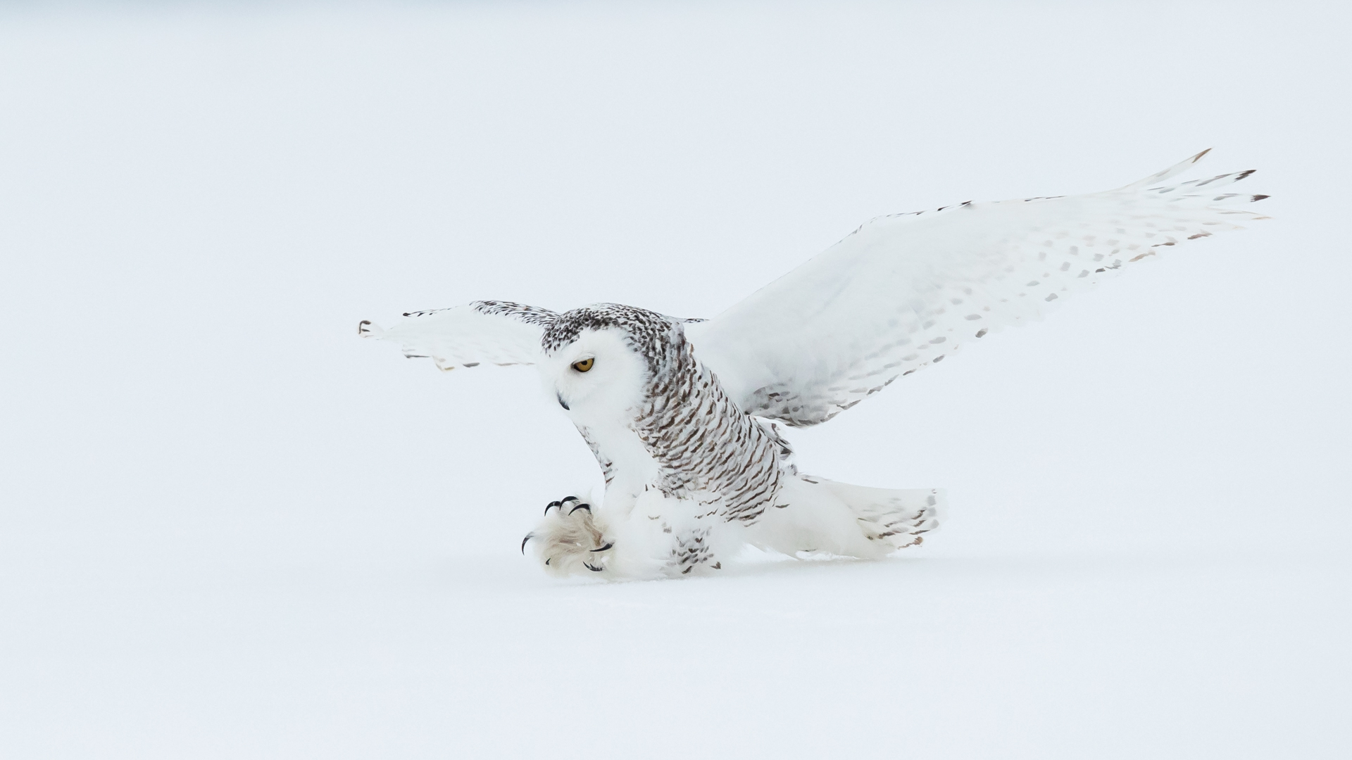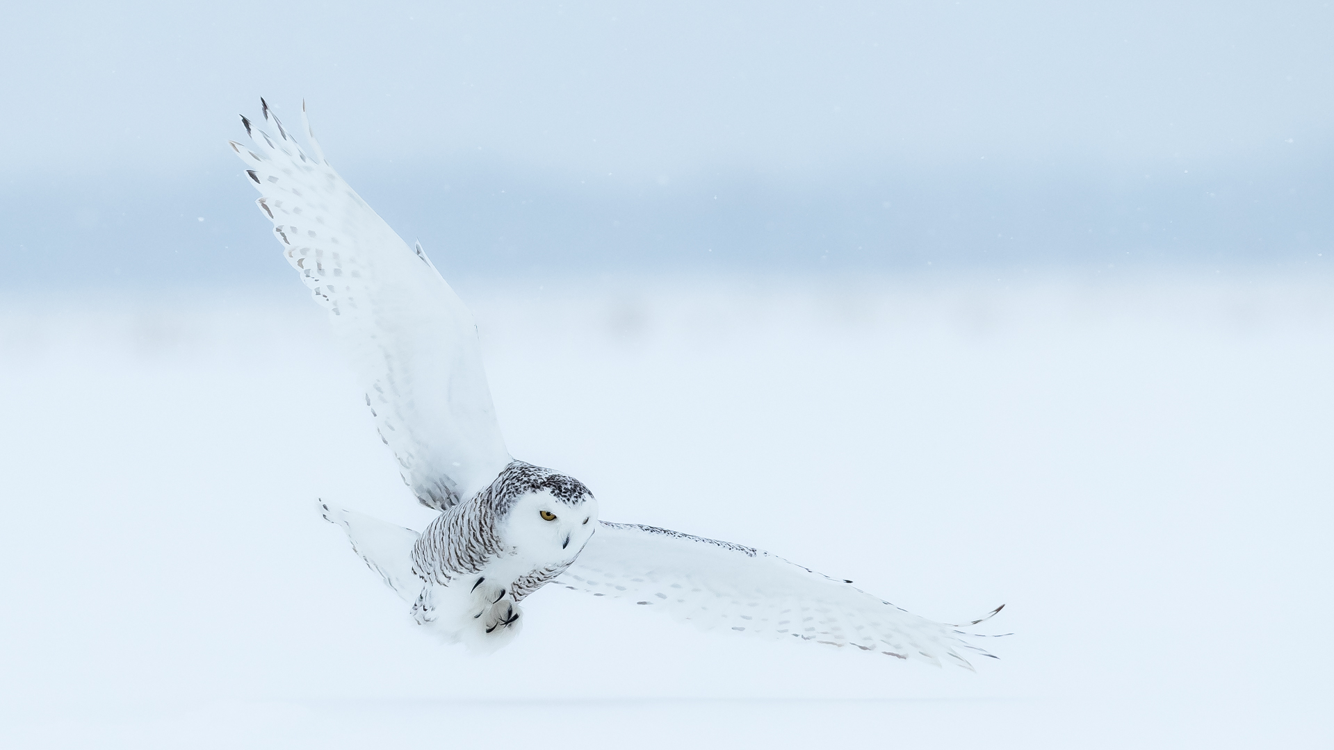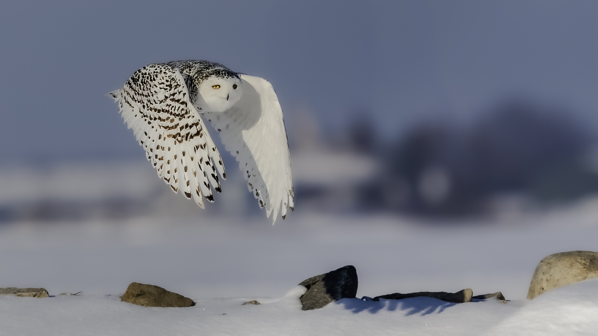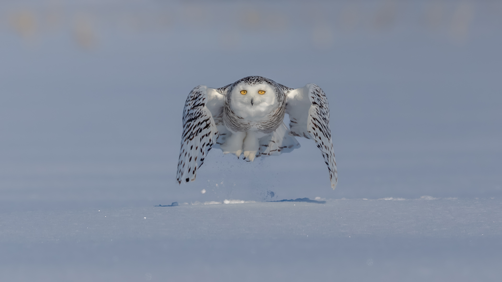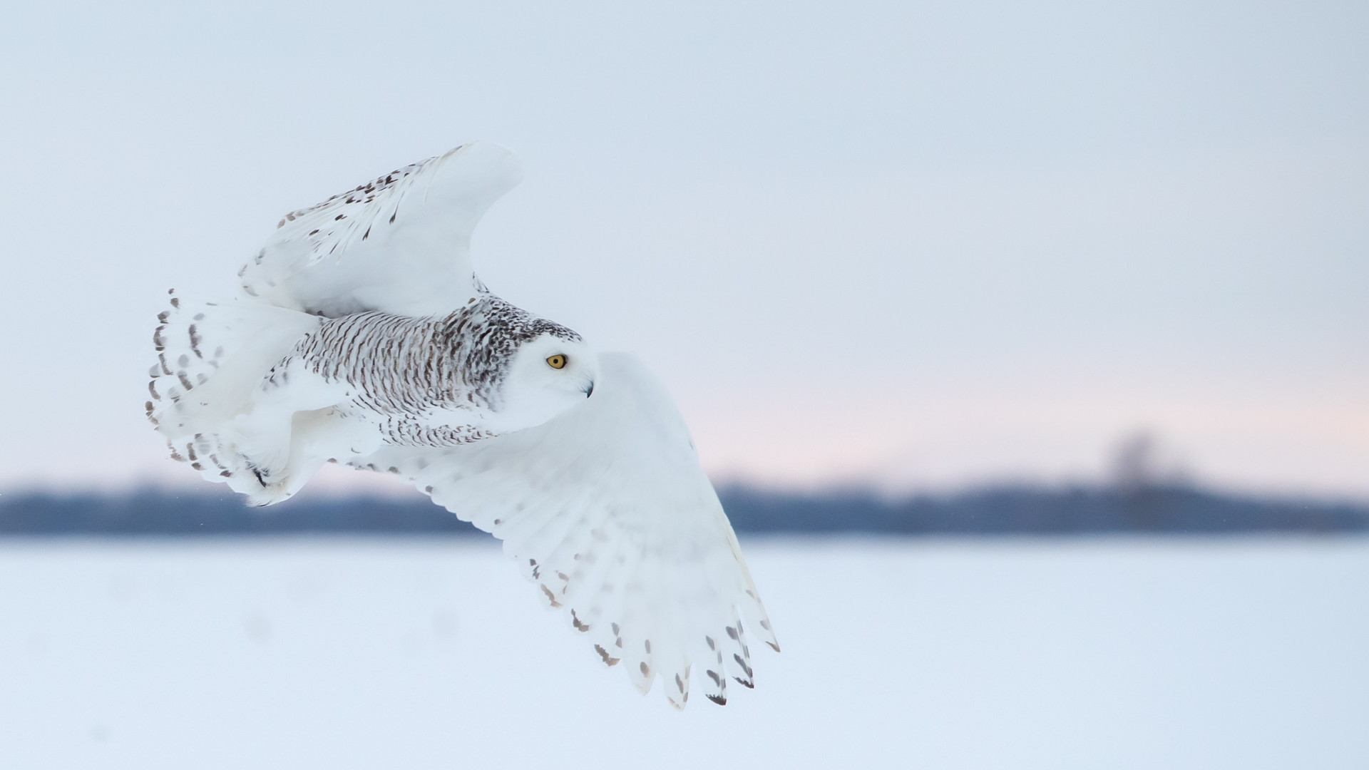Wprawdzie fascynacja ptakami nie powinna dyskryminować, czy wyróżniać jakiś ptasich gatunków, to jednak każde spotkanie z sową, przynajmniej jak dla mnie, jest na swój sposób wyjątkowe, zapada na długo w pamięci. Do fauny Polski zaliczanych jest 13 gatunków sów. 12 z nich z różnym skutkiem jakościowym udało mi się już sfotografować. Długi czas zbierałem wiadomości o miejscach w których można sfotografować puchacza śnieżnego - ostatniego brakującego mi gatunku sowy z polskiej fauny. W Polsce obserwowany był kilkadziesiąt razy. Wszystkie zdobyte informacje o warsztatach fotograficznych z puchaczem śnieżnym kierowały mnie do Kanady. Z różnych powodów wyjazd był odkładany w czasie, aż wreszcie zapadła decyzja i ustaliliśmy z Michałem termin na - luty 2020 roku. Wyjazd okazał się ekstremalny nie tylko pod względem finansowym, ale także trudności samego fotografowania. Z 5 dni fotografowania 2 dni były bardzo trudne pod względem pogodowym. Raz doskwierała nam temperatura, bo było poniżej 30 stopni Celsjusza, drugi raz wprawdzie nie było mniej niż minus 10 stopni Celsjusza, ale wiał dość silny wiatr i był słaby opad śniegu lub występowała zamieć. W takich warunkach przebywanie kilka godzin na dworze daje ostro w kość, nie mówiąc już, że trudno jest nawet o zmianę obiektywu w obawie o zaśnieżenie całego wewnętrznego układu optycznego. Do tego trzeba było chodzić po polach na których zalegała 20-30 centymetrowa warstwa śniegu. Ale takie jest środowisko naturalne puchacza śnieżnego. Po trudach dotarcia na miejsce (opóźniony samolot, zagubienie bagażu, nieczynna już wypożyczalnia samochodów), spóźnieni docieramy na umówione miejsce o 5 rano, a o 6:15 zaplanowane było śniadanie organizacyjne, po którym mieliśmy mieć pierwsze spotkanie z puchaczem śnieżnym. Lata wyczekiwania na to spotkanie potęgują emocje, bo przecież mamy fotografować dzikie ptaki, więc ostatecznie nic nie jest zagwarantowane na 100%. Puchacze śnieżne należą do krótkodystansowych migrantów i po wychowaniu młodych zaczynają wędrówką na południe tak długo, aż nie napotkają na tereny, na którym występuje obfitość gryzoni, które umożliwią im przetrwanie zimy. Z tych też powodów coraz rzadziej jest widywana w Polsce. Wiek temu, gdy w Polsce występowały zimne, srogie zimy mówiono wręcz o nalotach puchaczy śnieżnych zimą w Polsce. Obecnie zdarza się, na skutek zmian klimatycznych, że w ogóle nie odnotowuje się obserwacji tych sów w Polsce. Mimo mrozu, wychodzimy na zewnątrz około 7 godziny, jest jeszcze dość ciemno, ale podekscytowani z nadzieją na to, że sowy będą i zrobimy pierwsze zdjęcia. Przed domem, zaadoptowanym na hotel dla gości fotograficznych sowich warsztatów, rośnie przydrożne drzewo, a na nim na szczycie siedzi pierwszy nasz puchacz śnieżny- Kacper. Kacper dlatego, że była to najbardziej biała sowa z sów występujących w okolicy. Tych sów jest podobno 7, ale poza Kacprem i jeszcze jedną sową, reszta zachowywała tak duży dystans, że nie powstały zdjęcia z tych spotkań. Niestety z Kacprem powstało też niewiele zdjęć, bo był przeganiany przez sowę, dzięki której w większości powstała moja galeria puchacza śnieżnego. Puchacze śnieżne są mocno terytorialne. Pojawienie się innego puchacza zawsze związane było agresywnym zachowaniem. Tylko w takiej sytuacji można było usłyszeć głos puchacza. W ciągu 5 dni było to tylko 3 razy. Nie powstało nagranie z uwagi na krótki okres odzywania się ptaków i brak możliwości w mrozie posiadania „pod ręka” zestawu do nagrywania. Po tych kilku dniach obcowania z ptakami fascynacja puchaczami śnieżnym jeszcze się spotęgowała. Mimo starannych przygotowań, wielowarstwowego ubrania się, po fotografowaniu trwającym niecałe 2 godziny w temperaturze poniżej 30 stopni, trzeba było przerwać i ogrzać się w samochodzie. Tymczasem puchacze zachowywały się jakby panowała dodatnia temperatura. Siedziały na przydrożnych słupach, silosach, aby mieć dobrą pozycję do wypatrywania gryzoni. Ich zmysły są niesamowite. Z kilkuset metrów potrafią zobaczyć białą mysz na śniegu, bezszelestnie nadlecieć i upolować gryzonia. Robią tak także w wietrzne dni. Sowy były aktywne o wschodzie słońca i dwie godziny przed zachodem słońca. Z reguły, bo dwa dni było na tyle kiepsko w możliwości powstania dobrych zdjęć, że postanowiliśmy odpuścić i poszukać innych ptaków. Niestety poszukiwania puszczyka mszarnego i sowy jarzębatej zakończyły się fiaskiem. Poszukiwanie aktywnego karmnika zajęło nam pół dnia. Dość dziwne sformułowanie „aktywny karmnik”, ale adekwatne do sytuacji. Widywaliśmy wiele karmników, ale z uwagi, że regularnie nie dosypywano tam ziarna nie było ptaków. A szkoda, bo praktycznie codziennie w przerwie pomiędzy porannym fotografowaniem, a popołudniowym można by było fotografować ciekawe, piękne gatunki występujące w Ameryce Północnej. Zrobiliśmy kilka zdjęć nowych gatunków, ale niewykorzystanych możliwości czasowych było sporo i dlatego tak niewiele powstało zdjęć, poza puchaczem śnieżnym.