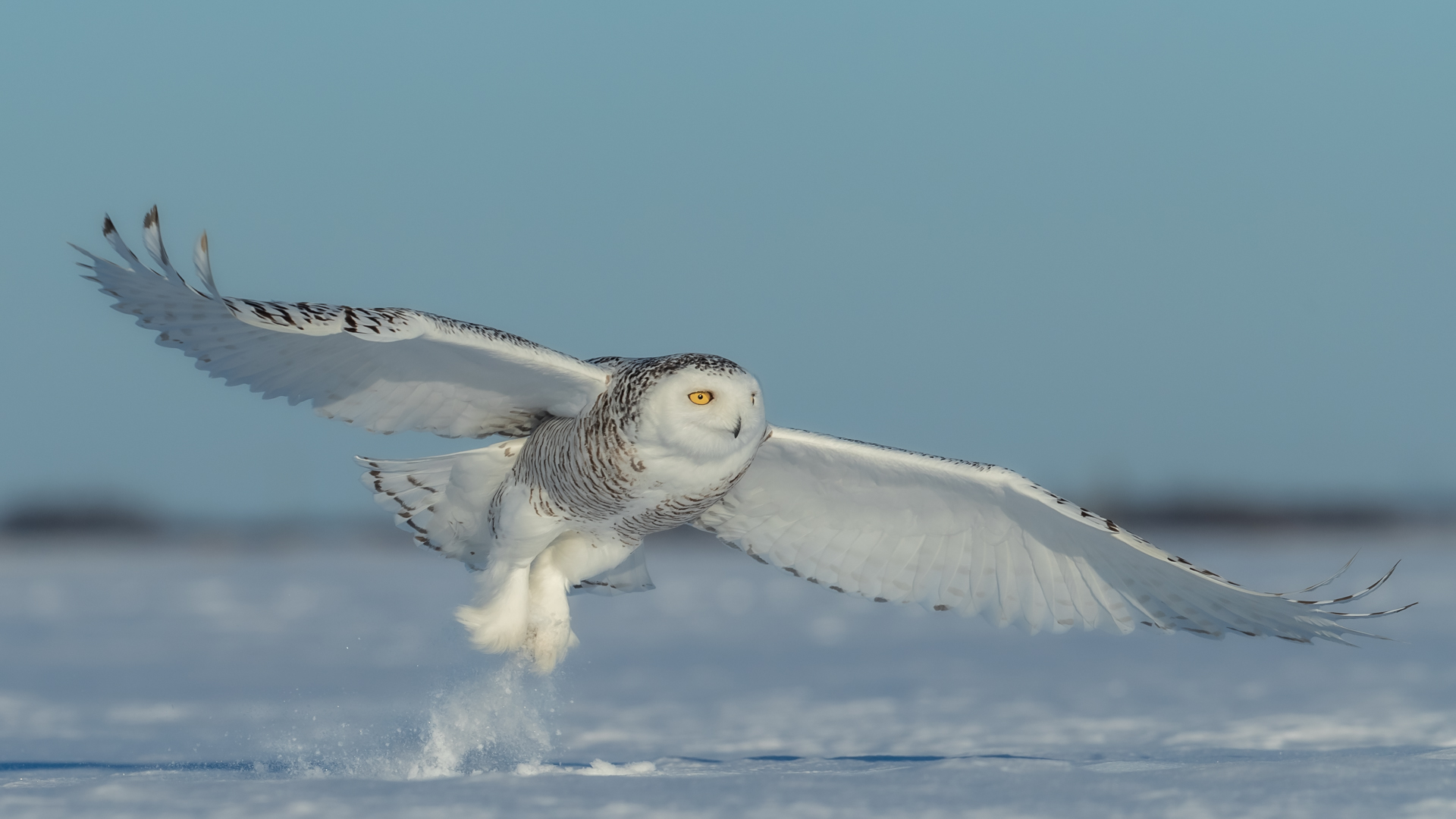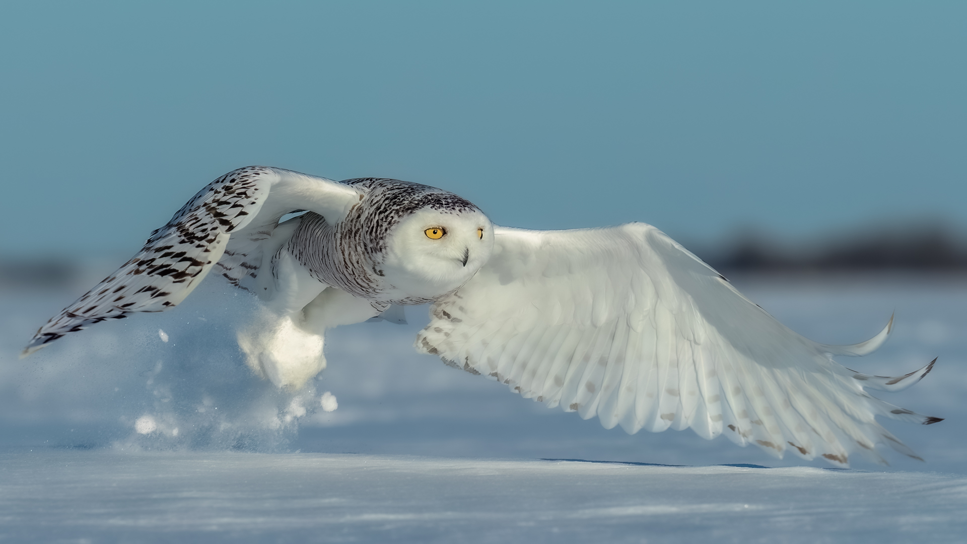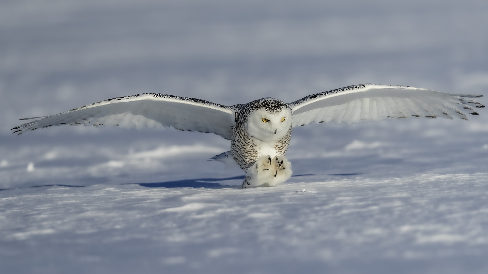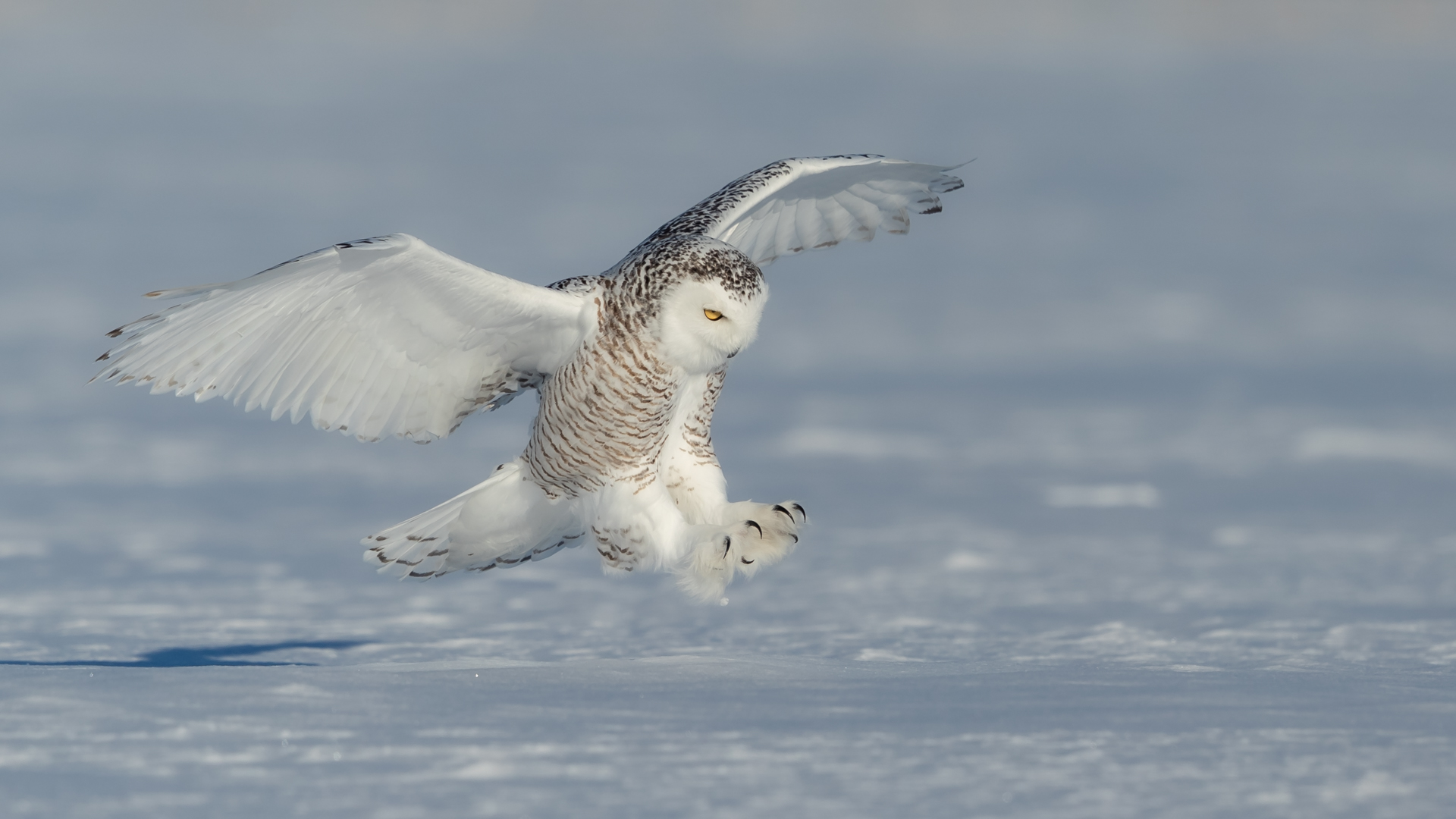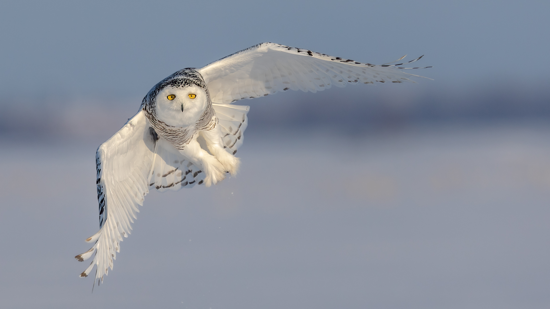Wprawdzie fascynacja ptakami nie powinna dyskryminować, czy wyróżniać jakiś ptasich gatunków, to jednak każde spotkanie z sową, przynajmniej jak dla mnie, jest na swój sposób wyjątkowe, zapada na długo w pamięci. Do fauny Polski zaliczanych jest 13 gatunków sów. 12 z nich z różnym skutkiem jakościowym udało mi się już sfotografować. Długi czas zbierałem wiadomości o miejscach w których można sfotografować puchacza śnieżnego - ostatniego brakującego mi gatunku sowy z polskiej fauny. W Polsce obserwowany był kilkadziesiąt razy. Wszystkie zdobyte informacje o warsztatach fotograficznych z puchaczem śnieżnym kierowały mnie do Kanady. Z różnych powodów wyjazd był odkładany w czasie, aż wreszcie zapadła decyzja i ustaliliśmy z Michałem termin na - luty 2020 roku. Wyjazd okazał się ekstremalny nie tylko pod względem finansowym, ale także trudności samego fotografowania. Z 5 dni fotografowania 2 dni były bardzo trudne pod względem pogodowym. Raz doskwierała nam temperatura, bo było poniżej 30 stopni Celsjusza, drugi raz wprawdzie nie było mniej niż minus 10 stopni Celsjusza, ale wiał dość silny wiatr i był słaby opad śniegu lub występowała zamieć. W takich warunkach przebywanie kilka godzin na dworze daje ostro w kość, nie mówiąc już, że trudno jest nawet o zmianę obiektywu w obawie o zaśnieżenie całego wewnętrznego układu optycznego. Do tego trzeba było chodzić po polach na których zalegała 20-30 centymetrowa warstwa śniegu. Ale takie jest środowisko naturalne puchacza śnieżnego. Po trudach dotarcia na miejsce (opóźniony samolot, zagubienie bagażu, nieczynna już wypożyczalnia samochodów), spóźnieni docieramy na umówione miejsce o 5 rano, a o 6:15 zaplanowane było śniadanie organizacyjne, po którym mieliśmy mieć pierwsze spotkanie z puchaczem śnieżnym. Lata wyczekiwania na to spotkanie potęgują emocje, bo przecież mamy fotografować dzikie ptaki, więc ostatecznie nic nie jest zagwarantowane na 100%. Puchacze śnieżne należą do krótkodystansowych migrantów i po wychowaniu młodych zaczynają wędrówką na południe tak długo, aż nie napotkają na tereny, na którym występuje obfitość gryzoni, które umożliwią im przetrwanie zimy. Z tych też powodów coraz rzadziej jest widywana w Polsce. Wiek temu, gdy w Polsce występowały zimne, srogie zimy mówiono wręcz o nalotach puchaczy śnieżnych zimą w Polsce. Obecnie zdarza się, na skutek zmian klimatycznych, że w ogóle nie odnotowuje się obserwacji tych sów w Polsce. Mimo mrozu, wychodzimy na zewnątrz około 7 godziny, jest jeszcze dość ciemno, ale podekscytowani z nadzieją na to, że sowy będą i zrobimy pierwsze zdjęcia. Przed domem, zaadoptowanym na hotel dla gości fotograficznych sowich warsztatów, rośnie przydrożne drzewo, a na nim na szczycie siedzi pierwszy nasz puchacz śnieżny- Kacper. Kacper dlatego, że była to najbardziej biała sowa z sów występujących w okolicy. Tych sów jest podobno 7, ale poza Kacprem i jeszcze jedną sową, reszta zachowywała tak duży dystans, że nie powstały zdjęcia z tych spotkań. Niestety z Kacprem powstało też niewiele zdjęć, bo był przeganiany przez sowę, dzięki której w większości powstała moja galeria puchacza śnieżnego. Puchacze śnieżne są mocno terytorialne. Pojawienie się innego puchacza zawsze związane było agresywnym zachowaniem. Tylko w takiej sytuacji można było usłyszeć głos puchacza. W ciągu 5 dni było to tylko 3 razy. Nie powstało nagranie z uwagi na krótki okres odzywania się ptaków i brak możliwości w mrozie posiadania „pod ręka” zestawu do nagrywania. Po tych kilku dniach obcowania z ptakami fascynacja puchaczami śnieżnym jeszcze się spotęgowała. Mimo starannych przygotowań, wielowarstwowego ubrania się, po fotografowaniu trwającym niecałe 2 godziny w temperaturze poniżej 30 stopni, trzeba było przerwać i ogrzać się w samochodzie. Tymczasem puchacze zachowywały się jakby panowała dodatnia temperatura. Siedziały na przydrożnych słupach, silosach, aby mieć dobrą pozycję do wypatrywania gryzoni. Ich zmysły są niesamowite. Z kilkuset metrów potrafią zobaczyć białą mysz na śniegu, bezszelestnie nadlecieć i upolować gryzonia. Robią tak także w wietrzne dni. Sowy były aktywne o wschodzie słońca i dwie godziny przed zachodem słońca. Z reguły, bo dwa dni było na tyle kiepsko w możliwości powstania dobrych zdjęć, że postanowiliśmy odpuścić i poszukać innych ptaków. Niestety poszukiwania puszczyka mszarnego i sowy jarzębatej zakończyły się fiaskiem. Poszukiwanie aktywnego karmnika zajęło nam pół dnia. Dość dziwne sformułowanie „aktywny karmnik”, ale adekwatne do sytuacji. Widywaliśmy wiele karmników, ale z uwagi, że regularnie nie dosypywano tam ziarna nie było ptaków. A szkoda, bo praktycznie codziennie w przerwie pomiędzy porannym fotografowaniem, a popołudniowym można by było fotografować ciekawe, piękne gatunki występujące w Ameryce Północnej. Zrobiliśmy kilka zdjęć nowych gatunków, ale niewykorzystanych możliwości czasowych było sporo i dlatego tak niewiele powstało zdjęć, poza puchaczem śnieżnym.