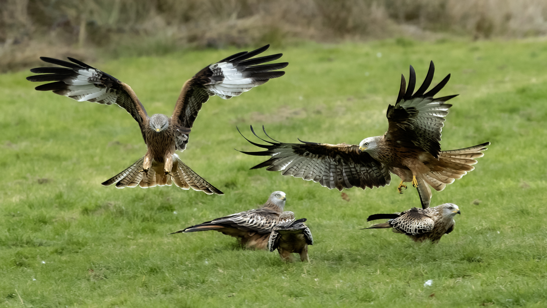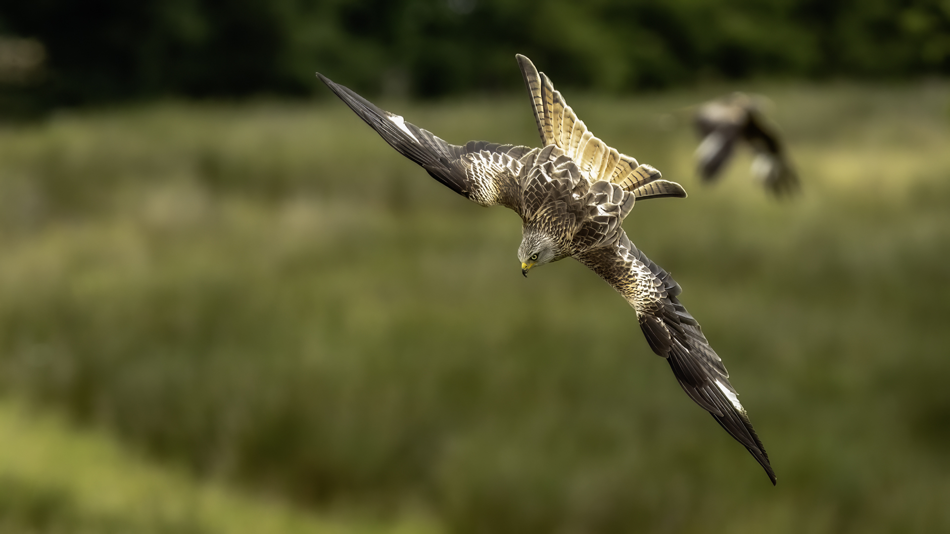 Kilkudniowy wyjazd do Wielkiej Brytanii był bez wątpienia zorganizowany z myślą o sokole wędrownym i płomykówce. Sesje fotografowania płomykówki zaplanowane były w godzinach od 20:00 do 2:00 w nocy, co pozostawiało sporo wolnego czasu w ciągu dnia – trzeba go było jakoś sensownie zagospodarować. Wybór padł na Gigrin Farm, oddaloną o ponad 200 kilometrów od czatowni, w której nocami czekaliśmy na sowy. Odwiedziłem to miejsce po raz pierwszy w listopadzie 2018 roku, a więc niemal siedem lat temu. Tego typu miejsc się nie zapomina – z przyjemnością więc tam wróciłem. Na przestrzeni lat dało się zauważyć kilka zmian. Pierwszą z nich były ceny za możliwość obserwacji i fotografowania kani podczas dokarmiania. Najtańszy bilet kosztował 11,5 funta – wzrost ceny nie był zaskakujący. Jednak za miejsce w najwyżej położonej i najlepiej usytuowanej czatowni trzeba było zapłacić już 45 funtów za zaledwie 1–2 godziny fotografowania. Tak znacząca podwyżka najpewniej wynika ze wzrostu popularności tego miejsca. Jesienią 2018 roku w czatowniach było zaledwie kilka osób. Tym razem – kilkadziesiąt. Być może wpływ miała na to pora roku. Letnie dokarmianie kań rozpoczyna się o godzinie 15:00 i w porównaniu z jesienią ptaków było mniej. Z fotograficznego punktu widzenia to akurat zaleta – w tłumie dynamicznie poruszających się sylwetek łatwo było się pogubić, zarówno mnie, jak i autofokusowi. Mimo wszystko udało się zrobić kilka interesujących zdjęć, które wzbogaciły moją galerię.