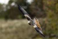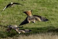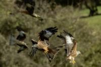 Zawsze uważałem kanię rudą za jednego z piękniejszych szponiastych ptaków należących do fauny Polski, a z tych regularnie występujących gatunków, chyba jednak najpiękniejszy. Niestety przy moich zasobach czasu wolnego skazany jestem na korzystanie z cudzych czatowni, aby móc podziwiać i fotografować te piękne ptaki. Dotychczasowe dwa spotkania, 6 lat temu i 3 lata temu były przypadkowe i zakończyły się dokumentacyjnymi zdjęciami na tle nieba. Taki gatunek nie może mieć jedno- gwiazdkowej, dokumentacyjnej galerii na mojej stronie! Na przestrzeni lat nie udało się znaleźć w Polsce czatowni, osoby która umożliwiłaby wreszcie wykonać dobre zdjęcia tych ptaków. Ale może i dobrze, bo wówczas nie odwiedziłbym pewnie Gigrin Farm (link) w Wielkiej Brytanii, a właściwie w Walii. Odwiedzenie tego miejsca polecam nie tylko fotografom, czy przyrodnikom, ale każdemu, bo takich ciekawych miejsc na świecie nie ma wiele. A dlaczego? Sądzę że niniejszy tekst to wyjaśni. Kanie ze swej natury są raczej płochliwe i trudne do sfotografowania- przynajmniej takie mamy polskie doświadczenia w tym zakresie. Na Gigrin Farm od wielu lat prowadzi się dokarmianie i rehabilitację chorych ptaków. Zapewniam, że wynika to troski o te ptaki, a nie jest to forma zarobkowania. Najtańszy wstęp do czatowni wynosi 7 funtów! I ta informacja, sądzę że wyjaśnia wszystko. Są to pieniądze przeznaczone na dokarmianie i opiekę nad tymi ptakami. Na razie brzmi to tuzinkowo, do czasu, gdy nie zobaczy się skali tego przedsięwzięcia. Dokarmianie rozpoczyna się zawsze o godzinie 14-stej. W pierwszy dzień poszedłem na nieco droższą, wysoką czatownię dwie godziny wcześniej. Wysoką, bo jest większe prawdopodobieństwo wykonania dynamicznych zdjęć z ciekawym, jesiennym tłem. Scena niczym z ptaków Hitchcocka. Ciemne, ciężkie chmury i na ich tle pojawiają się ptaki. Najpierw pojedyncze kanie, gawrony, myszołowy, czarnowrony, ale z każdą chwilą widać coraz więcej i coraz bliżej nadlatujących ptaków. Zataczają koła nad miejscem ich dokarmiania. Tuż przed godziną drugą można obserwować już setki kań! W jednym miejscu! Szybują w powietrznym tłoku, ale nie wpadają na siebie. Rzadko widać ich powietrzne zapasy i kolizje, jak to miało miejsce podczas obserwacji orłosępów. Po podaniu „do stołu” zaczynają się naloty ptaków. Z mojej czatowni, która bardziej przypomina balkon niż czatownię, czasami daje się odczuć powiew powietrza nadlatujących ptaków. Bliskość i ilość ptaków wprawiają w zdziwienie, osłupienie. Samo fotografowanie nie jest niczym ograniczone, żadnymi szybami, czy innymi stałymi elementami. Kanie tak się przyzwyczaiły do ludzi podczas karmienia, że nawet kilkudziesięciu obserwujących na raz to rzadkie widowisko, nie odstrasza ptaków. Na ten spektakl, na jedną godzinę przybywają całe rodziny, babcie z wnuczkami no i zawsze znajdzie się jakiś fotograf. Obserwacja niesamowita, ale ze zdjęciami już tak łatwo nie jest. Ilość ptaków i szybkość, z jaką nadlatują ptaki nie ułatwia fotografowania. Chciałoby się mieć zdjęcie z dość bliskiej odległości, ptaka w locie, na tle jesiennych kolorowych drzew. Przez pierwsze kilkanaście minut jest to bardzo trudne, bo w kadrze jest prawie zawsze kilka ptaków i zawsze część z nich poza kadrem. A spieszyć się trzeba, bo tak naprawdę pierwsza godzina jest najważniejsza, bo wówczas jest największa intensywność spotkań z kaniami. Najlepiej skoncentrować się na jednym ptaku, śledzić go i wykonywać co chwilę zdjęcia. Niestety przy wieczornym przeglądaniu zdjęć dopiero się daje zauważyć solidne numery identyfikacyjne przytwierdzone do skrzydeł niektórych ptaków, które zupełnie dyskredytują zdjęcie. Takich oznakowanych ptaków było chyba kilkanaście. Na kolejną godzinę lub dwie czasami pozostawało już tylko kilka ptaków. Na szczęście dla odmiany lądowały na ziemi i przeszukiwały trawę w poszukiwaniu resztek z posiłku. Powstają tym razem z dolnych czatowni statyczne zdjęcia kani. Zdjęć powstają setki, tysiące podczas trzech spotkań z ptakami i na szczęście jest z czego wybrać zdjęcia na pamiątkę tego niesamowitego spotkania z kaniami. Do galerii dodałem też ścieżkę dźwiękową z głosem kani. Przed posiłkiem, część ptaków przesiadywała na pobliskich drzewach i wydawała co chwilę swoje pochrapujące gwizdy. Wreszcie do galerii kani zawitały zdjęcia należycie oddające urok i piękno tych ptaków, galeria staje się 4-ro gwiazdkową, bardzo dobrą galerią na mojej stronie i trafia też do kategorii moich ulubionych galerii. Podziękowania dla wszystkich z Gigrin Farm, za to że stworzyli takie jedyne w swoim rodzaju na świecie miejsce, za miłą i przyjazną atmosferę i cieszę się, że dane było mi to zobaczyć, bo zapewniam Was, że warto…