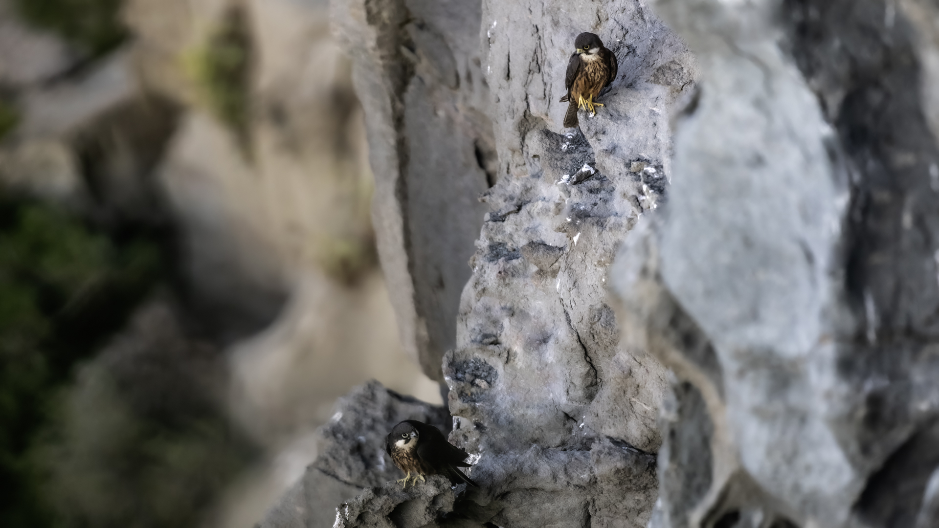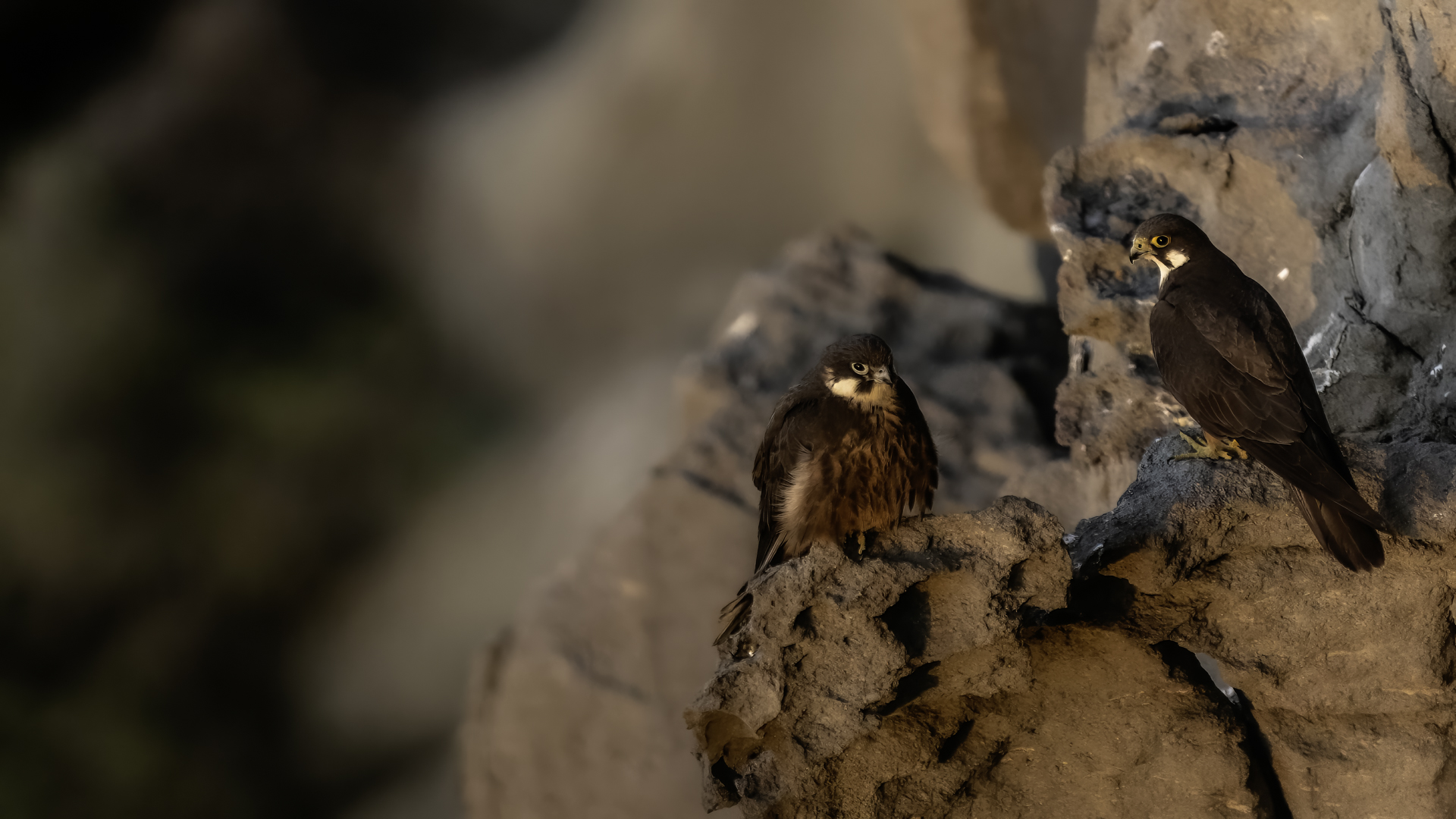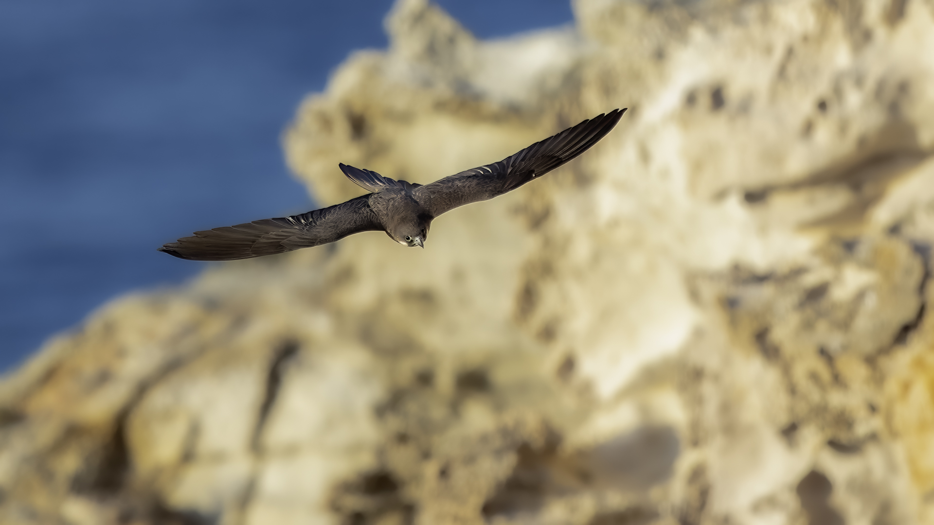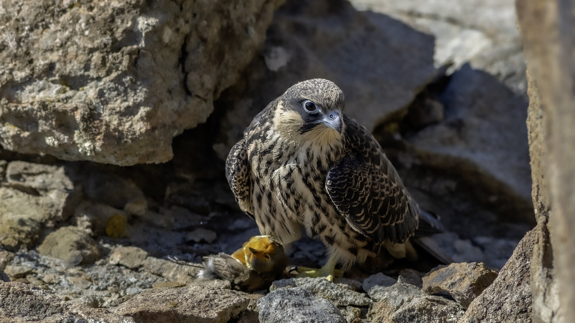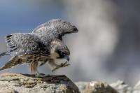 Ostatni z sokołów zaliczanych do fauny Polski trafia wreszcie do mojej galerii i to nie tylko z dokumentacyjnymi zdjęciami swojej zawartości. Sokoły skalne może nie należą do bardzo rzadkich gatunków, ale występują na urwiskach skalnych, więc trudno o dobre zdjęcia, które wymagają zmniejszenia dystansu do ptaków. Występują w porze lęgowej niemal w całym basenie Morza Śródziemnego. Mnie udało się je obserwować i fotografować we Włoszech. Miejsce gniazdowania sokołów doprawdy zapiera dech w piersiach. Przepiękne formacje skalne, klify z różnymi pęknięciami, wyżłobieniami, gdzie sokoły mają tysiące miejsc do założenia gniazda. Siedząc o świcie w czatowni sokołowej słońce początkowo barwi swym światłem cały klif na intensywnie żółto, by po jakimś czasie intensywne światło powoduje powstanie dużych kontrastów i zupełnie inne w odbiorze wrażenia estetyczne siedliska sokołów. Ptaków było sporo i czasami były na tyle blisko, że pamiątkowy film z takiego spotkania trzeba było wykonać telefonem, bo długie obiektywy, które były pod ręką nie dawały rady. Poświeciłem sporo czasu, na posiedzenia wśród sokołów na klifie bo to niesamowite być tak blisko nich w tak pięknym, niesamowitym otoczeniu przyrody. Zdjęcia statyczne, siedzących ptaków na skale to nie problem zrobić w tym miejscu. Potrzeba tylko trochę wytrwałości, determinacji i cierpliwości, aż sokół usiądzie na tyle blisko w dobrym świetle, że powstanie dobre zdjęcie. O te dynamiczne ujęcia ptaków w locie, jak zawsze już trudniej, co wymagało wielu prób, by powstały. Sokoły, jak to sokoły, bardzo szybko latają i niestety dość niespodziewanie zmieniają kierunek lotu, to nurkując, to się wznosząc. Robią to bardzo szybko, co utrudnia uwiecznienie w locie. Do tego trzeba pamiętać, że to dość niewielkie ptaki. Masa ich ciała to kilkaset gramów, nie przekraczają 0,5 kg, a rozpiętość skrzydeł to około jeden metr. Ale kilka dni, sesje o świcie i przed zachodem słońca i udało się zrobić zdjęcia na bardzo dobrą galerię na moją stronę. Najmniejszy problem był z nagraniem ścieżki dźwiękowej. Odzywały się niemal cały czas i powstało też dobrej jakości nagranie głosu sokoła skalnego. Niesamowite jest to, że nagle w październiku, cała kolonia w poszukiwaniu pożywienia na zimę odbędzie migrację na Madagaskar. W basenie morza Śródziemnego warunki klimatyczne nie są na tyle złe, aby sokoły musiały migrować, ale nie ma wówczas dość pożywienia, aby przetrwały. Ale dlaczego na Madagaskar?- tego chyba nikt nie wie. Podczas fotografowania, zaobserwowałem, że najczęściej przynoszonym ptakiem młodym podlotom sokołów był rudzik, dla których migracja skończyła we Włoszech. Dość specyficzne uczucie jak sokół przynosi zabitego rudzika młodym na półkę skalną. W Polsce je wielokrotnie fotografowałem, podziwiałem a tu nagle martwy rudzik. W tym roku, pożywienia chyba było pod dostatkiem, bo w każdym gnieździe były po dwa młode ptaki, a otrzymując jednego rudzika do podziału, ptaki nie wałczyły, tylko zgodnie się nim podzieliły. Wspaniałe wrażenie, niesamowite ptaki- powstała nietuzinkowa galeria, która z racji powstałych nietuzinkowych zdjęć i wspomnień z pobytu we Włoszech trafia do moich ulubionych galerii.