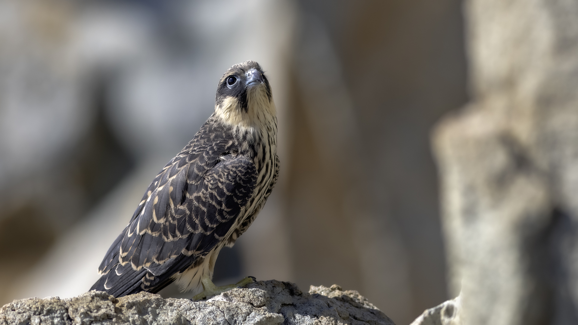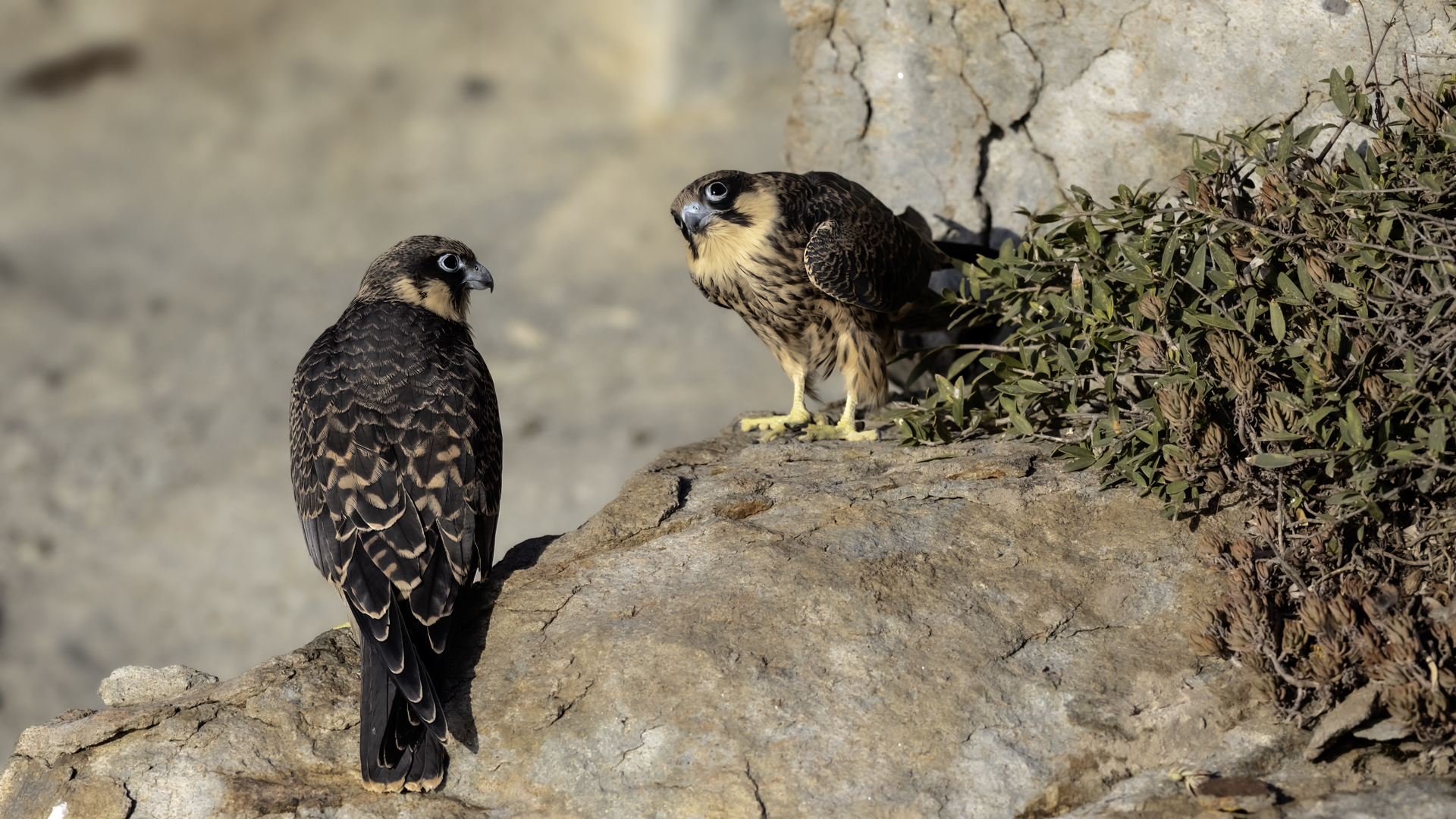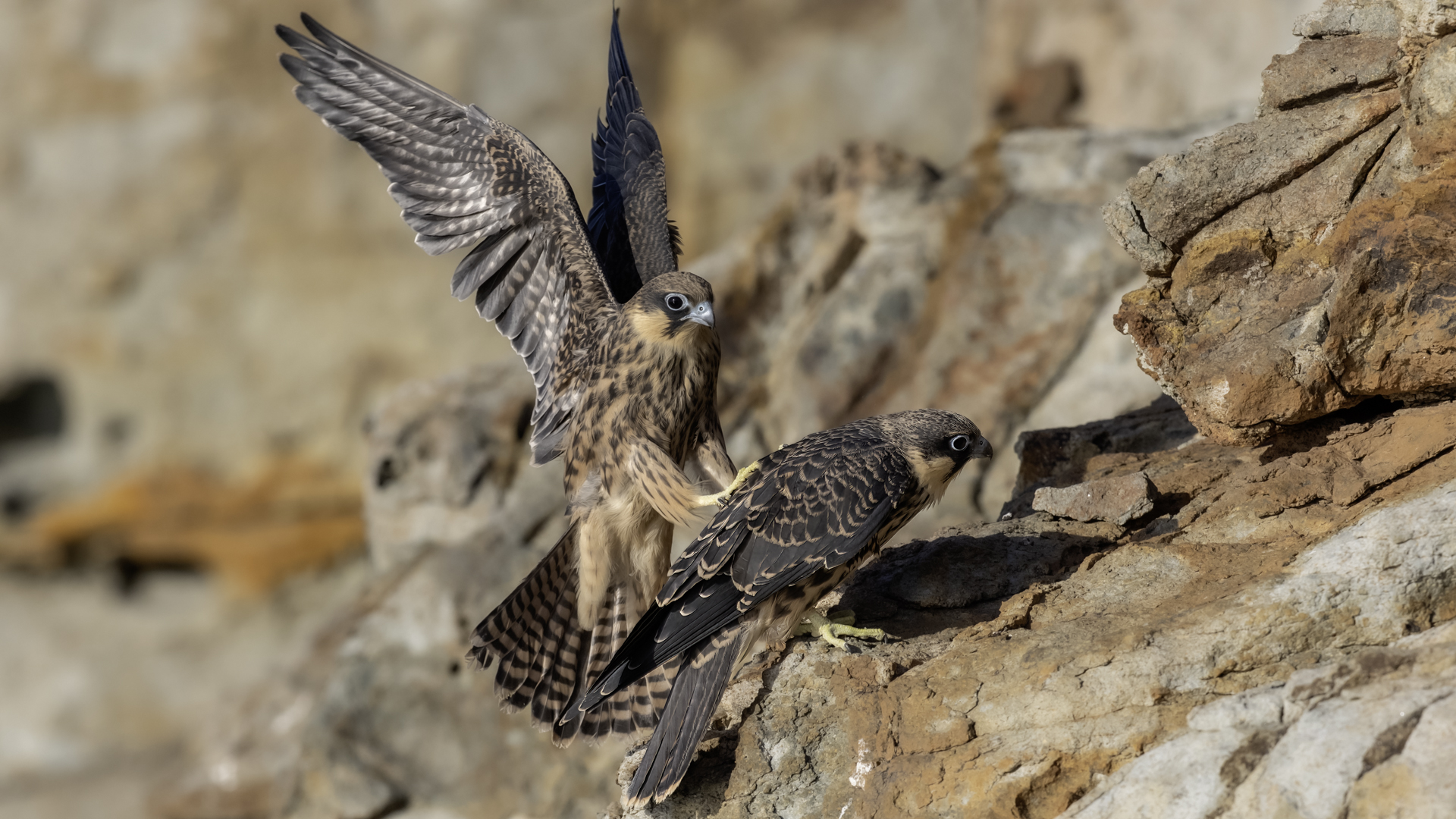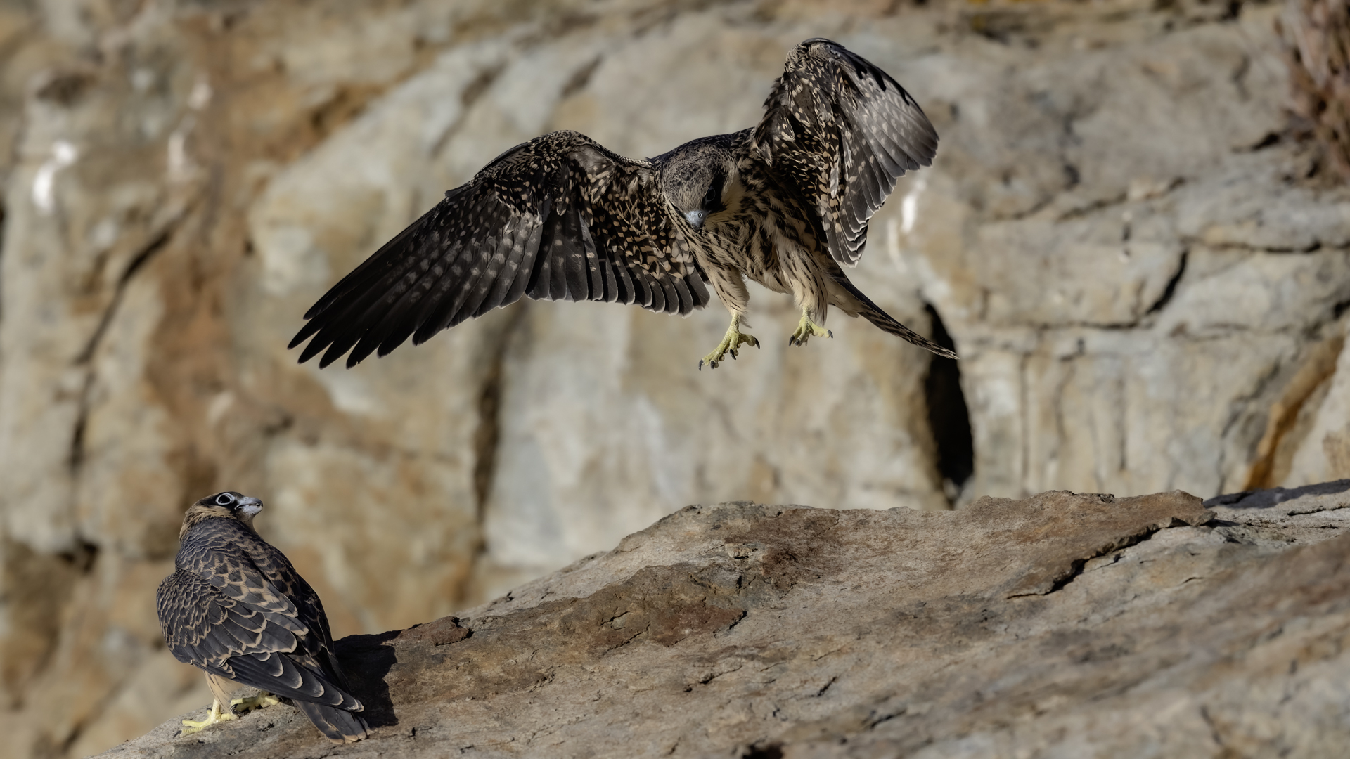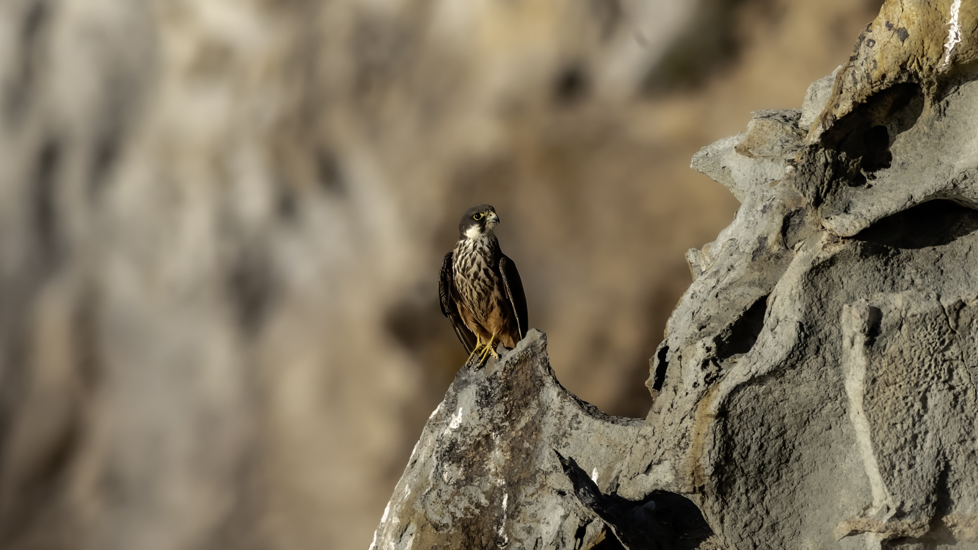 Ostatni z sokołów zaliczanych do fauny Polski trafia wreszcie do mojej galerii i to nie tylko z dokumentacyjnymi zdjęciami swojej zawartości. Sokoły skalne może nie należą do bardzo rzadkich gatunków, ale występują na urwiskach skalnych, więc trudno o dobre zdjęcia, które wymagają zmniejszenia dystansu do ptaków. Występują w porze lęgowej niemal w całym basenie Morza Śródziemnego. Mnie udało się je obserwować i fotografować we Włoszech. Miejsce gniazdowania sokołów doprawdy zapiera dech w piersiach. Przepiękne formacje skalne, klify z różnymi pęknięciami, wyżłobieniami, gdzie sokoły mają tysiące miejsc do założenia gniazda. Siedząc o świcie w czatowni sokołowej słońce początkowo barwi swym światłem cały klif na intensywnie żółto, by po jakimś czasie intensywne światło powoduje powstanie dużych kontrastów i zupełnie inne w odbiorze wrażenia estetyczne siedliska sokołów. Ptaków było sporo i czasami były na tyle blisko, że pamiątkowy film z takiego spotkania trzeba było wykonać telefonem, bo długie obiektywy, które były pod ręką nie dawały rady. Poświeciłem sporo czasu, na posiedzenia wśród sokołów na klifie bo to niesamowite być tak blisko nich w tak pięknym, niesamowitym otoczeniu przyrody. Zdjęcia statyczne, siedzących ptaków na skale to nie problem zrobić w tym miejscu. Potrzeba tylko trochę wytrwałości, determinacji i cierpliwości, aż sokół usiądzie na tyle blisko w dobrym świetle, że powstanie dobre zdjęcie. O te dynamiczne ujęcia ptaków w locie, jak zawsze już trudniej, co wymagało wielu prób, by powstały. Sokoły, jak to sokoły, bardzo szybko latają i niestety dość niespodziewanie zmieniają kierunek lotu, to nurkując, to się wznosząc. Robią to bardzo szybko, co utrudnia uwiecznienie w locie. Do tego trzeba pamiętać, że to dość niewielkie ptaki. Masa ich ciała to kilkaset gramów, nie przekraczają 0,5 kg, a rozpiętość skrzydeł to około jeden metr. Ale kilka dni, sesje o świcie i przed zachodem słońca i udało się zrobić zdjęcia na bardzo dobrą galerię na moją stronę. Najmniejszy problem był z nagraniem ścieżki dźwiękowej. Odzywały się niemal cały czas i powstało też dobrej jakości nagranie głosu sokoła skalnego. Niesamowite jest to, że nagle w październiku, cała kolonia w poszukiwaniu pożywienia na zimę odbędzie migrację na Madagaskar. W basenie morza Śródziemnego warunki klimatyczne nie są na tyle złe, aby sokoły musiały migrować, ale nie ma wówczas dość pożywienia, aby przetrwały. Ale dlaczego na Madagaskar?- tego chyba nikt nie wie. Podczas fotografowania, zaobserwowałem, że najczęściej przynoszonym ptakiem młodym podlotom sokołów był rudzik, dla których migracja skończyła we Włoszech. Dość specyficzne uczucie jak sokół przynosi zabitego rudzika młodym na półkę skalną. W Polsce je wielokrotnie fotografowałem, podziwiałem a tu nagle martwy rudzik. W tym roku, pożywienia chyba było pod dostatkiem, bo w każdym gnieździe były po dwa młode ptaki, a otrzymując jednego rudzika do podziału, ptaki nie wałczyły, tylko zgodnie się nim podzieliły. Wspaniałe wrażenie, niesamowite ptaki- powstała nietuzinkowa galeria, która z racji powstałych nietuzinkowych zdjęć i wspomnień z pobytu we Włoszech trafia do moich ulubionych galerii.