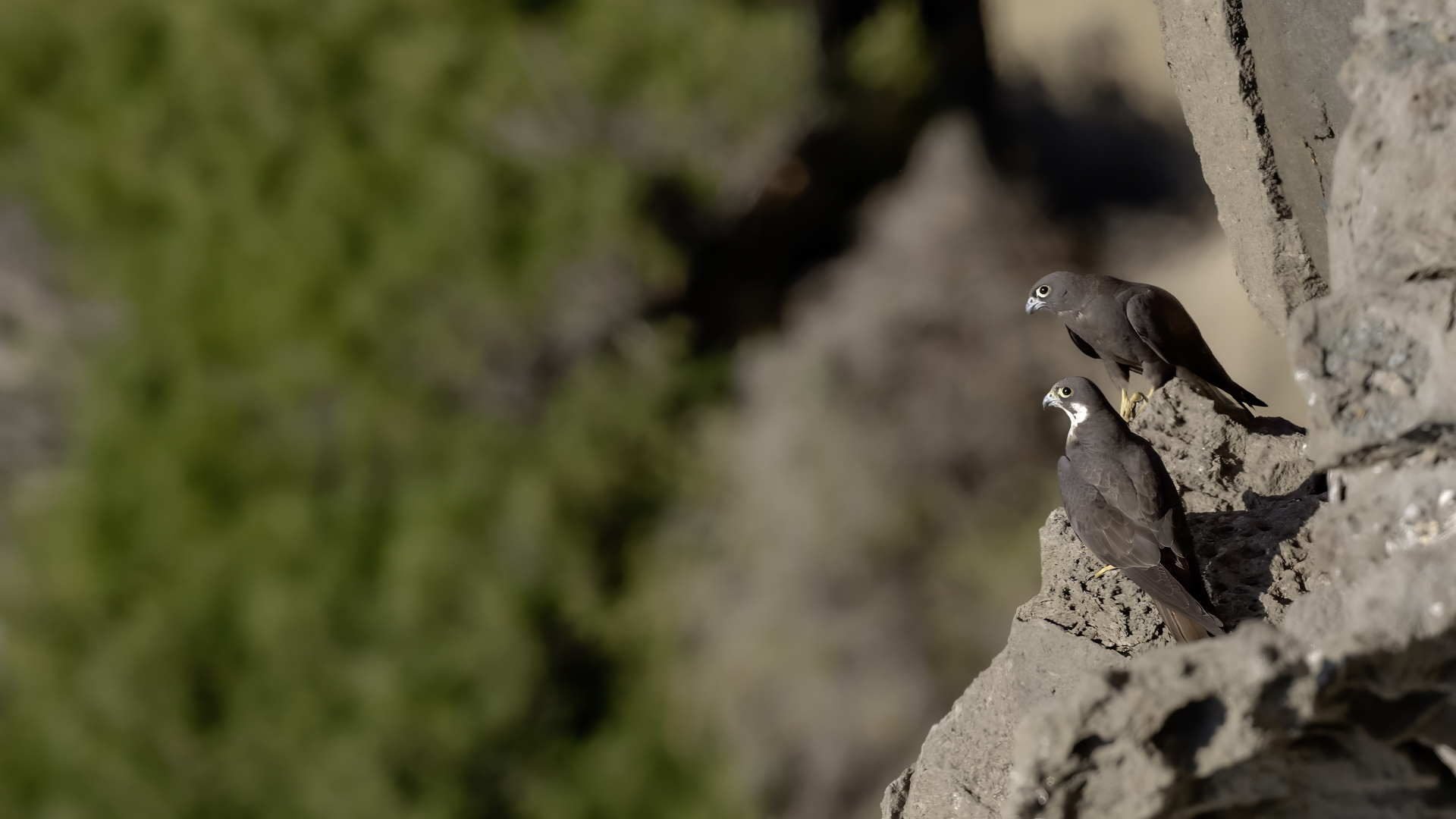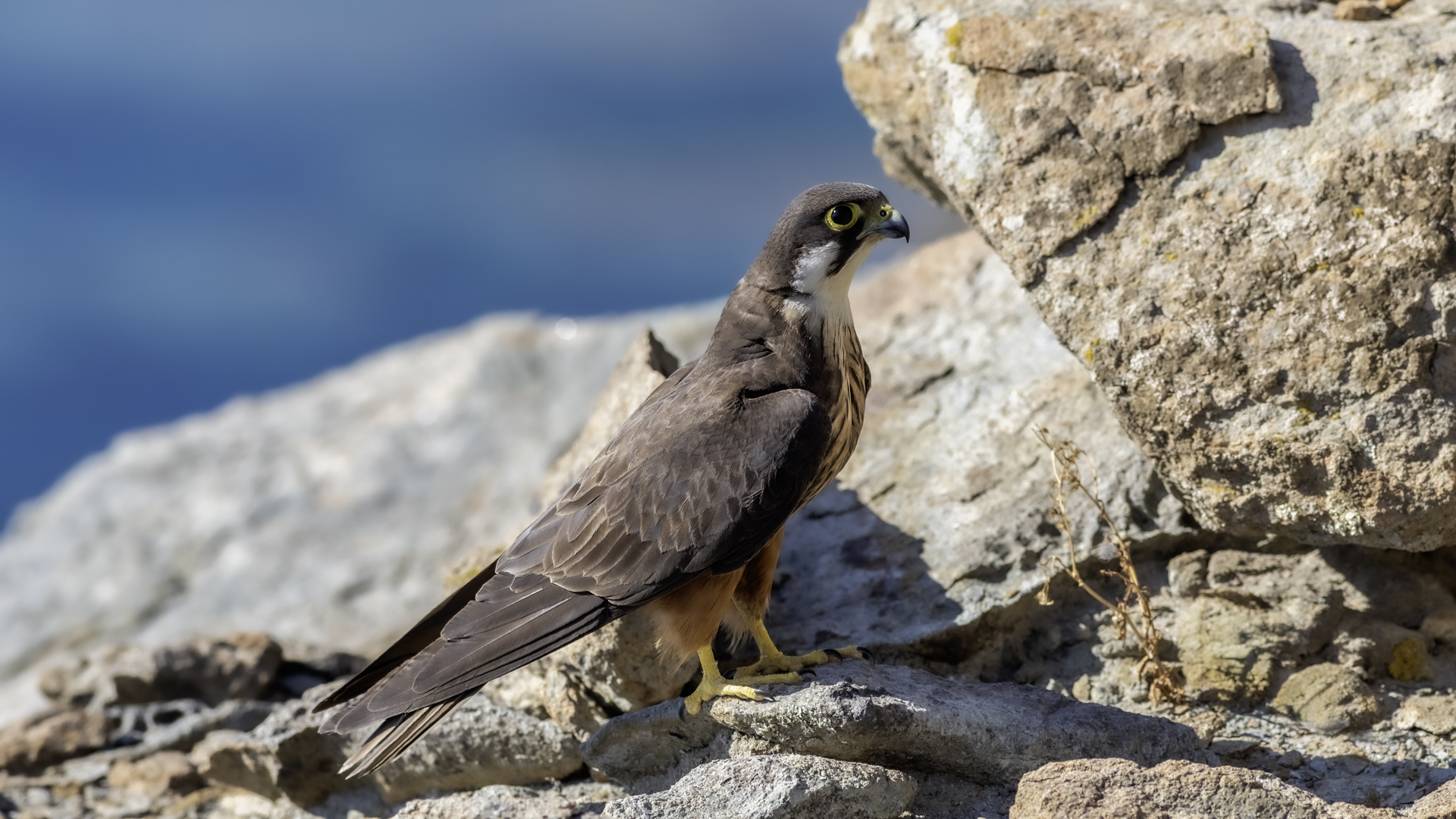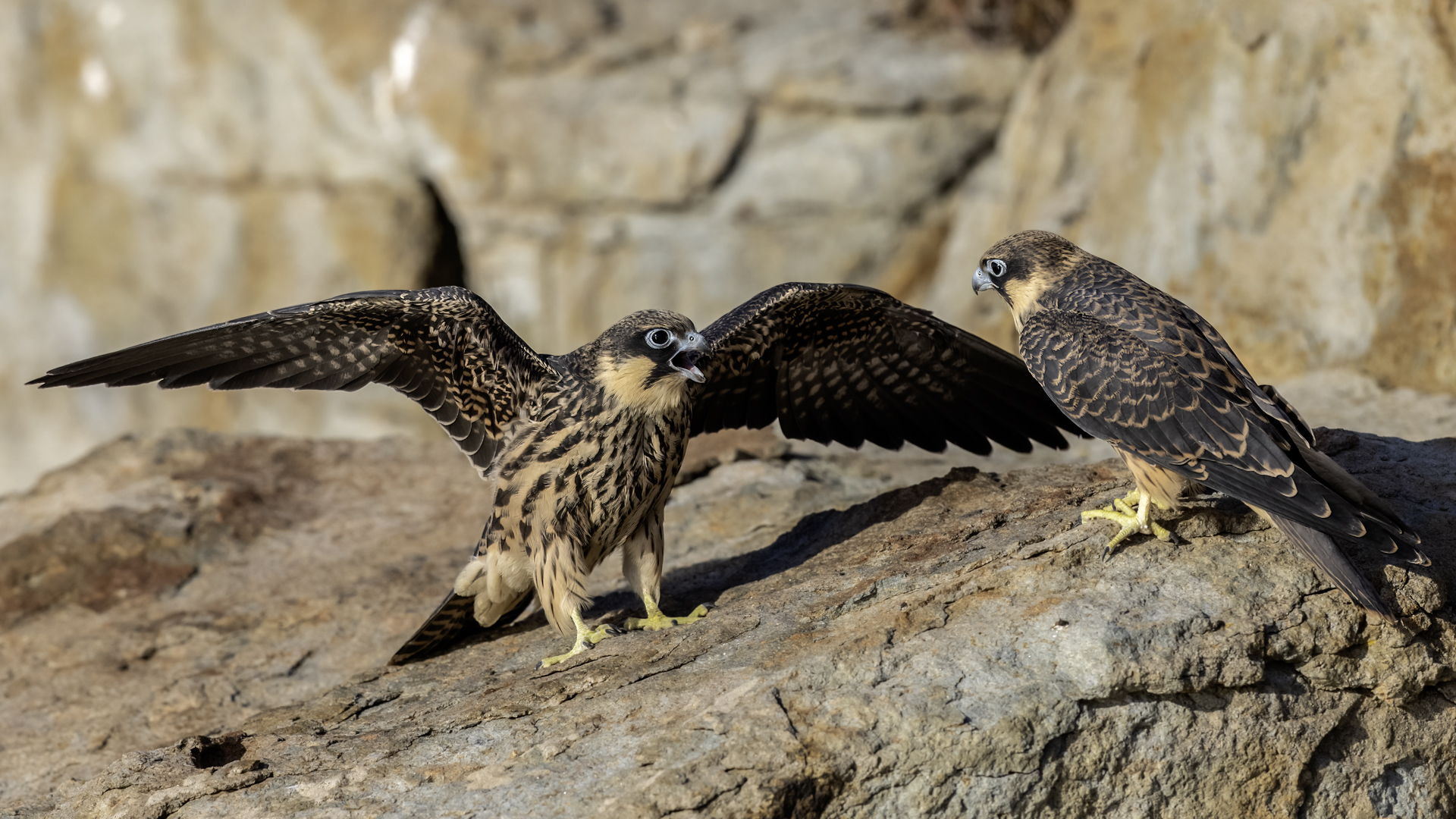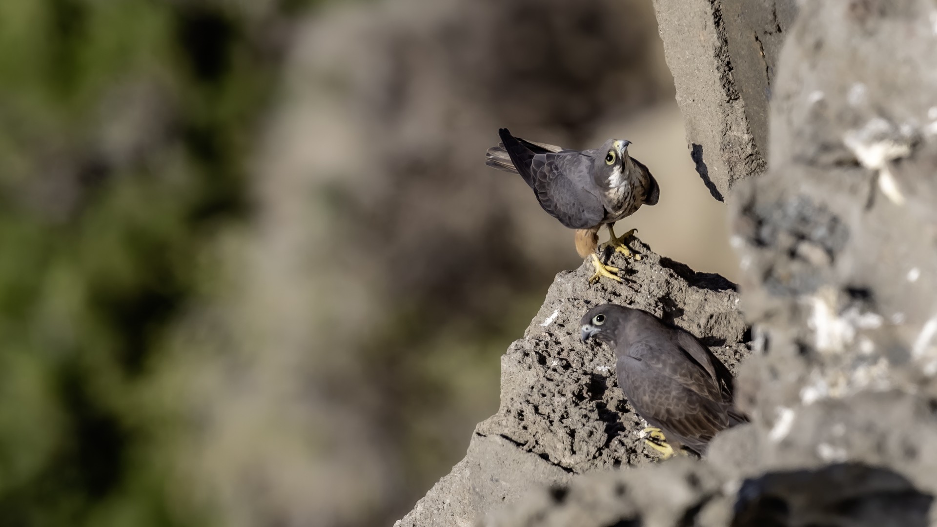 Ostatni z sokołów zaliczanych do fauny Polski trafia wreszcie do mojej galerii i to nie tylko z dokumentacyjnymi zdjęciami swojej zawartości. Sokoły skalne może nie należą do bardzo rzadkich gatunków, ale występują na urwiskach skalnych, więc trudno o dobre zdjęcia, które wymagają zmniejszenia dystansu do ptaków. Występują w porze lęgowej niemal w całym basenie Morza Śródziemnego. Mnie udało się je obserwować i fotografować we Włoszech. Miejsce gniazdowania sokołów doprawdy zapiera dech w piersiach. Przepiękne formacje skalne, klify z różnymi pęknięciami, wyżłobieniami, gdzie sokoły mają tysiące miejsc do założenia gniazda. Siedząc o świcie w czatowni sokołowej słońce początkowo barwi swym światłem cały klif na intensywnie żółto, by po jakimś czasie intensywne światło powoduje powstanie dużych kontrastów i zupełnie inne w odbiorze wrażenia estetyczne siedliska sokołów. Ptaków było sporo i czasami były na tyle blisko, że pamiątkowy film z takiego spotkania trzeba było wykonać telefonem, bo długie obiektywy, które były pod ręką nie dawały rady. Poświeciłem sporo czasu, na posiedzenia wśród sokołów na klifie bo to niesamowite być tak blisko nich w tak pięknym, niesamowitym otoczeniu przyrody. Zdjęcia statyczne, siedzących ptaków na skale to nie problem zrobić w tym miejscu. Potrzeba tylko trochę wytrwałości, determinacji i cierpliwości, aż sokół usiądzie na tyle blisko w dobrym świetle, że powstanie dobre zdjęcie. O te dynamiczne ujęcia ptaków w locie, jak zawsze już trudniej, co wymagało wielu prób, by powstały. Sokoły, jak to sokoły, bardzo szybko latają i niestety dość niespodziewanie zmieniają kierunek lotu, to nurkując, to się wznosząc. Robią to bardzo szybko, co utrudnia uwiecznienie w locie. Do tego trzeba pamiętać, że to dość niewielkie ptaki. Masa ich ciała to kilkaset gramów, nie przekraczają 0,5 kg, a rozpiętość skrzydeł to około jeden metr. Ale kilka dni, sesje o świcie i przed zachodem słońca i udało się zrobić zdjęcia na bardzo dobrą galerię na moją stronę. Najmniejszy problem był z nagraniem ścieżki dźwiękowej. Odzywały się niemal cały czas i powstało też dobrej jakości nagranie głosu sokoła skalnego. Niesamowite jest to, że nagle w październiku, cała kolonia w poszukiwaniu pożywienia na zimę odbędzie migrację na Madagaskar. W basenie morza Śródziemnego warunki klimatyczne nie są na tyle złe, aby sokoły musiały migrować, ale nie ma wówczas dość pożywienia, aby przetrwały. Ale dlaczego na Madagaskar?- tego chyba nikt nie wie. Podczas fotografowania, zaobserwowałem, że najczęściej przynoszonym ptakiem młodym podlotom sokołów był rudzik, dla których migracja skończyła we Włoszech. Dość specyficzne uczucie jak sokół przynosi zabitego rudzika młodym na półkę skalną. W Polsce je wielokrotnie fotografowałem, podziwiałem a tu nagle martwy rudzik. W tym roku, pożywienia chyba było pod dostatkiem, bo w każdym gnieździe były po dwa młode ptaki, a otrzymując jednego rudzika do podziału, ptaki nie wałczyły, tylko zgodnie się nim podzieliły. Wspaniałe wrażenie, niesamowite ptaki- powstała nietuzinkowa galeria, która z racji powstałych nietuzinkowych zdjęć i wspomnień z pobytu we Włoszech trafia do moich ulubionych galerii.