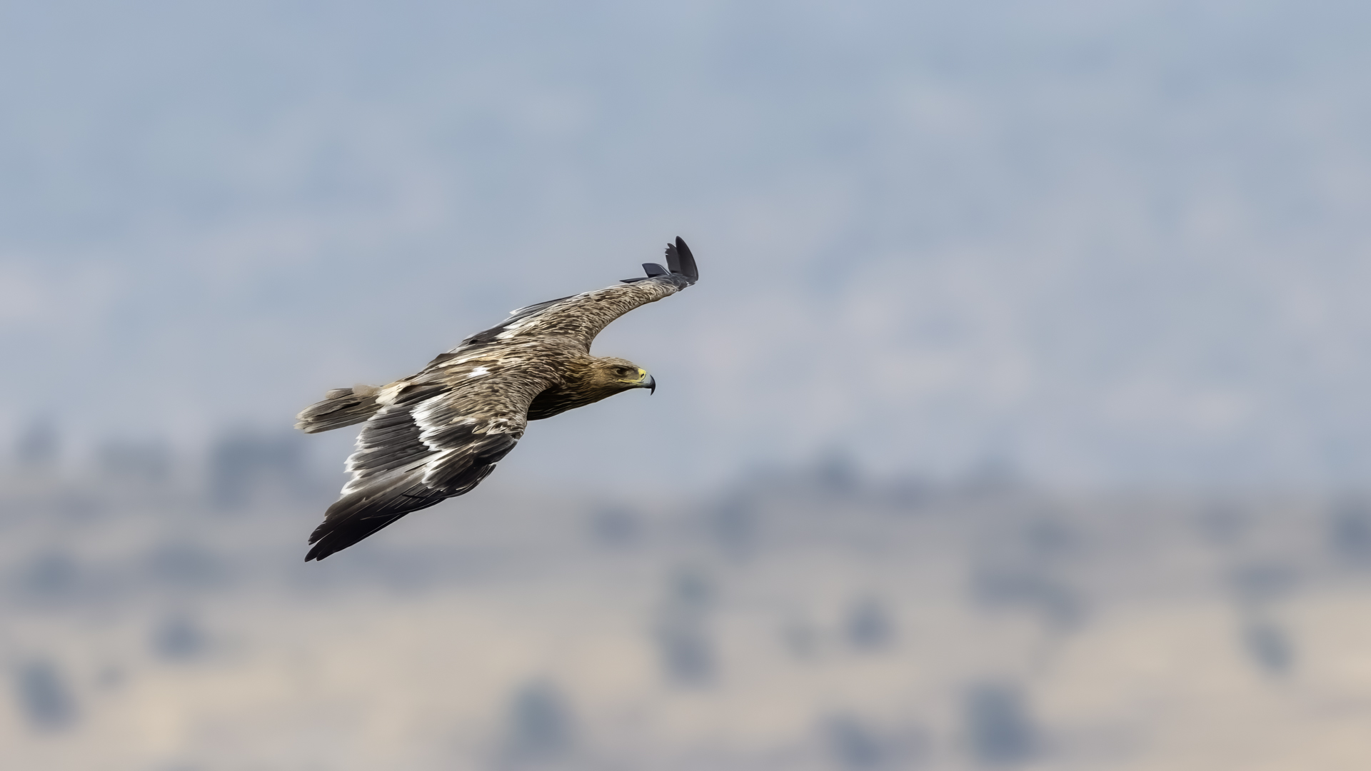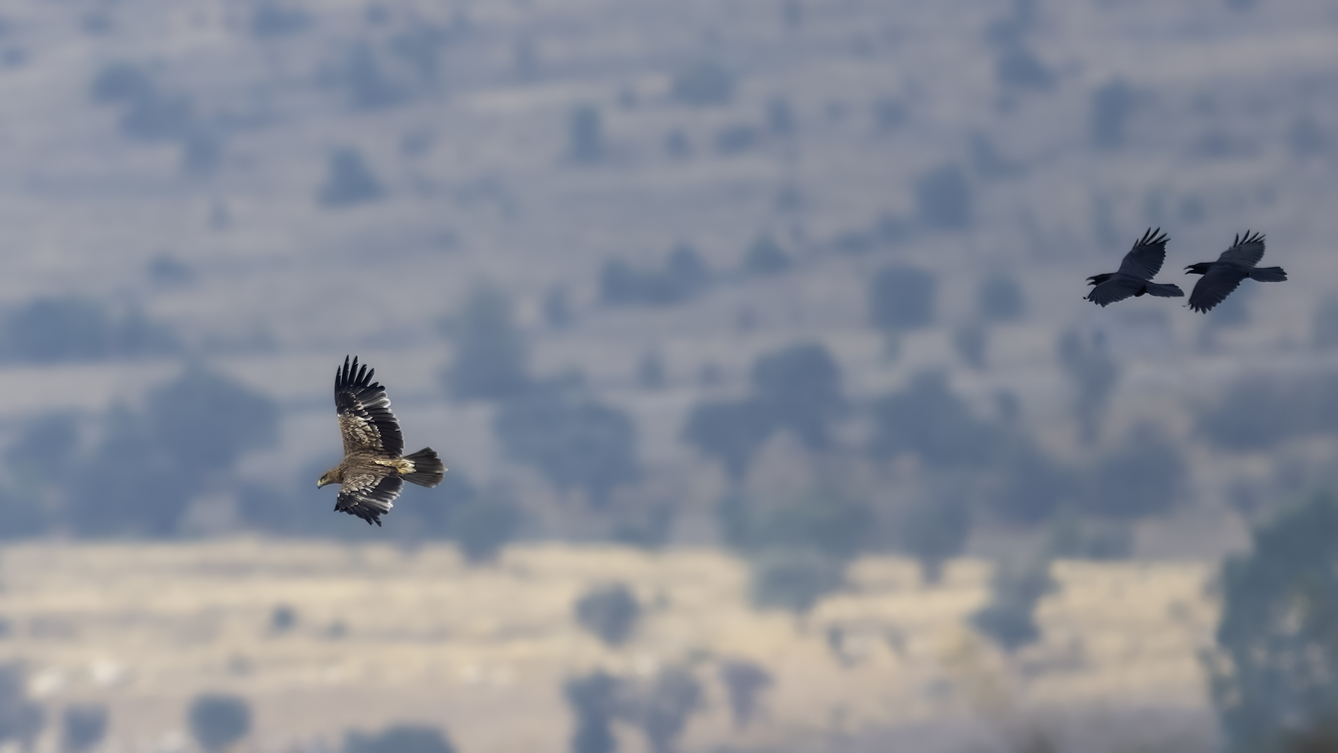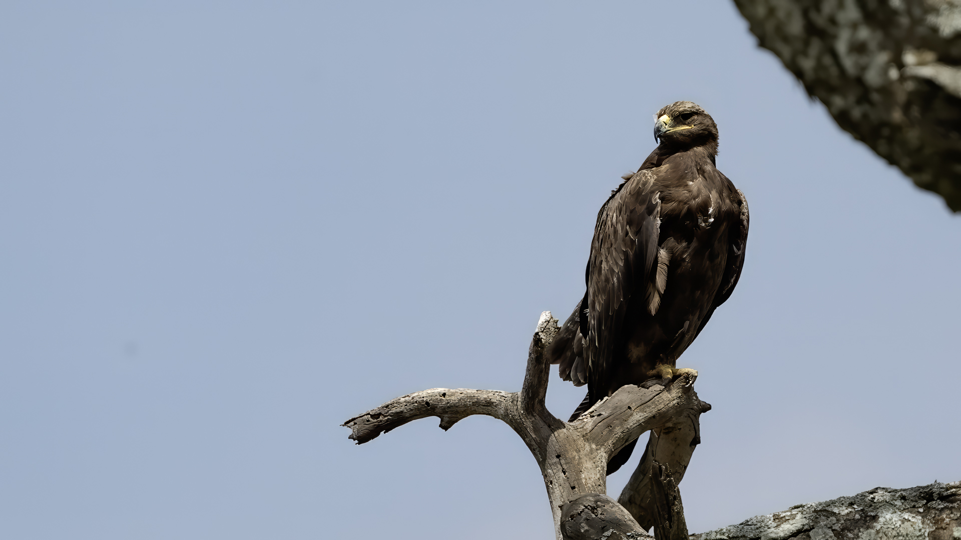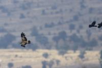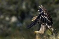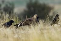 A zaczynam od orła cesarskiego, który z rodziny orłów jest pierwszym gatunkiem z tak rozbudowaną zawartością galerii na mojej stronie. Ilość i jakość zdjęć, jak na galerię startową jest imponująca, przynajmniej jak dla mnie, i z tego właśnie powodu pewnie będę do niej wracał nieraz. A wszystko dzięki czatowni. Zdjęcia z czatowni prawie zawsze będą górowały nad zdjęciami z podejścia i bez maskowania. Choć i tu się mocno zdziwiłem, bo raz wracając popołudniu do hotelu, 200 metrów za wsią spotkaliśmy dwa orły cesarskie, jak żerowały na jakiejś padlinie. Fotografowaliśmy z samochodu orła cesarskiego, który niespecjalnie był nami przejęty! Niesamowite wrażenie. Są to rzeczywiście piękne, majestatyczne ptaki, wspaniałe w zachowaniu i locie. Widzieliśmy ich sczepione, spadające sylwetki, jak grają w cykora, niestety zbyt daleko dla ciekawego ujęcia. Orły cesarskie masą ciała nie przekraczają 4,5 kilograma, a rozpiętość ich skrzydeł to około 2 metry. Nie należą zatem do rekordzistów pod względem rozmiarów, ale ich urokowi, pięknu, trudno się oprzeć. Miejmy nadzieję, że oddałem cesarzowi co cesarskie w prezentowanej galerii, ale zobaczcie i oceńcie sami, zapraszam…