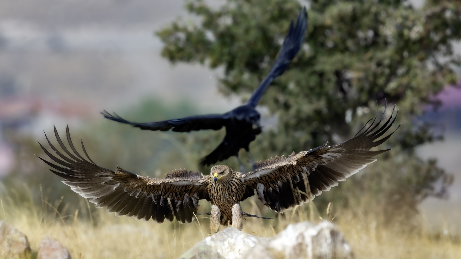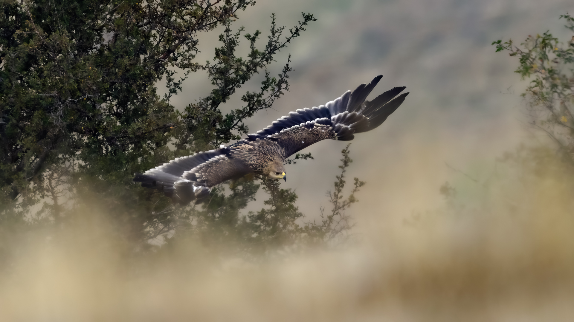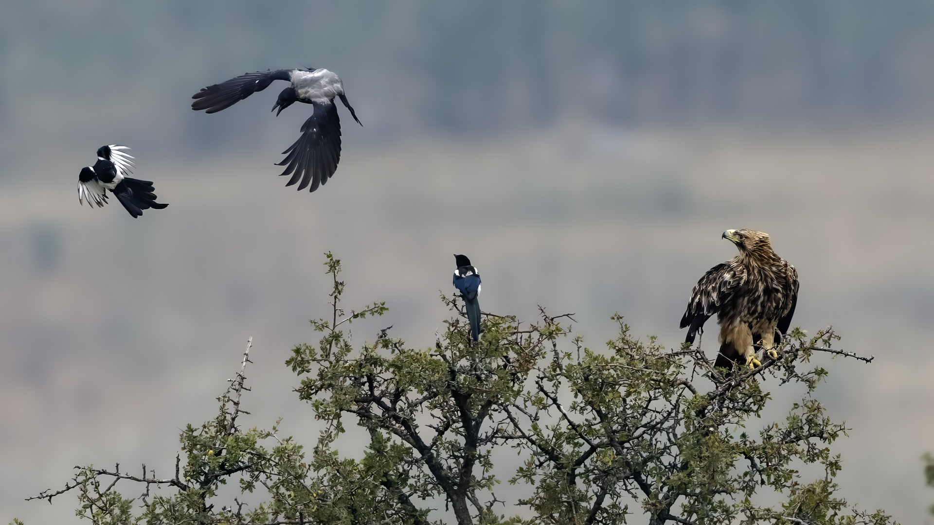 A zaczynam od orła cesarskiego, który z rodziny orłów jest pierwszym gatunkiem z tak rozbudowaną zawartością galerii na mojej stronie. Ilość i jakość zdjęć, jak na galerię startową jest imponująca, przynajmniej jak dla mnie, i z tego właśnie powodu pewnie będę do niej wracał nieraz. A wszystko dzięki czatowni. Zdjęcia z czatowni prawie zawsze będą górowały nad zdjęciami z podejścia i bez maskowania. Choć i tu się mocno zdziwiłem, bo raz wracając popołudniu do hotelu, 200 metrów za wsią spotkaliśmy dwa orły cesarskie, jak żerowały na jakiejś padlinie. Fotografowaliśmy z samochodu orła cesarskiego, który niespecjalnie był nami przejęty! Niesamowite wrażenie. Są to rzeczywiście piękne, majestatyczne ptaki, wspaniałe w zachowaniu i locie. Widzieliśmy ich sczepione, spadające sylwetki, jak grają w cykora, niestety zbyt daleko dla ciekawego ujęcia. Orły cesarskie masą ciała nie przekraczają 4,5 kilograma, a rozpiętość ich skrzydeł to około 2 metry. Nie należą zatem do rekordzistów pod względem rozmiarów, ale ich urokowi, pięknu, trudno się oprzeć. Miejmy nadzieję, że oddałem cesarzowi co cesarskie w prezentowanej galerii, ale zobaczcie i oceńcie sami, zapraszam…