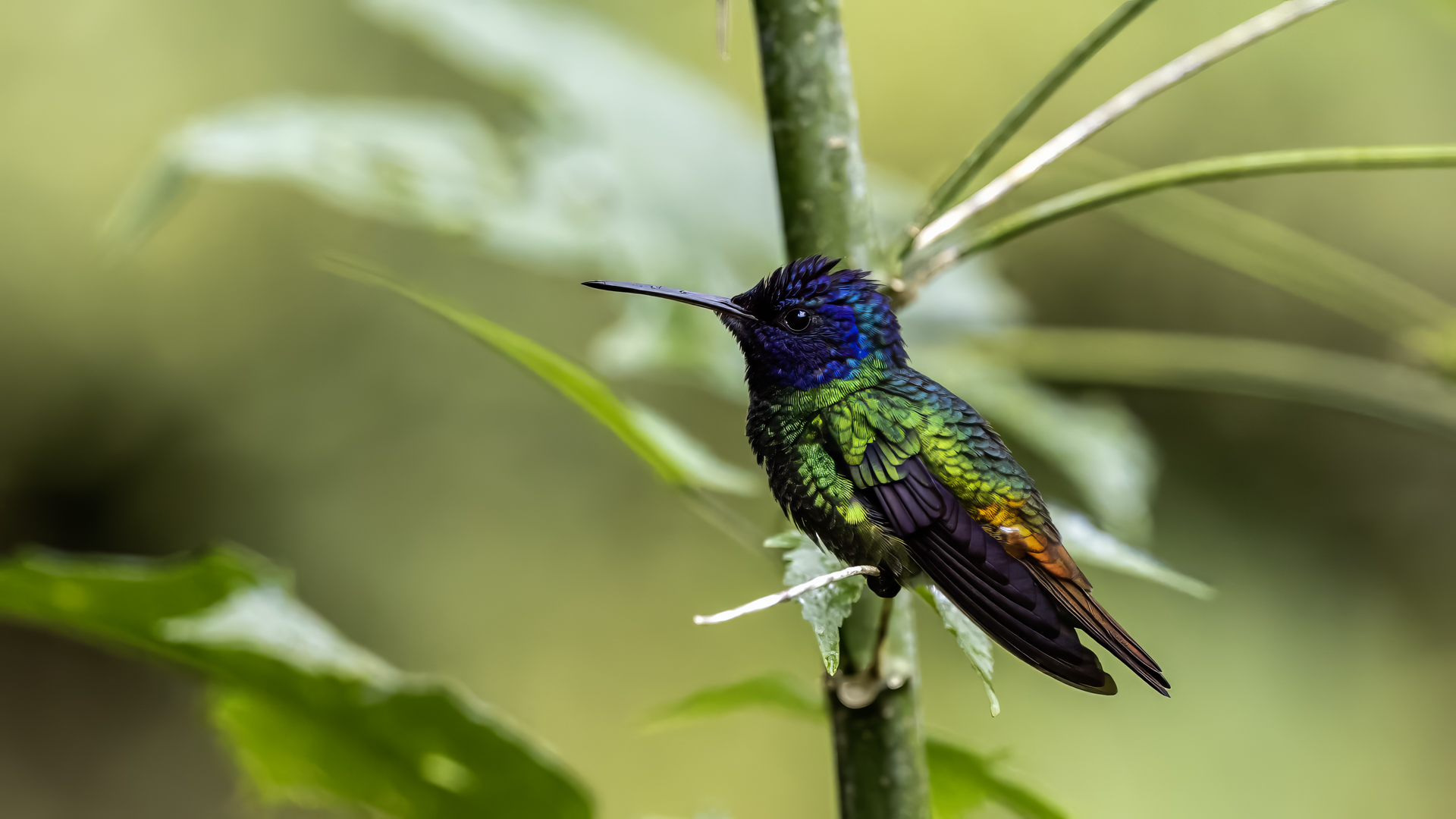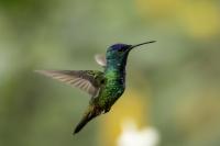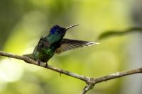 Według książki Milesa McMullana „The Guide to the Hummingbirds” na świecie żyje od 330 do 360 gatunków kolibrów i aż 129 gatunków z nich w Ekwadorze. Kolibry występują od Alaski w Ameryce Północnej po południe Ameryki Południowej. A więc na dwóch potężnych kontynentach, a na niewielkim w porównaniu z tym obszarem, powierzchni Ekwadoru jest tam ponad 30 procent gatunków kolibrów. Są rzeczywiście niemal wszędzie w Ekwadorze, a przynajmniej podczas całego naszego pobytu, dało się je codziennie zaobserwować. Przydrożne restauracje prawie zawsze mają poidełka kolibrowe. W oczekiwaniu na posiłek nigdy się nie nudziliśmy bo w tym czasie zawsze coś się działo przy karmnikach i powstawały zdjęcia. Kontakt z naturą jest tak bliski, że w jednym z takich miejsc zrobiliśmy sobie przerwę na obiad i jedząc zupę nieopodal poidełek kolibrowych, jeden z kolibrów usiadł mi na przedramieniu i obserwował co robię. Niesamowite spotkanie, niesamowity kontakt z przyrodą.  Jeszcze w innym miejscu stoję na wprost poidełka dla kolibrów, niemal w bezruchu próbując zdobyć dynamiczne zdjęcie kolibra, podczas gdy inny chciał sprawdzić czystość mojego ucha. Zapewniam, że to niemiłe uczucie słyszeć centymetr, dwa od ucha świst jego piór i mieć świadomość, że wsunie do ucha swój długi dziób. Trzeba się powstrzymać od odruchu, jaki towarzyszy w takiej sytuacji w przypadku komara, czy muchy, a więc machnąć energicznie ręka. To mogło by być śmiertelne dla kolibra. Wystarczy energicznie ruszyć głową i ptak odleci. Trzymając w takich miejscach w ręce kwiat, można liczyć, że koliber na niej usiądzie i sprawdzi, czy nie ma tam czasami smacznego nektaru. Nakręciliśmy takie krótkie filmy i wysłaliśmy je do Polski „z pozdrowieniami” z Ekwadoru. Czy może być piękniejsza „pocztówka” z pozdrowieniami z wakacji? Mimo bliskiego kontaktu z kolibrami fotografowanie do łatwych nie należy. Nie myślę  tu o zdjęciach pijących kolibrów z plastikowych pojemników lub siedzących na nich. Myślę o dynamicznych zdjęciach w locie tych niesamowitych podniebnych akrobatów. Samo fotografowanie warto, aby było poprzedzone krótką obserwacją gatunków tam występujących. Często się zdarza, że któryś z nich jest gatunkiem dominującym, bardzo terytorialnym i zachowuje się w charakterystyczny, przewidywalny sposób. Te gatunki zawsze łatwiej fotografować. Podlatują one czasami na kilka centymetrów od poidła, zawisają na sekundę, dwie, trzy w powietrzu, upewniają się, że jest bezpiecznie, po czym zaczynają swój słodki posiłek. Ten moment to sytuacja w której mogą powstać dynamiczne zdjęcia. Podobnie jak z kwiatami usytuowanymi w pobliżu dotychczasowych poideł. Ptaki zawisają przy nich i spijają sztucznie zostawiony tam słodką wodę. To te przewidywalne gatunki. Są jednak taki, które nagle wylatują z krzewów prosto do poidła, posilają się i tak szybko jak się pojawiły, tak szybko znikają. Z tymi człowiek prawie nie ma szans. Podobnie jak powietrzne kłótnie, potyczki kolibrów. Są tak szybkie, tak synchroniczna poruszanie się dwóch osobników, że można poprzestać tylko na obserwacji. Sfotografowanie takiej kłótni to czysty przypadek. Ostatecznie udało się sfotografować 41 gatunków kolibrów podczas całej wyprawy do Ekwadoru. Wszystkie mają zamieszczony niniejszy tekst, a jedynie gigancik i Górzak fioletowogłowy, mają tekst rozszerzony o indywidualne informacje. Zaznaczyłem to jako podwójne T-„TT”.