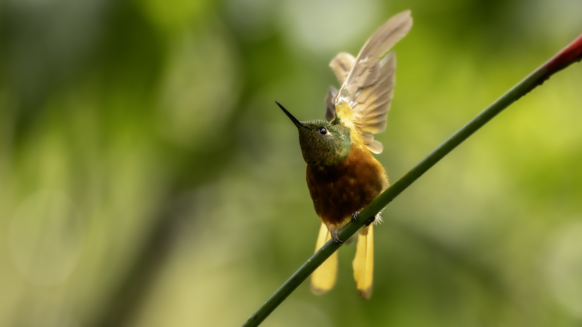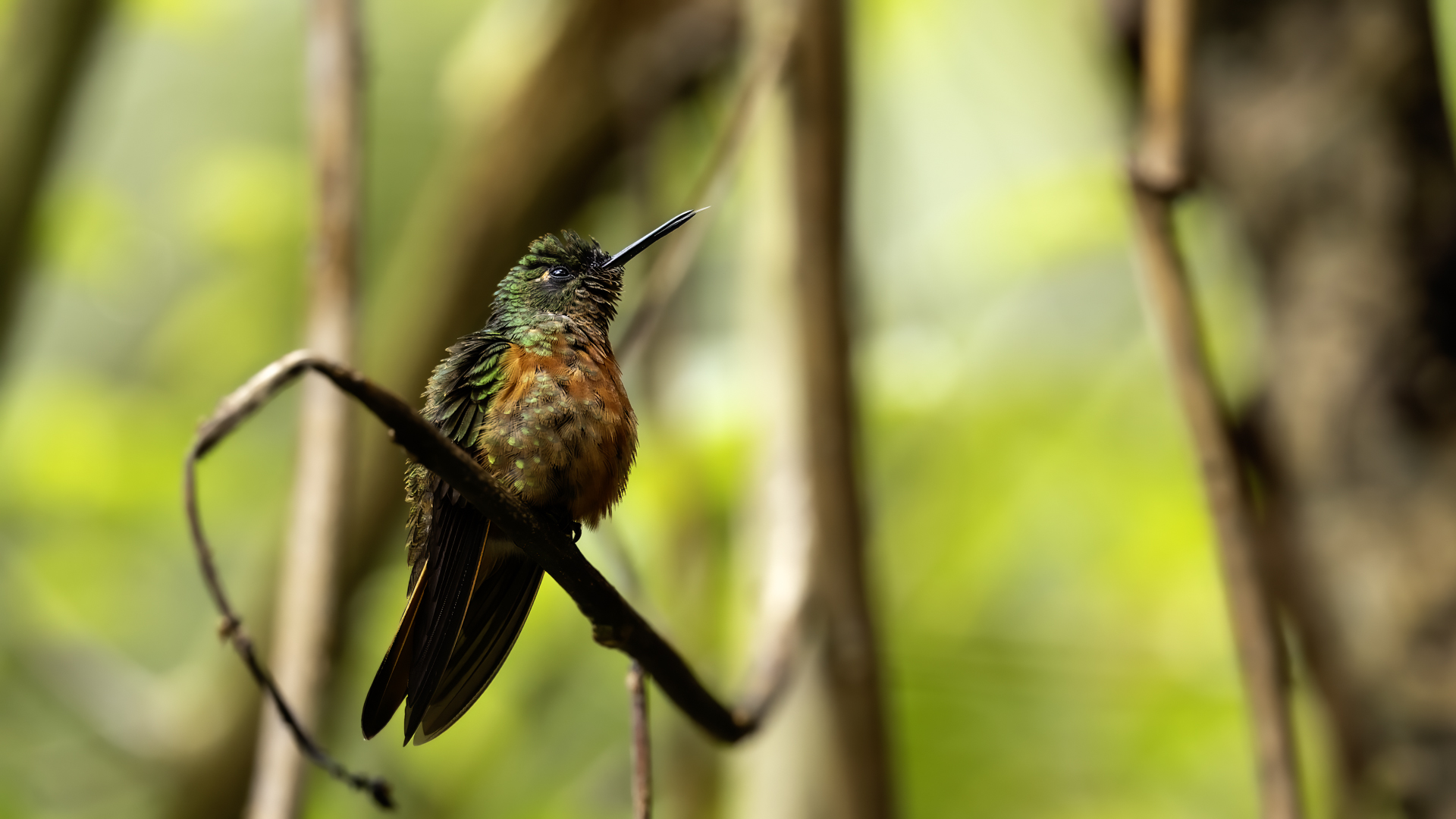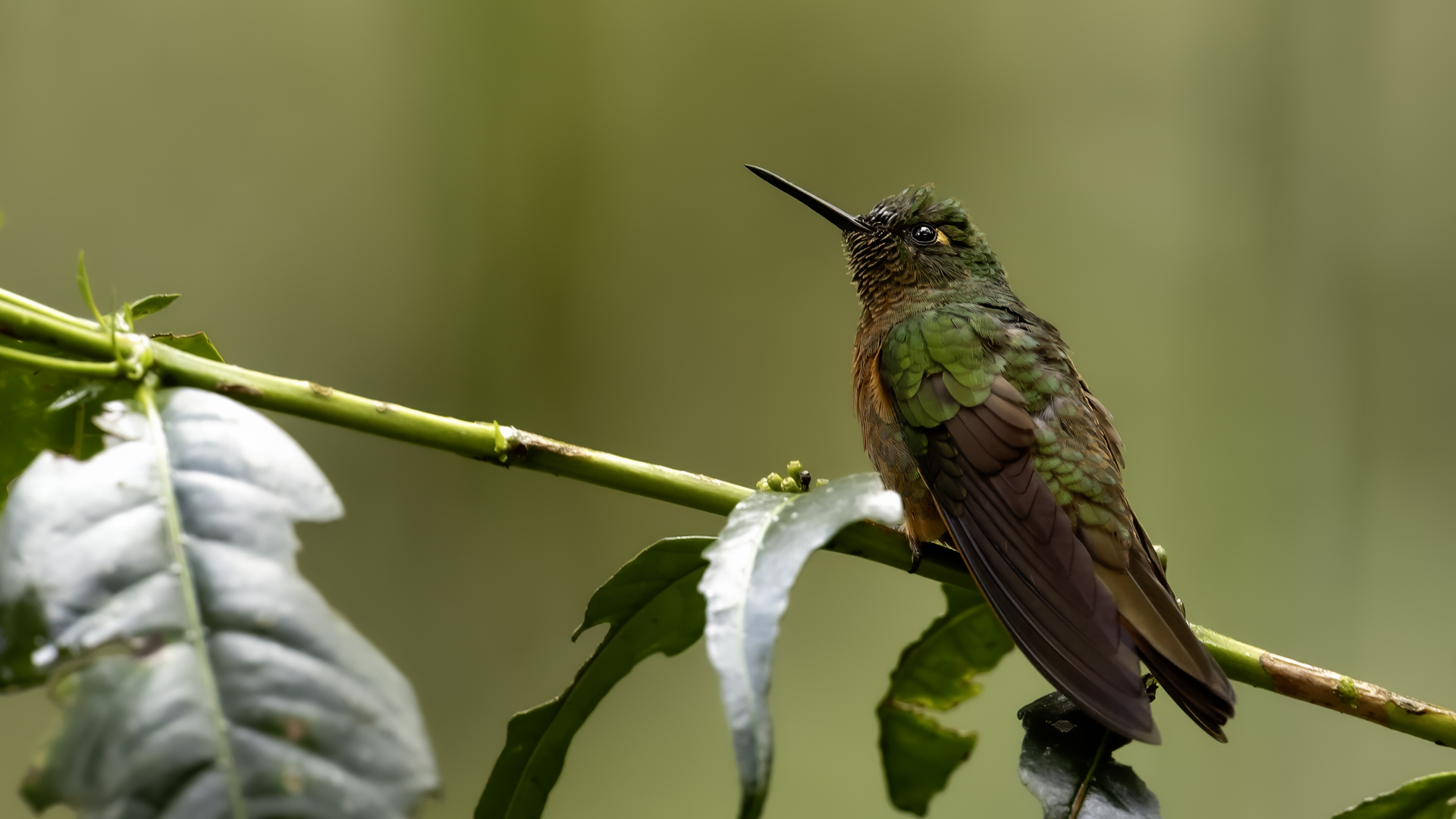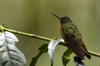 Według książki Milesa McMullana „The Guide to the Hummingbirds” na świecie żyje od 330 do 360 gatunków kolibrów i aż 129 gatunków z nich w Ekwadorze. Kolibry występują od Alaski w Ameryce Północnej po południe Ameryki Południowej. A więc na dwóch potężnych kontynentach, a na niewielkim w porównaniu z tym obszarem, powierzchni Ekwadoru jest tam ponad 30 procent gatunków kolibrów. Są rzeczywiście niemal wszędzie w Ekwadorze, a przynajmniej podczas całego naszego pobytu, dało się je codziennie zaobserwować. Przydrożne restauracje prawie zawsze mają poidełka kolibrowe. W oczekiwaniu na posiłek nigdy się nie nudziliśmy bo w tym czasie zawsze coś się działo przy karmnikach i powstawały zdjęcia. Kontakt z naturą jest tak bliski, że w jednym z takich miejsc zrobiliśmy sobie przerwę na obiad i jedząc zupę nieopodal poidełek kolibrowych, jeden z kolibrów usiadł mi na przedramieniu i obserwował co robię. Niesamowite spotkanie, niesamowity kontakt z przyrodą.  Jeszcze w innym miejscu stoję na wprost poidełka dla kolibrów, niemal w bezruchu próbując zdobyć dynamiczne zdjęcie kolibra, podczas gdy inny chciał sprawdzić czystość mojego ucha. Zapewniam, że to niemiłe uczucie słyszeć centymetr, dwa od ucha świst jego piór i mieć świadomość, że wsunie do ucha swój długi dziób. Trzeba się powstrzymać od odruchu, jaki towarzyszy w takiej sytuacji w przypadku komara, czy muchy, a więc machnąć energicznie ręka. To mogło by być śmiertelne dla kolibra. Wystarczy energicznie ruszyć głową i ptak odleci. Trzymając w takich miejscach w ręce kwiat, można liczyć, że koliber na niej usiądzie i sprawdzi, czy nie ma tam czasami smacznego nektaru. Nakręciliśmy takie krótkie filmy i wysłaliśmy je do Polski „z pozdrowieniami” z Ekwadoru. Czy może być piękniejsza „pocztówka” z pozdrowieniami z wakacji? Mimo bliskiego kontaktu z kolibrami fotografowanie do łatwych nie należy. Nie myślę  tu o zdjęciach pijących kolibrów z plastikowych pojemników lub siedzących na nich. Myślę o dynamicznych zdjęciach w locie tych niesamowitych podniebnych akrobatów. Samo fotografowanie warto, aby było poprzedzone krótką obserwacją gatunków tam występujących. Często się zdarza, że któryś z nich jest gatunkiem dominującym, bardzo terytorialnym i zachowuje się w charakterystyczny, przewidywalny sposób. Te gatunki zawsze łatwiej fotografować. Podlatują one czasami na kilka centymetrów od poidła, zawisają na sekundę, dwie, trzy w powietrzu, upewniają się, że jest bezpiecznie, po czym zaczynają swój słodki posiłek. Ten moment to sytuacja w której mogą powstać dynamiczne zdjęcia. Podobnie jak z kwiatami usytuowanymi w pobliżu dotychczasowych poideł. Ptaki zawisają przy nich i spijają sztucznie zostawiony tam słodką wodę. To te przewidywalne gatunki. Są jednak taki, które nagle wylatują z krzewów prosto do poidła, posilają się i tak szybko jak się pojawiły, tak szybko znikają. Z tymi człowiek prawie nie ma szans. Podobnie jak powietrzne kłótnie, potyczki kolibrów. Są tak szybkie, tak synchroniczna poruszanie się dwóch osobników, że można poprzestać tylko na obserwacji. Sfotografowanie takiej kłótni to czysty przypadek. Ostatecznie udało się sfotografować 41 gatunków kolibrów podczas całej wyprawy do Ekwadoru. Wszystkie mają zamieszczony niniejszy tekst, a jedynie gigancik i Górzak fioletowogłowy, mają tekst rozszerzony o indywidualne informacje. Zaznaczyłem to jako podwójne T-„TT”.