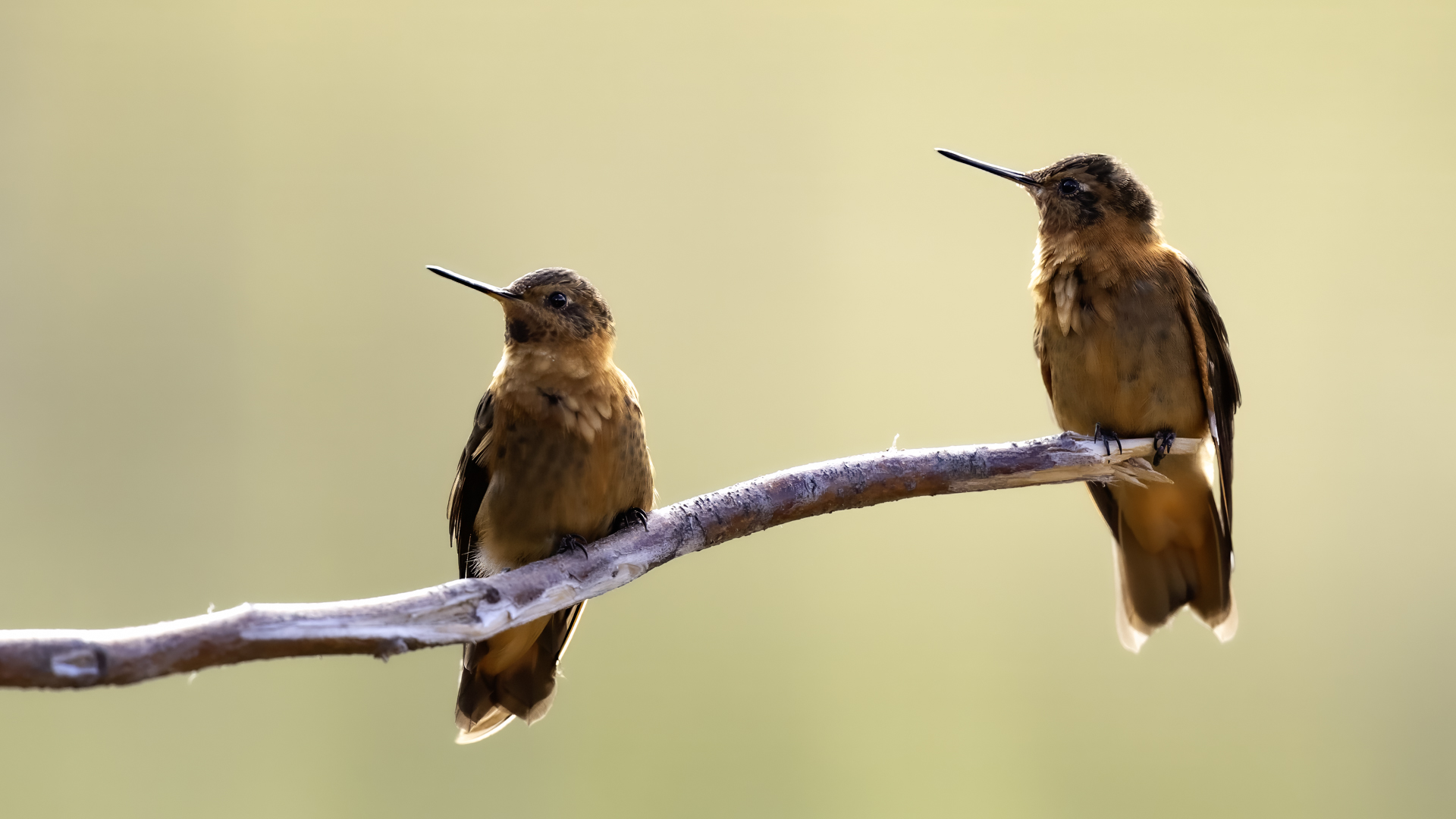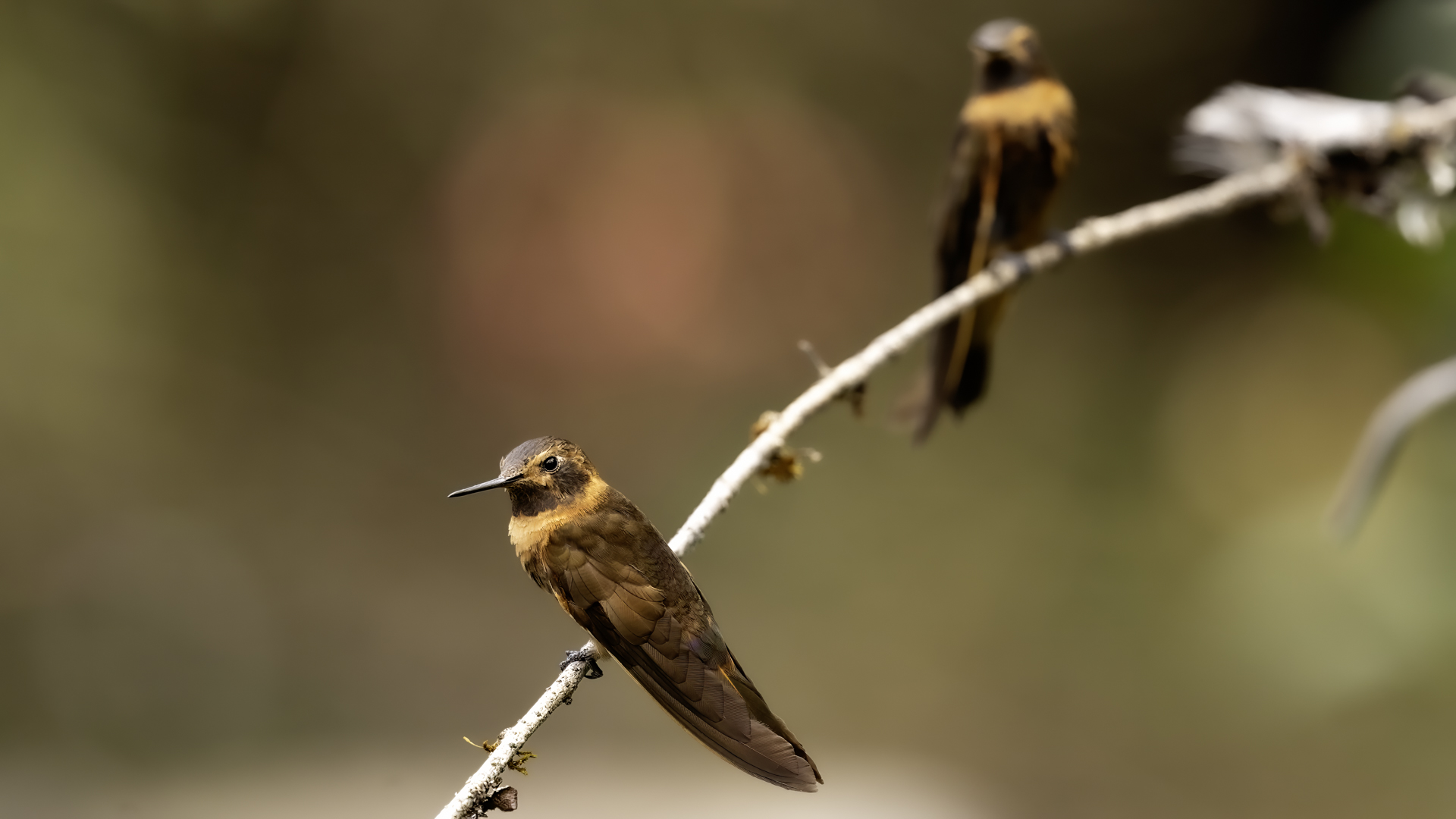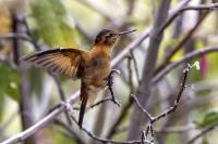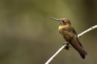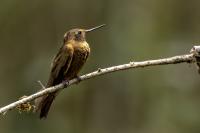 Według książki Milesa McMullana „The Guide to the Hummingbirds” na świecie żyje od 330 do 360 gatunków kolibrów i aż 129 gatunków z nich w Ekwadorze. Kolibry występują od Alaski w Ameryce Północnej po południe Ameryki Południowej. A więc na dwóch potężnych kontynentach, a na niewielkim w porównaniu z tym obszarem, powierzchni Ekwadoru jest tam ponad 30 procent gatunków kolibrów. Są rzeczywiście niemal wszędzie w Ekwadorze, a przynajmniej podczas całego naszego pobytu, dało się je codziennie zaobserwować. Przydrożne restauracje prawie zawsze mają poidełka kolibrowe. W oczekiwaniu na posiłek nigdy się nie nudziliśmy bo w tym czasie zawsze coś się działo przy karmnikach i powstawały zdjęcia. Kontakt z naturą jest tak bliski, że w jednym z takich miejsc zrobiliśmy sobie przerwę na obiad i jedząc zupę nieopodal poidełek kolibrowych, jeden z kolibrów usiadł mi na przedramieniu i obserwował co robię. Niesamowite spotkanie, niesamowity kontakt z przyrodą.  Jeszcze w innym miejscu stoję na wprost poidełka dla kolibrów, niemal w bezruchu próbując zdobyć dynamiczne zdjęcie kolibra, podczas gdy inny chciał sprawdzić czystość mojego ucha. Zapewniam, że to niemiłe uczucie słyszeć centymetr, dwa od ucha świst jego piór i mieć świadomość, że wsunie do ucha swój długi dziób. Trzeba się powstrzymać od odruchu, jaki towarzyszy w takiej sytuacji w przypadku komara, czy muchy, a więc machnąć energicznie ręka. To mogło by być śmiertelne dla kolibra. Wystarczy energicznie ruszyć głową i ptak odleci. Trzymając w takich miejscach w ręce kwiat, można liczyć, że koliber na niej usiądzie i sprawdzi, czy nie ma tam czasami smacznego nektaru. Nakręciliśmy takie krótkie filmy i wysłaliśmy je do Polski „z pozdrowieniami” z Ekwadoru. Czy może być piękniejsza „pocztówka” z pozdrowieniami z wakacji? Mimo bliskiego kontaktu z kolibrami fotografowanie do łatwych nie należy. Nie myślę  tu o zdjęciach pijących kolibrów z plastikowych pojemników lub siedzących na nich. Myślę o dynamicznych zdjęciach w locie tych niesamowitych podniebnych akrobatów. Samo fotografowanie warto, aby było poprzedzone krótką obserwacją gatunków tam występujących. Często się zdarza, że któryś z nich jest gatunkiem dominującym, bardzo terytorialnym i zachowuje się w charakterystyczny, przewidywalny sposób. Te gatunki zawsze łatwiej fotografować. Podlatują one czasami na kilka centymetrów od poidła, zawisają na sekundę, dwie, trzy w powietrzu, upewniają się, że jest bezpiecznie, po czym zaczynają swój słodki posiłek. Ten moment to sytuacja w której mogą powstać dynamiczne zdjęcia. Podobnie jak z kwiatami usytuowanymi w pobliżu dotychczasowych poideł. Ptaki zawisają przy nich i spijają sztucznie zostawiony tam słodką wodę. To te przewidywalne gatunki. Są jednak taki, które nagle wylatują z krzewów prosto do poidła, posilają się i tak szybko jak się pojawiły, tak szybko znikają. Z tymi człowiek prawie nie ma szans. Podobnie jak powietrzne kłótnie, potyczki kolibrów. Są tak szybkie, tak synchroniczna poruszanie się dwóch osobników, że można poprzestać tylko na obserwacji. Sfotografowanie takiej kłótni to czysty przypadek. Ostatecznie udało się sfotografować 41 gatunków kolibrów podczas całej wyprawy do Ekwadoru. Wszystkie mają zamieszczony niniejszy tekst, a jedynie Gigancik i Górzak fioletowogłowy, mają tekst rozszerzony o indywidualne informacje. Zaznaczyłem to jako podwójne T-„TT”.