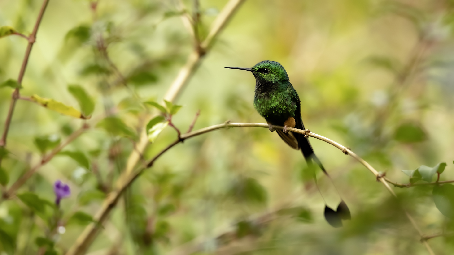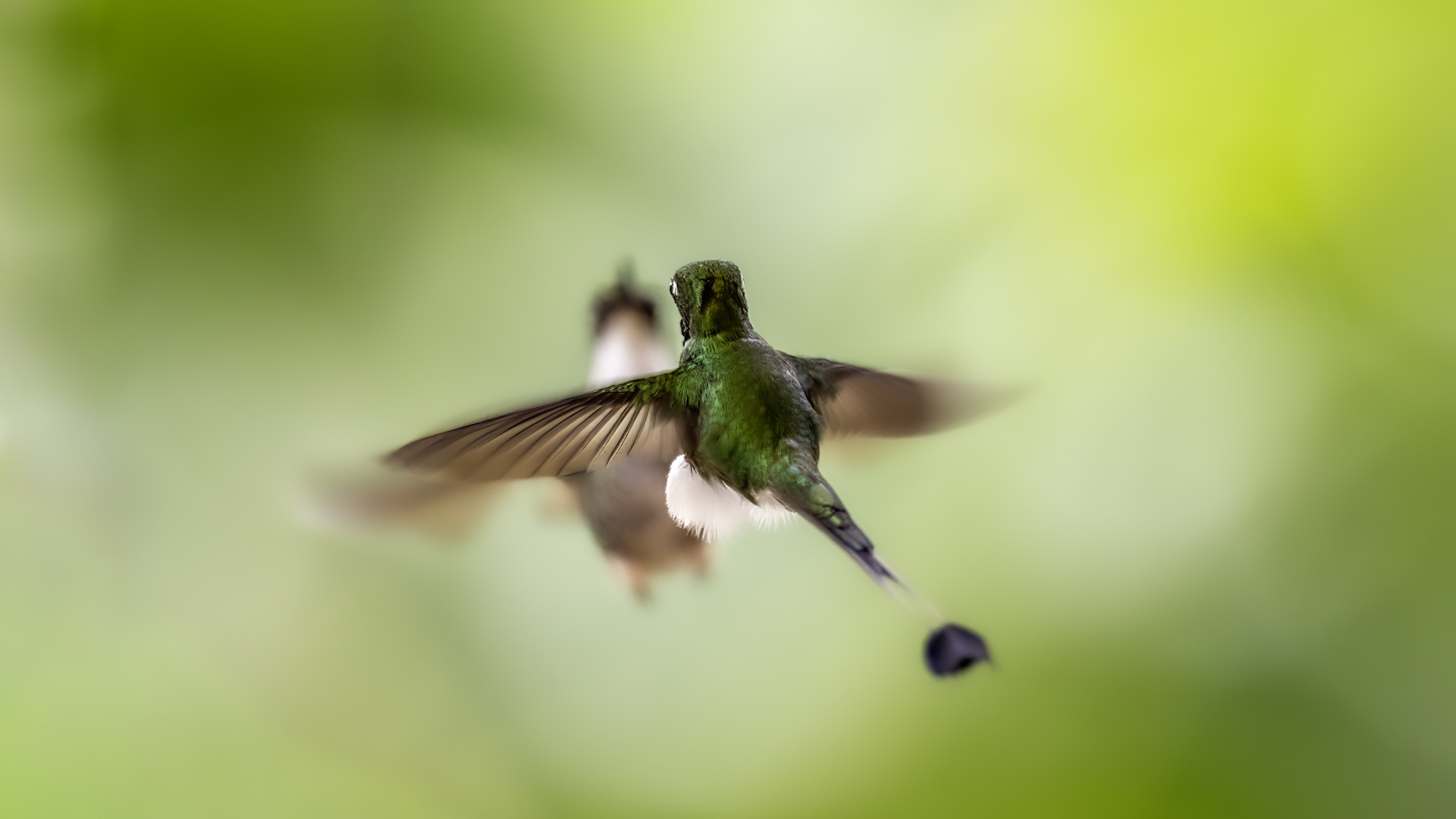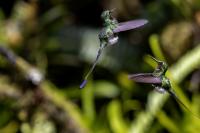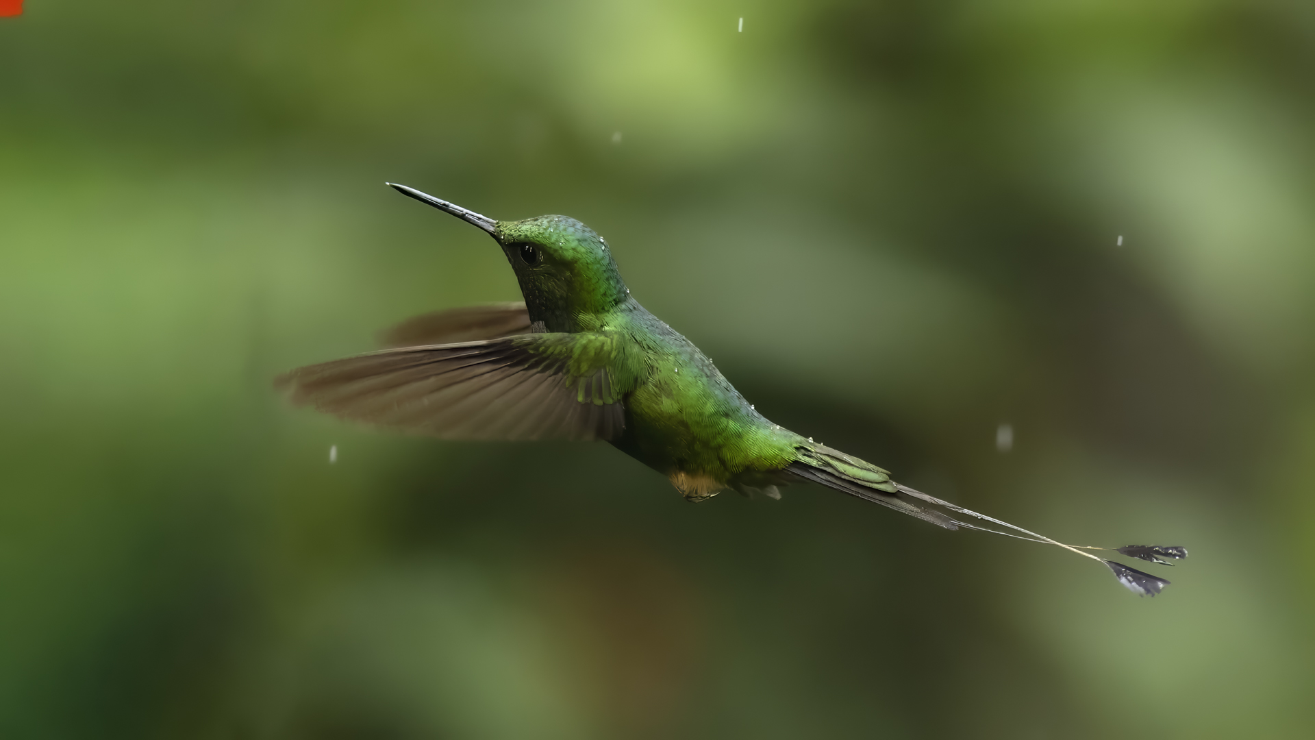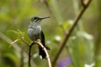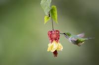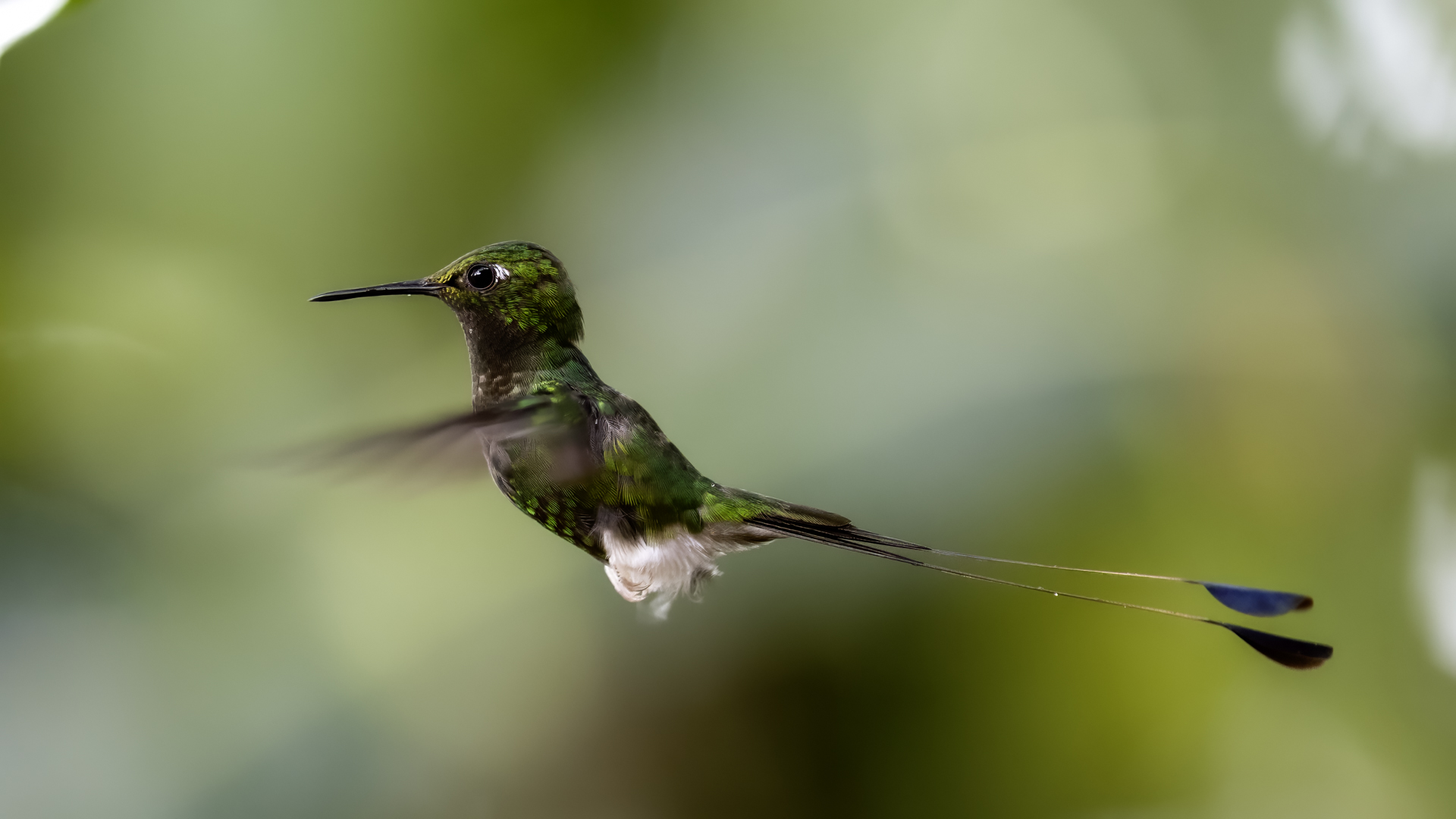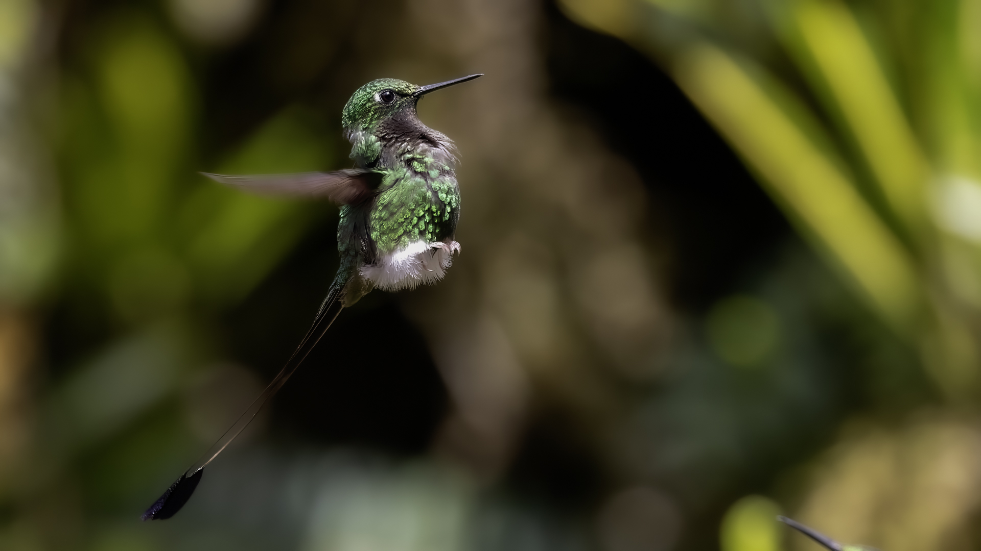 Według książki Milesa McMullana „The Guide to the Hummingbirds” na świecie żyje od 330 do 360 gatunków kolibrów i aż 129 gatunków z nich w Ekwadorze. Kolibry występują od Alaski w Ameryce Północnej po południe Ameryki Południowej. A więc na dwóch potężnych kontynentach, a na niewielkim w porównaniu z tym obszarem, powierzchni Ekwadoru jest tam ponad 30 procent gatunków kolibrów. Są rzeczywiście niemal wszędzie w Ekwadorze, a przynajmniej podczas całego naszego pobytu, dało się je codziennie zaobserwować. Przydrożne restauracje prawie zawsze mają poidełka kolibrowe. W oczekiwaniu na posiłek nigdy się nie nudziliśmy bo w tym czasie zawsze coś się działo przy karmnikach i powstawały zdjęcia. Kontakt z naturą jest tak bliski, że w jednym z takich miejsc zrobiliśmy sobie przerwę na obiad i jedząc zupę nieopodal poidełek kolibrowych, jeden z kolibrów usiadł mi na przedramieniu i obserwował co robię. Niesamowite spotkanie, niesamowity kontakt z przyrodą.  Jeszcze w innym miejscu stoję na wprost poidełka dla kolibrów, niemal w bezruchu próbując zdobyć dynamiczne zdjęcie kolibra, podczas gdy inny chciał sprawdzić czystość mojego ucha. Zapewniam, że to niemiłe uczucie słyszeć centymetr, dwa od ucha świst jego piór i mieć świadomość, że wsunie do ucha swój długi dziób. Trzeba się powstrzymać od odruchu, jaki towarzyszy w takiej sytuacji w przypadku komara, czy muchy, a więc machnąć energicznie ręka. To mogło by być śmiertelne dla kolibra. Wystarczy energicznie ruszyć głową i ptak odleci. Trzymając w takich miejscach w ręce kwiat, można liczyć, że koliber na niej usiądzie i sprawdzi, czy nie ma tam czasami smacznego nektaru. Nakręciliśmy takie krótkie filmy i wysłaliśmy je do Polski „z pozdrowieniami” z Ekwadoru. Czy może być piękniejsza „pocztówka” z pozdrowieniami z wakacji? Mimo bliskiego kontaktu z kolibrami fotografowanie do łatwych nie należy. Nie myślę  tu o zdjęciach pijących kolibrów z plastikowych pojemników lub siedzących na nich. Myślę o dynamicznych zdjęciach w locie tych niesamowitych podniebnych akrobatów. Samo fotografowanie warto, aby było poprzedzone krótką obserwacją gatunków tam występujących. Często się zdarza, że któryś z nich jest gatunkiem dominującym, bardzo terytorialnym i zachowuje się w charakterystyczny, przewidywalny sposób. Te gatunki zawsze łatwiej fotografować. Podlatują one czasami na kilka centymetrów od poidła, zawisają na sekundę, dwie, trzy w powietrzu, upewniają się, że jest bezpiecznie, po czym zaczynają swój słodki posiłek. Ten moment to sytuacja w której mogą powstać dynamiczne zdjęcia. Podobnie jak z kwiatami usytuowanymi w pobliżu dotychczasowych poideł. Ptaki zawisają przy nich i spijają sztucznie zostawiony tam słodką wodę. To te przewidywalne gatunki. Są jednak taki, które nagle wylatują z krzewów prosto do poidła, posilają się i tak szybko jak się pojawiły, tak szybko znikają. Z tymi człowiek prawie nie ma szans. Podobnie jak powietrzne kłótnie, potyczki kolibrów. Są tak szybkie, tak synchroniczna poruszanie się dwóch osobników, że można poprzestać tylko na obserwacji. Sfotografowanie takiej kłótni to czysty przypadek. Ostatecznie udało się sfotografować 41 gatunków kolibrów podczas całej wyprawy do Ekwadoru. Wszystkie mają zamieszczony niniejszy tekst, a jedynie Gigancik i Górzak fioletowogłowy, mają tekst rozszerzony o indywidualne informacje. Zaznaczyłem to jako podwójne T-„TT”.