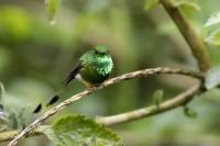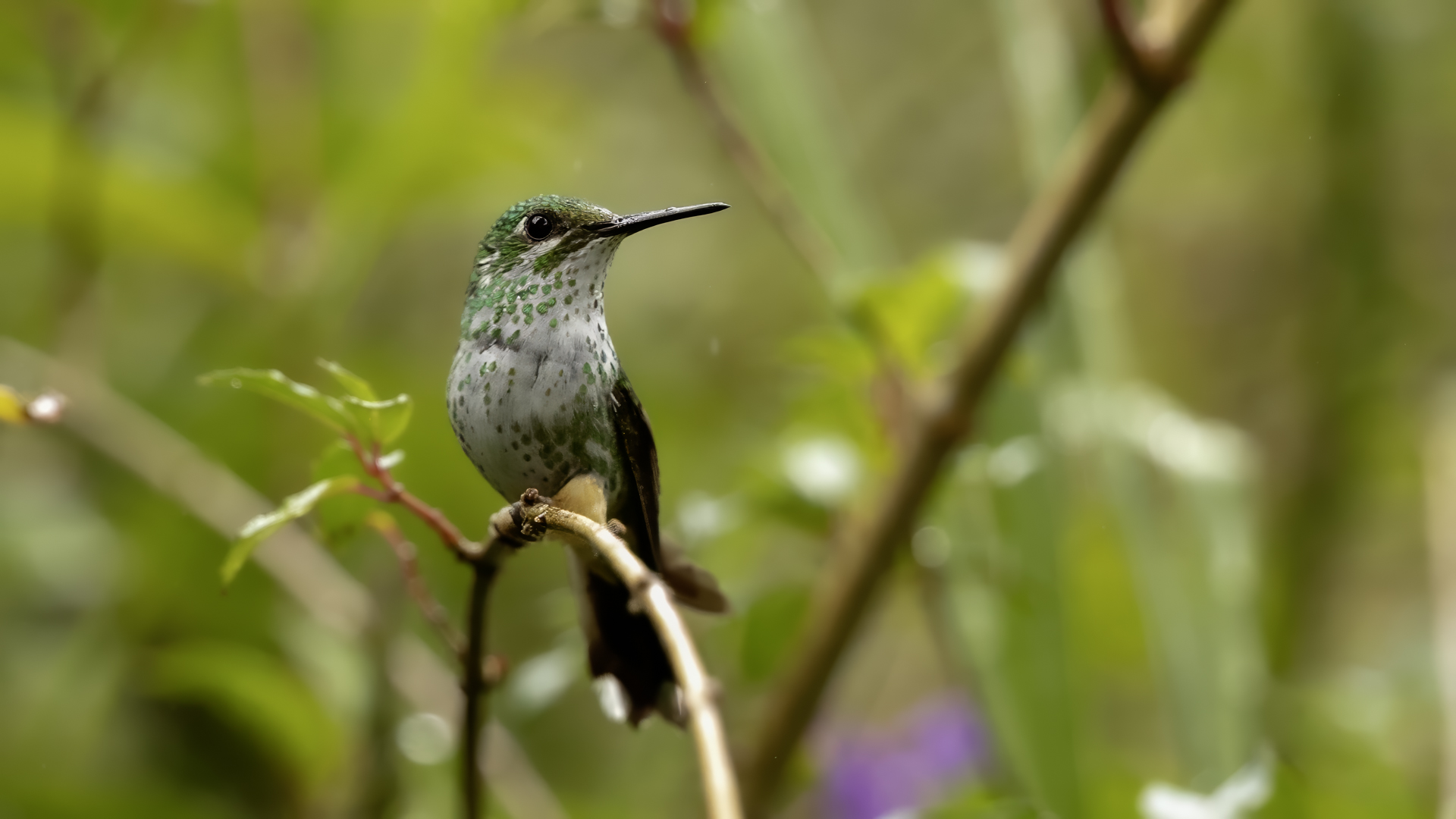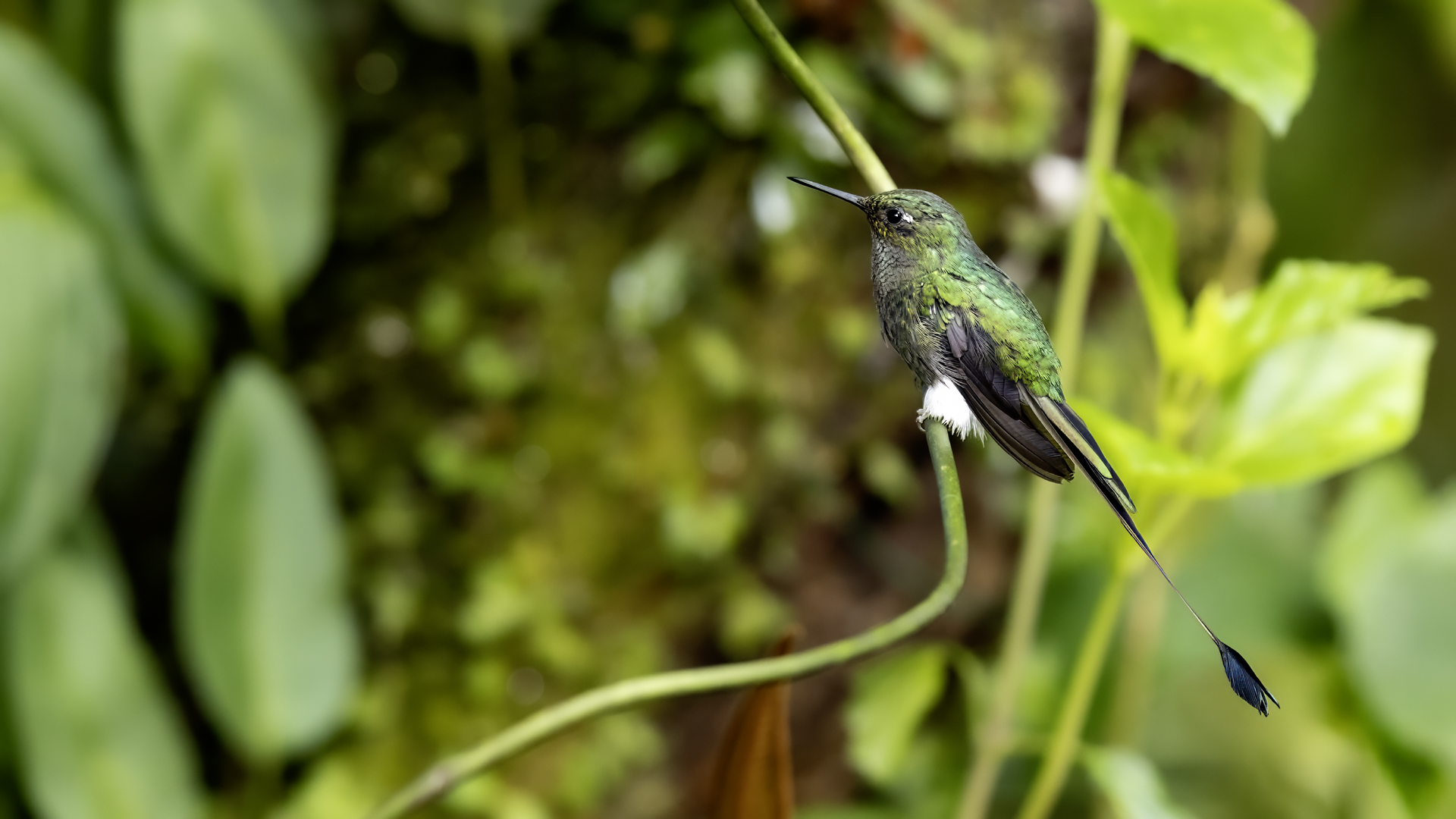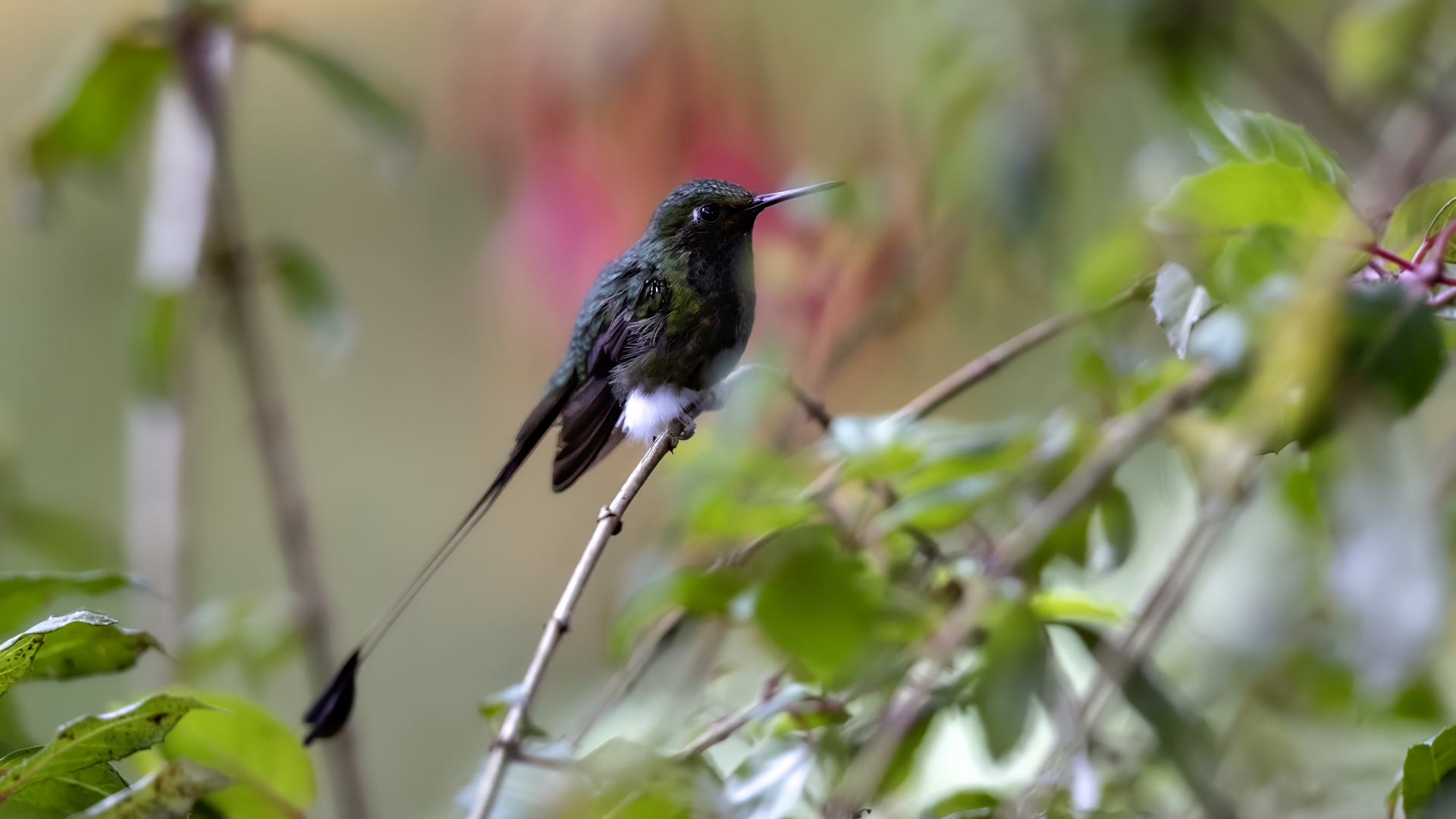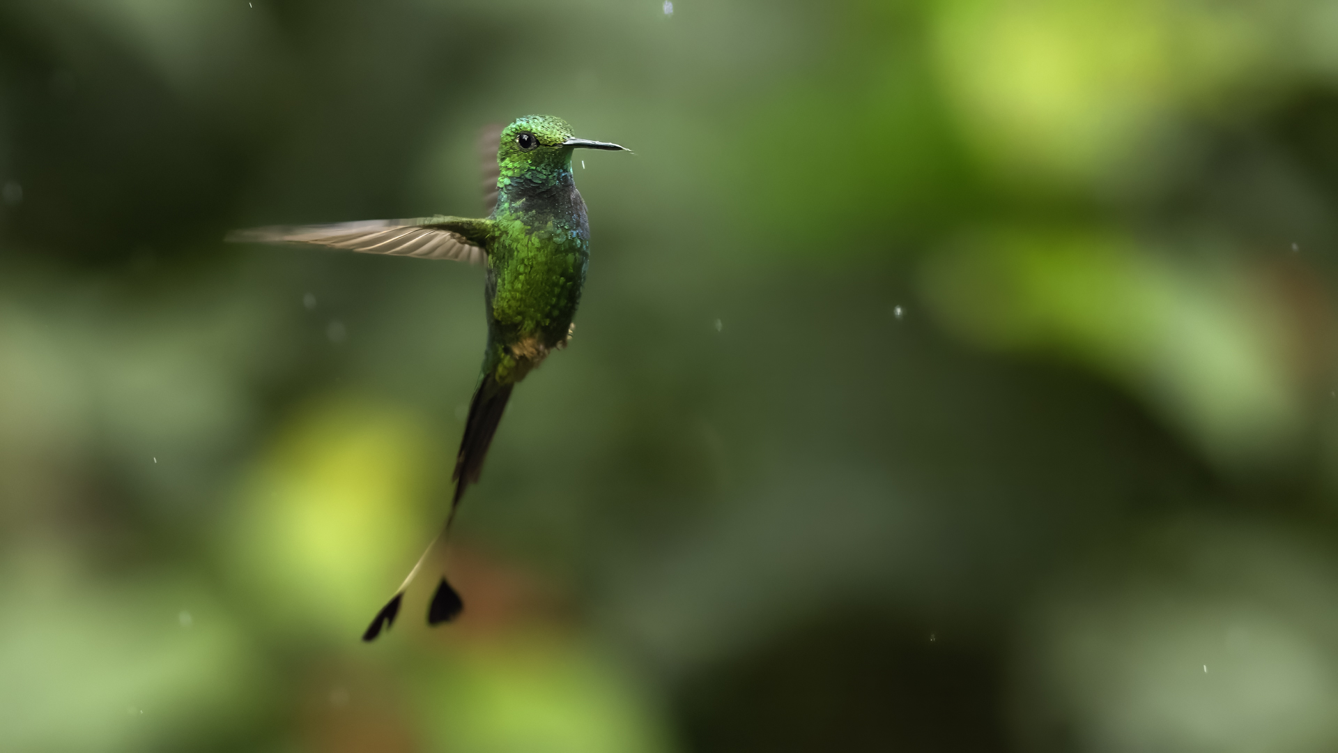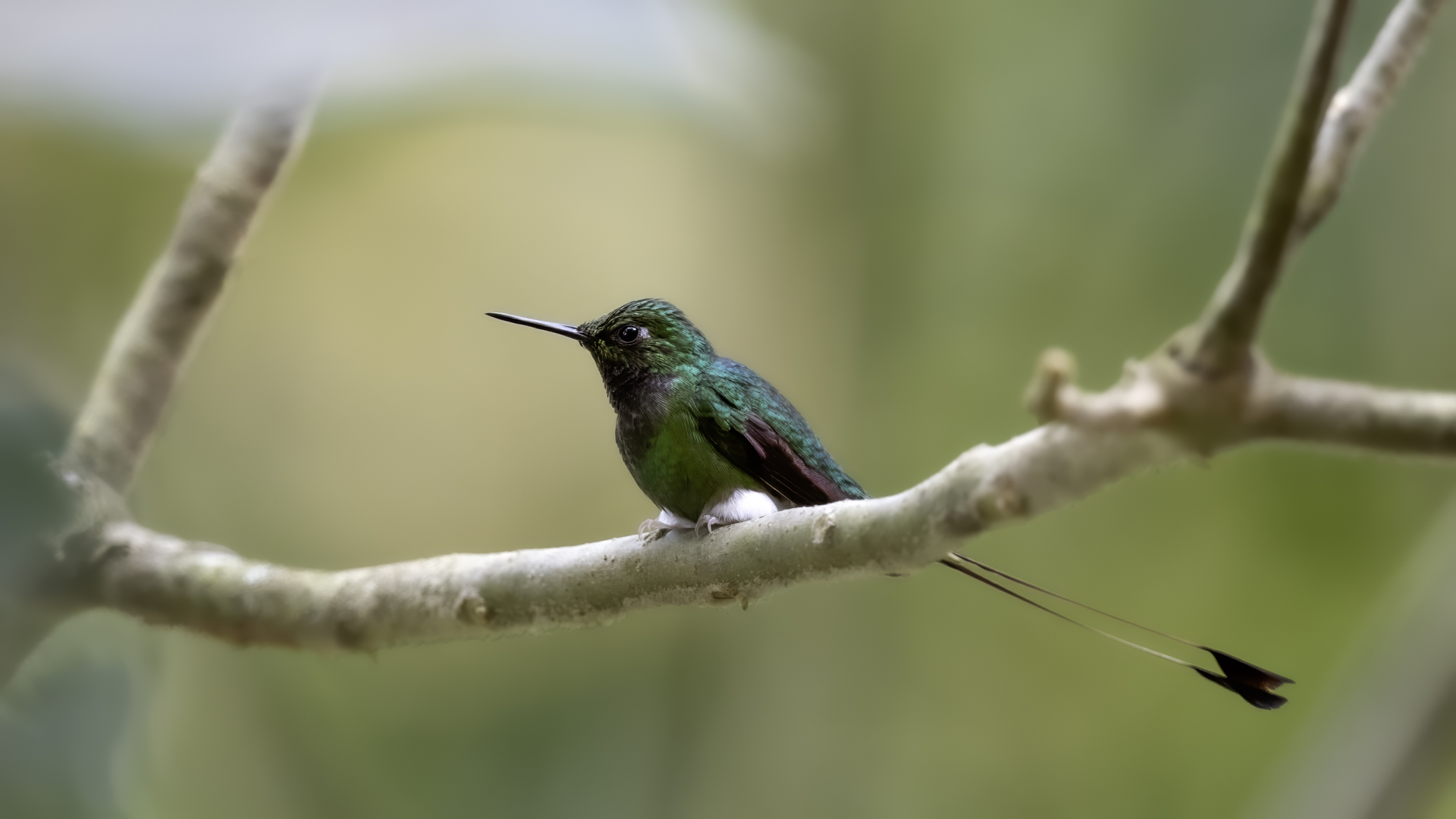 Według książki Milesa McMullana „The Guide to the Hummingbirds” na świecie żyje od 330 do 360 gatunków kolibrów i aż 129 gatunków z nich w Ekwadorze. Kolibry występują od Alaski w Ameryce Północnej po południe Ameryki Południowej. A więc na dwóch potężnych kontynentach, a na niewielkim w porównaniu z tym obszarem, powierzchni Ekwadoru jest tam ponad 30 procent gatunków kolibrów. Są rzeczywiście niemal wszędzie w Ekwadorze, a przynajmniej podczas całego naszego pobytu, dało się je codziennie zaobserwować. Przydrożne restauracje prawie zawsze mają poidełka kolibrowe. W oczekiwaniu na posiłek nigdy się nie nudziliśmy bo w tym czasie zawsze coś się działo przy karmnikach i powstawały zdjęcia. Kontakt z naturą jest tak bliski, że w jednym z takich miejsc zrobiliśmy sobie przerwę na obiad i jedząc zupę nieopodal poidełek kolibrowych, jeden z kolibrów usiadł mi na przedramieniu i obserwował co robię. Niesamowite spotkanie, niesamowity kontakt z przyrodą.  Jeszcze w innym miejscu stoję na wprost poidełka dla kolibrów, niemal w bezruchu próbując zdobyć dynamiczne zdjęcie kolibra, podczas gdy inny chciał sprawdzić czystość mojego ucha. Zapewniam, że to niemiłe uczucie słyszeć centymetr, dwa od ucha świst jego piór i mieć świadomość, że wsunie do ucha swój długi dziób. Trzeba się powstrzymać od odruchu, jaki towarzyszy w takiej sytuacji w przypadku komara, czy muchy, a więc machnąć energicznie ręka. To mogło by być śmiertelne dla kolibra. Wystarczy energicznie ruszyć głową i ptak odleci. Trzymając w takich miejscach w ręce kwiat, można liczyć, że koliber na niej usiądzie i sprawdzi, czy nie ma tam czasami smacznego nektaru. Nakręciliśmy takie krótkie filmy i wysłaliśmy je do Polski „z pozdrowieniami” z Ekwadoru. Czy może być piękniejsza „pocztówka” z pozdrowieniami z wakacji? Mimo bliskiego kontaktu z kolibrami fotografowanie do łatwych nie należy. Nie myślę  tu o zdjęciach pijących kolibrów z plastikowych pojemników lub siedzących na nich. Myślę o dynamicznych zdjęciach w locie tych niesamowitych podniebnych akrobatów. Samo fotografowanie warto, aby było poprzedzone krótką obserwacją gatunków tam występujących. Często się zdarza, że któryś z nich jest gatunkiem dominującym, bardzo terytorialnym i zachowuje się w charakterystyczny, przewidywalny sposób. Te gatunki zawsze łatwiej fotografować. Podlatują one czasami na kilka centymetrów od poidła, zawisają na sekundę, dwie, trzy w powietrzu, upewniają się, że jest bezpiecznie, po czym zaczynają swój słodki posiłek. Ten moment to sytuacja w której mogą powstać dynamiczne zdjęcia. Podobnie jak z kwiatami usytuowanymi w pobliżu dotychczasowych poideł. Ptaki zawisają przy nich i spijają sztucznie zostawiony tam słodką wodę. To te przewidywalne gatunki. Są jednak taki, które nagle wylatują z krzewów prosto do poidła, posilają się i tak szybko jak się pojawiły, tak szybko znikają. Z tymi człowiek prawie nie ma szans. Podobnie jak powietrzne kłótnie, potyczki kolibrów. Są tak szybkie, tak synchroniczna poruszanie się dwóch osobników, że można poprzestać tylko na obserwacji. Sfotografowanie takiej kłótni to czysty przypadek. Ostatecznie udało się sfotografować 41 gatunków kolibrów podczas całej wyprawy do Ekwadoru. Wszystkie mają zamieszczony niniejszy tekst, a jedynie Gigancik i Górzak fioletowogłowy, mają tekst rozszerzony o indywidualne informacje. Zaznaczyłem to jako podwójne T-„TT”.