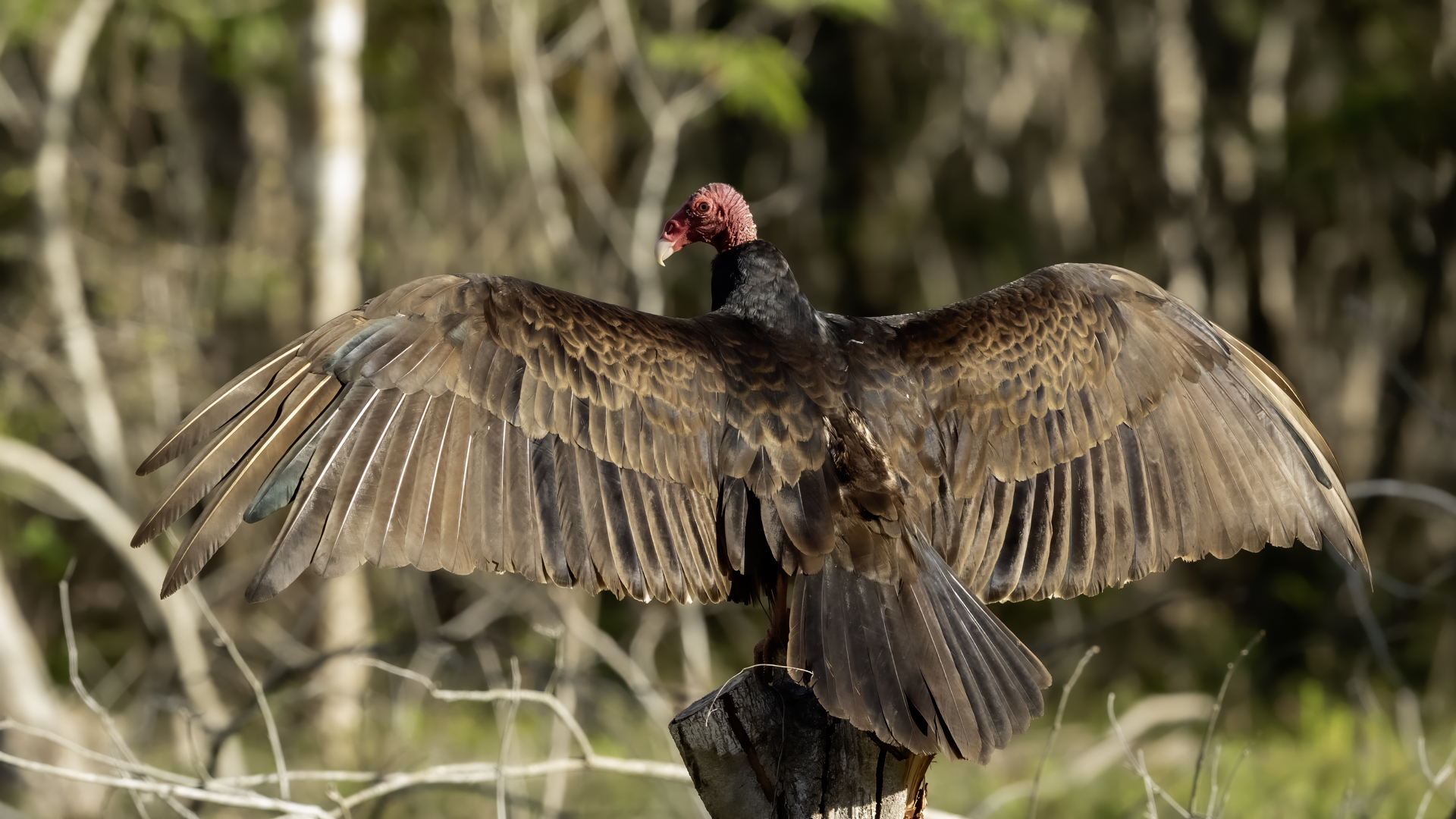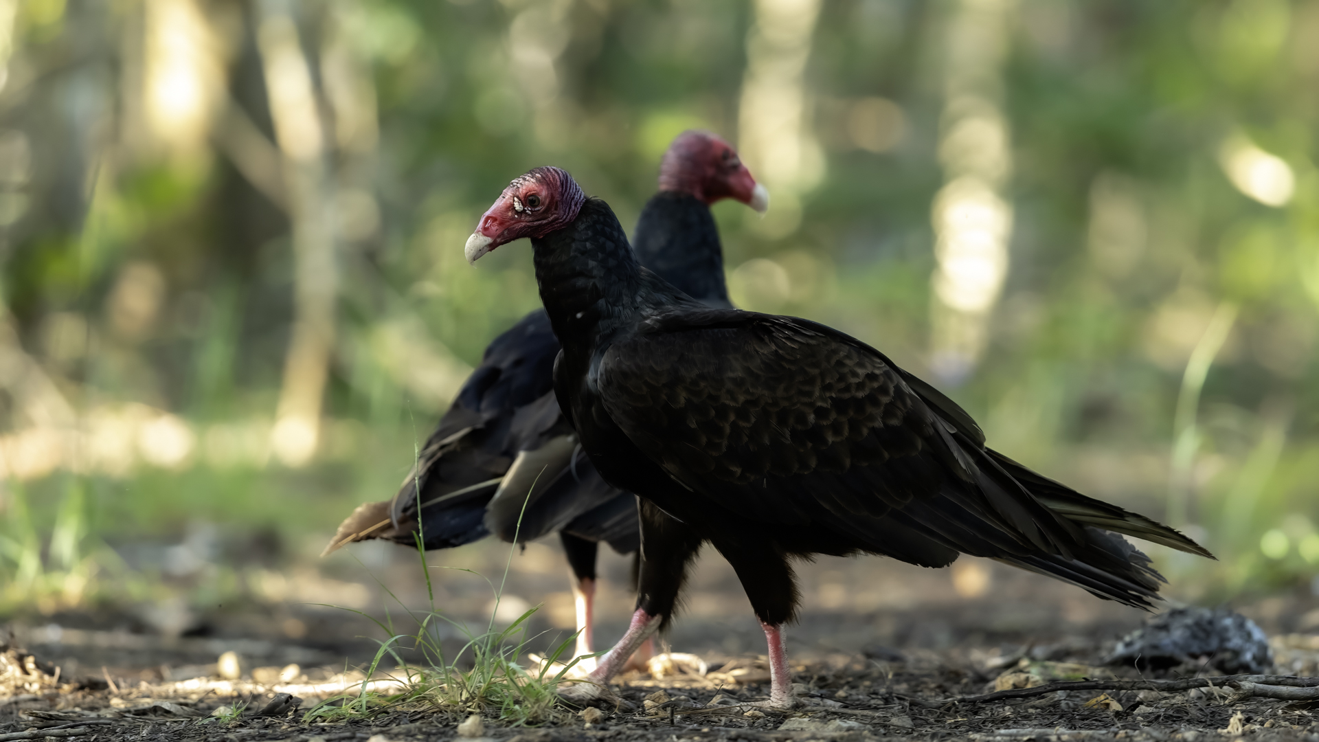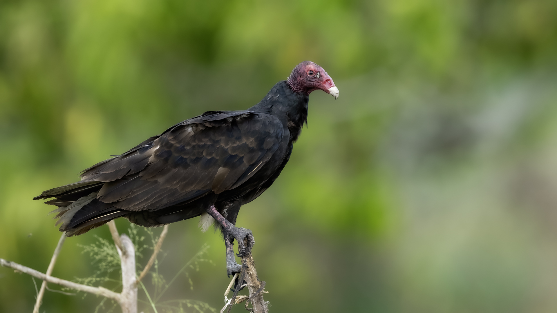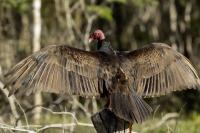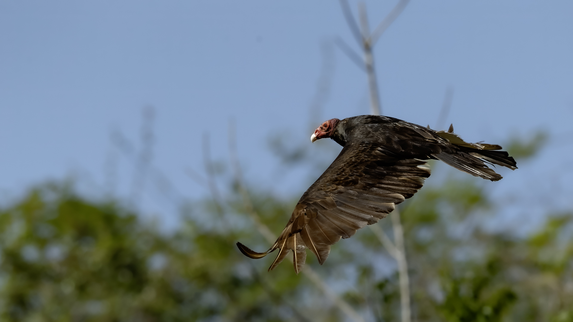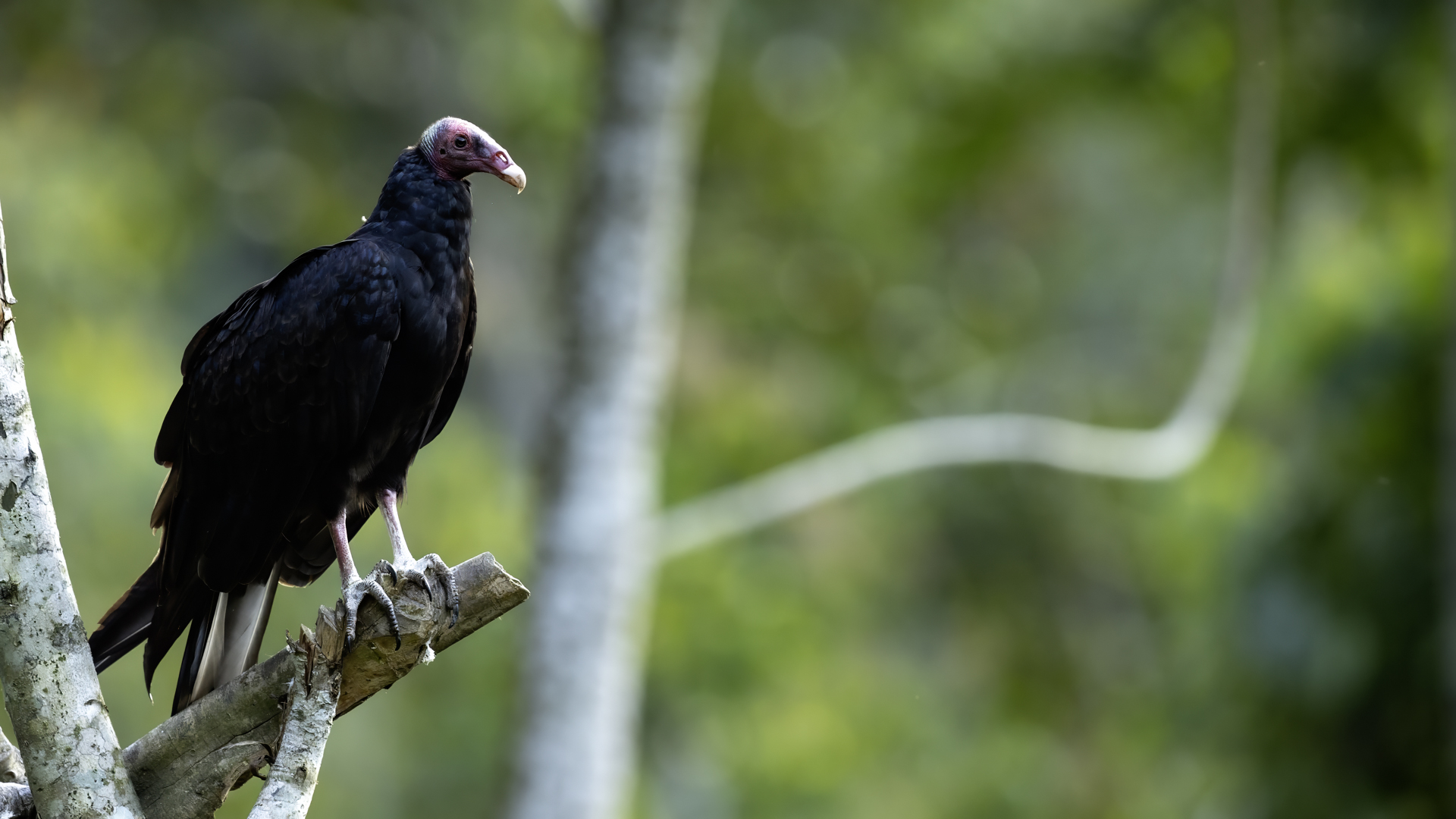 Szukając nowych gatunków w lesie deszczowym i przejeżdżając z miejsca na miejsce, nagle na wyschniętym drzewie, niedaleko drogi, zauważyliśmy kilka sępników różowogłowych. No cóż znów seria dokumentacyjnych zdjęć na tle nieba. Było to jedno, jedyne spotkanie z tymi ptakami. Dobrze, że z sępnikiem poszło lepiej i galeria wygląda bardziej okazale. Sępniki różowogłowe są nieco większe od sępników czarnych. Waga ich może dochodzić do 2 kilogramów, a rozpiętość skrzydeł może przekroczyć 1,8 metra. Żyje w obu Amerykach, z wyłączeniem Kanady.