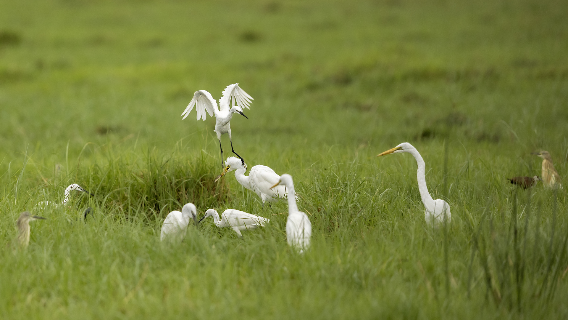1. Biegus krzywodzioby. 2.Bilbil zbroczony. 3.Brodziec śniady. 4.Czapla czarnonoga. 5.Czapla nadobna. 6.Kania czarna. 7.Kulik wielki(T). 8.Majna brunatna. 9.Mniszka muszkatowa. 10.Modrak. 11.Orzeł stepowy(T). 12.Rycyk. 13.Szczudłak.