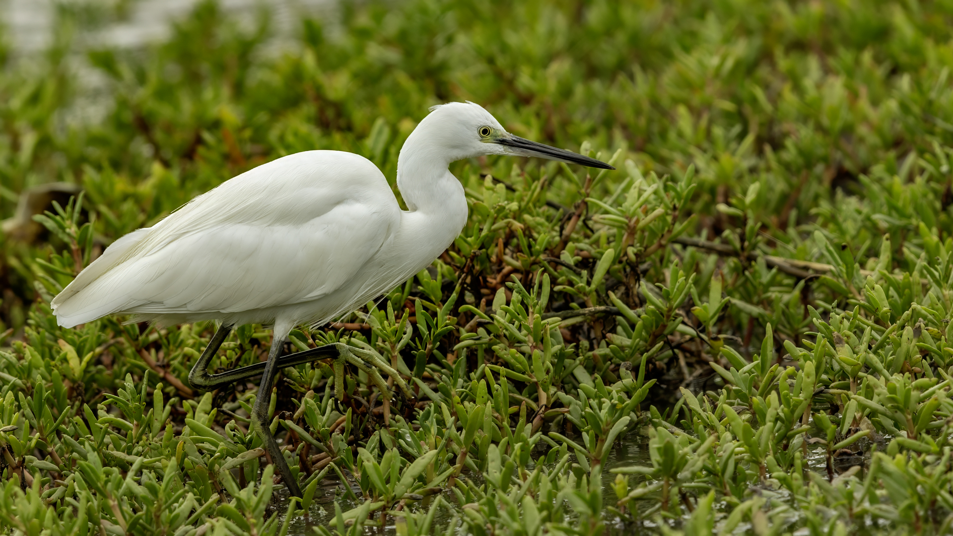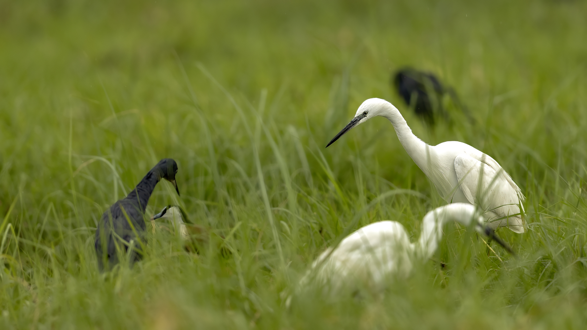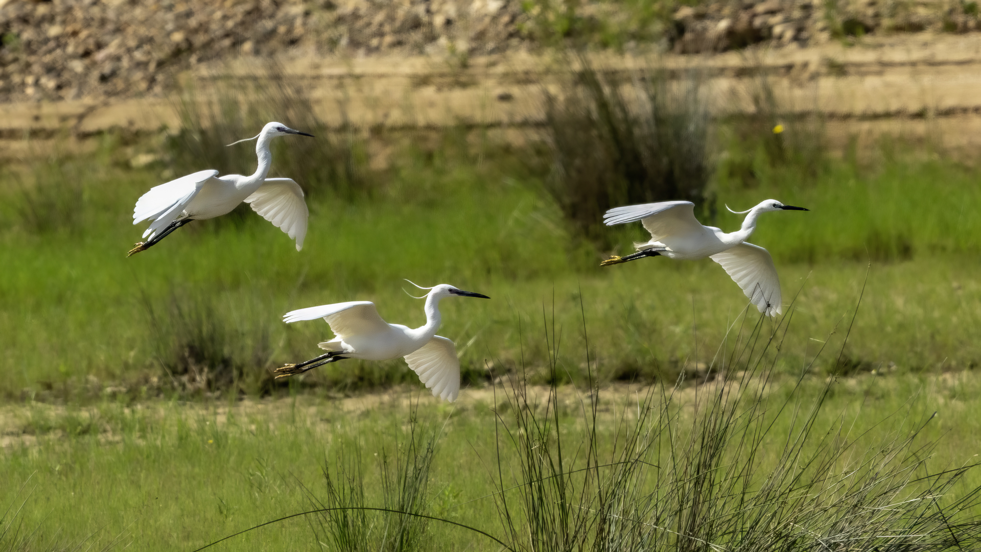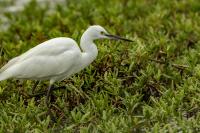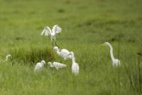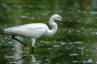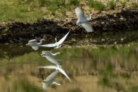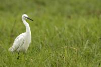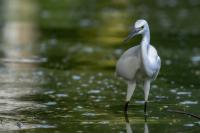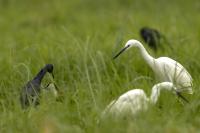 Podobnie jak tłumaczenia z angielskiego strepeta, nazwa czapli nadobnej to czapla mała. I rzeczywiście jest znacznie mniejsza od czapli białej, siwej, bo praktycznie raz mniejsza. Masa ciała czapli nadobnej to około 0,5 kg przy rozpiętości skrzydeł około metra. Oglądając cudze galerie fotograficzne poszczególnych gatunków czapli (białej, nadobnej) zwraca się uwagę na różnice w wyglądzie. Zestawienie na jednym zdjęciu tych dwóch gatunków przedstawia jednoznacznie różnice pomiędzy nimi. Zdjęcia są wykonane w trochę nieatrakcyjnym, „przepalonym świetle” i z dość znacznej odległości, ale emocje jakie budzi ten gatunek u mnie oraz ze względu na rzadkość tego gatunku nie mogłem odmówić sobie zaprezentowanie Wam go. W Polsce czaple nadobne należą do rzadkości i są bardzo płochliwe. Prezentowane zdjęcia były wykonane w trakcie warsztatów fotograficznych z żołnami. Tak jak pisałem przy opisie tego gatunku, nie byłem ustawiony tak, jak można by było to zoptymalizować, ale rekompensata w postaci wykonanych zdjęć stadka czapli nadobnej, aż nadto to zrekompensowała. Fotografując żołny, z racji ich dynamicznego lotu, jest się skoncentrowanym na niewielkim fragmencie pleneru, resztę ogranicza maskująca czatownia. Gdyby nie zerkniecie przez prawie ramię i przestawienie zestawu fotografującego o 90 stopni nie powstały by prezentowane zdjęcia. Czaple dały się podziwiać niecałą godzinę. Podziwiać dlatego, że są w odbiorze estetycznym, przynajmniej dla mnie, przepiękne. Śnieżnobiały kolor, z „kosmykiem” godowych delikatnych piór, powolne, subtelne, skupione ruchy czapli stwarzają wrażenie pewnej doskonałej sterylności tego ptaka. Miejmy nadzieję, że kolejne zdjęcia w pełni oddadzą urok i piękno tej czapli, zwłaszcza, że jest to możliwe w naszym kraju. Do tego będzie poza samą czaplą potrzebne poranne światło i koniecznie zmniejszenie odległości podczas fotografowania. Czas pokaże, czy uda się właściwie wyeksponować ten gatunek…