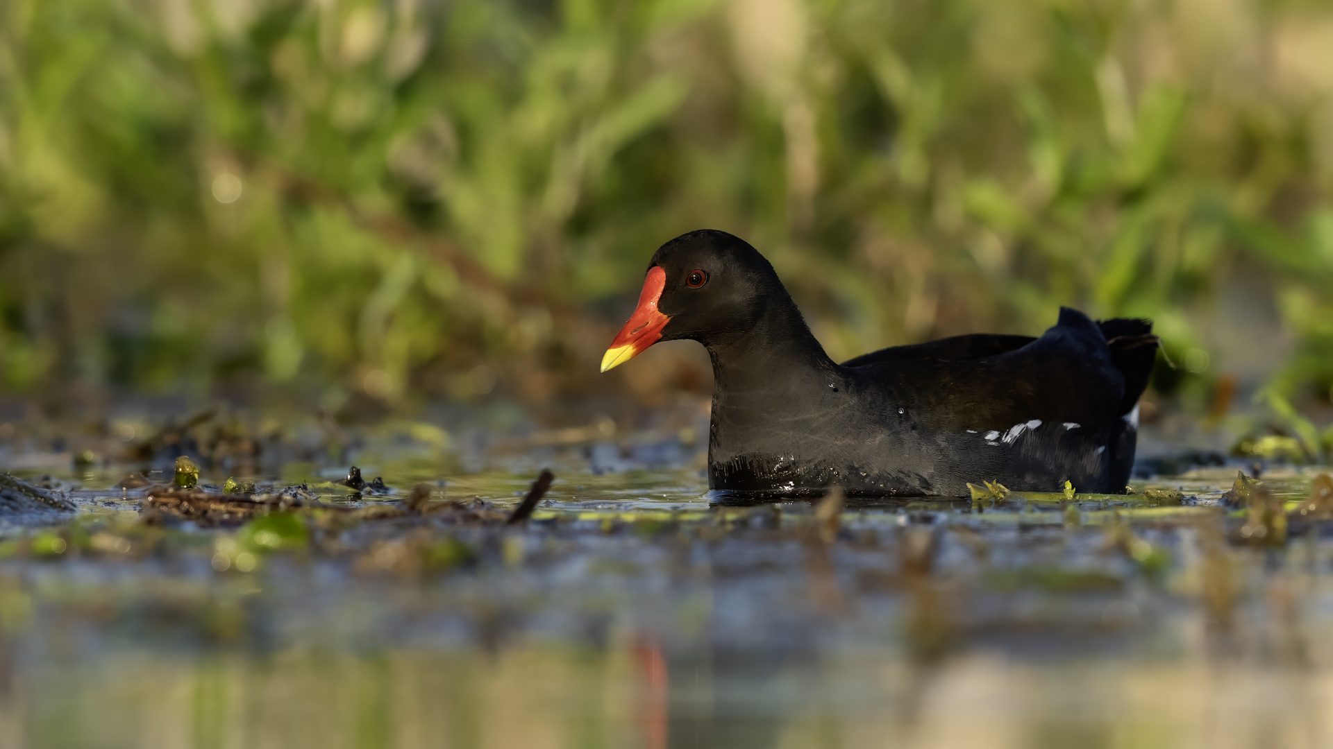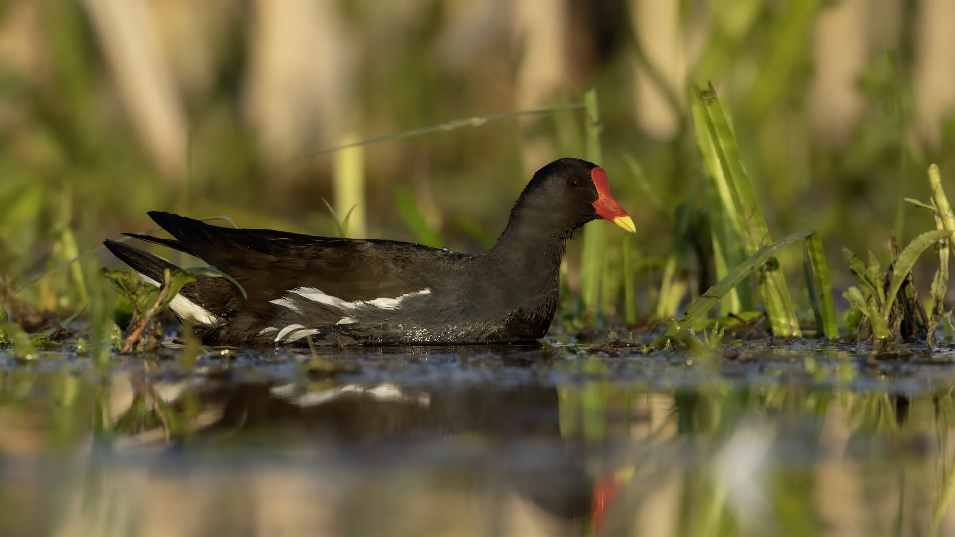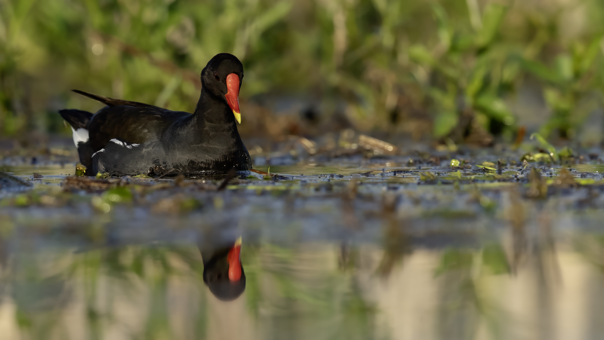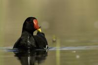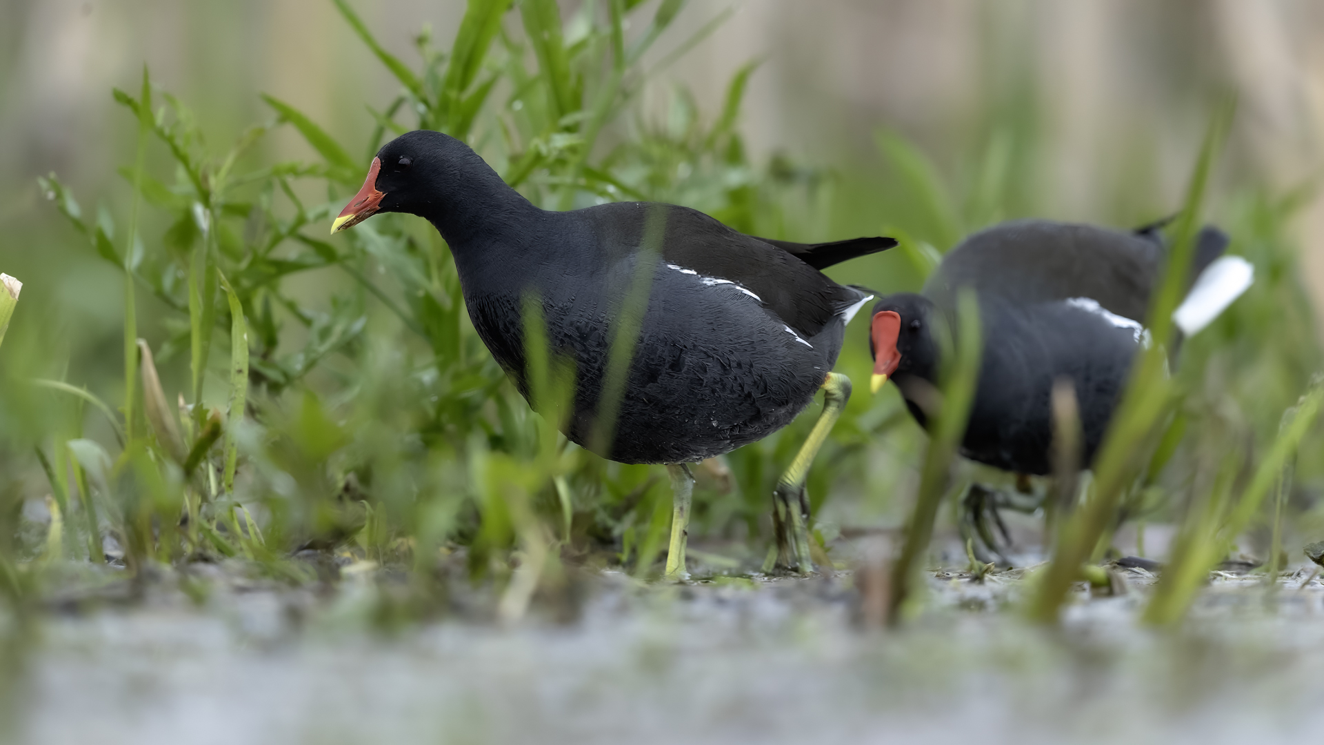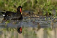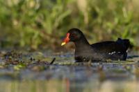 Wykonałem kilka lepszych niż dotąd zdjęć kokoszki w dość dziwnym miejscu w Grecji. Niedaleko od morza była sadzawka o brunatnym kolorze wody. Zapachu wody lepiej nie opisywać. I w tym ścieku pływało kilka żółwi, wiele małych rybek, a popołudniami pojawiała się kokosza rodzina. Dwa dorosłe osobniki i cztery młode. Odległość od ptaków - 4 do 7 metrów. Ptaki były przyzwyczajone do turystów i nie były płochliwe. Szkoda, że nie było warunków aby fotografować z innej perspektywy, z niższego poziomu byłyby ciekawsze ujęcia. Niemniej jednak powstały zdjęcia na tyle ciekawsze od dotychczasowych, że nastąpiła przebudowa galerii.