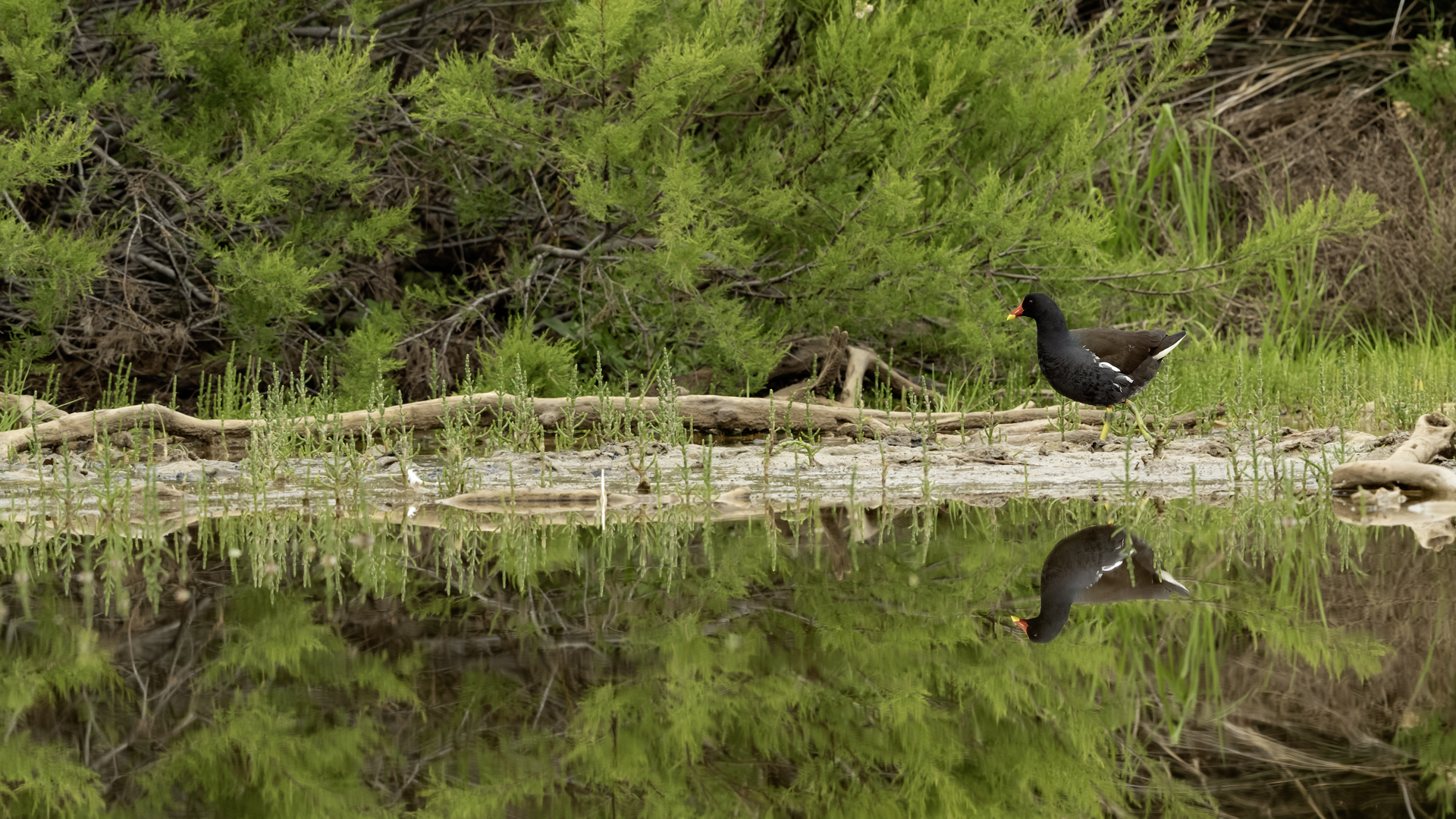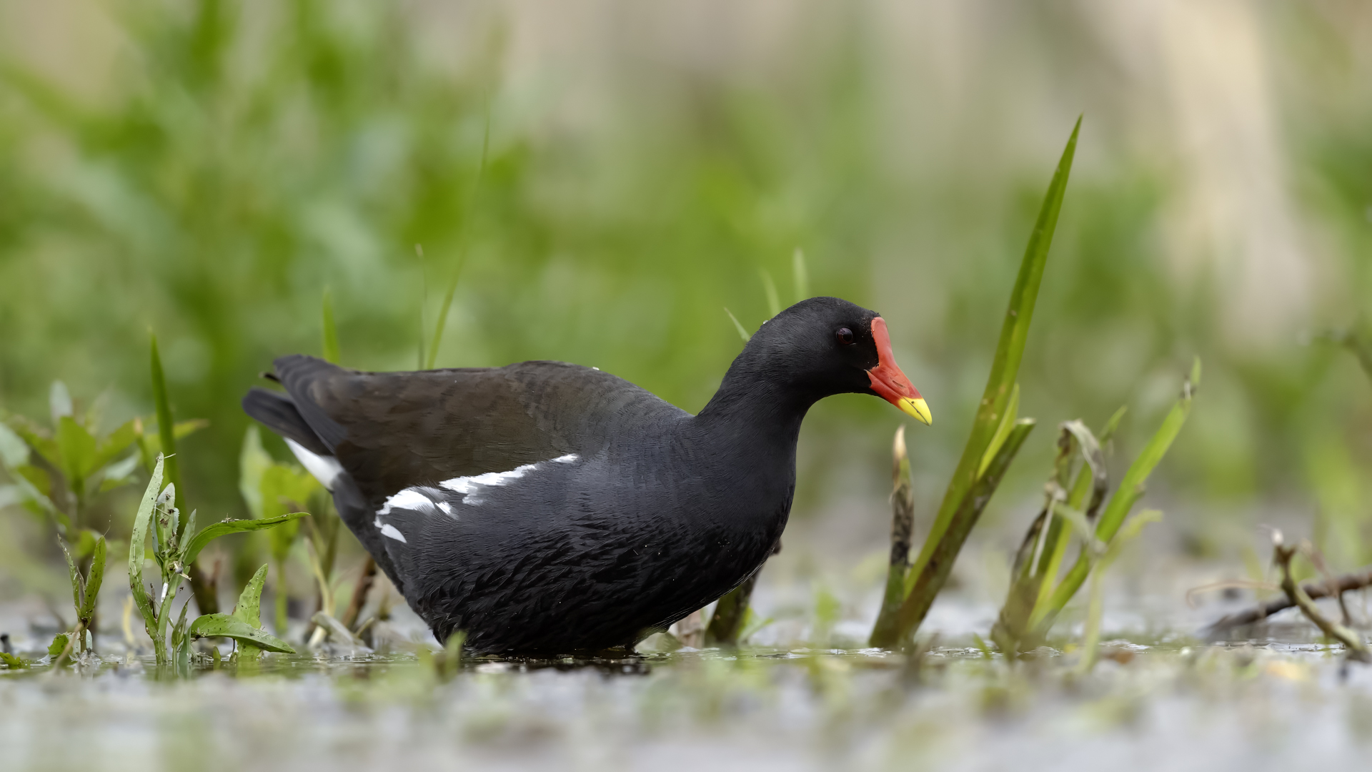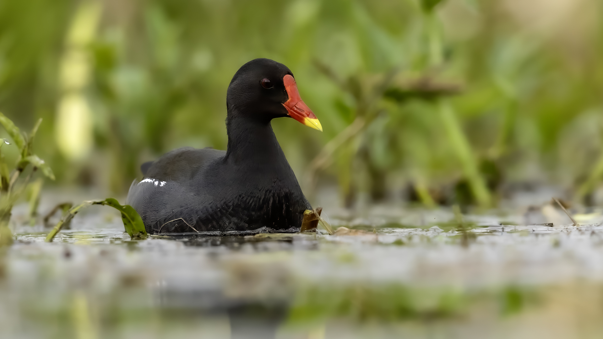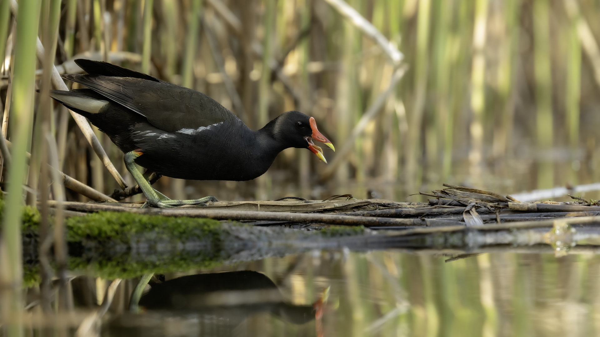 Wykonałem kilka lepszych niż dotąd zdjęć kokoszki w dość dziwnym miejscu w Grecji. Niedaleko od morza była sadzawka o brunatnym kolorze wody. Zapachu wody lepiej nie opisywać. I w tym ścieku pływało kilka żółwi, wiele małych rybek, a popołudniami pojawiała się kokosza rodzina. Dwa dorosłe osobniki i cztery młode. Odległość od ptaków - 4 do 7 metrów. Ptaki były przyzwyczajone do turystów i nie były płochliwe. Szkoda, że nie było warunków aby fotografować z innej perspektywy, z niższego poziomu byłyby ciekawsze ujęcia. Niemniej jednak powstały zdjęcia na tyle ciekawsze od dotychczasowych, że nastąpiła przebudowa galerii.