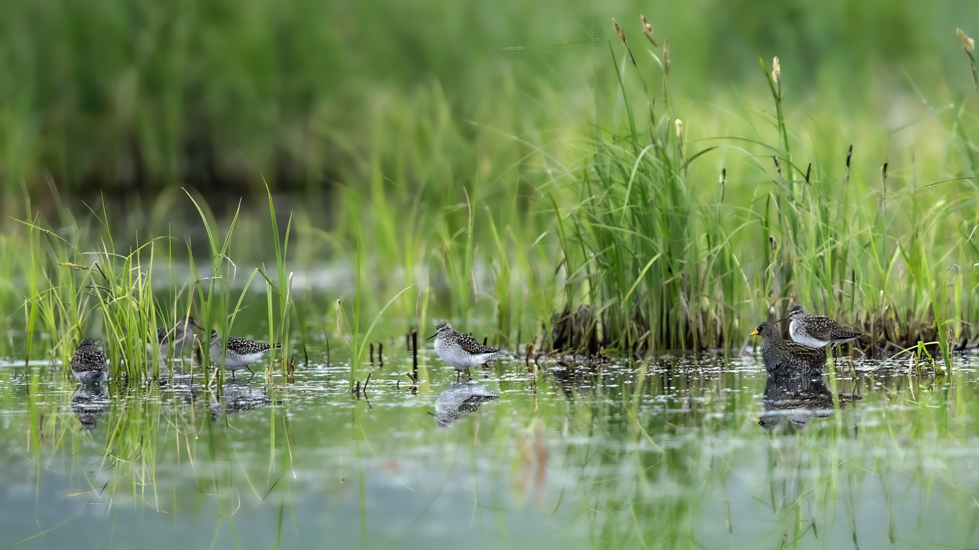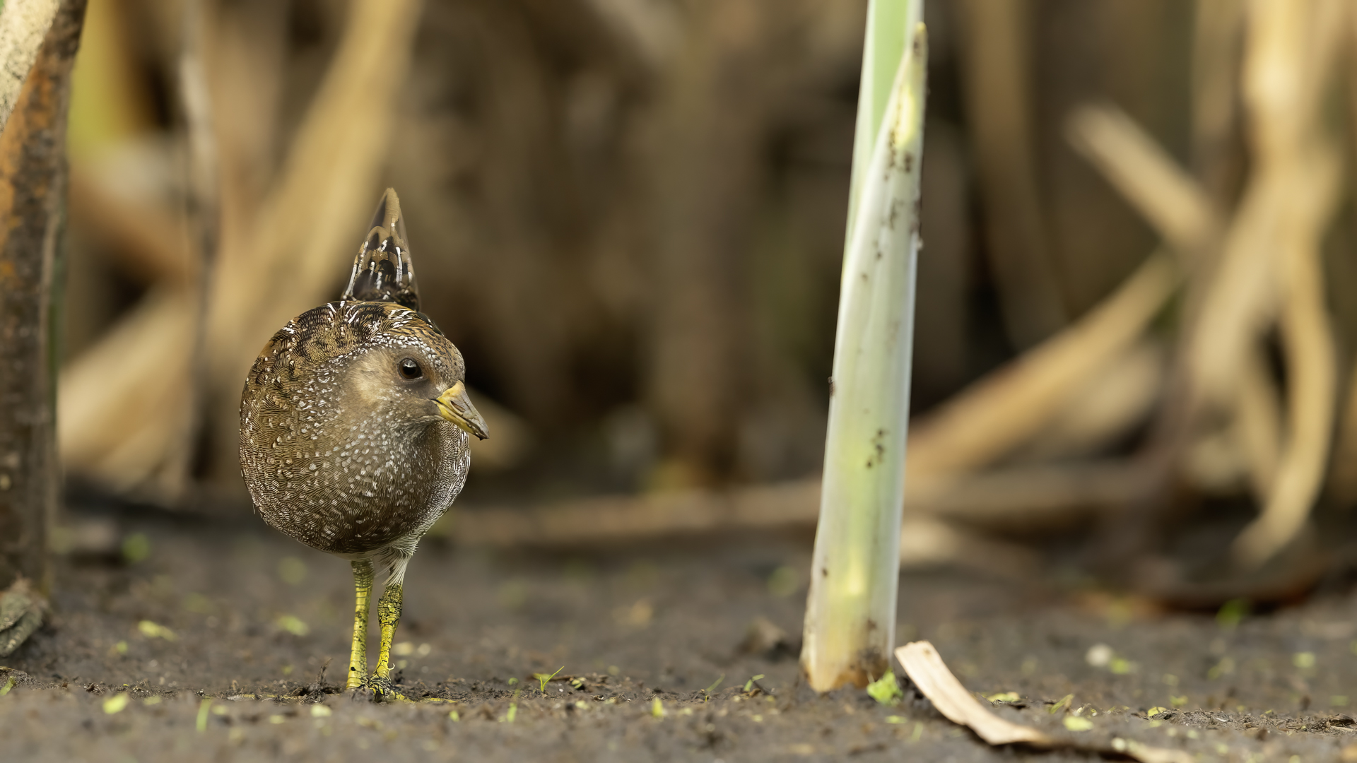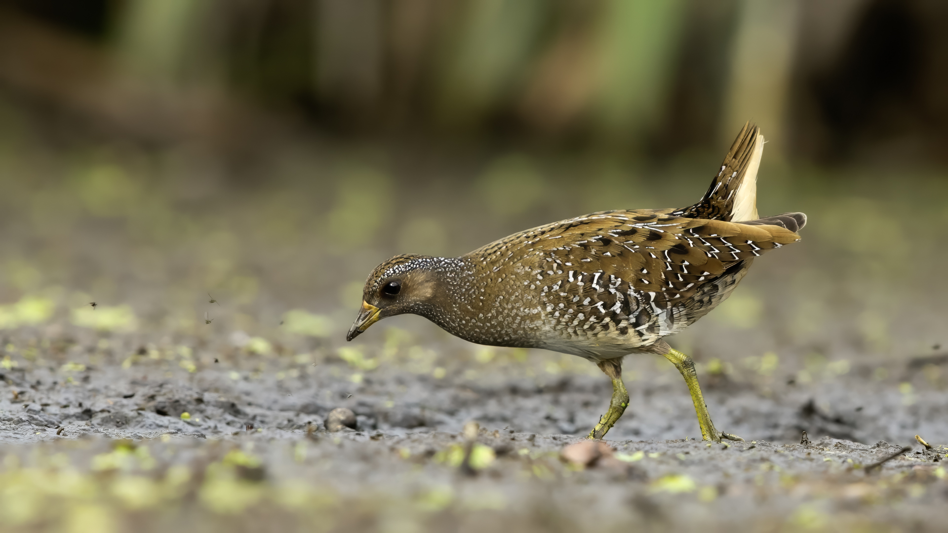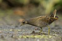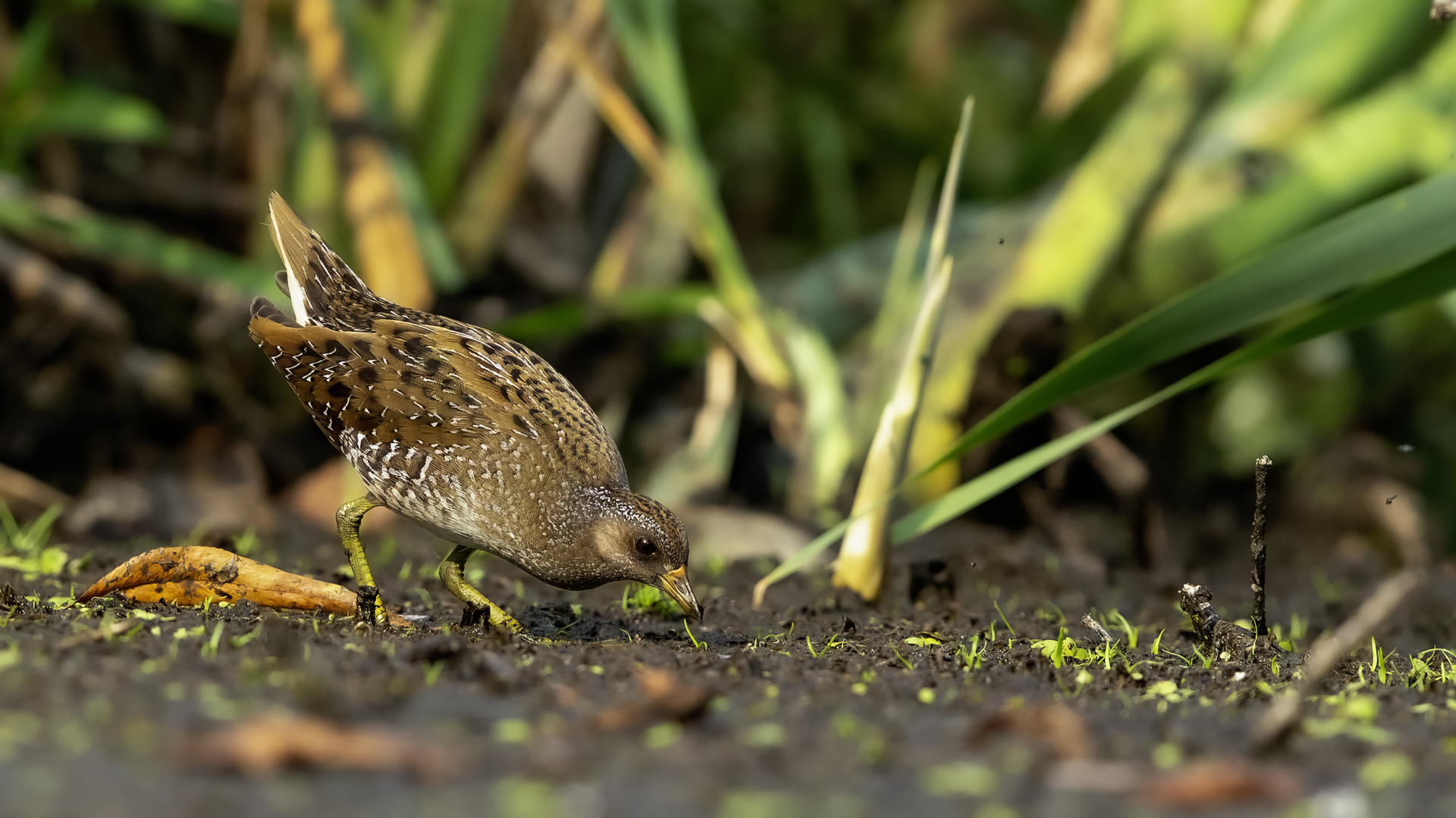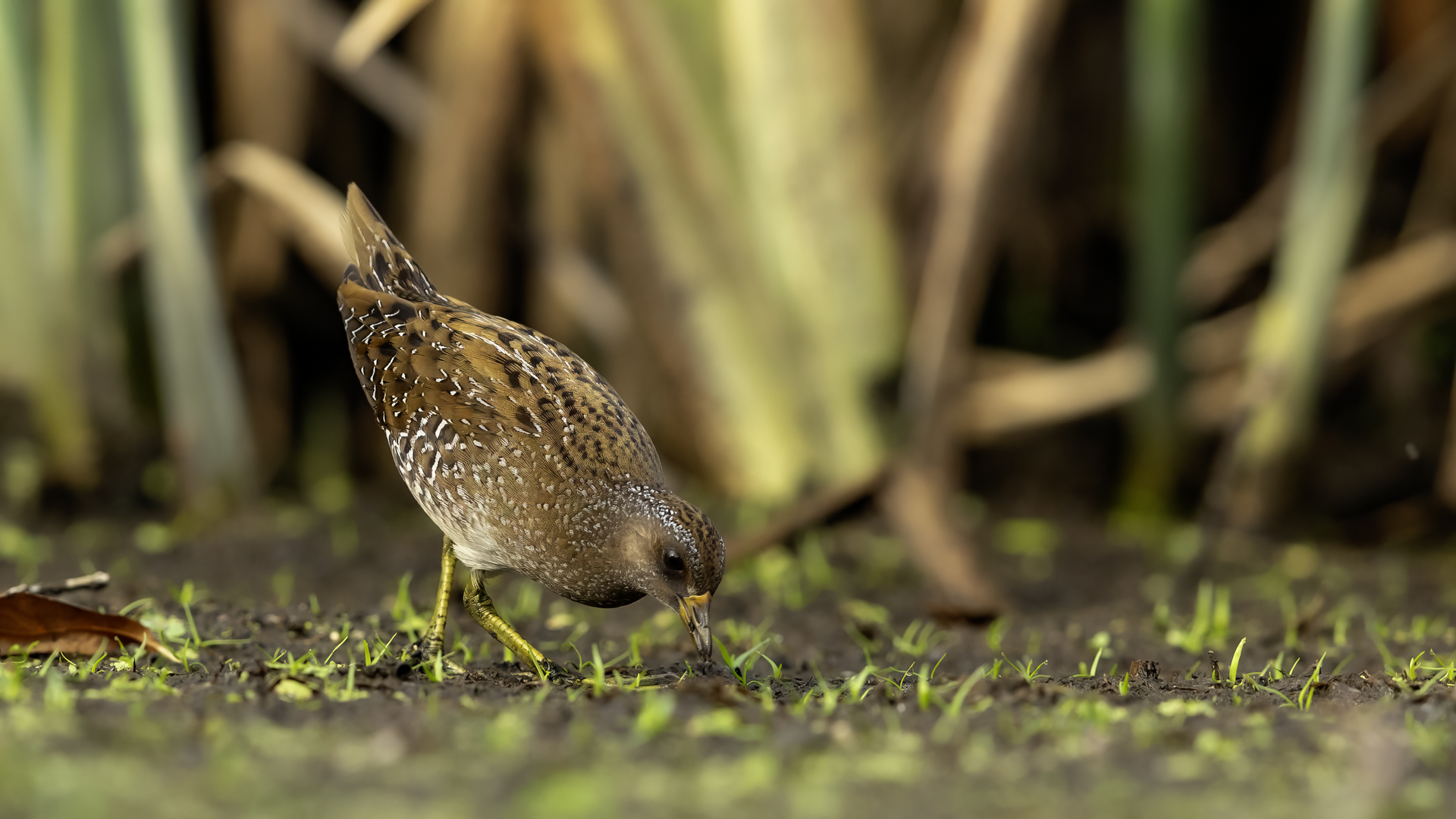 No cóż, o kropiatce i zielonce myślałem nie raz, ba próbowałem nie raz. Niestety, nie jest tak powszechna jak wodnik i jak widać, przynajmniej dla mnie, jest trudna do sfotografowania. Tym razem godzinę przed świtem, na podmokłej łące liczyłem na bataliony, krwawodzioby, łęczaki i kto wie co jeszcze tam mogło pojawić się przed obiektywem. Niestety ptaki zachowały dość dużą odległość i na domiar złego nie dopisała aura. Godzinę po wschodzie słońca pojawiła się mżawka i światło się pogorszyło. Kropiatka zaszczyciła swoją obecnością dosłownie na kilka sekund i to pewnie tylko dlatego, że dołączyła do żerujących opodal 7 łęczaków. Jak była jej aktywność i współpraca, taka i jest i moja galeria - zainicjowana kilkoma zdjęciami dokumentacyjnymi. Kropiatka należy do rodziny żurawiowych. Masa jej ciał nie przekracza 150 gramów, a rozpiętość skrzydeł wynosi około 40 centymetrów.