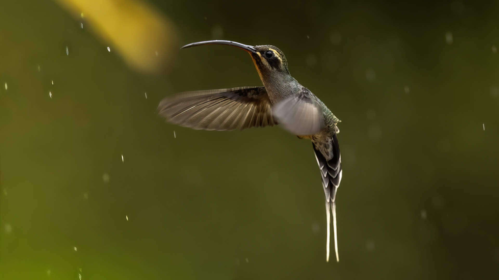 Według książki Milesa McMullana „The Guide to the Hummingbirds” na świecie żyje od 330 do 360 gatunków kolibrów i aż 129 gatunków z nich w Ekwadorze. Kolibry występują od Alaski w Ameryce Północnej po południe Ameryki Południowej. A więc na dwóch potężnych kontynentach, a na niewielkim w porównaniu z tym obszarem, powierzchni Ekwadoru jest tam ponad 30 procent gatunków kolibrów. Są rzeczywiście niemal wszędzie w Ekwadorze, a przynajmniej podczas całego naszego pobytu, dało się je codziennie zaobserwować. Przydrożne restauracje prawie zawsze mają poidełka kolibrowe. W oczekiwaniu na posiłek nigdy się nie nudziliśmy bo w tym czasie zawsze coś się działo przy karmnikach i powstawały zdjęcia. Kontakt z naturą jest tak bliski, że w jednym z takich miejsc zrobiliśmy sobie przerwę na obiad i jedząc zupę nieopodal poidełek kolibrowych, jeden z kolibrów usiadł mi na przedramieniu i obserwował co robię. Niesamowite spotkanie, niesamowity kontakt z przyrodą.  Jeszcze w innym miejscu stoję na wprost poidełka dla kolibrów, niemal w bezruchu próbując zdobyć dynamiczne zdjęcie kolibra, podczas gdy inny chciał sprawdzić czystość mojego ucha. Zapewniam, że to niemiłe uczucie słyszeć centymetr, dwa od ucha świst jego piór i mieć świadomość, że wsunie do ucha swój długi dziób. Trzeba się powstrzymać od odruchu, jaki towarzyszy w takiej sytuacji w przypadku komara, czy muchy, a więc machnąć energicznie ręka. To mogło by być śmiertelne dla kolibra. Wystarczy energicznie ruszyć głową i ptak odleci. Trzymając w takich miejscach w ręce kwiat, można liczyć, że koliber na niej usiądzie i sprawdzi, czy nie ma tam czasami smacznego nektaru. Nakręciliśmy takie krótkie filmy i wysłaliśmy je do Polski „z pozdrowieniami” z Ekwadoru. Czy może być piękniejsza „pocztówka” z pozdrowieniami z wakacji? Mimo bliskiego kontaktu z kolibrami fotografowanie do łatwych nie należy. Nie myślę  tu o zdjęciach pijących kolibrów z plastikowych pojemników lub siedzących na nich. Myślę o dynamicznych zdjęciach w locie tych niesamowitych podniebnych akrobatów. Samo fotografowanie warto, aby było poprzedzone krótką obserwacją gatunków tam występujących. Często się zdarza, że któryś z nich jest gatunkiem dominującym, bardzo terytorialnym i zachowuje się w charakterystyczny, przewidywalny sposób. Te gatunki zawsze łatwiej fotografować. Podlatują one czasami na kilka centymetrów od poidła, zawisają na sekundę, dwie, trzy w powietrzu, upewniają się, że jest bezpiecznie, po czym zaczynają swój słodki posiłek. Ten moment to sytuacja w której mogą powstać dynamiczne zdjęcia. Podobnie jak z kwiatami usytuowanymi w pobliżu dotychczasowych poideł. Ptaki zawisają przy nich i spijają sztucznie zostawiony tam słodką wodę. To te przewidywalne gatunki. Są jednak taki, które nagle wylatują z krzewów prosto do poidła, posilają się i tak szybko jak się pojawiły, tak szybko znikają. Z tymi człowiek prawie nie ma szans. Podobnie jak powietrzne kłótnie, potyczki kolibrów. Są tak szybkie, tak synchroniczna poruszanie się dwóch osobników, że można poprzestać tylko na obserwacji. Sfotografowanie takiej kłótni to czysty przypadek. Ostatecznie udało się sfotografować 41 gatunków kolibrów podczas całej wyprawy do Ekwadoru. Wszystkie mają zamieszczony niniejszy tekst, a jedynie gigancik i Górzak fioletowogłowy, mają tekst rozszerzony o indywidualne informacje. Zaznaczyłem to jako podwójne T-„TT”.