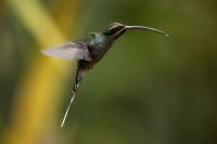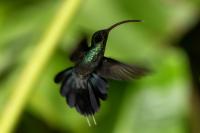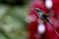 Mimo że udało się uwiecznić wiele gatunków kolibrów, będzie jeden tekst zamieszczony dla wszystkich 22 gatunków sfotografowanych na Kostaryce. Tym razem i czasu było więcej, i światło było lepsze, była więc okazja do wykonania wielu dynamicznych zdjęć. Ciekawe, że jeżdżąc po Kostaryce po przebyciu kilkudziesięciu kilometrów występowały zupełnie inne gatunki kolibrów. Kostaryka to niewielki kraj (kilkanaście procent powierzchni Polski) i na tak niewielkim obszarze występuje taka różnorodność gatunkowa kolibrów. Wszędzie, gdzie występowały kolibry, w przydrożnych barach, hotelach, zawieszane były poidełka, które przyciągały ich dziesiątki. To, że kolibry były na wyciągnięcie ręki wcale nie oznacza, że łatwo było wykonać prezentowane zdjęcia, zwłaszcza te dynamiczne. Przemieszczają się z taką szybkością, że nie ma chwili do zastanowienia, ani długiego czasu dla autofocusa. Na szczęście zachowują się w dość przewidywalny sposób, przynajmniej większość z nich. Po posileniu się przy poidle odlatują na 20-30 cm i zawisają w powietrzu na sekundę - dwie, aby sprawdzić co dzieje się w ich otoczeniu. Tak powstała większość prezentowanych zdjęć. Same kolibry często rywalizują między sobą i dochodzi do przepychanek pomiędzy nimi. Te powietrzne walki w locie są praktycznie nie do sfotografowania. Wszystko trwa ułamki sekund na przestrzeni kilkudziesięciu nieraz metrów, co przy ich filigranowej budowie czyni niemożliwym wykonanie satysfakcjonujących zdjęć. Kolibry zupełnie nie bały się ludzi, i zdarzało się, że podczas fotografowania siadały na moim ramieniu. Jak to bywa w fotografii przyrodniczej, różna była efektywność zdjęciowa spotkań z kolibrami. Powstały galerie, gdzie z powodu nadmiaru zdjęć trudno było podjąć  decyzję, które zamieścić w galerii, i powstały też takie, które mają bardzo skromną zawartość. Sama identyfikacja gatunków do prostych nie należy. W zależności od światła ten sam osobnik raz ma np. ciemnozielone ubarwienie, podczas gdy po chwili, przy zmianie warunków oświetleniowych, jest już pięknie wybarwionym ptakiem o połyskującym lśniącym upierzeniu. Łącznie udało się sfotografować 22 z liczby 50 gatunków, które występują na Kostaryce.