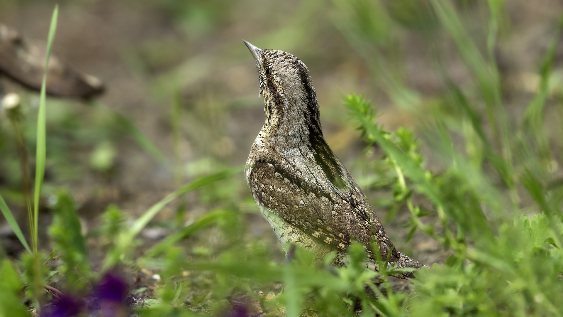 Tego, jeszcze nie było. Tak "młoda galeria", niedawno założona, właśnie skompletowana (obróbka głosu, tekst polski, tłumaczenie- wymaga trochę czasu, którego zawsze brakuje..), i tu taaaka jej odmiana. I znów przypadek. Jeszcze w głowie miałem świeżo co "obrabiane" głosy krętogłowów, a tu idąc na ogródki działkowe z Teściem, jakiś głos dziwnie nie dawał mi spokoju, choć z początku, nie potrafiłem skojarzyć tego dźwięku. I nagle zobaczyłem krzątającą się w okolicy parę krętogłowów. A że było to na ogródkach działkowych, nie trzeba było wielkich przygotowań do fotografowania. Przechodzący ludzie, z zainteresowaniem spoglądający na siatkę maskującą nie płoszyli krętogłowów. Efekt krótkiej sesji, przynajmniej jak dla mnie, piorunujący. W zeszłym roku próbowałem wielokrotnie zrobić, choć jedno kontaktowe, dokumentacyjne zdjęcie krętogłowa i nic. Chyba w tym fachu trzeba mieć sprzęt zawsze przy sobie, bywać w terenie ile sie da, a co powstanie- chyba nie da się zaplanować. Chyba cały urok w tym właśnie...