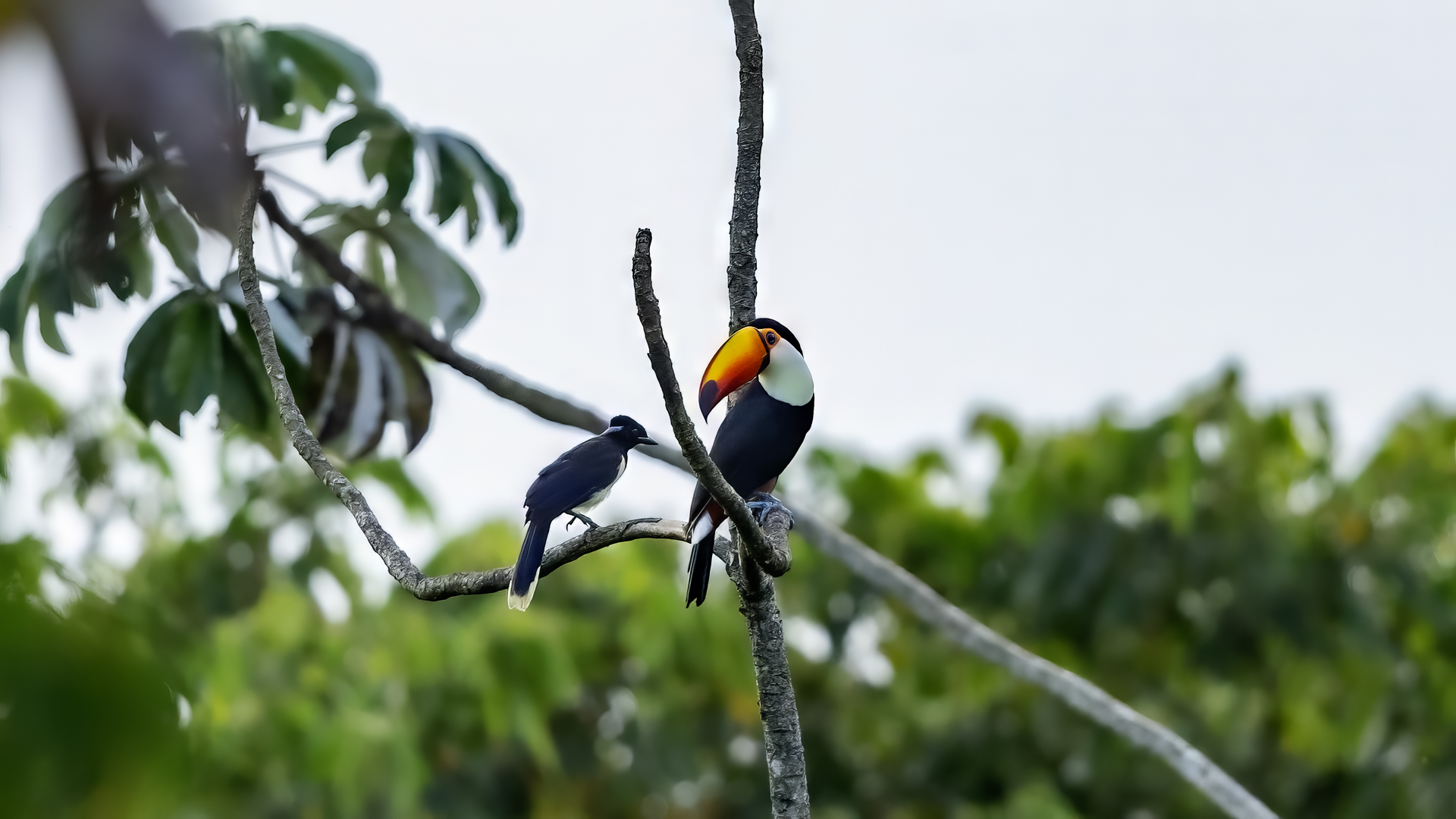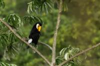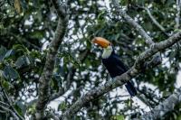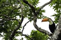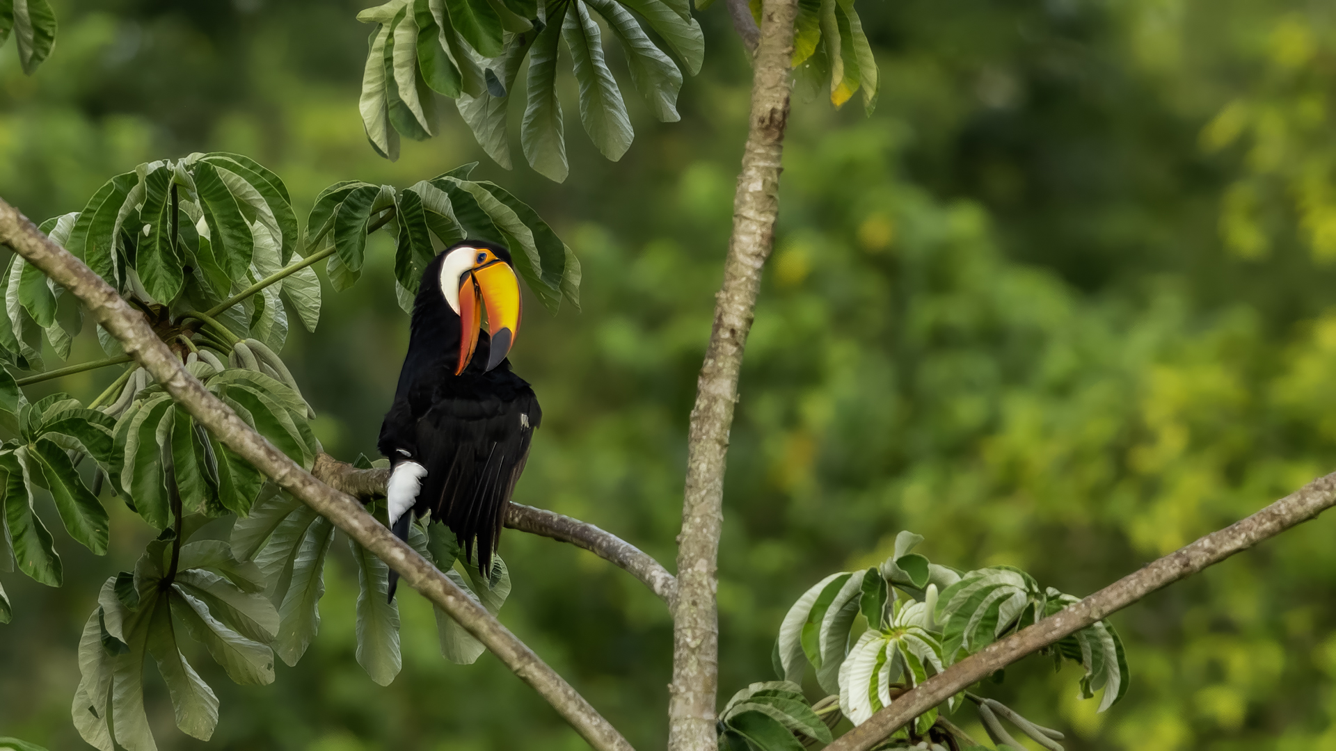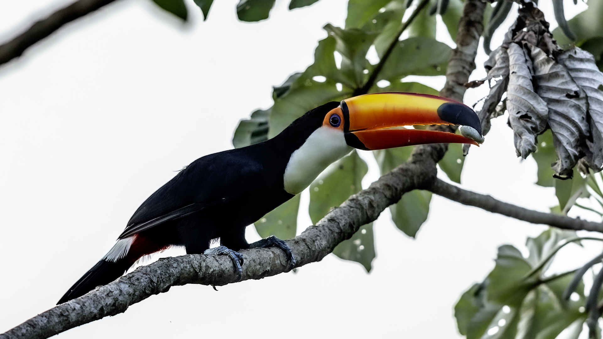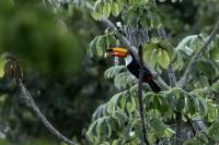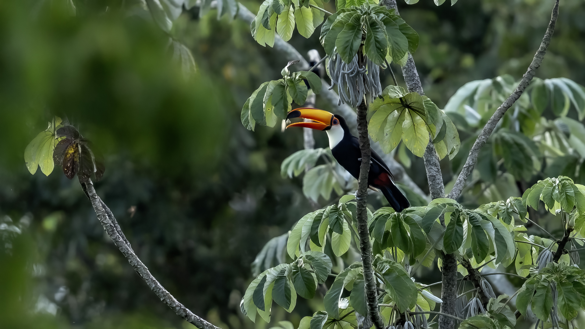 Niesamowity piękny ptak, niesamowite spojrzenie i wyróżniający go z grona innych ptaków potężny dziób. Tukany fotografowałem o wschodzie słońca niedaleko wodospadu Iguazú. Huk spadającej wody był wszechobecny. Tukany pojawiły się dosłownie na kilkadziesiąt minut. Było ich około 10-ciu. Powoli się do nas przybliżały, by po chwili odlecieć na żerowiska położone w lesie deszczowym. Musiały spać w lasach niedaleko wodospadu, a my stanęliśmy im w przelocie, a właściwie przemieszczaniu się na drodze na śniadanie. Tukany powoli penetrowały korony drzew w poszukiwaniu pożywienia. Przeskakiwały z gałęzi na gałąź lub przelatywały niewielkie odległości pomiędzy drzewami. Dzięki tylko takiemu spokojnemu zachowaniu, mogło powstać tyle prezentowanych zdjęć. Będąc popołudniu w lesie deszczowym widziałem tukany wielkie oraz drugi gatunek tukana, jaki udało mi się sfotografować – arasari brązowouchego. Ten drugi gatunek, prawie zawsze jednak na tle nieba i ze znacznie większej odległości. No cóż, te kilkadziesiąt minut obcowania z tukanami wielkimi zaowocowało powstaniem prezentowanej galerii, a wrażenie i emocje tak duże, że tekst związany z tym ptakiem, staje się tekstem wprowadzającym do argentyńskich galerii na mojej stronie. Tukan wielki, jest największym spośród żyjących tukanów w Ameryce Południowej. Waga jego ciała to niespełna kilogram (około 800-900 gramów). Samice znacznie mniejsze, ważą około 0,5 kilograma. Wyróżniający go potężny dziób mierzy około 20 centymetrów. Tukany należą do rodziny dzięciołowatych i żywią się głównie owocami.
