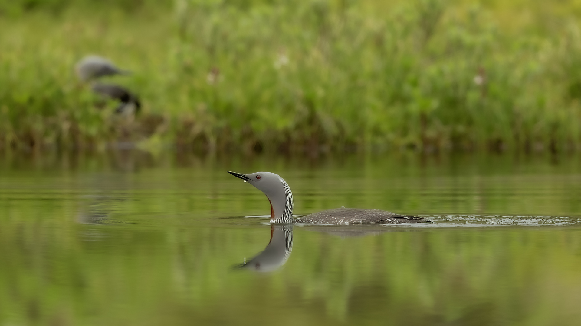 Zdjęcia nura rdzawoszyjego powstały w krótkiej przewie, pomiędzy pobytem w jednej, a drugiej czatowni i fotografowaniem głuszców i cietrzewi. Był to gatunek, który chciałoby się mieć, ale w naszych warunkach bardzo trudny od zaobserwowania, nie mówiąc już o sfotografowaniu. Fotografowałem nura zimą 2013 roku w Juracie, ale zachodziło słońce, ptak spał na wodzie i odległość była zbyt duża. Powstały zdjęcia, z których także trudno było o jednoznaczną identyfikację gatunku, tak więc nie zamieściłem ich na mojej stronie. Ale w Szwecji, miejscu gdzie nury występują znacznie częściej i jest to kraj ich rozmnażania zupełnie inna sytuacja. W okolicy w której fotografowaliśmy było wiele jezior, jeziorek i oczek wodnych. Na tych najmniejszych widać było często gągoły. Na tych średnich zbiornikach nury. Podchodząc do zbiornika nur powoli, ale zdecydowanie się oddalał, ale nie uciekał. Wykonane zdjęcia nie były wykonane z żadnej czatowni (a szkoda, tu ukłony do organizatora warsztatów, bo ich jakość byłaby nie do porównania), a jedynie ze spokojnego wyczekiwani nad brzegiem w zaroślach. Zbiorniki były na tyle małe, że nawet wolno pływający nur zmniejszał odległość od nas. Niestety zawsze pozostawało kilkadziesiąt metrów. Nury rdzawoszyje żywią się rybami. Osiągają masę swojego ciała do 2,5 kilograma i rozpiętości skrzydeł do 1,2 metra. Upierzenie ich głów jest rzeczywiście niesamowite i mam nadzieję, że mimo utrudnień plenerowych, braku czatowni udało się wyeksponować specyficzny urok tego ptaka.