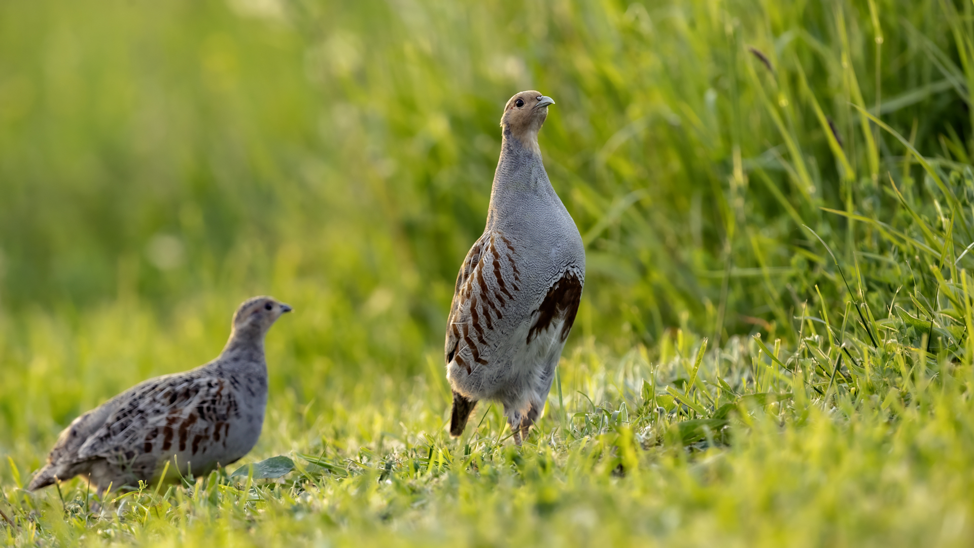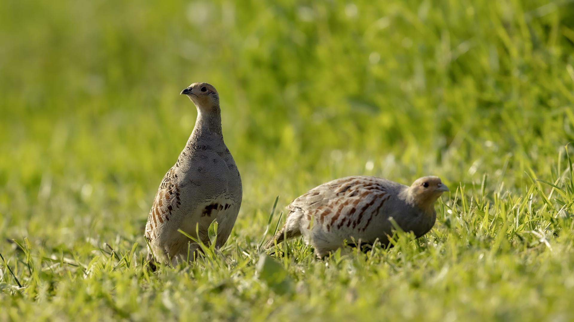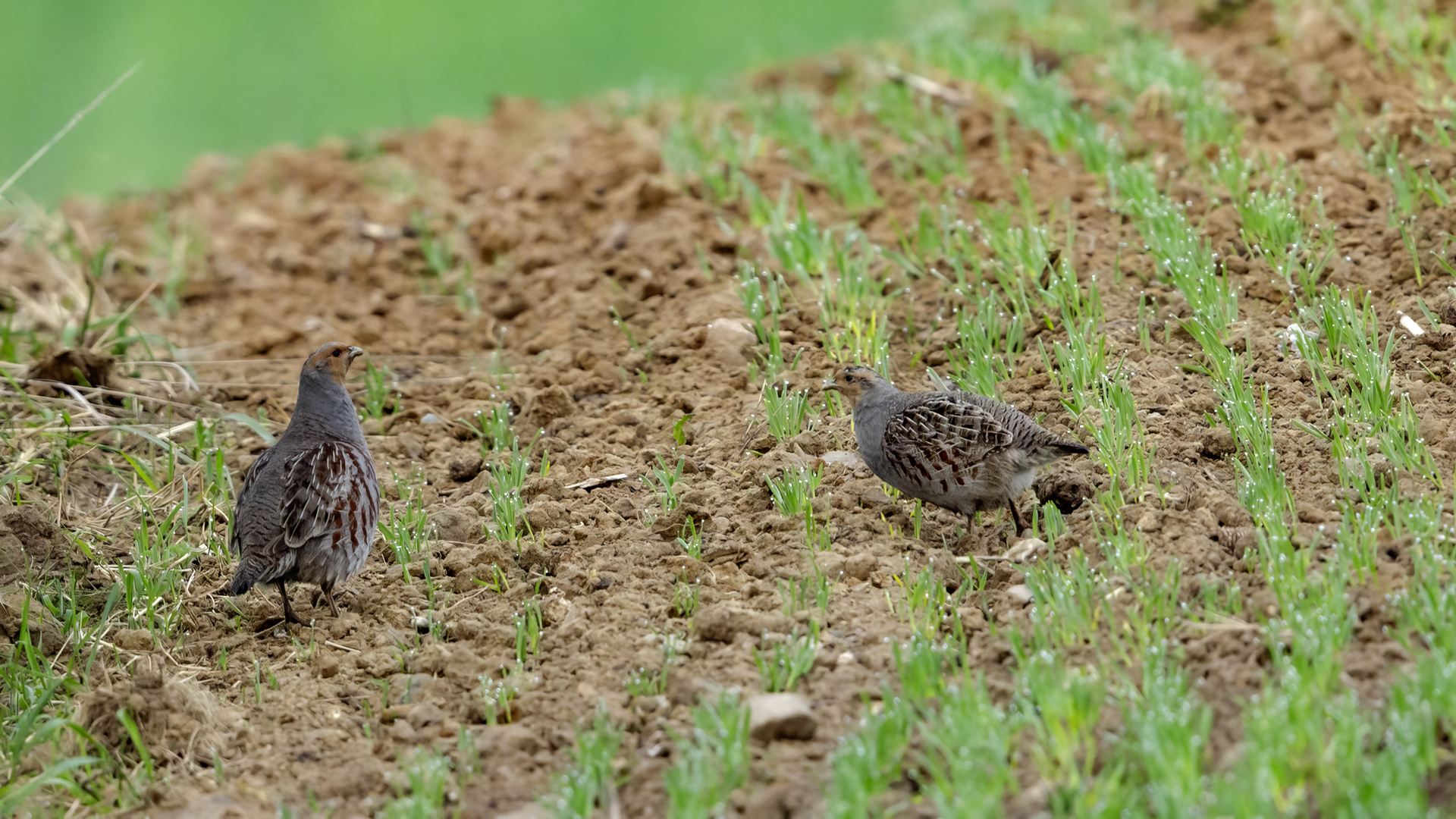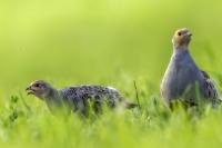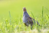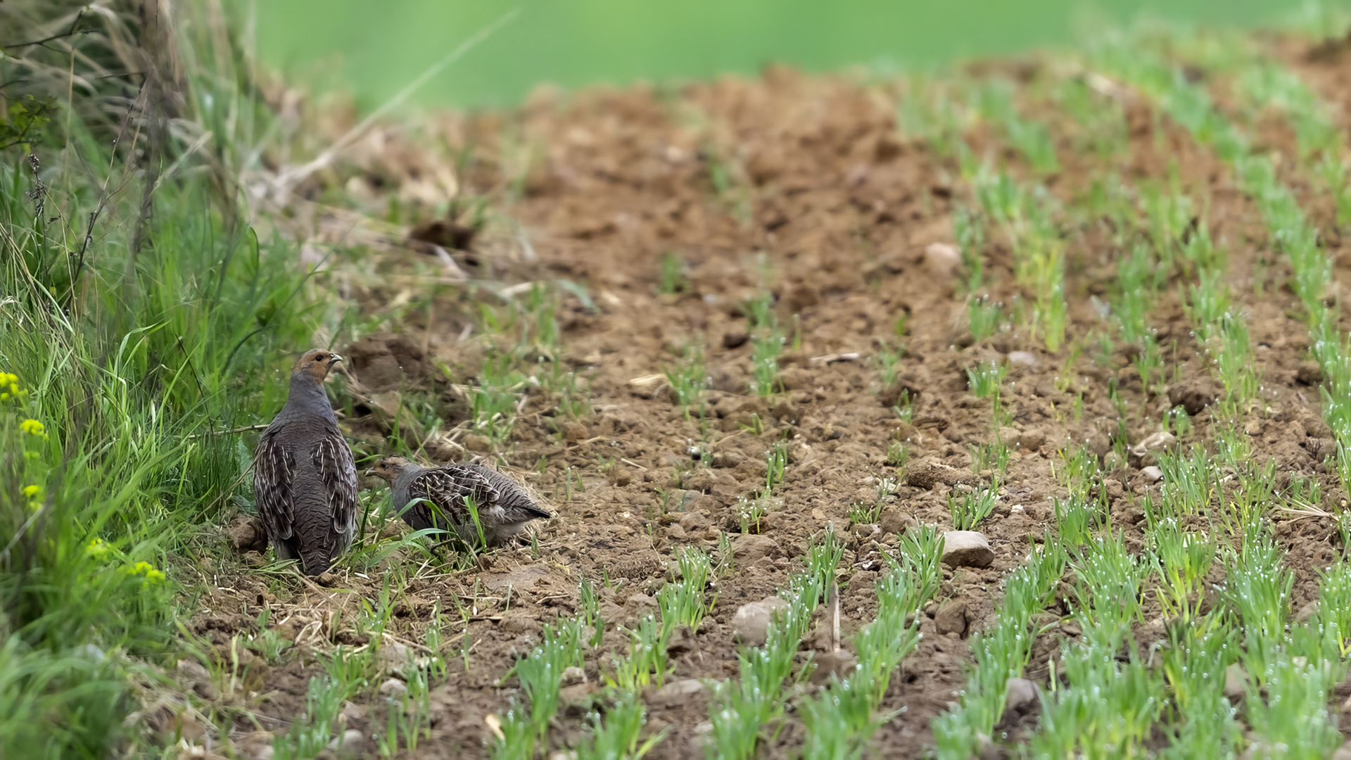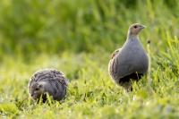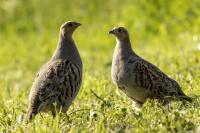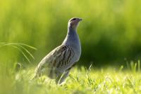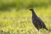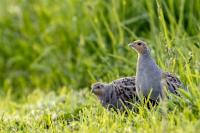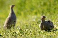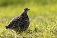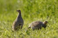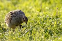 Dwa powroty w miejsce, gdzie fotografowałem pierwszy raz kuropatwy, nie zakończyły się jakimś spektakularnym sukcesem zdjęciowym. Ale prawie półtorej godziny obserwowania kuropatw dało okazję do poznania ich zachowań. Zawsze jeden z ptaków monitorował otoczenie wypatrując niebezpieczeństw. Obserwacja dwóch żerujących ptaków była rzadkością. Najczęściej samiec stał na straży, a samica posilała się lub ucinała sobie krótka drzemkę. Niestety i tym razem odległość była znaczna i bez konwerterów się nie obyło. Do tego mocno żółte poranne oświetlenie też nie ułatwiało powstania lepszych zdjęć. Ważne, że wiadomo gdzie wrócić, i oby kuropatwy nie zmieniły swych zwyczajów...