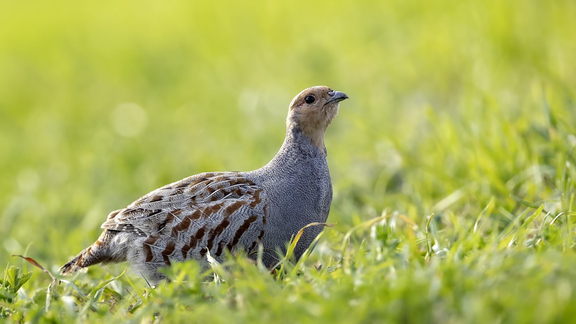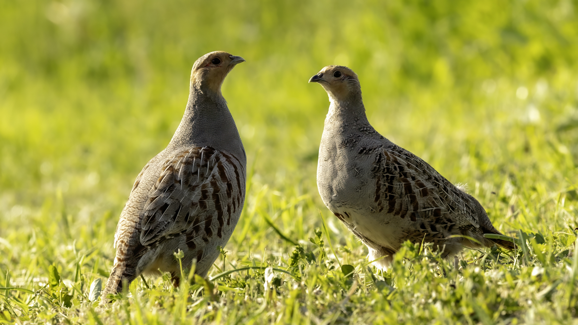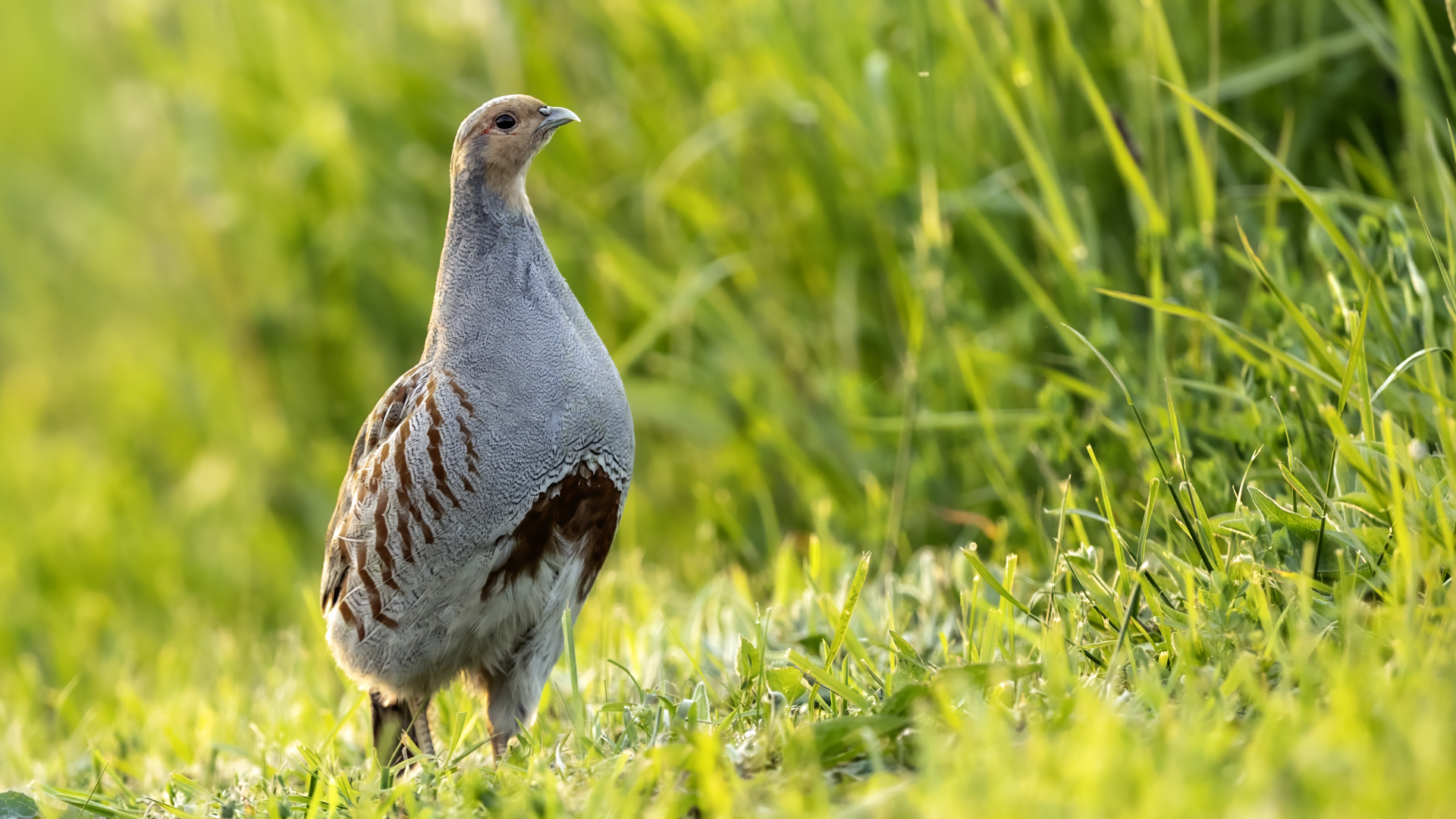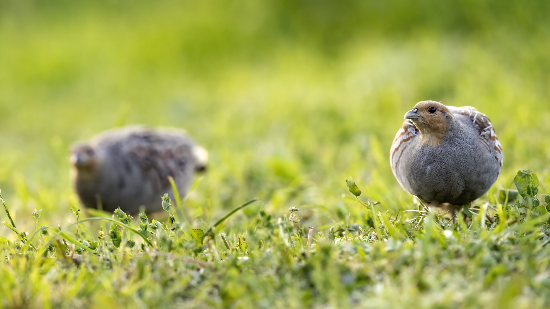 Dwa powroty w miejsce, gdzie fotografowałem pierwszy raz kuropatwy, nie zakończyły się jakimś spektakularnym sukcesem zdjęciowym. Ale prawie półtorej godziny obserwowania kuropatw dało okazję do poznania ich zachowań. Zawsze jeden z ptaków monitorował otoczenie wypatrując niebezpieczeństw. Obserwacja dwóch żerujących ptaków była rzadkością. Najczęściej samiec stał na straży, a samica posilała się lub ucinała sobie krótka drzemkę. Niestety i tym razem odległość była znaczna i bez konwerterów się nie obyło. Do tego mocno żółte poranne oświetlenie też nie ułatwiało powstania lepszych zdjęć. Ważne, że wiadomo gdzie wrócić, i oby kuropatwy nie zmieniły swych zwyczajów...